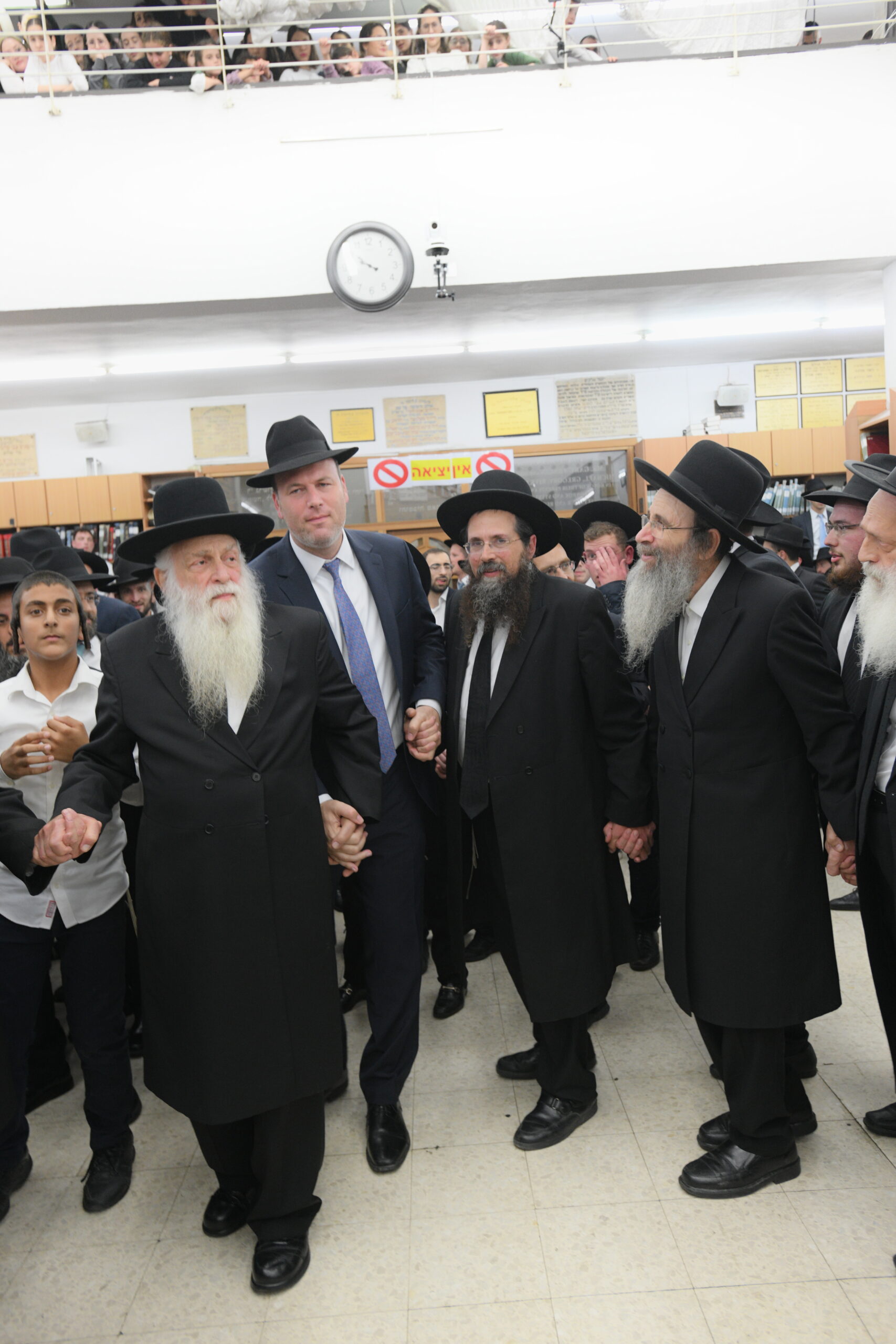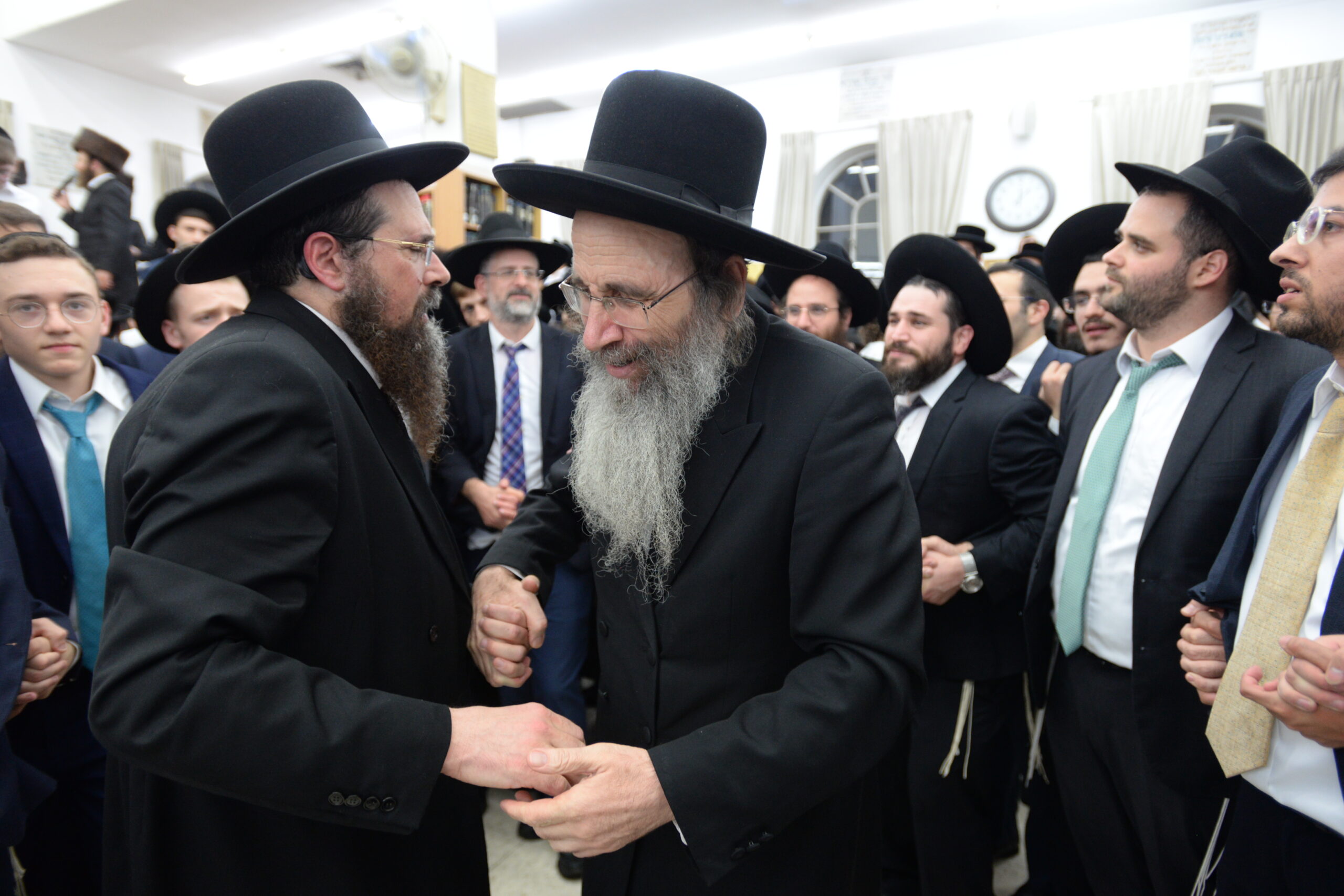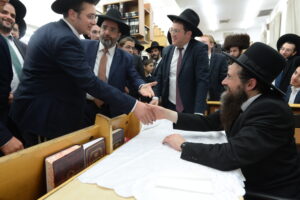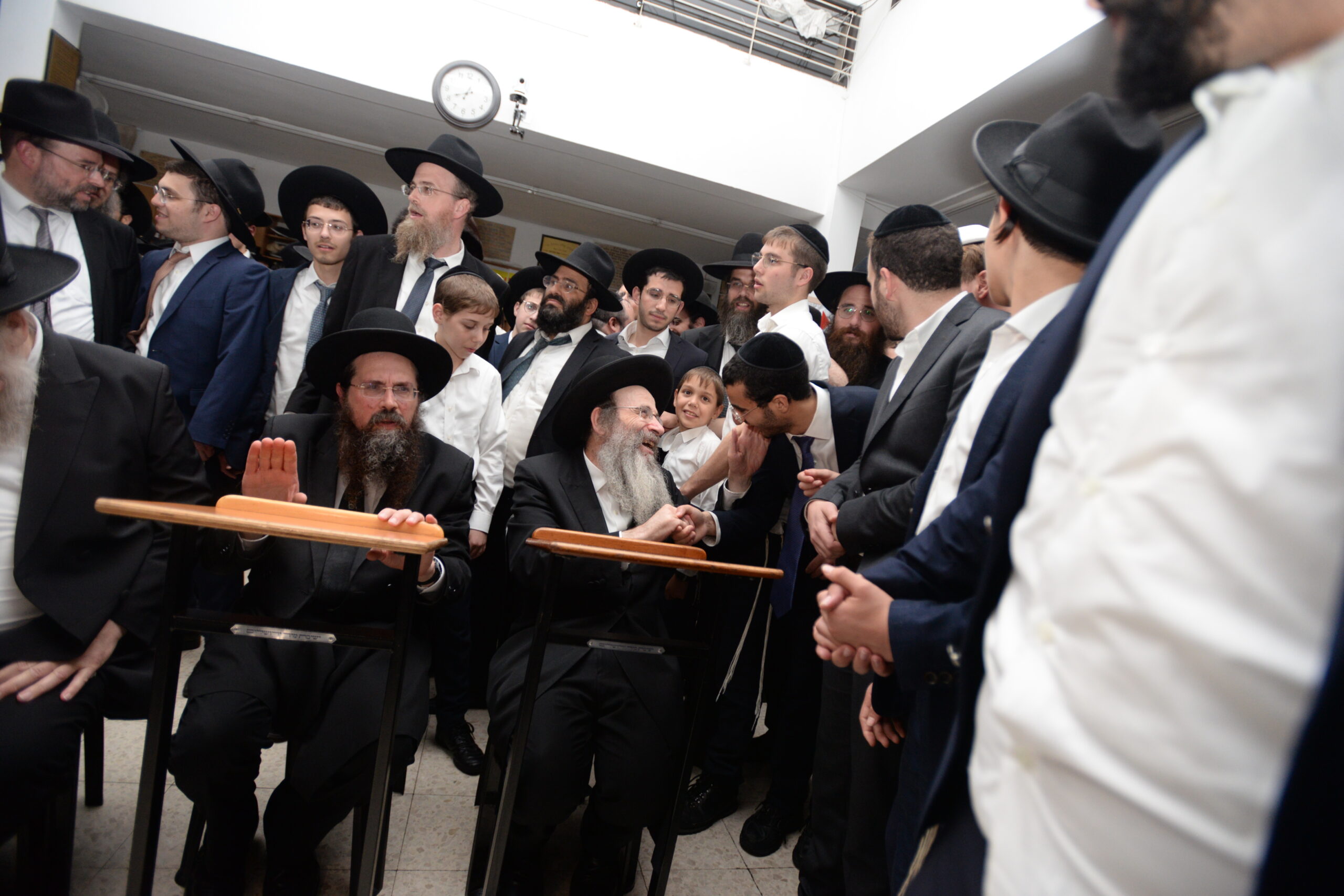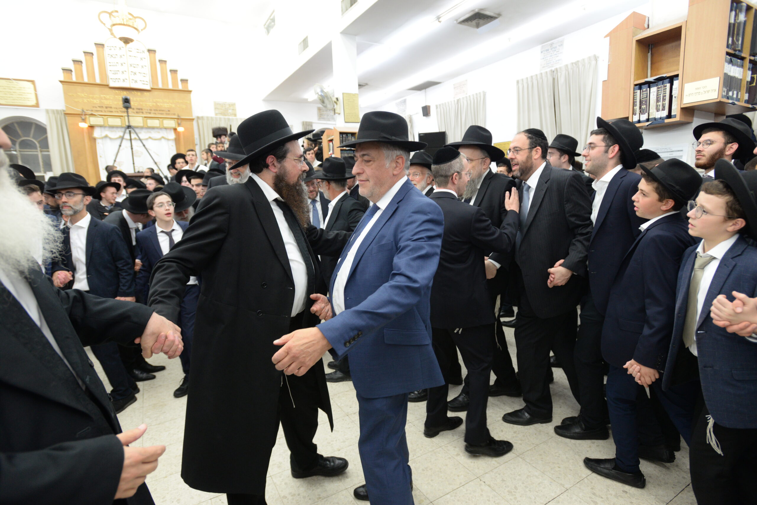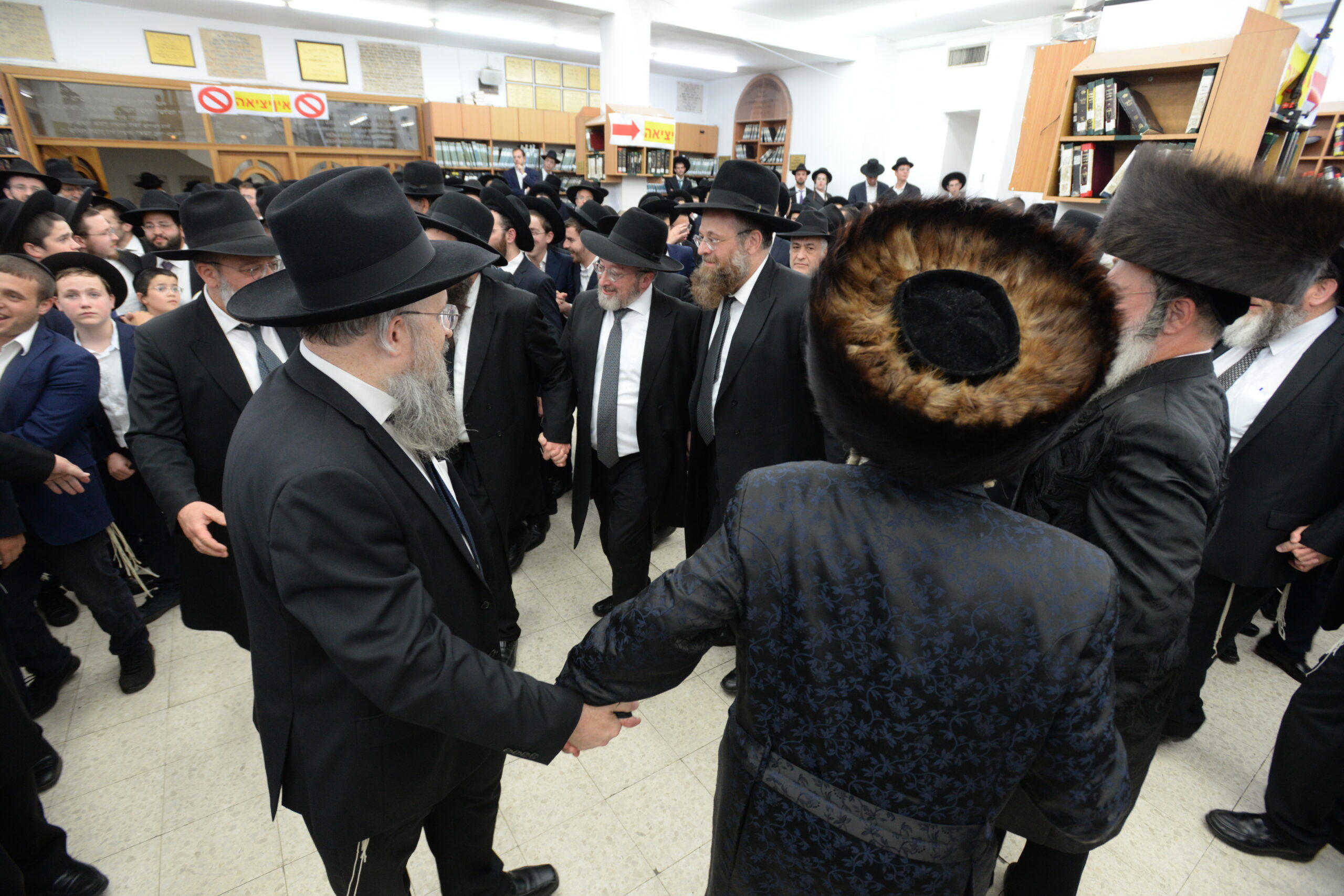 The Yeshiva’s Simchas Beis Hashoeva was held on Thursday, the second night of Chol Hamoed, beginning with music and dancing in the Mercazi Bais Medrash at 9:20. When the Roshei Yeshiva walked in about twenty minutes later, the olam broke out in tremendous excitement as they danced with their Rabbeim for several hours. Many visiting guests joined as well, taking the opportunity to wish the Roshei Yeshiva a Gut Yom Tov. All in all, there were around 9,000 people coming by throughout the night. The highlight of the event, as usual, was the kumzitz with inspiring songs of Yamim Noraim and Geulah at the end of the night, culminating in Leshana Haba’ah Bi’Yerushalayim.