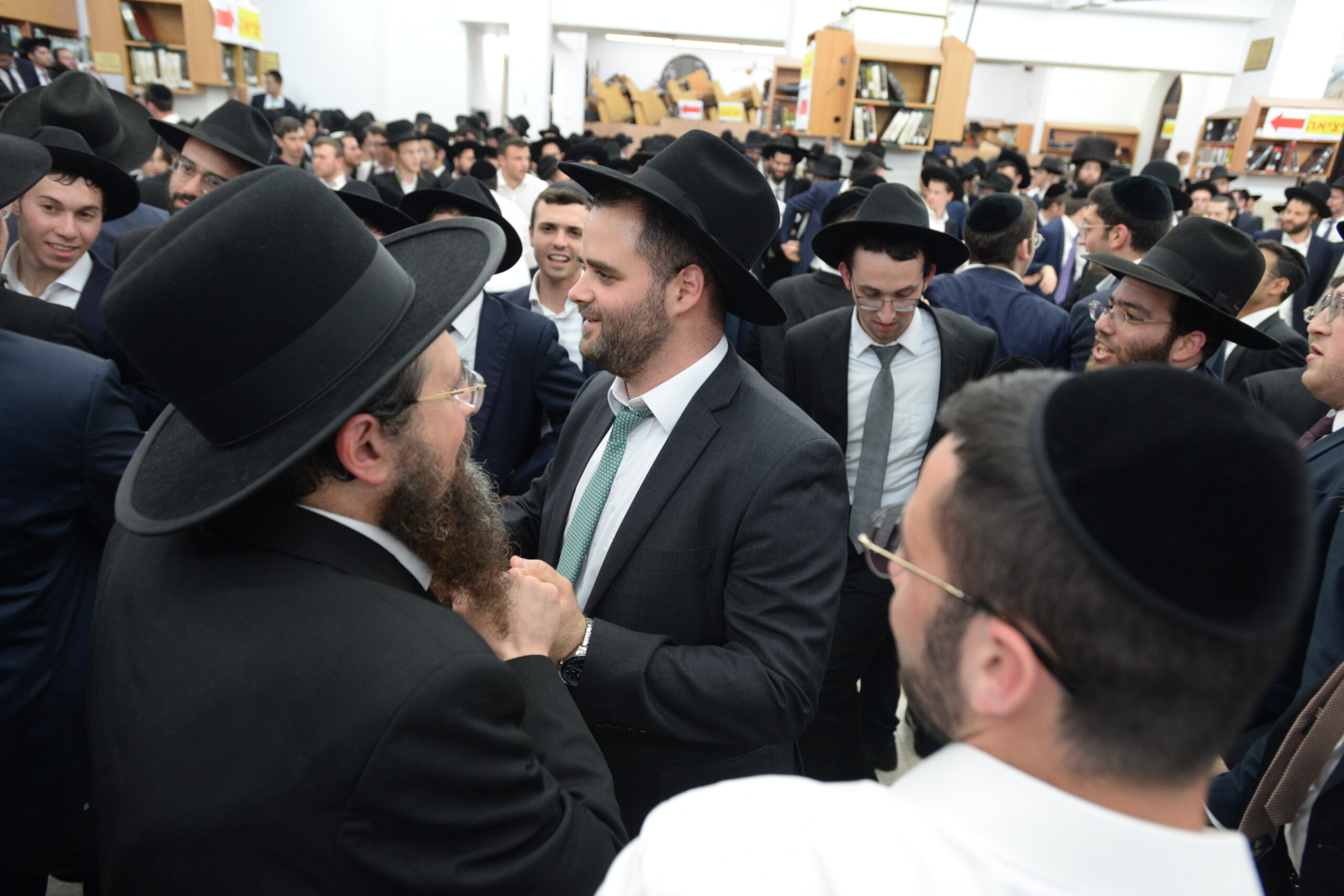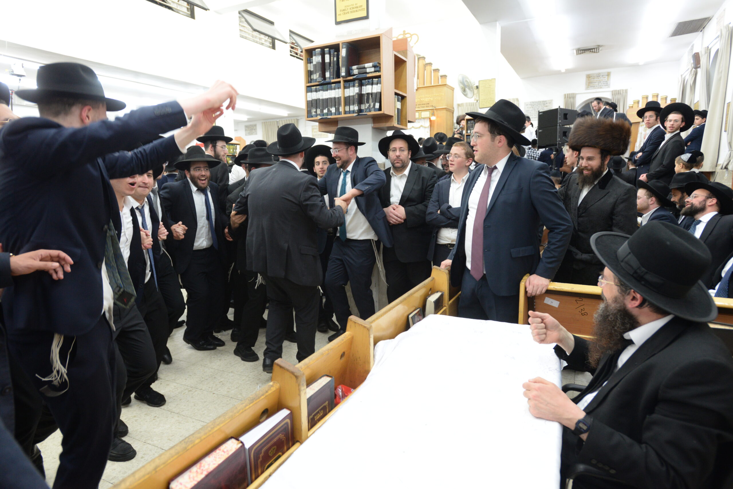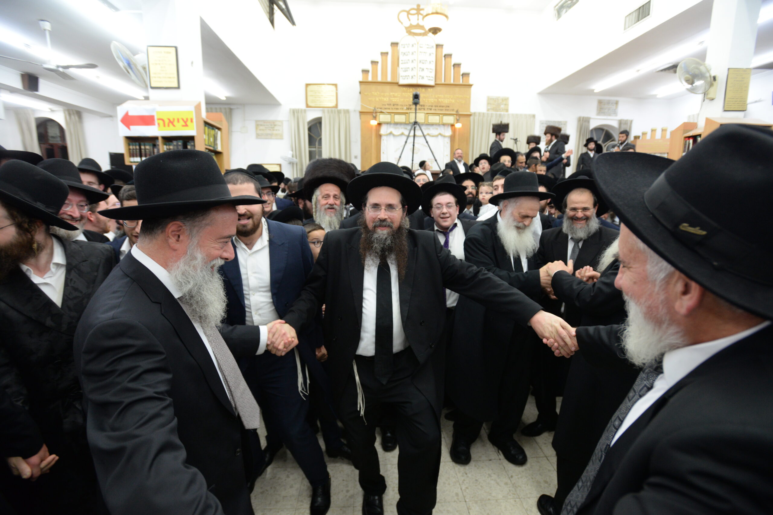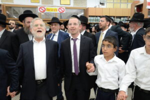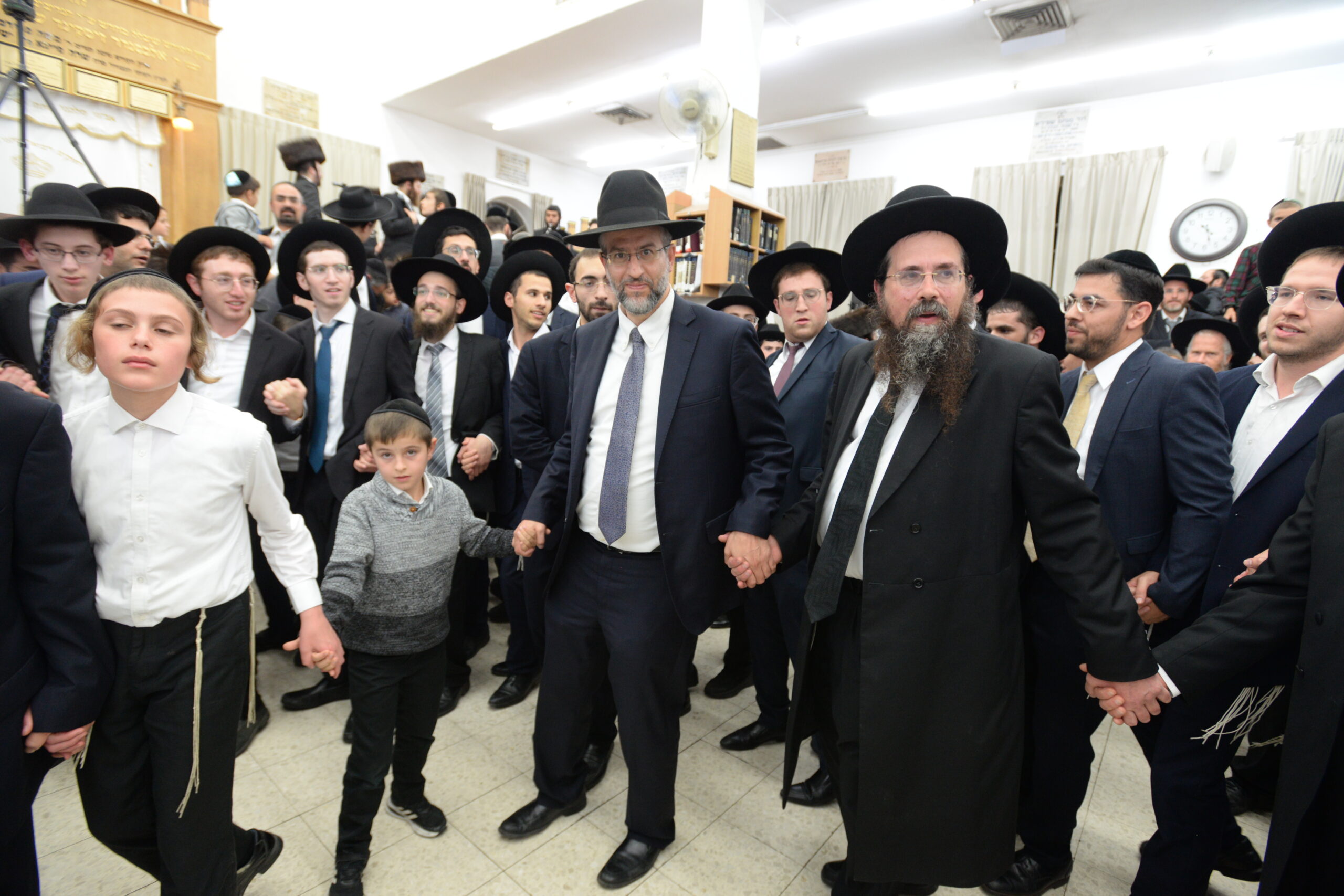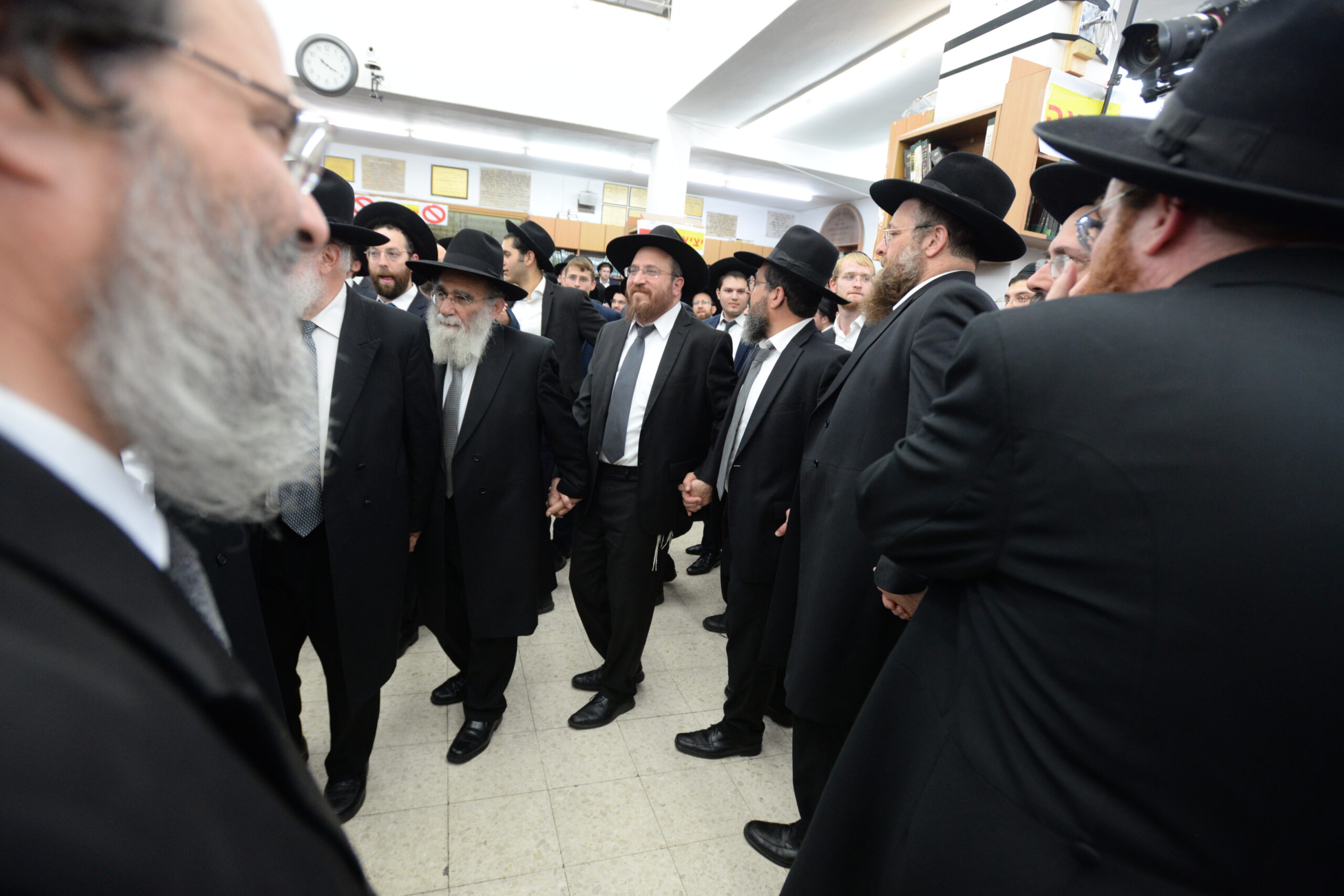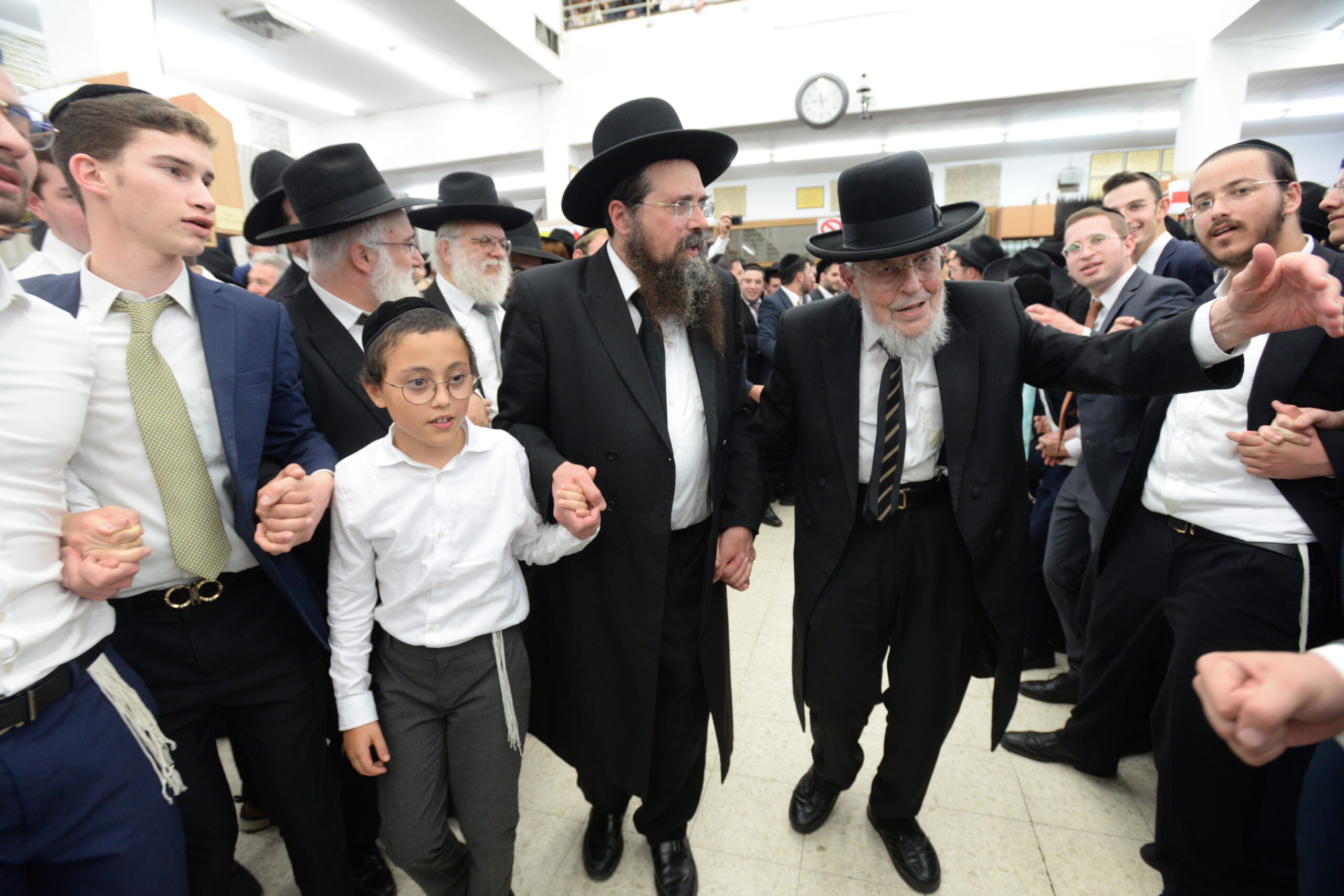 The Yeshiva’s Simchas Beis Hashoeva was held on Thursday, the second night of Chol Hamoed, beginning with music and dancing in the Mercazi Bais Medrash at 9:20. When the Roshei Yeshiva walked in about twenty minutes later, the olam broke out in tremendous excitement as they danced with their Rabbeim for several hours. Many visiting guests joined as well, taking the opportunity to wish the Roshei Yeshiva a Gut Yom Tov. All in all, there were around 9,000 people coming by throughout the night. The highlight of the event, as usual, was the kumzitz with inspiring songs of Yamim Noraim and Geulah at the end of the night, culminating in Leshana Haba’ah Bi’Yerushalayim.