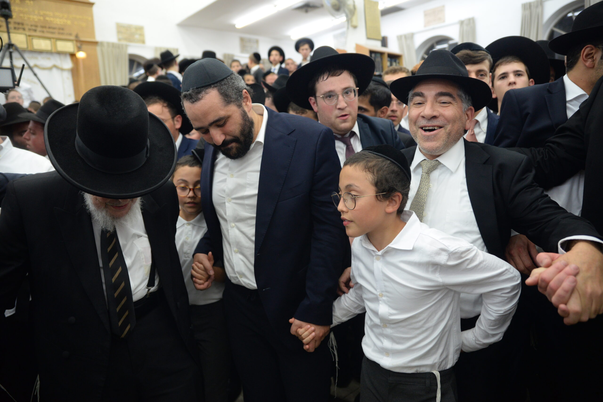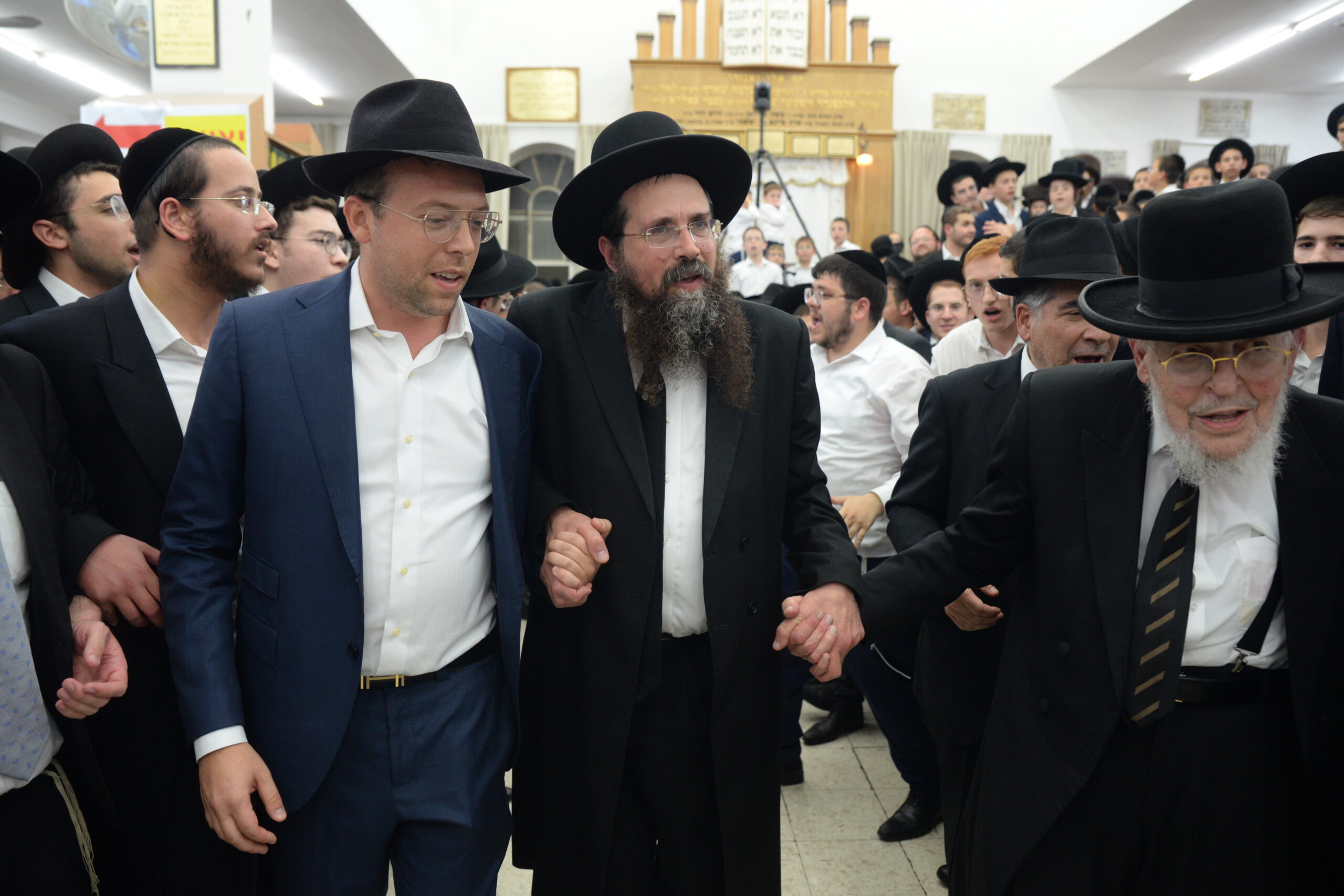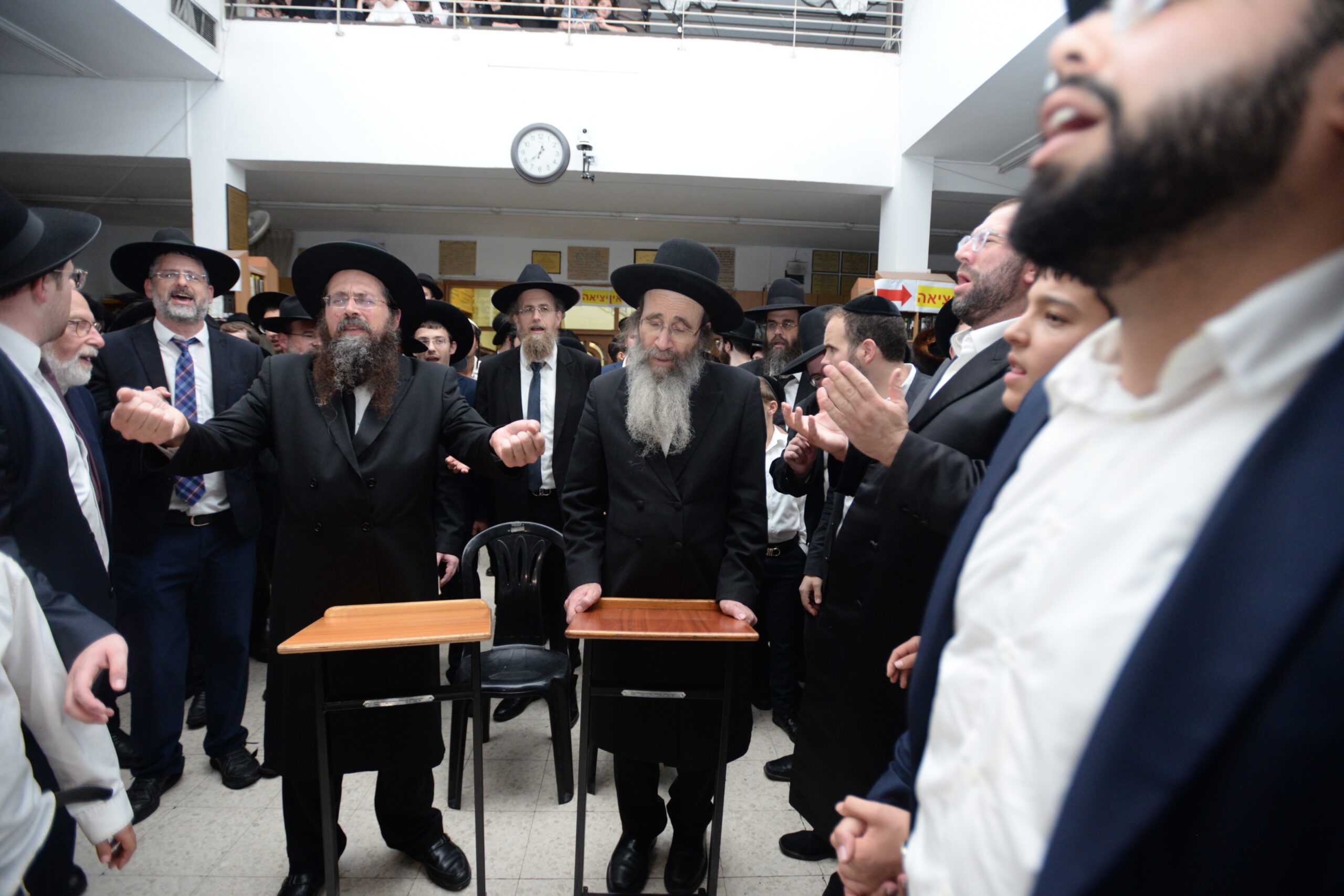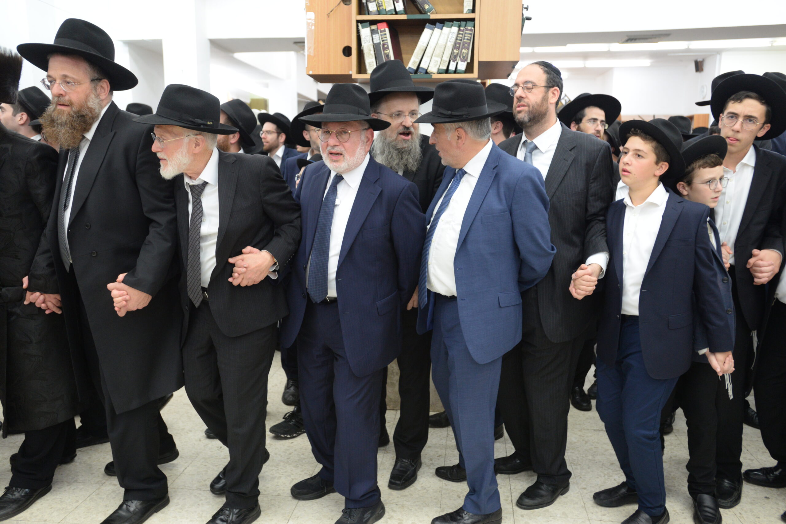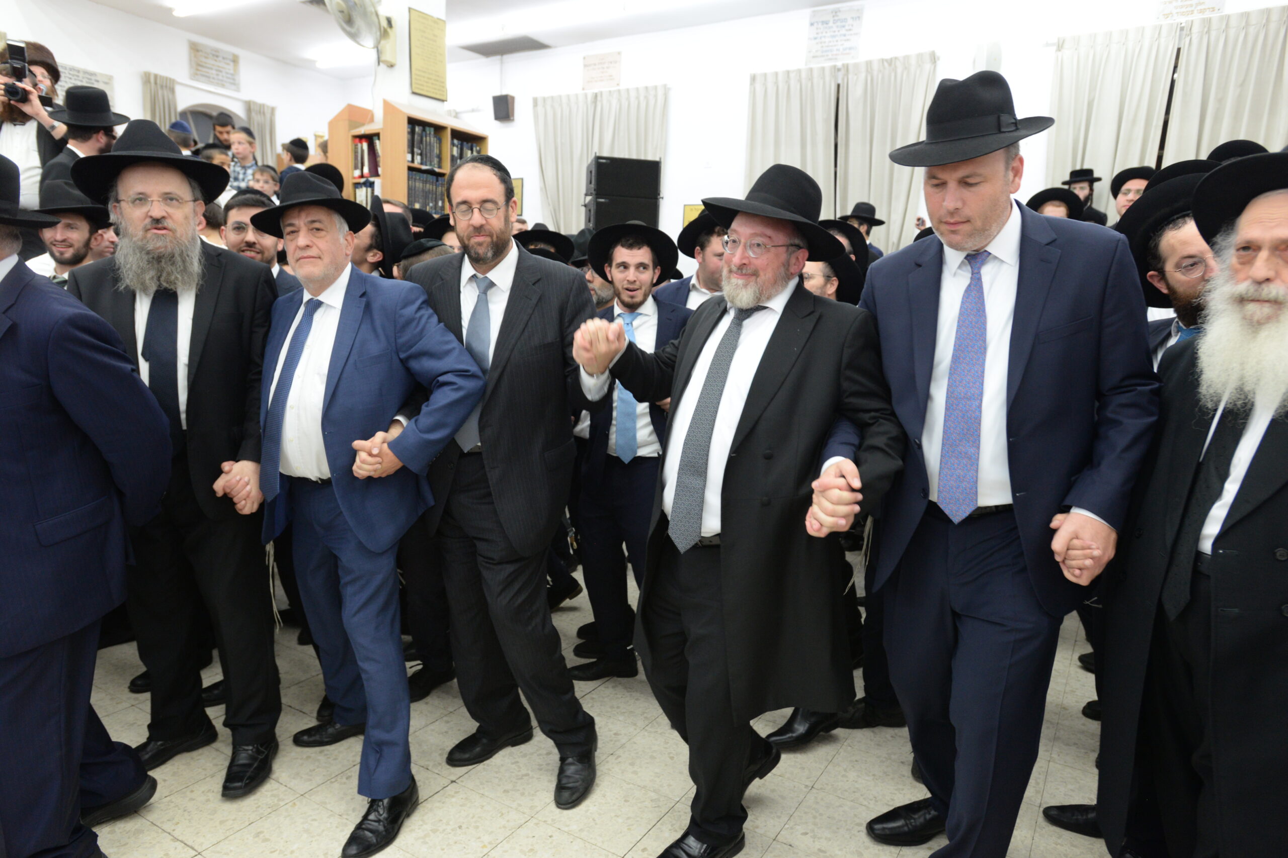 The Yeshiva’s Simchas Beis Hashoeva was held on Thursday, the second night of Chol Hamoed, beginning with music and dancing in the Mercazi Bais Medrash at 9:20. When the Roshei Yeshiva walked in about twenty minutes later, the olam broke out in tremendous excitement as they danced with their Rabbeim for several hours. Many visiting guests joined as well, taking the opportunity to wish the Roshei Yeshiva a Gut Yom Tov. All in all, there were around 9,000 people coming by throughout the night. The highlight of the event, as usual, was the kumzitz with inspiring songs of Yamim Noraim and Geulah at the end of the night, culminating in Leshana Haba’ah Bi’Yerushalayim.