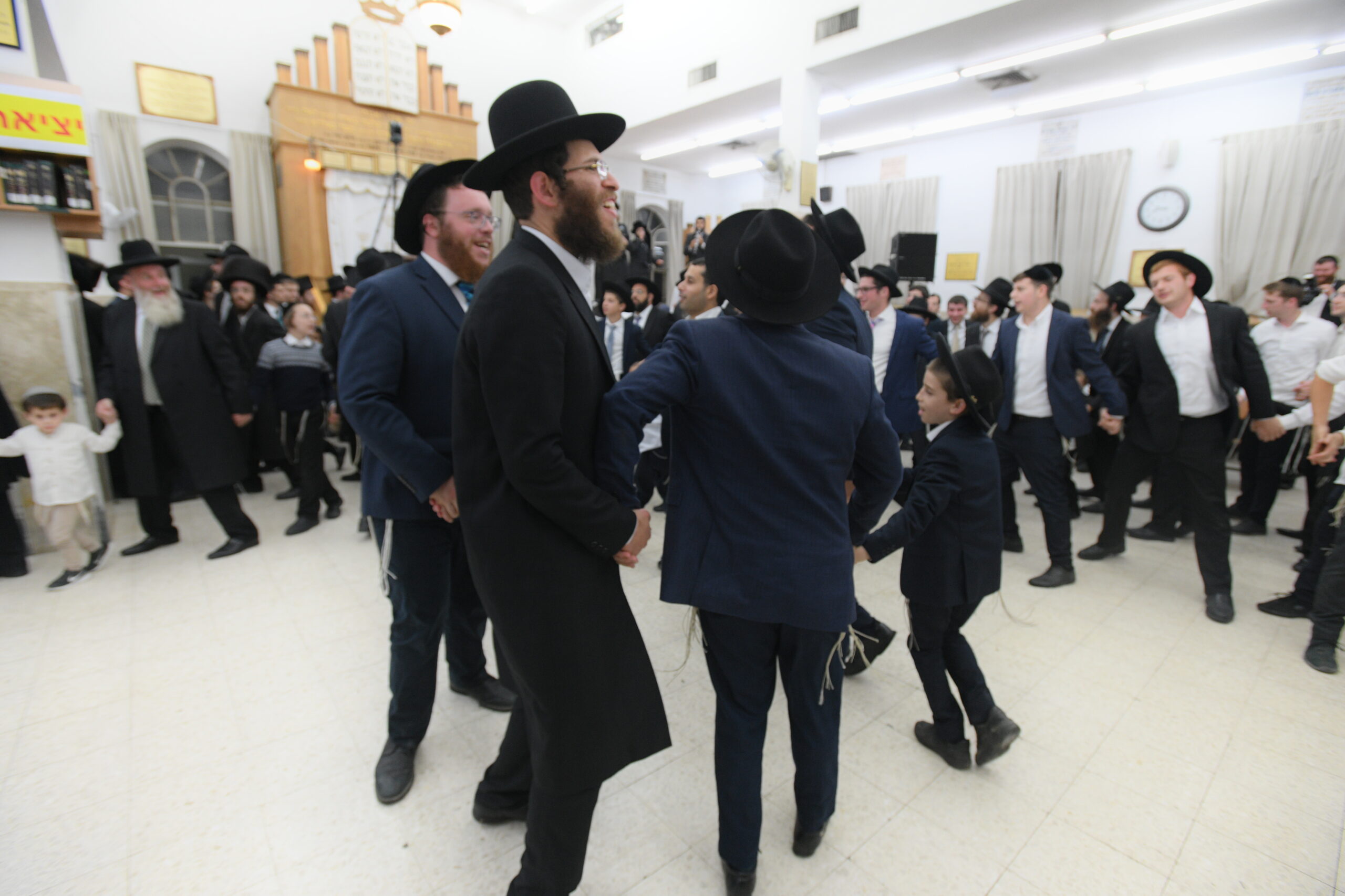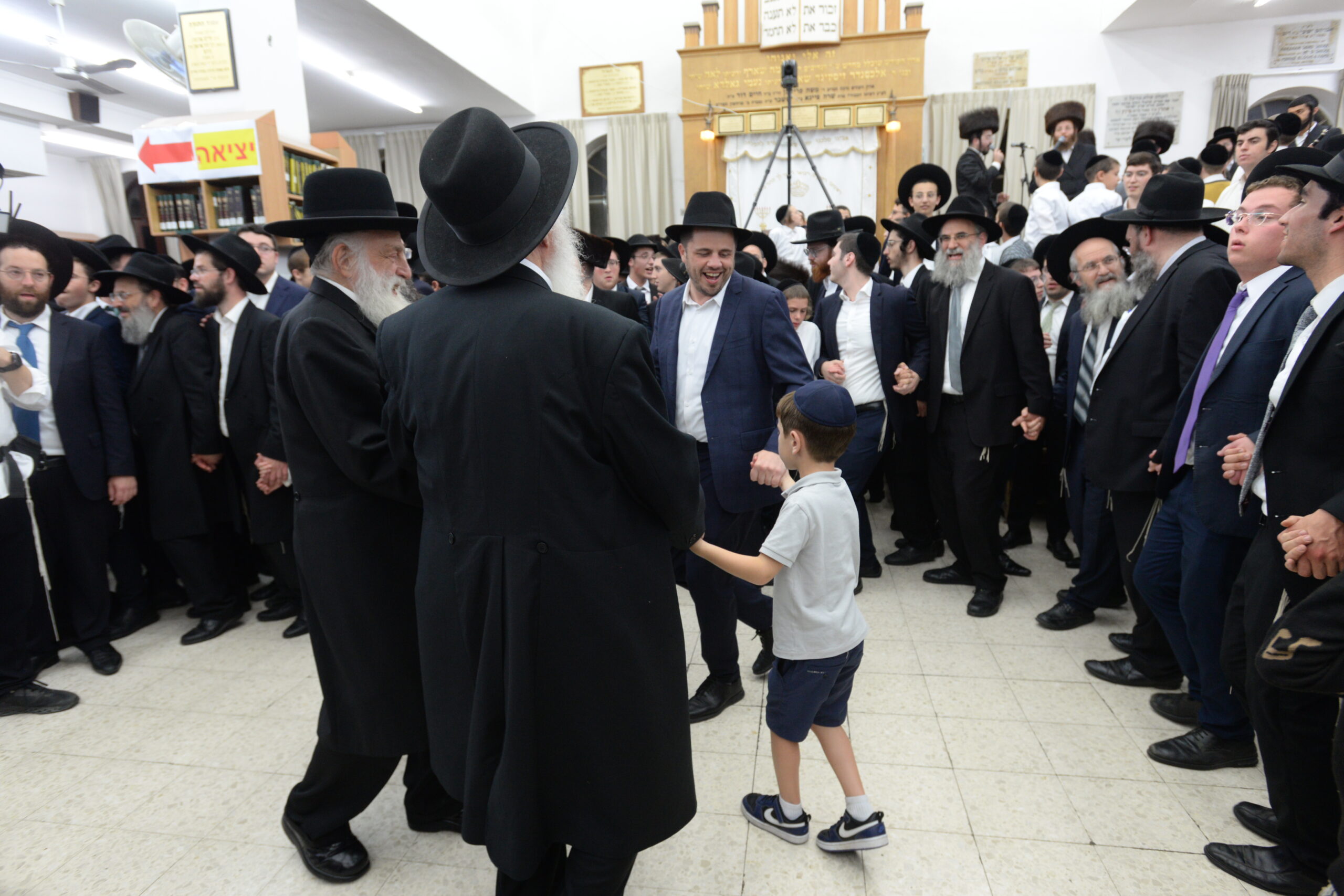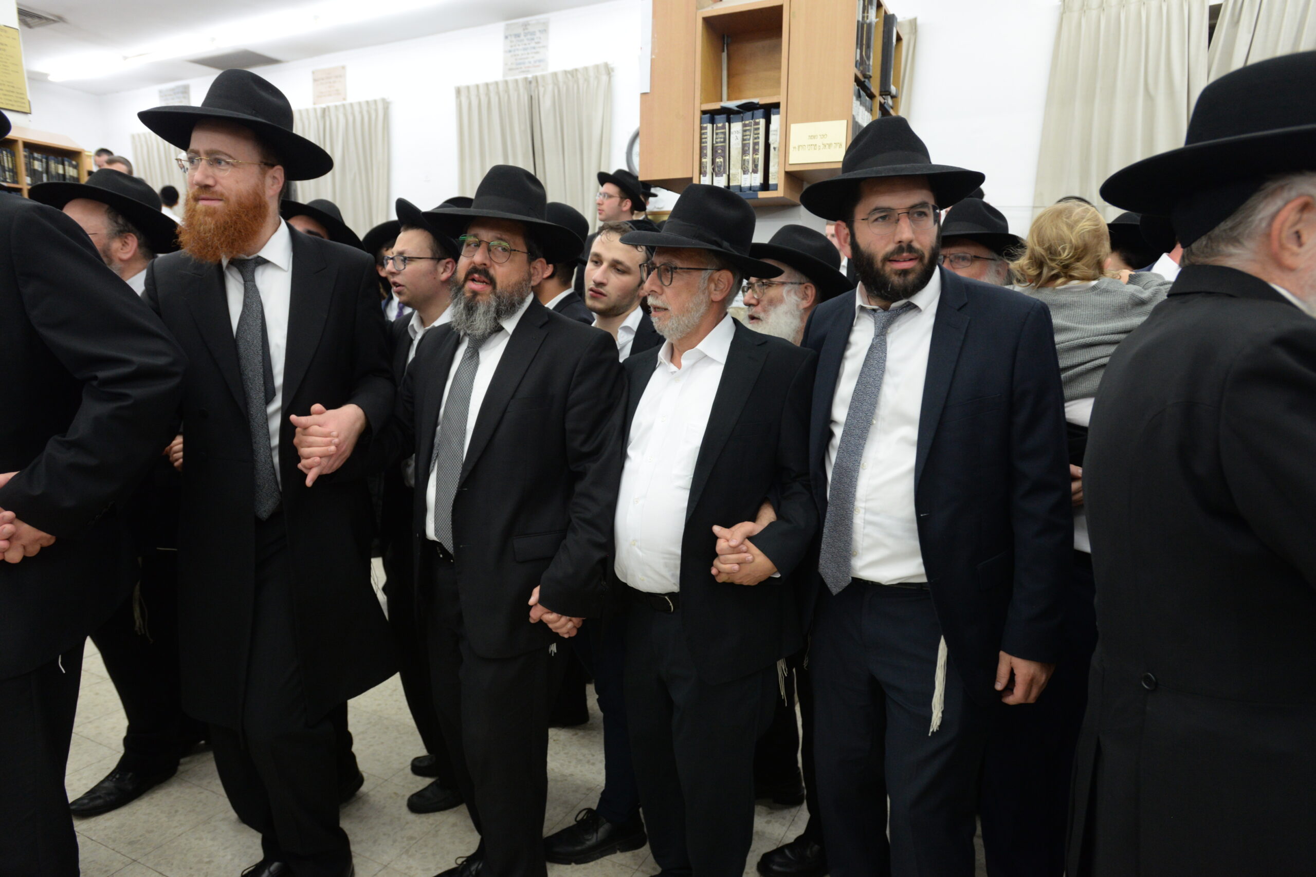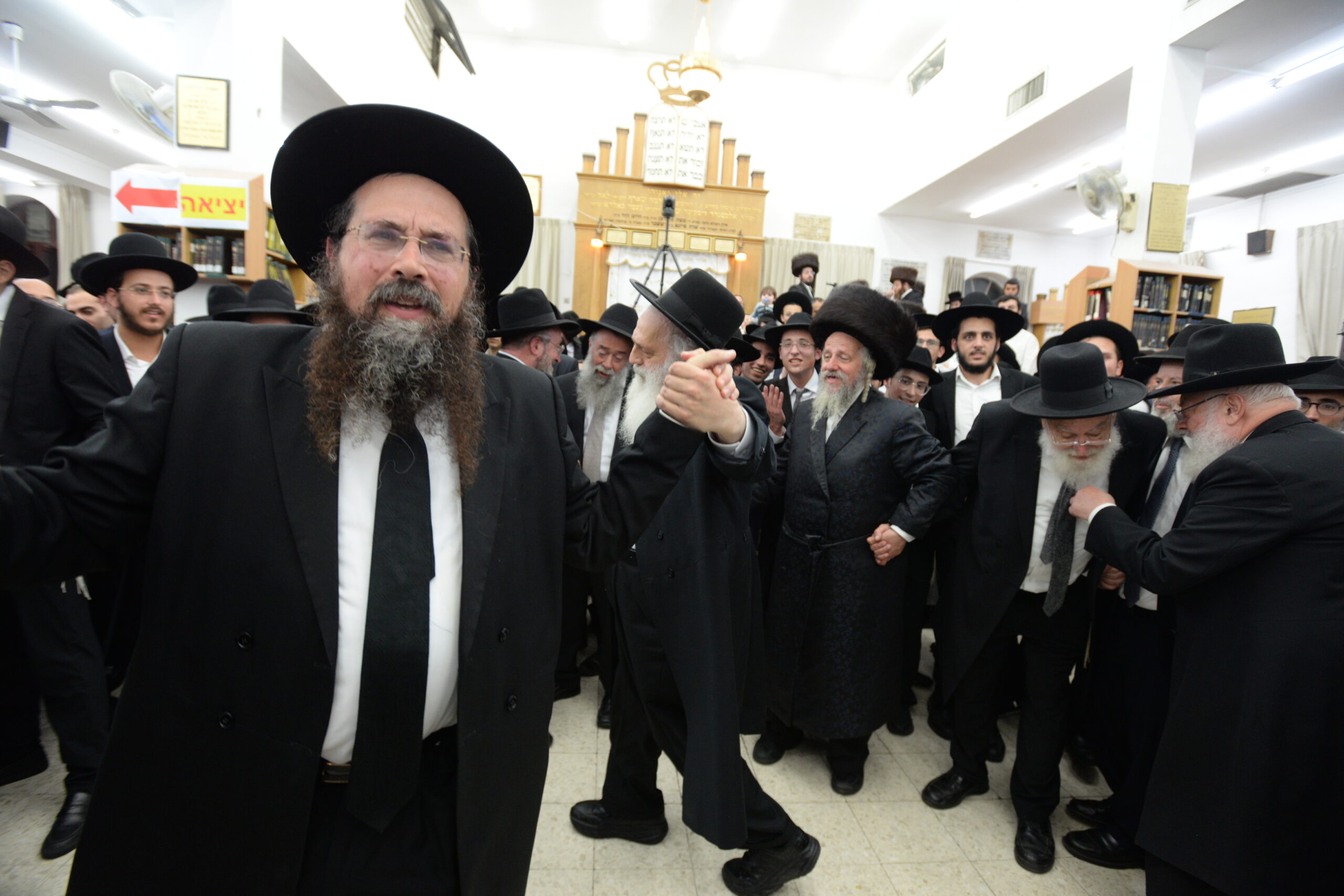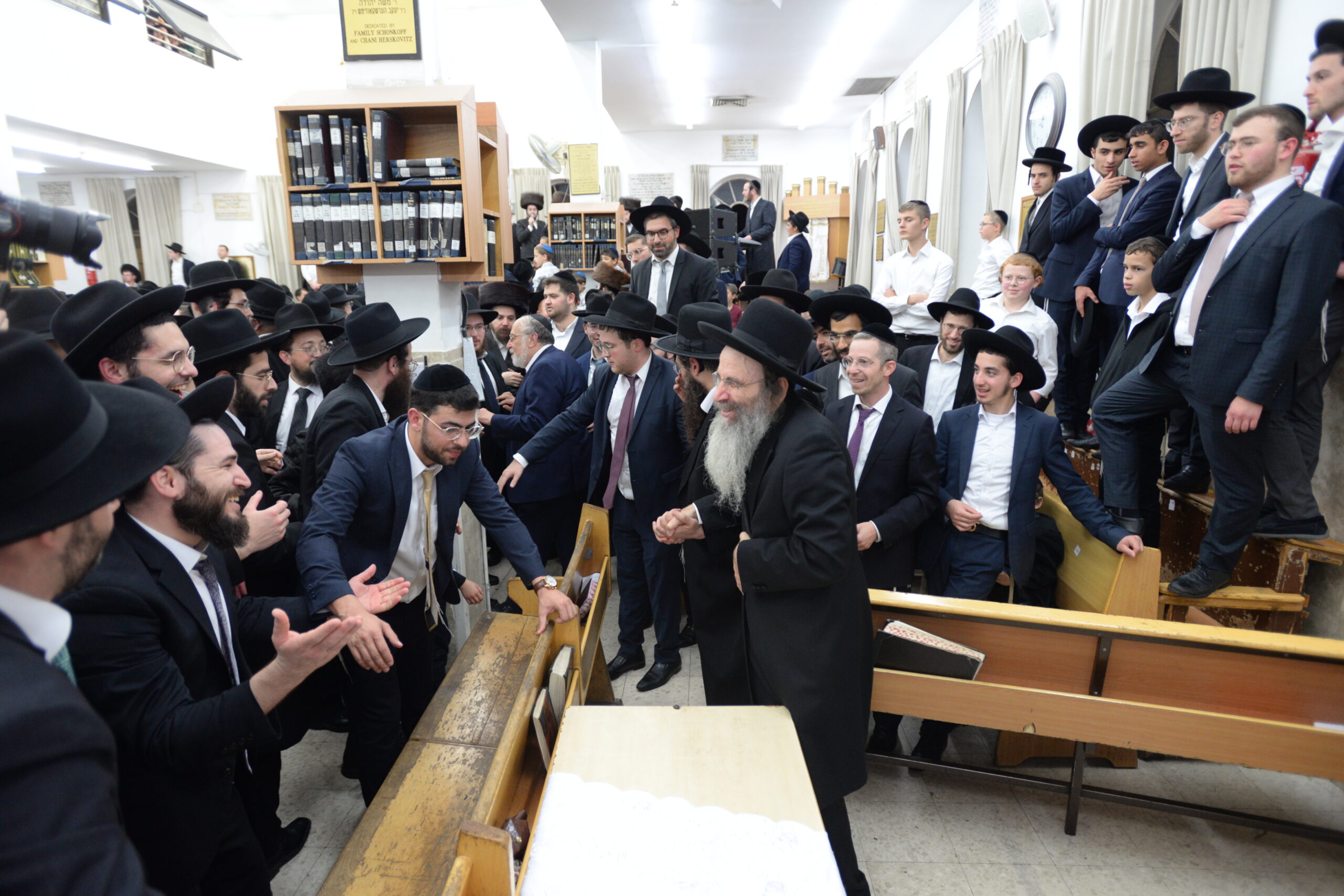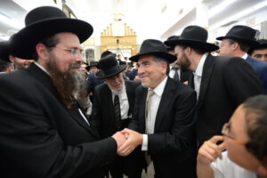 The Yeshiva’s Simchas Beis Hashoeva was held on Thursday, the second night of Chol Hamoed, beginning with music and dancing in the Mercazi Bais Medrash at 9:20. When the Roshei Yeshiva walked in about twenty minutes later, the olam broke out in tremendous excitement as they danced with their Rabbeim for several hours. Many visiting guests joined as well, taking the opportunity to wish the Roshei Yeshiva a Gut Yom Tov. All in all, there were around 9,000 people coming by throughout the night. The highlight of the event, as usual, was the kumzitz with inspiring songs of Yamim Noraim and Geulah at the end of the night, culminating in Leshana Haba’ah Bi’Yerushalayim.