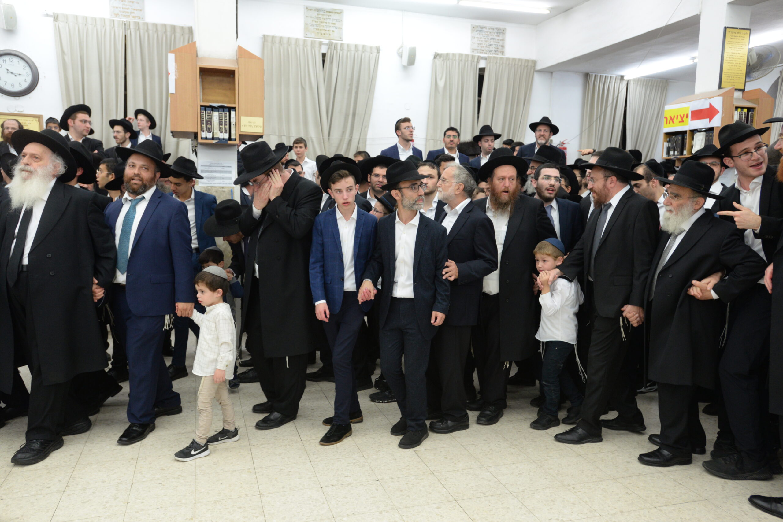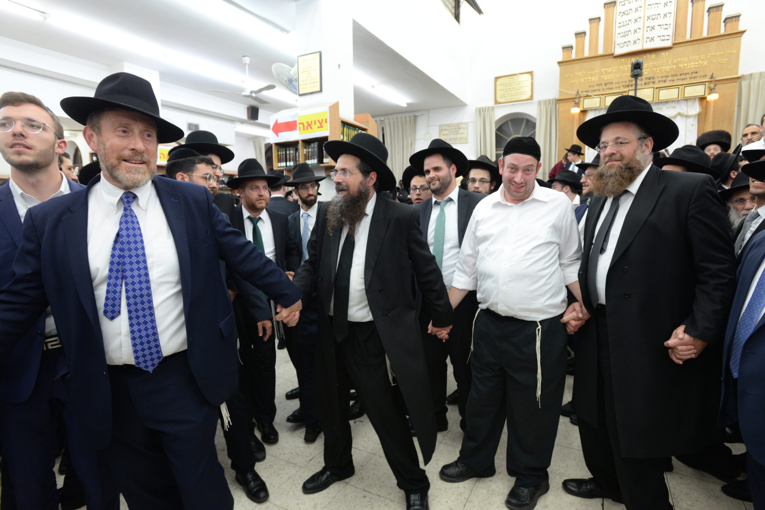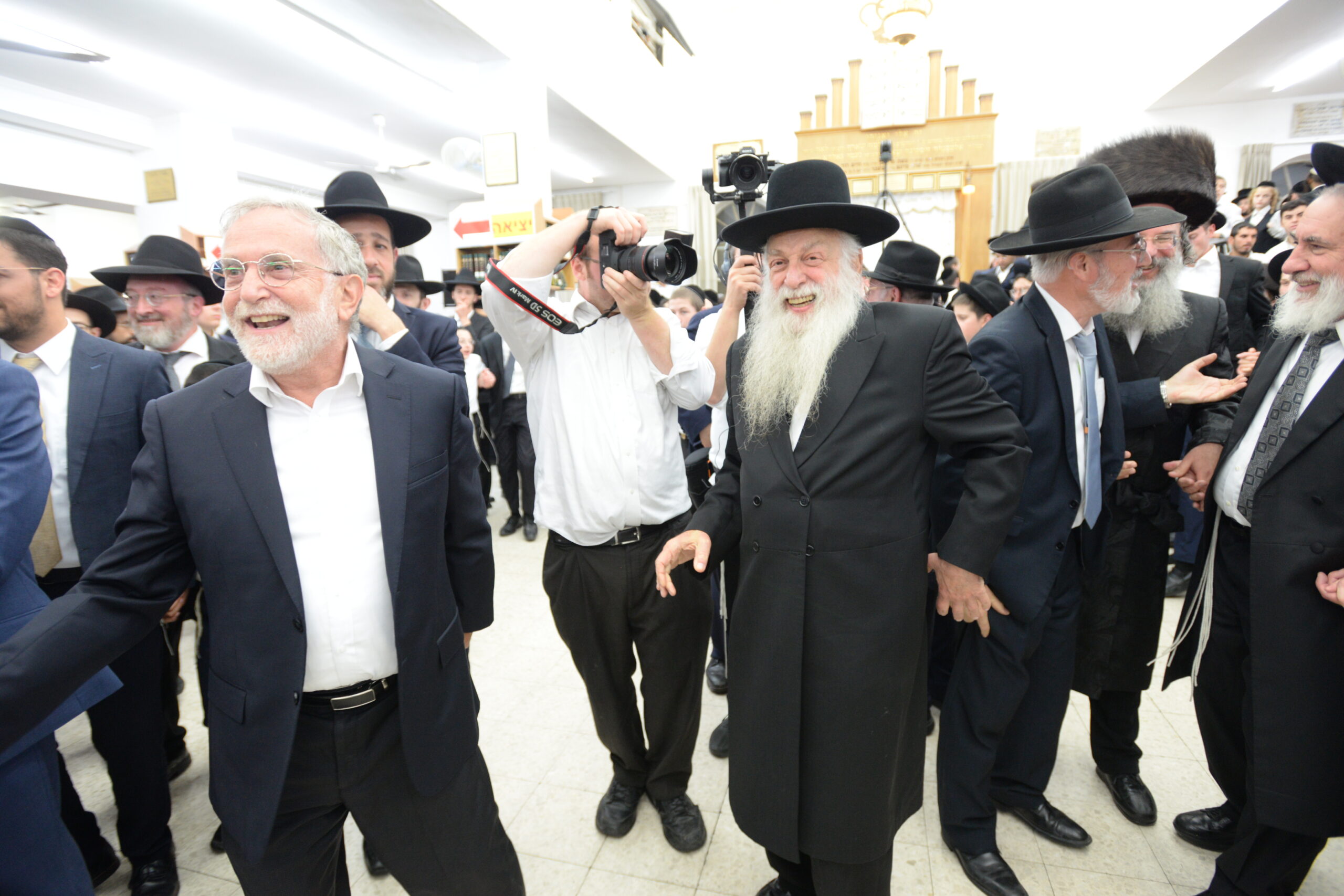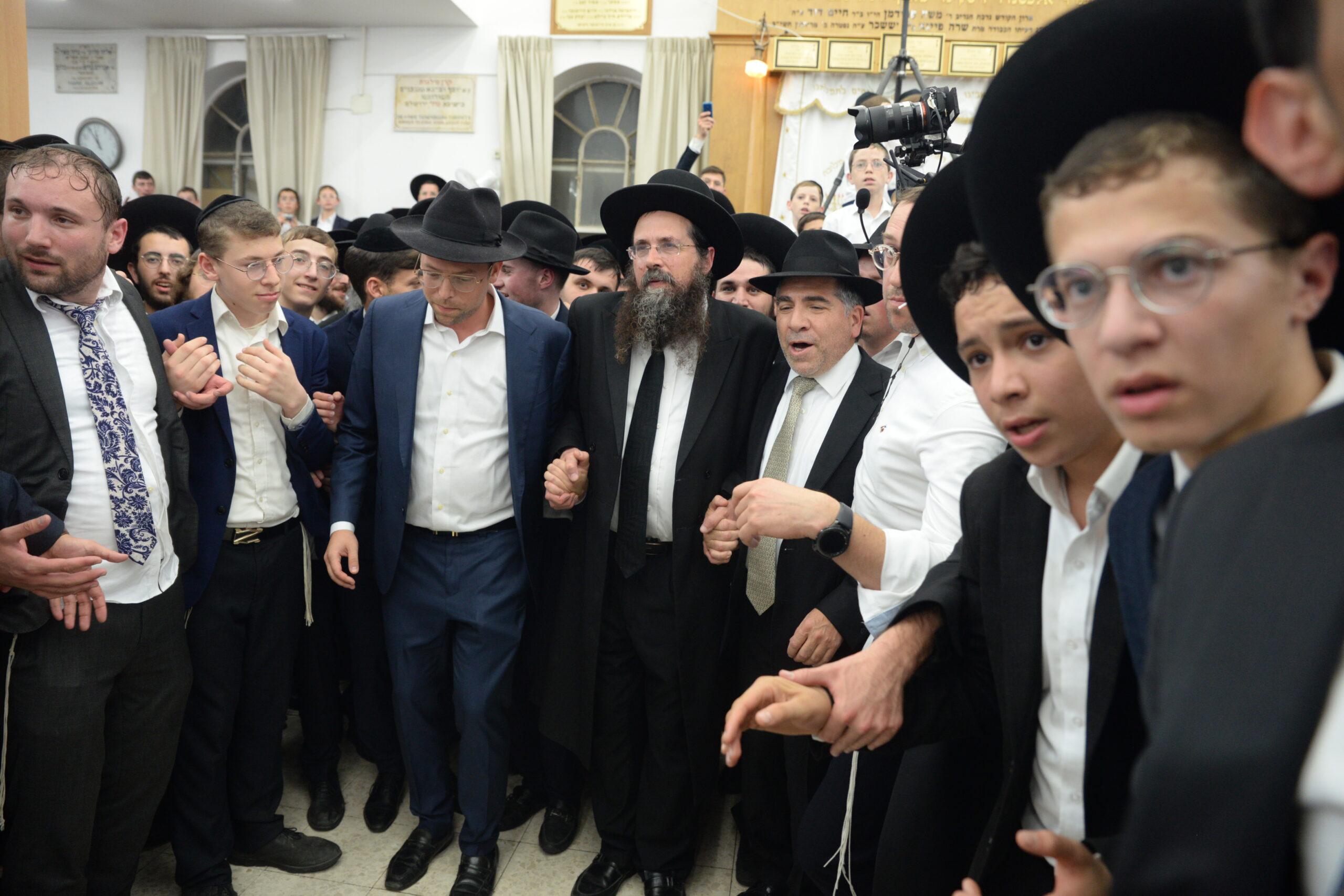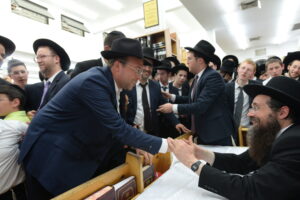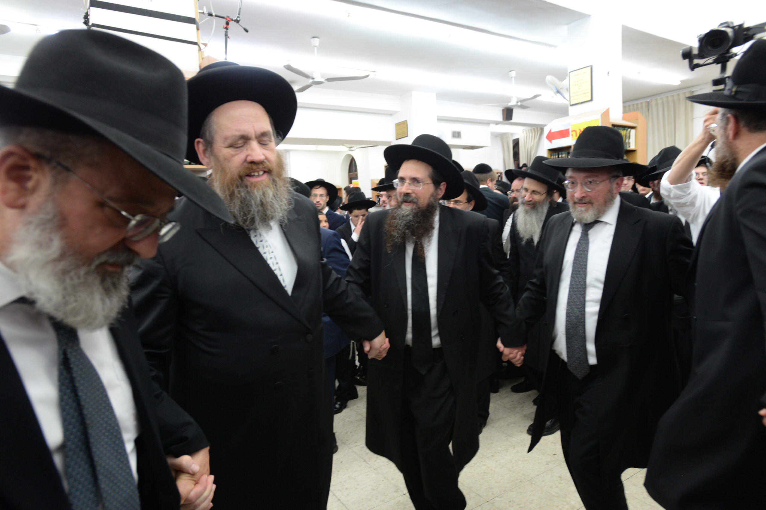 The Yeshiva’s Simchas Beis Hashoeva was held on Thursday, the second night of Chol Hamoed, beginning with music and dancing in the Mercazi Bais Medrash at 9:20. When the Roshei Yeshiva walked in about twenty minutes later, the olam broke out in tremendous excitement as they danced with their Rabbeim for several hours. Many visiting guests joined as well, taking the opportunity to wish the Roshei Yeshiva a Gut Yom Tov. All in all, there were around 9,000 people coming by throughout the night. The highlight of the event, as usual, was the kumzitz with inspiring songs of Yamim Noraim and Geulah at the end of the night, culminating in Leshana Haba’ah Bi’Yerushalayim.