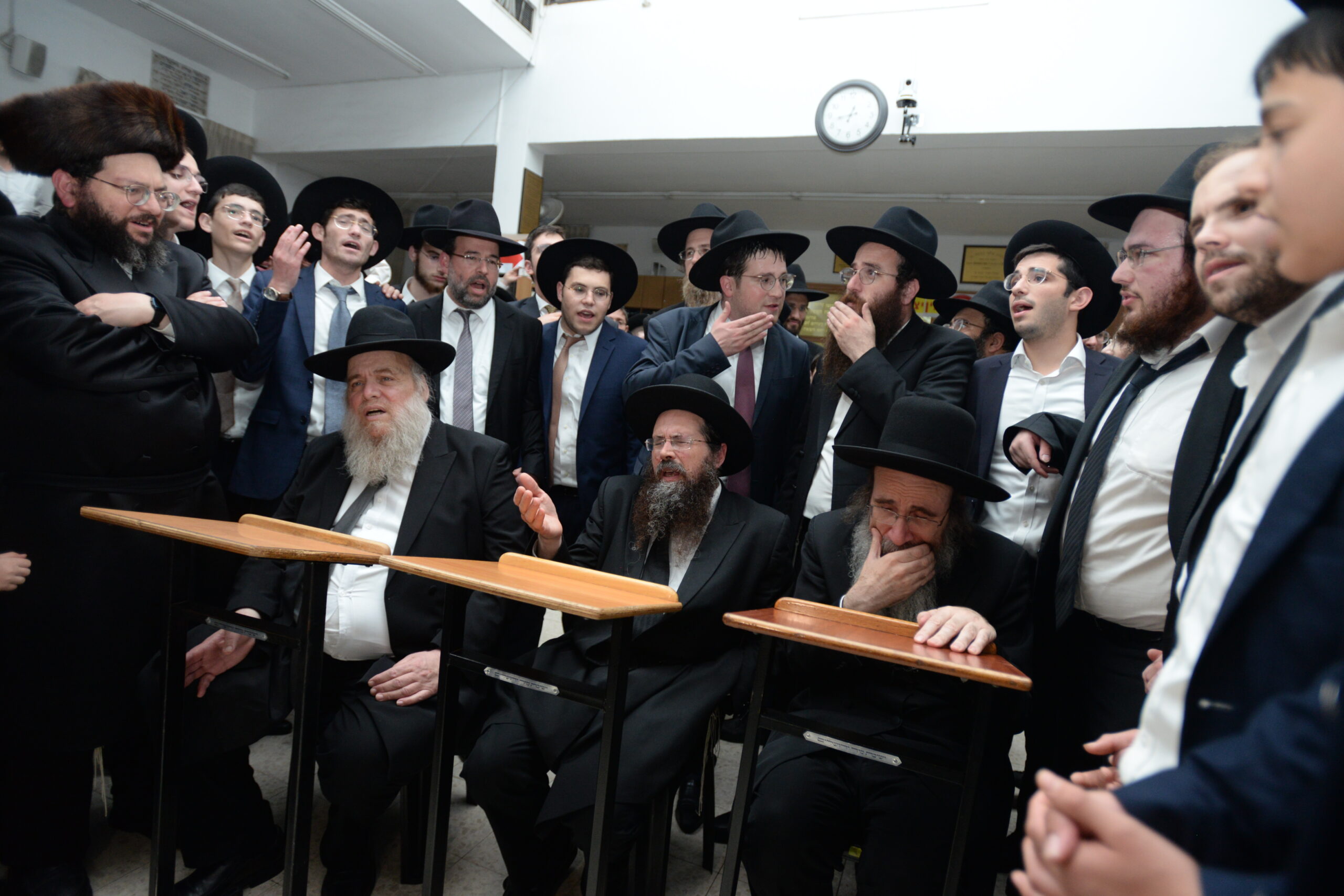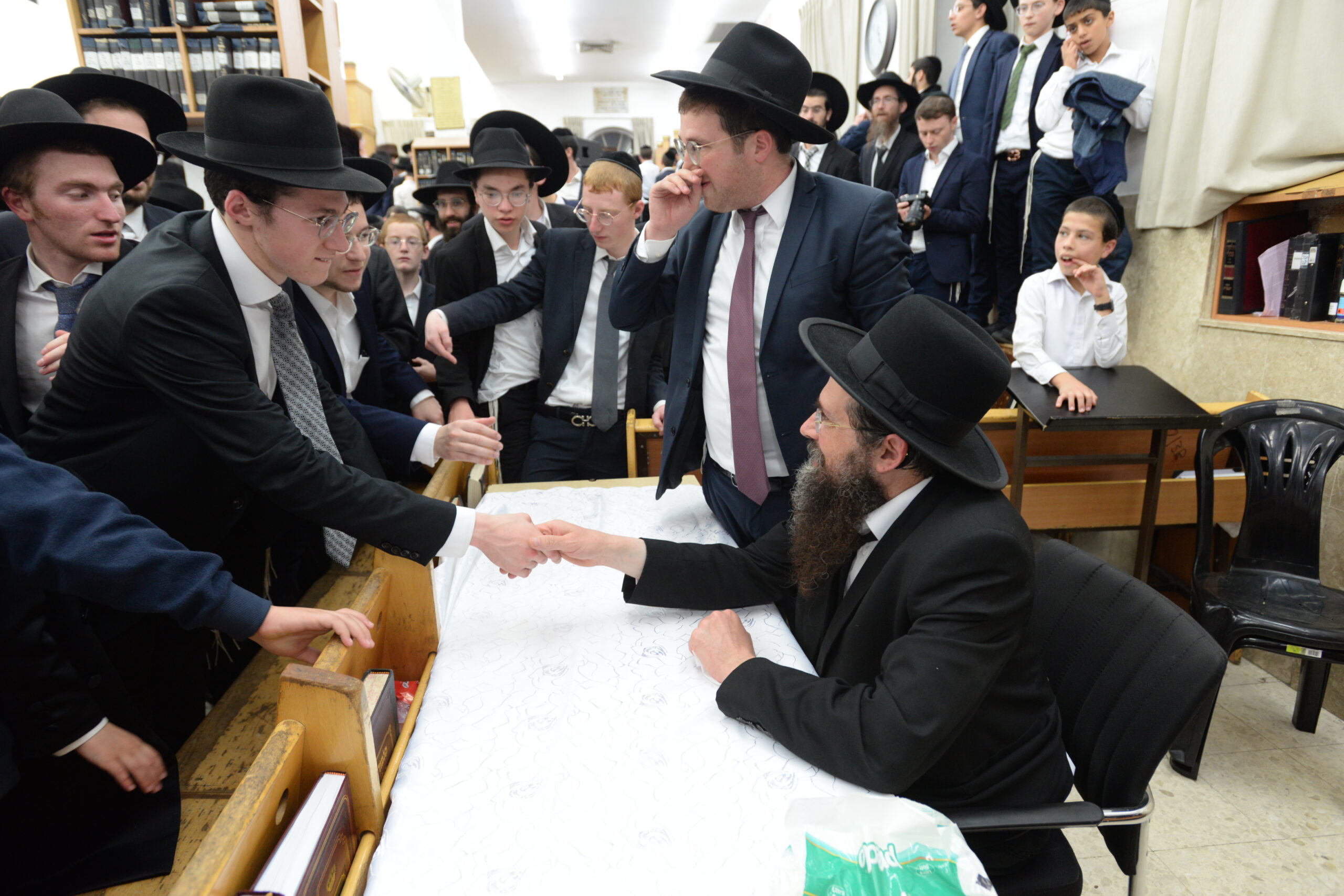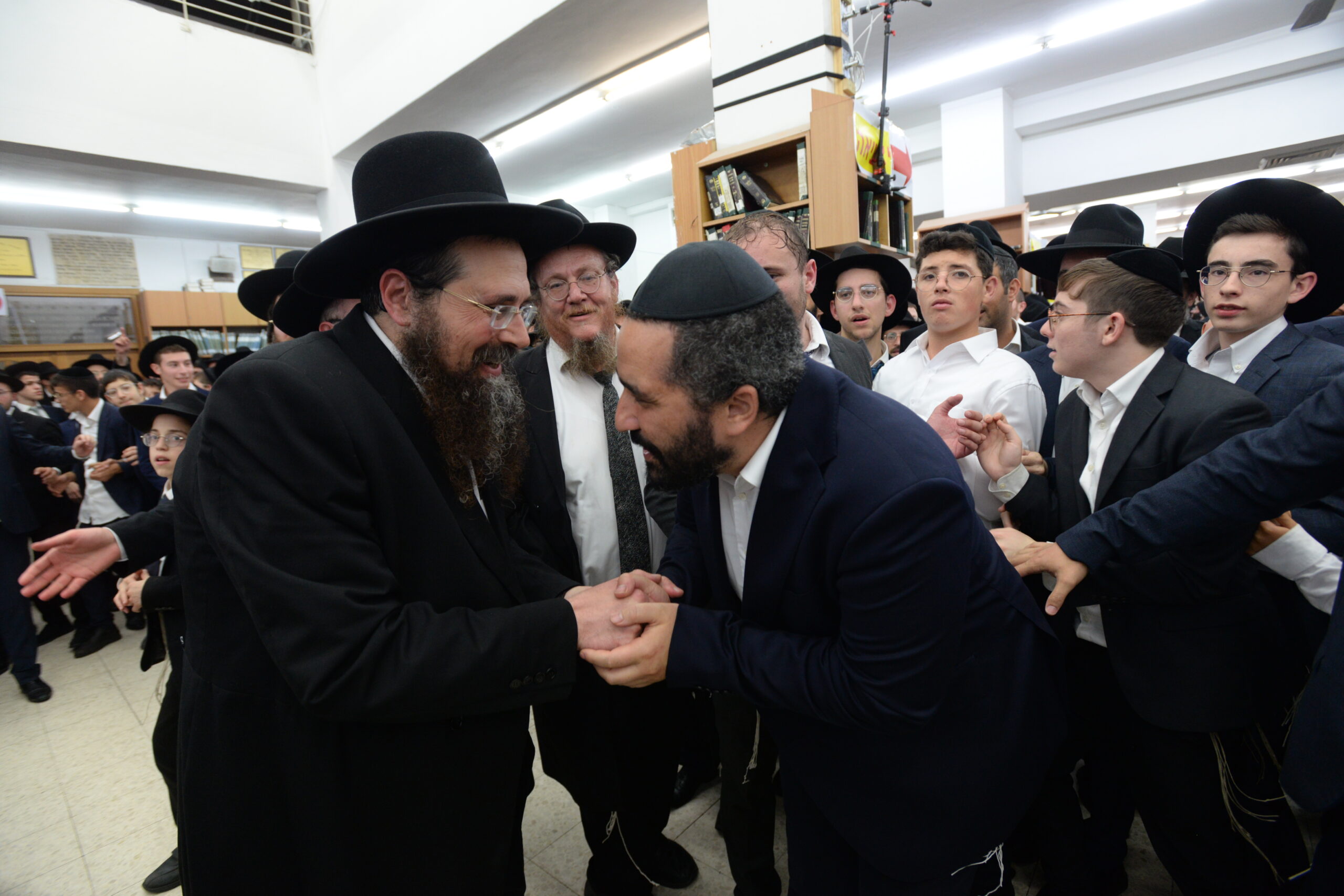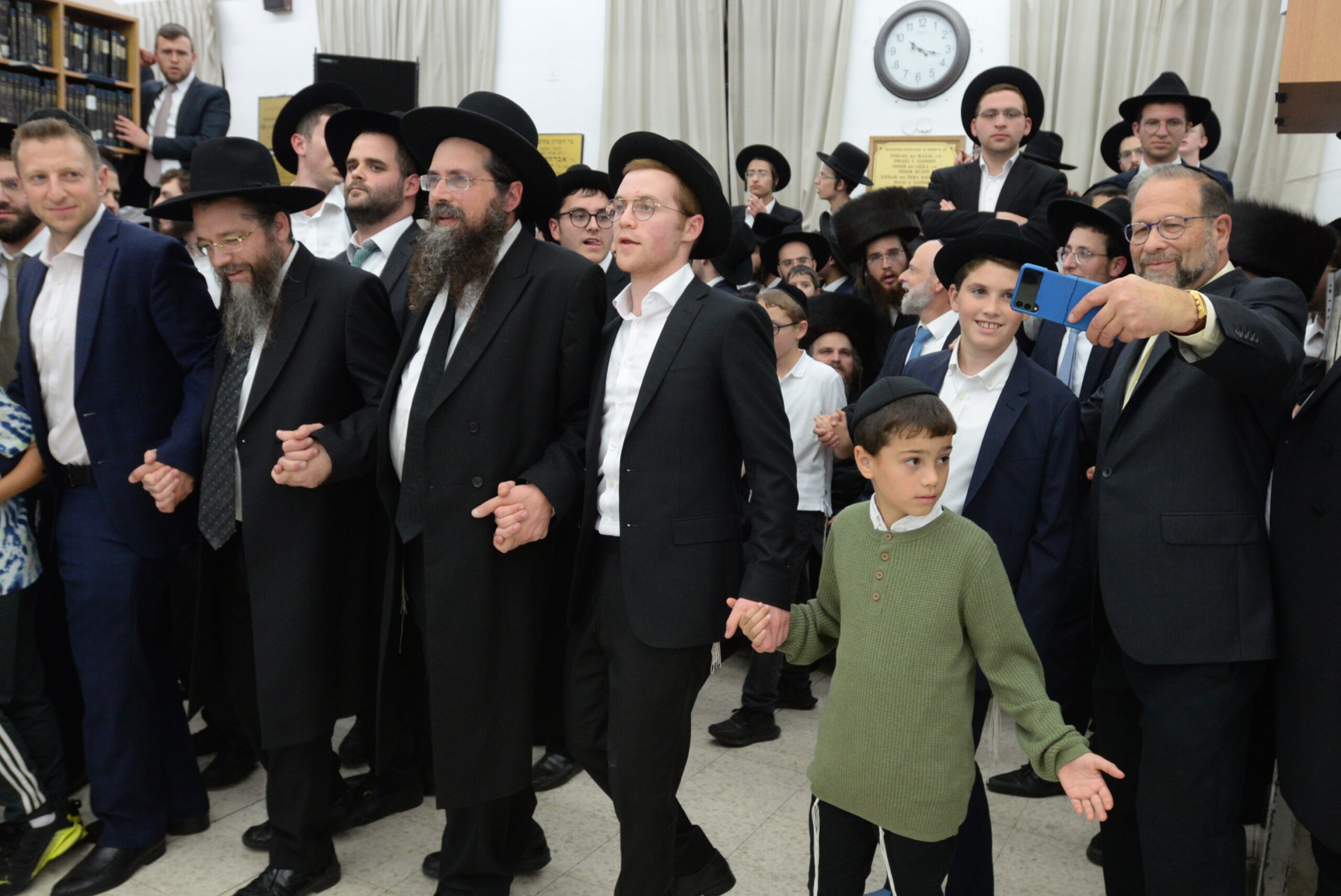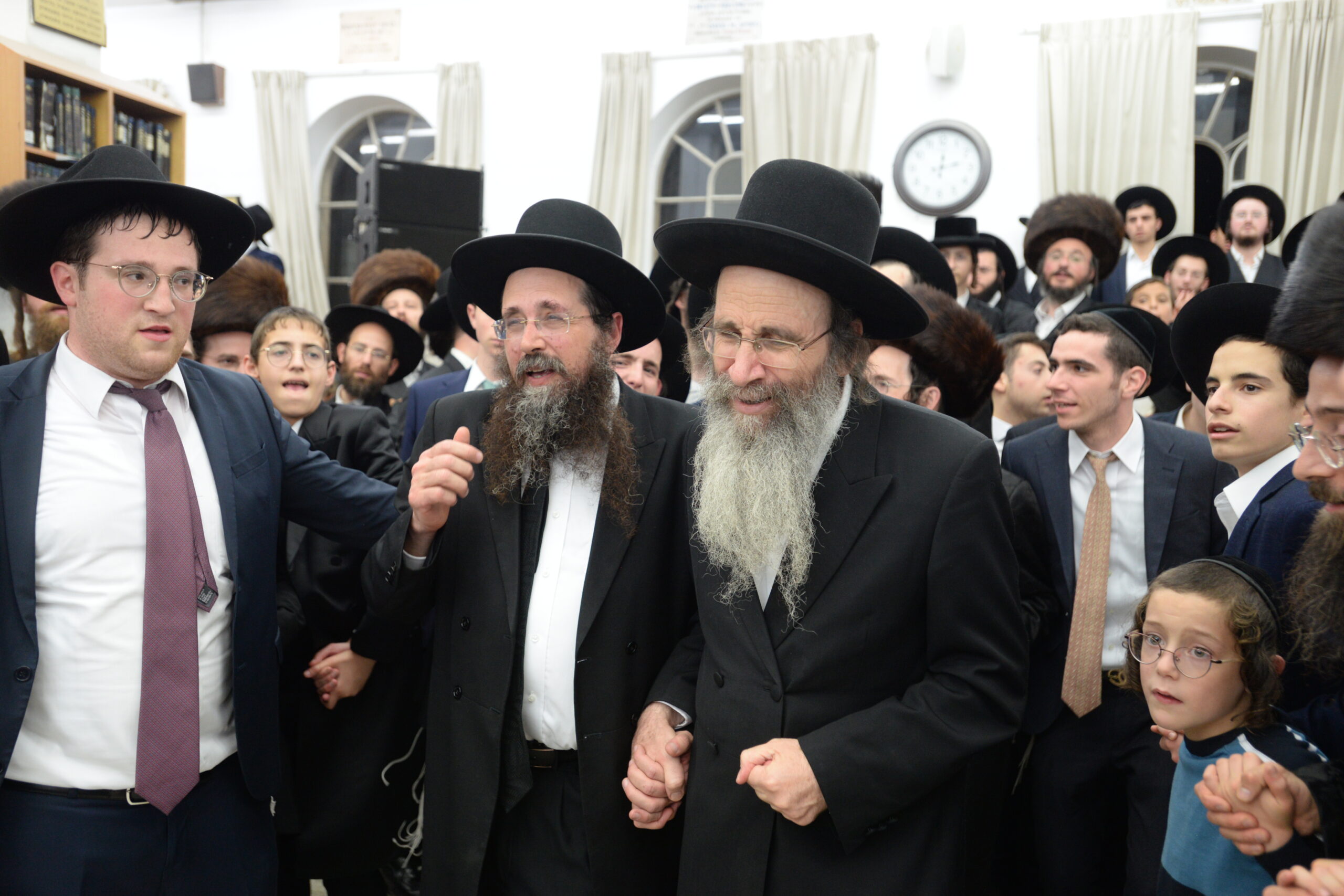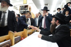 The Yeshiva’s Simchas Beis Hashoeva was held on Thursday, the second night of Chol Hamoed, beginning with music and dancing in the Mercazi Bais Medrash at 9:20. When the Roshei Yeshiva walked in about twenty minutes later, the olam broke out in tremendous excitement as they danced with their Rabbeim for several hours. Many visiting guests joined as well, taking the opportunity to wish the Roshei Yeshiva a Gut Yom Tov. All in all, there were around 9,000 people coming by throughout the night. The highlight of the event, as usual, was the kumzitz with inspiring songs of Yamim Noraim and Geulah at the end of the night, culminating in Leshana Haba’ah Bi’Yerushalayim.