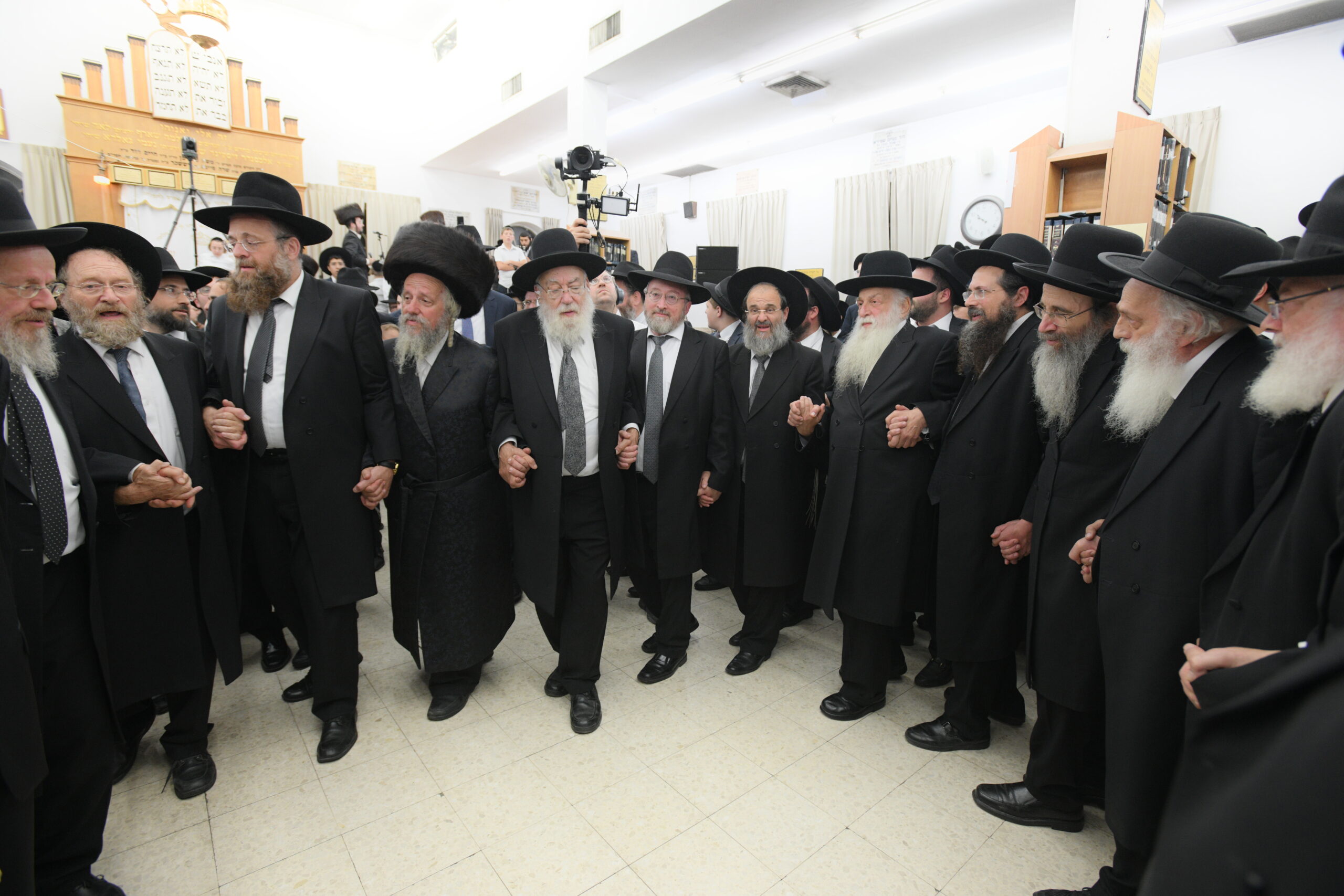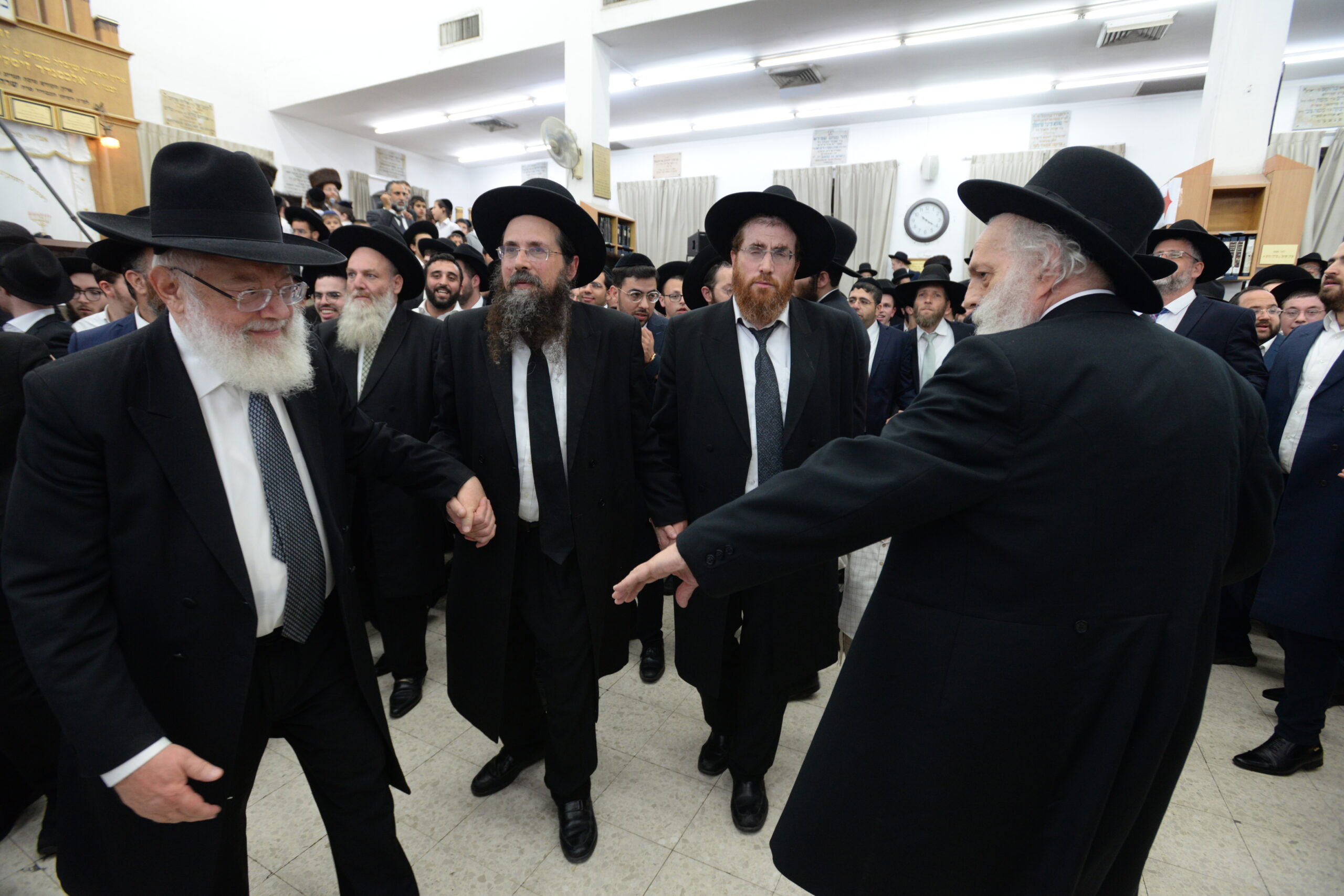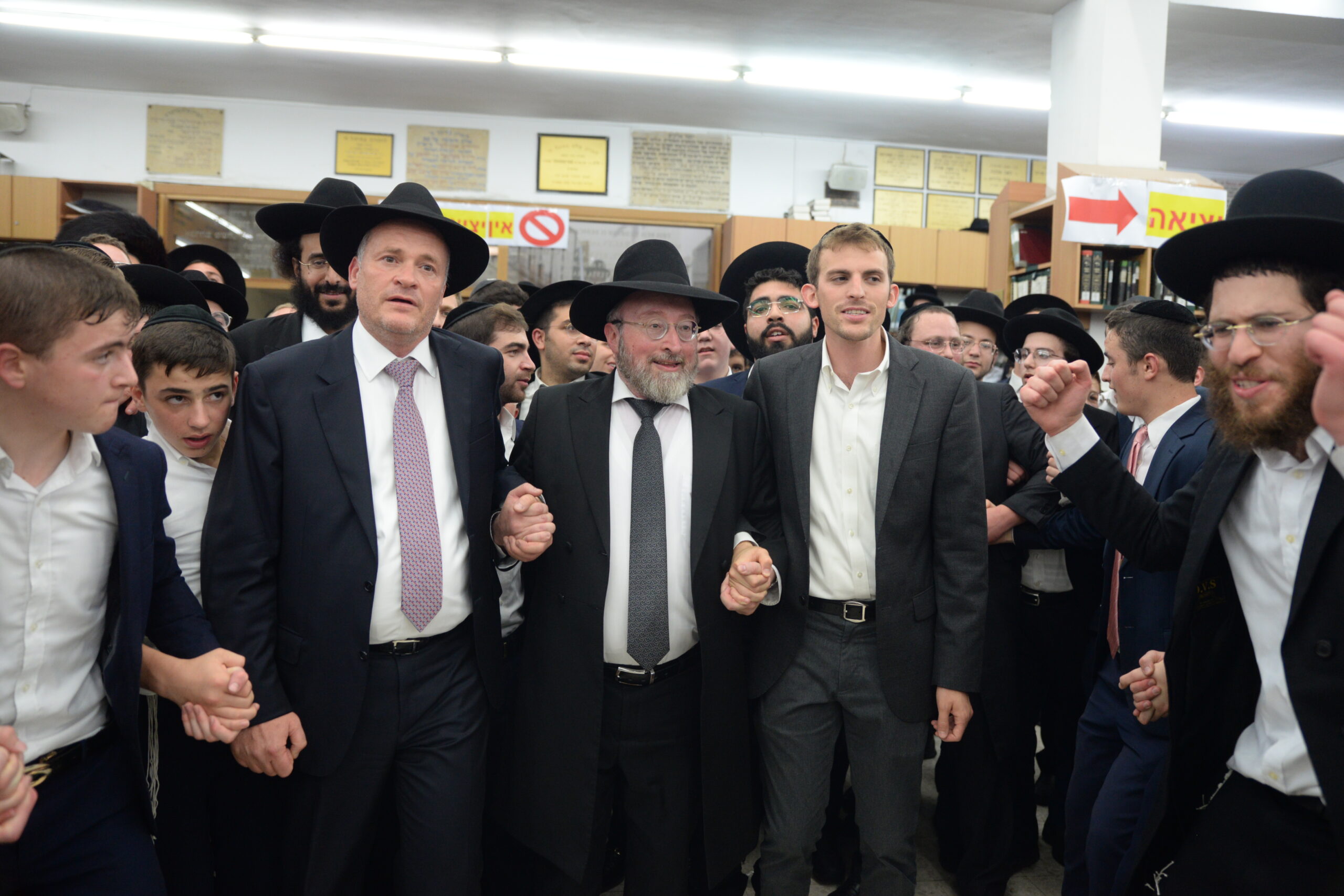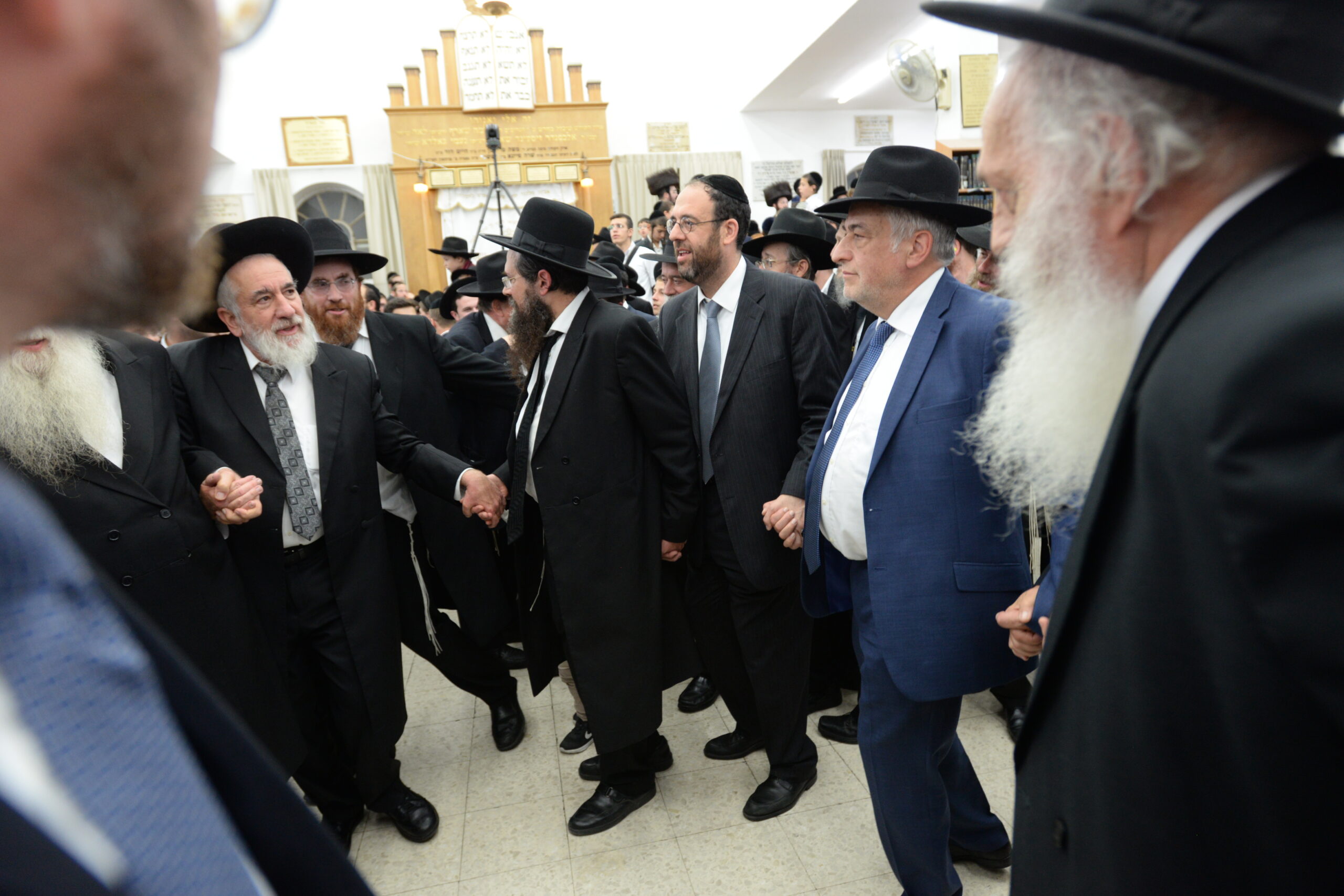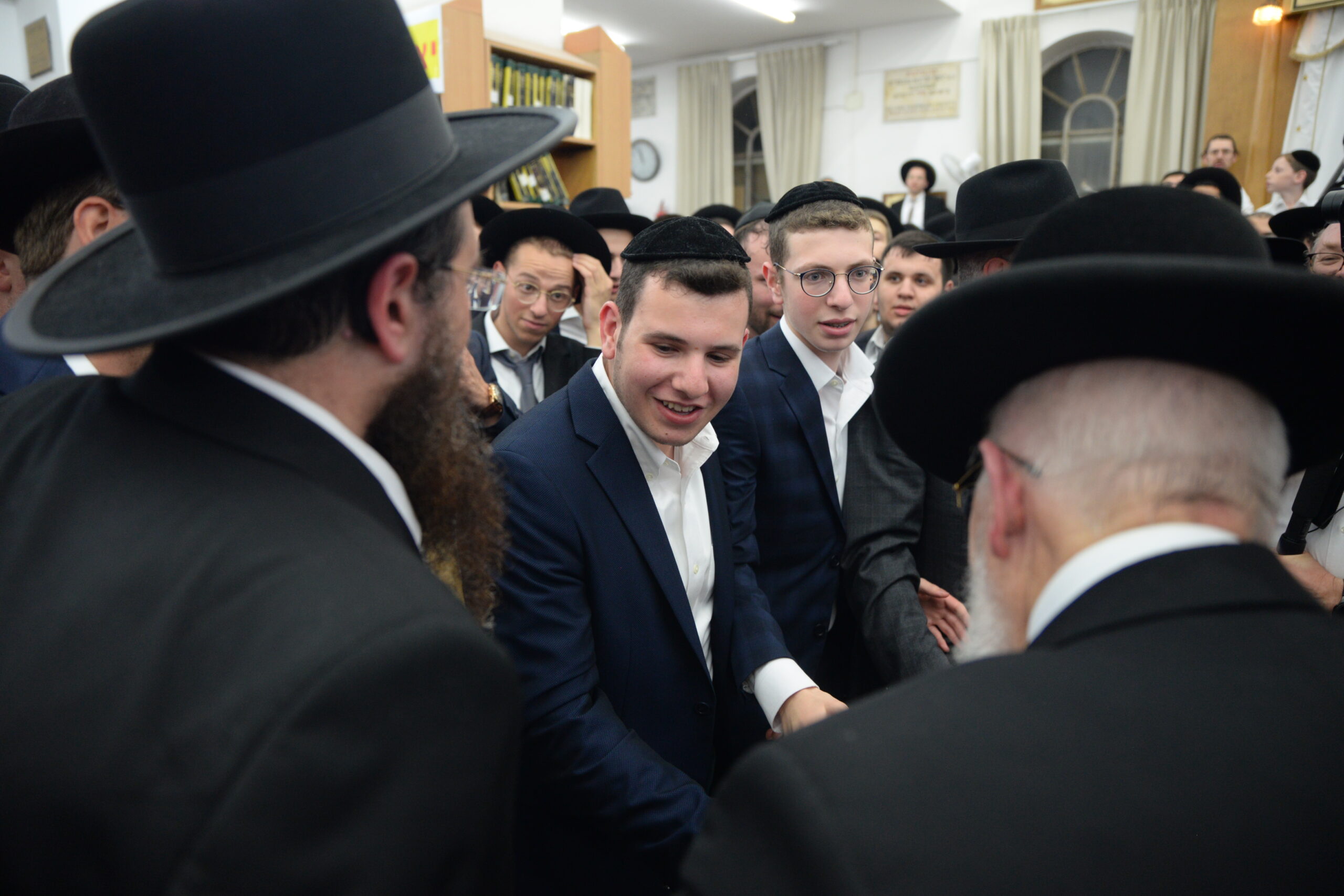 The Yeshiva’s Simchas Beis Hashoeva was held on Thursday, the second night of Chol Hamoed, beginning with music and dancing in the Mercazi Bais Medrash at 9:20. When the Roshei Yeshiva walked in about twenty minutes later, the olam broke out in tremendous excitement as they danced with their Rabbeim for several hours. Many visiting guests joined as well, taking the opportunity to wish the Roshei Yeshiva a Gut Yom Tov. All in all, there were around 9,000 people coming by throughout the night. The highlight of the event, as usual, was the kumzitz with inspiring songs of Yamim Noraim and Geulah at the end of the night, culminating in Leshana Haba’ah Bi’Yerushalayim.