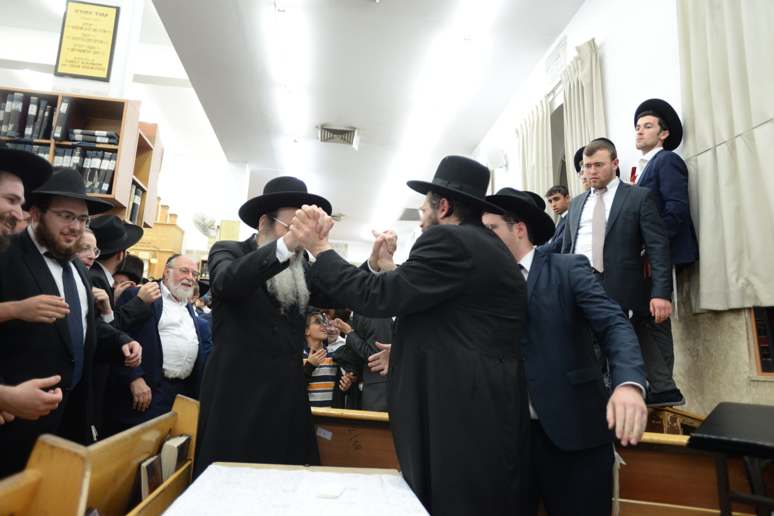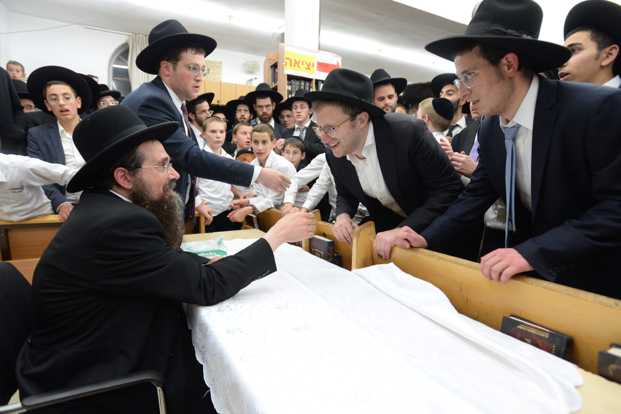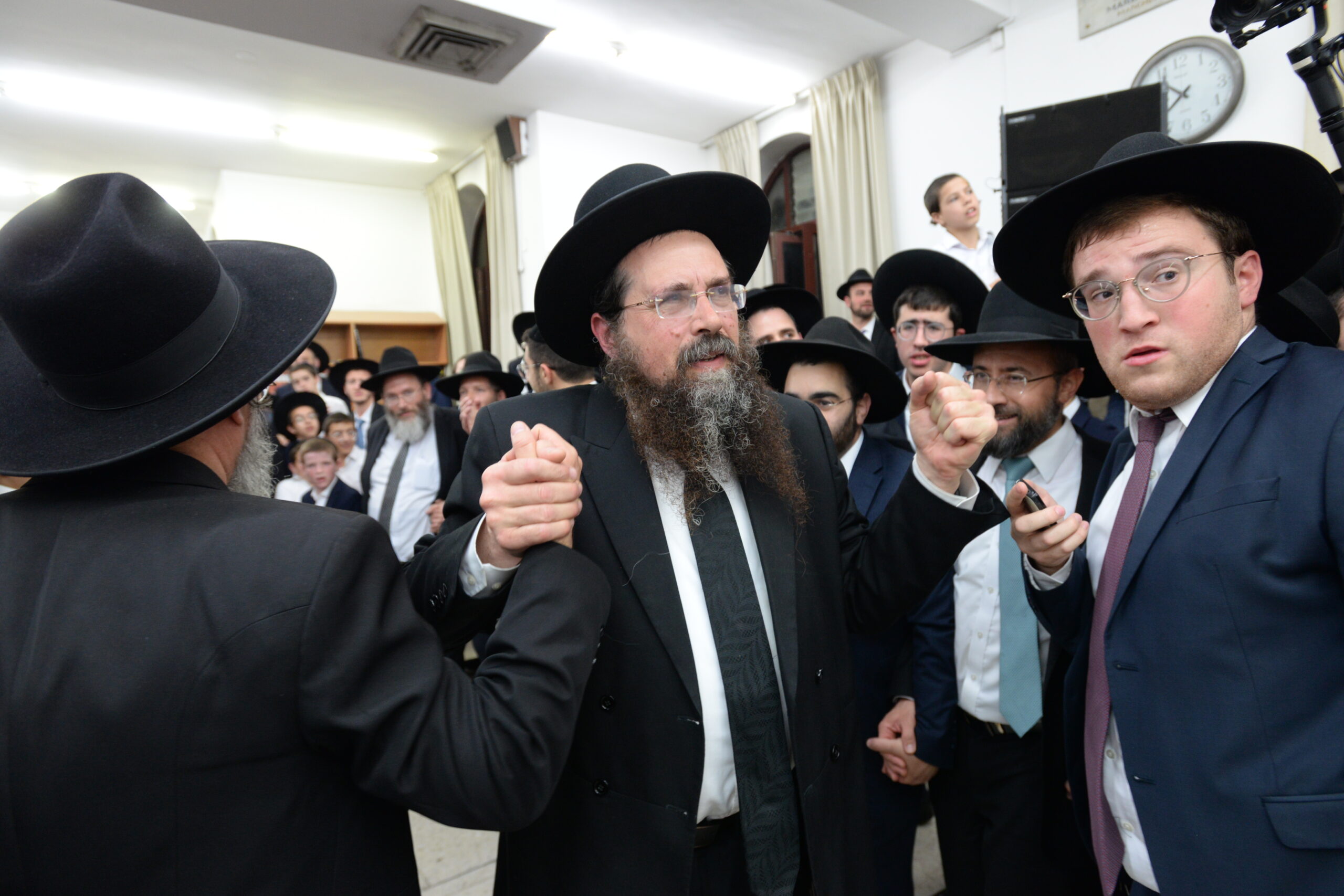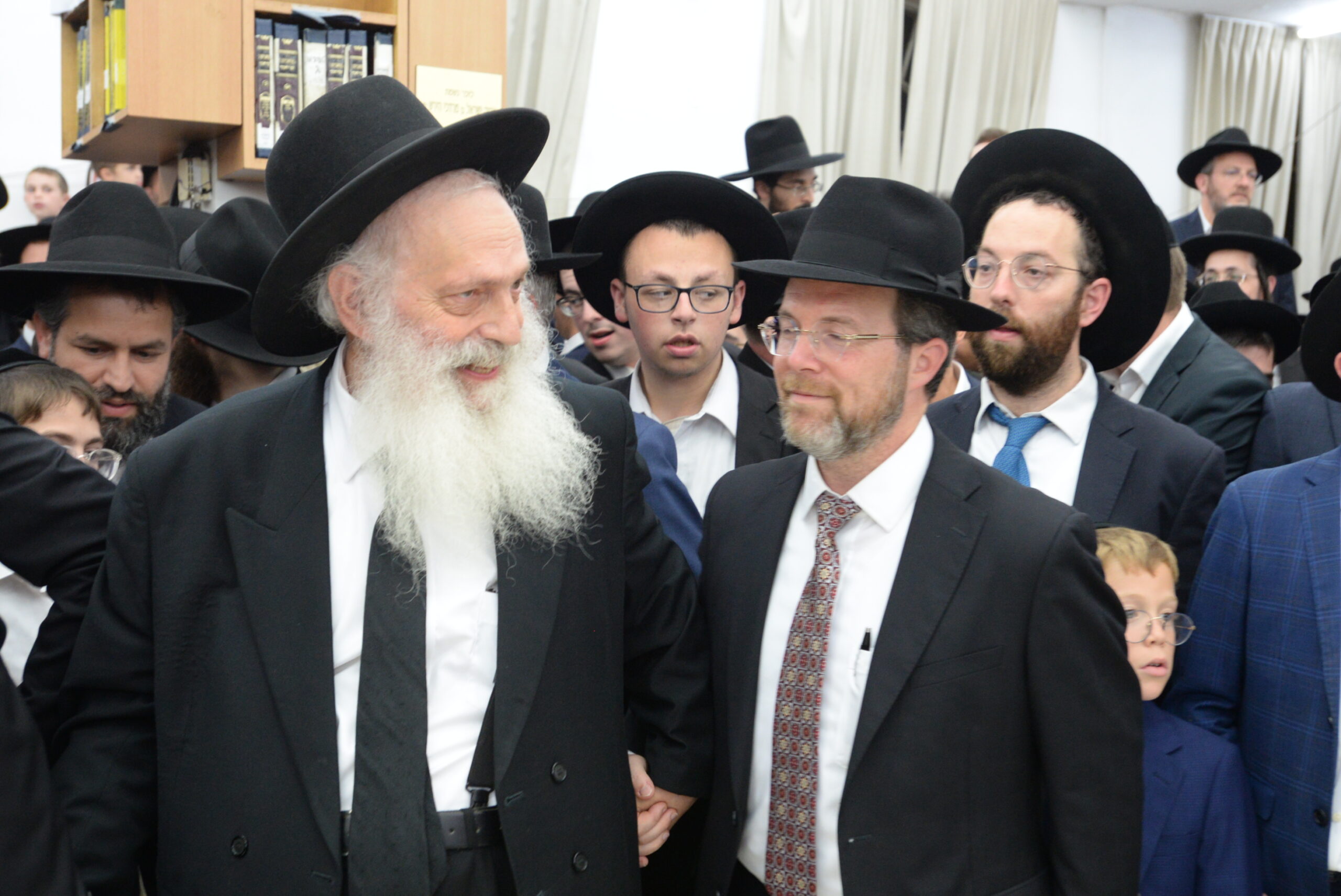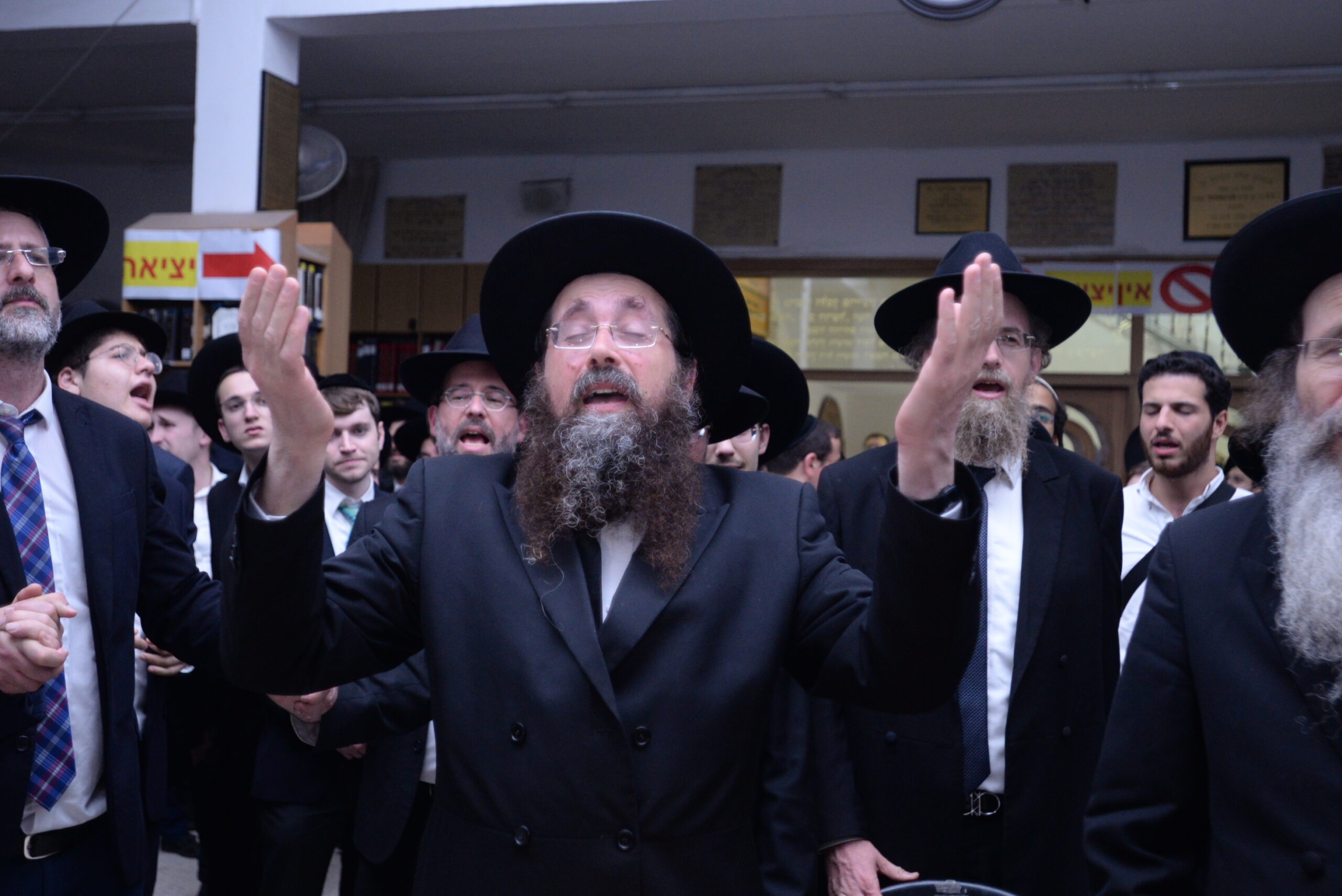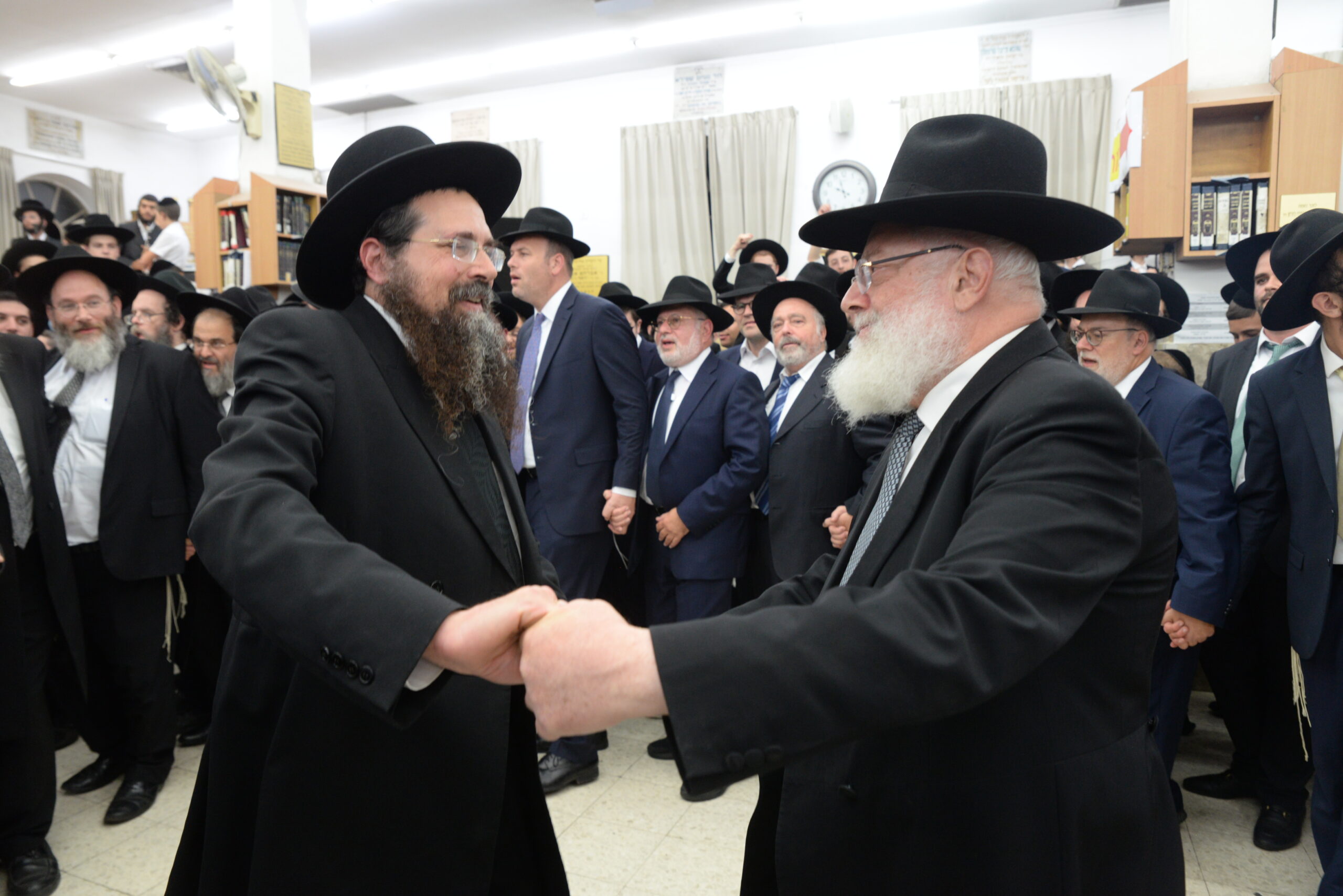 The Yeshiva’s Simchas Beis Hashoeva was held on Thursday, the second night of Chol Hamoed, beginning with music and dancing in the Mercazi Bais Medrash at 9:20. When the Roshei Yeshiva walked in about twenty minutes later, the olam broke out in tremendous excitement as they danced with their Rabbeim for several hours. Many visiting guests joined as well, taking the opportunity to wish the Roshei Yeshiva a Gut Yom Tov. All in all, there were around 9,000 people coming by throughout the night. The highlight of the event, as usual, was the kumzitz with inspiring songs of Yamim Noraim and Geulah at the end of the night, culminating in Leshana Haba’ah Bi’Yerushalayim.