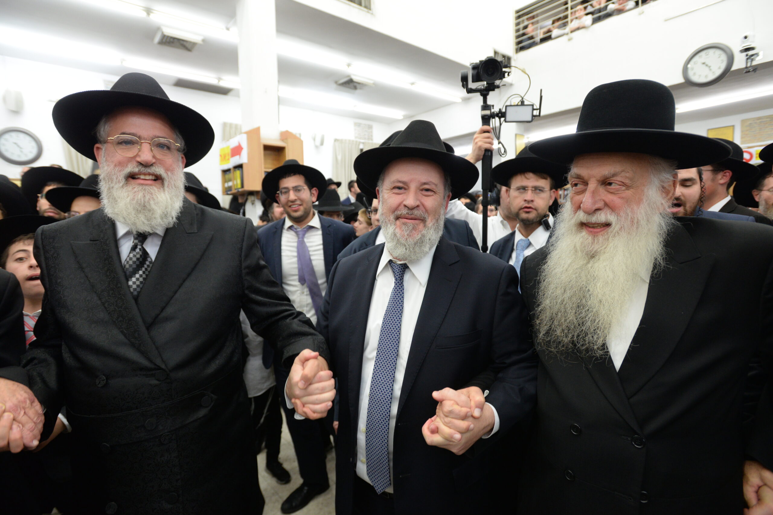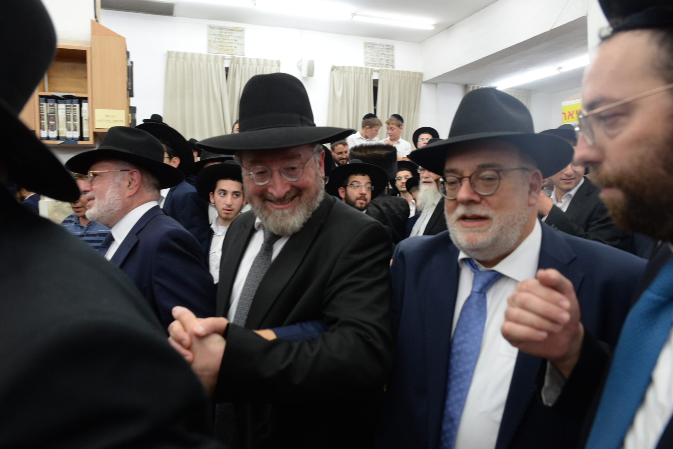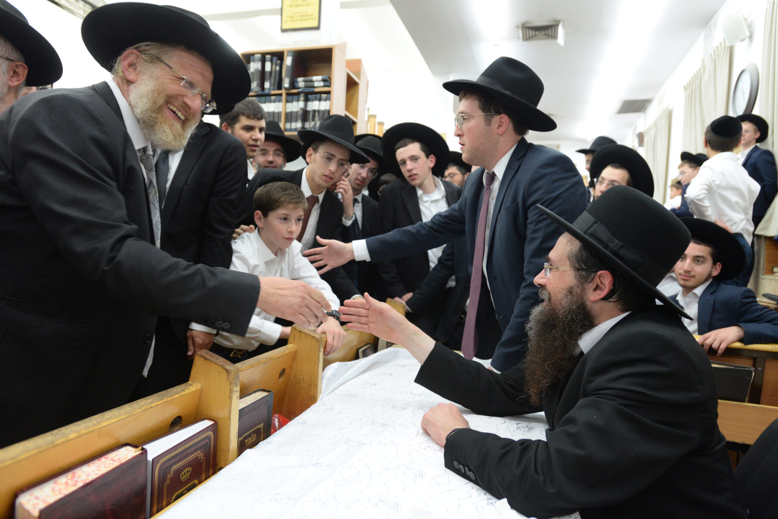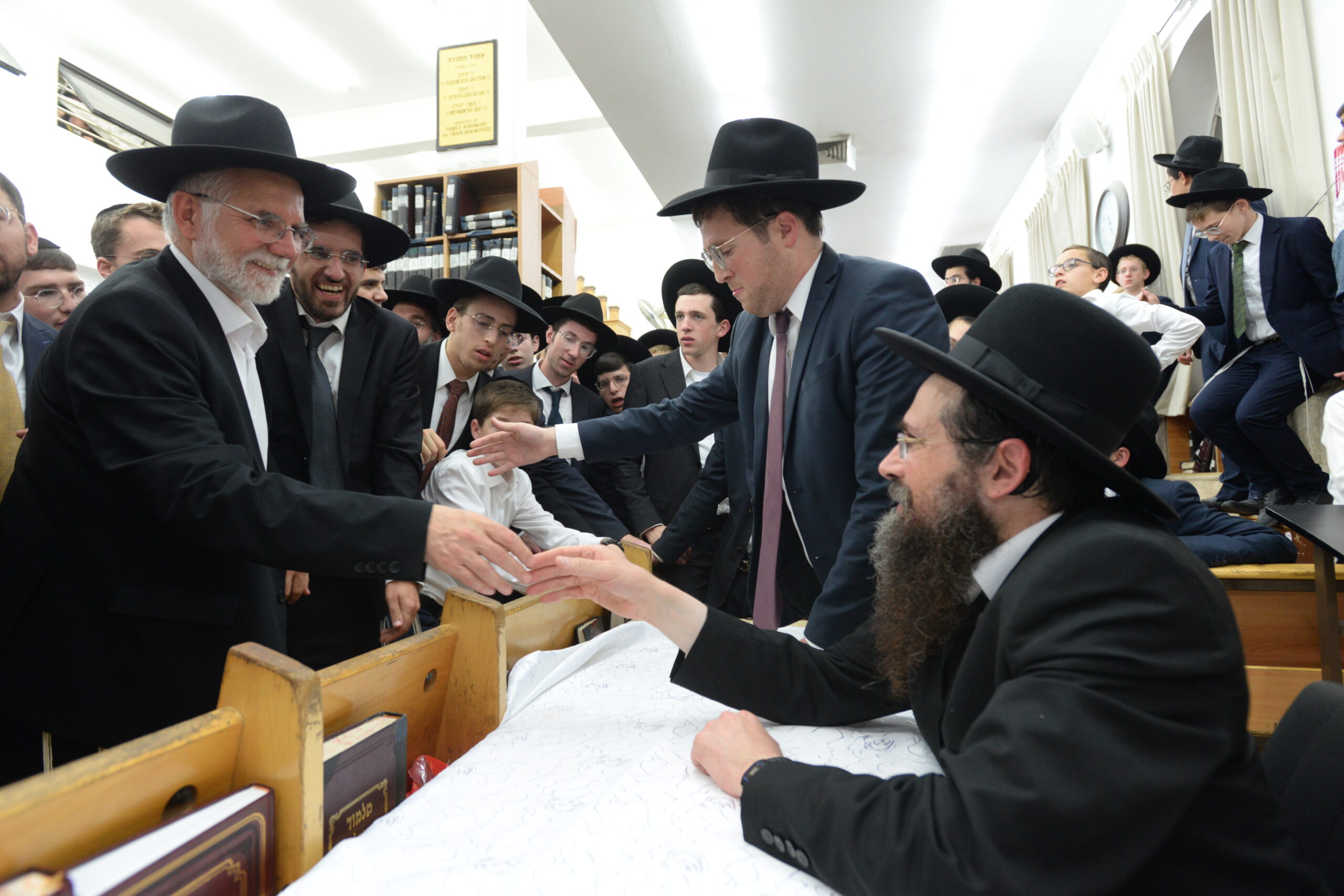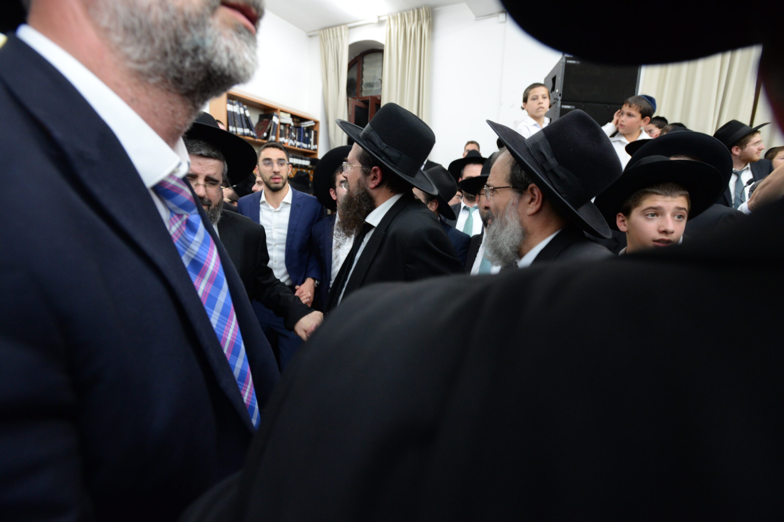 The Yeshiva’s Simchas Beis Hashoeva was held on Thursday, the second night of Chol Hamoed, beginning with music and dancing in the Mercazi Bais Medrash at 9:20. When the Roshei Yeshiva walked in about twenty minutes later, the olam broke out in tremendous excitement as they danced with their Rabbeim for several hours. Many visiting guests joined as well, taking the opportunity to wish the Roshei Yeshiva a Gut Yom Tov. All in all, there were around 9,000 people coming by throughout the night. The highlight of the event, as usual, was the kumzitz with inspiring songs of Yamim Noraim and Geulah at the end of the night, culminating in Leshana Haba’ah Bi’Yerushalayim.
