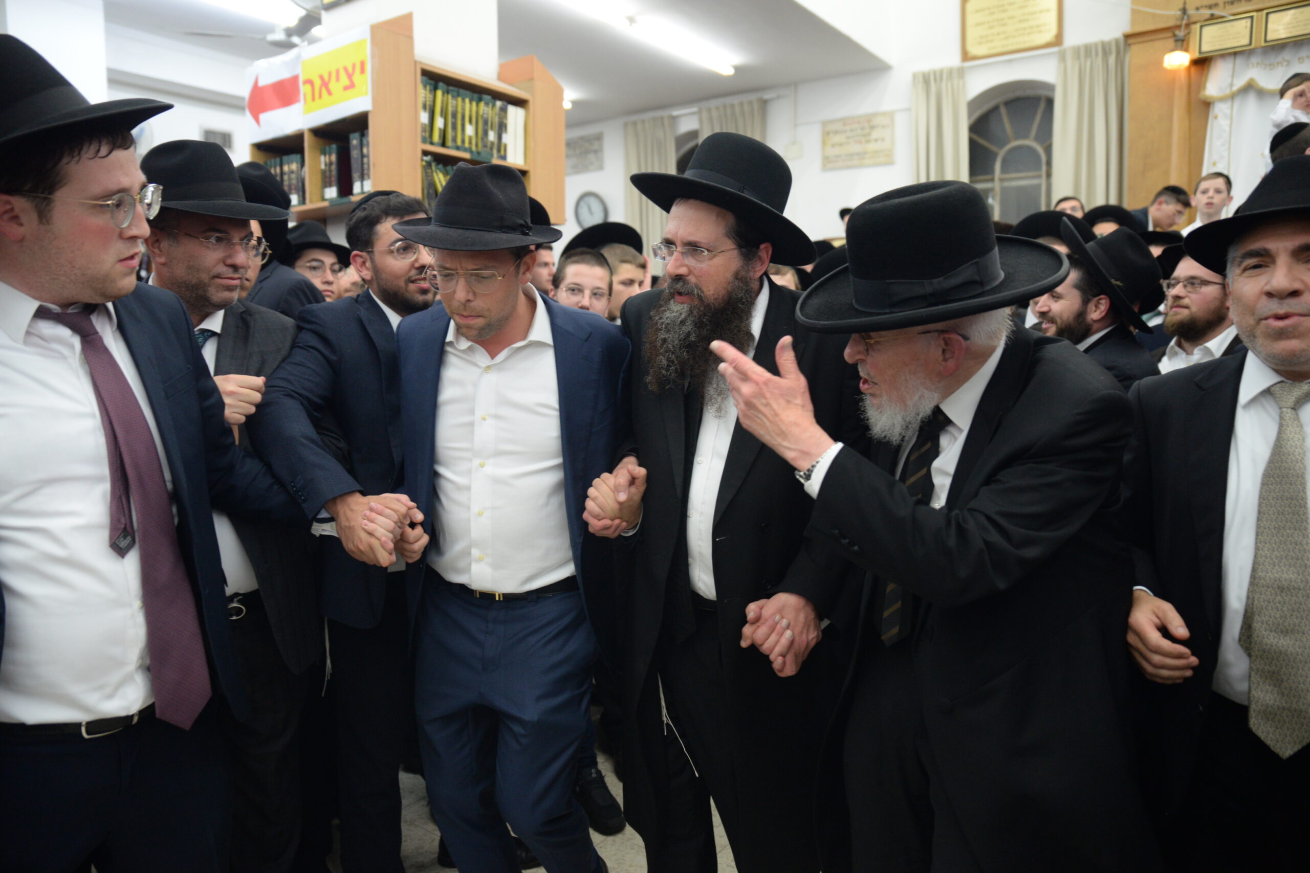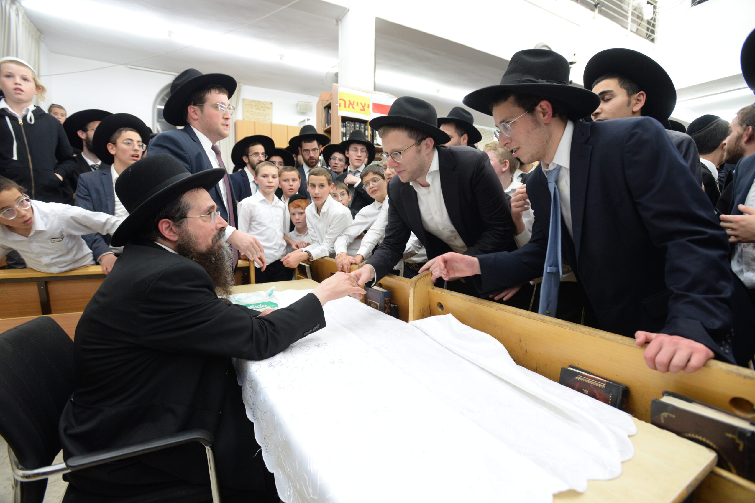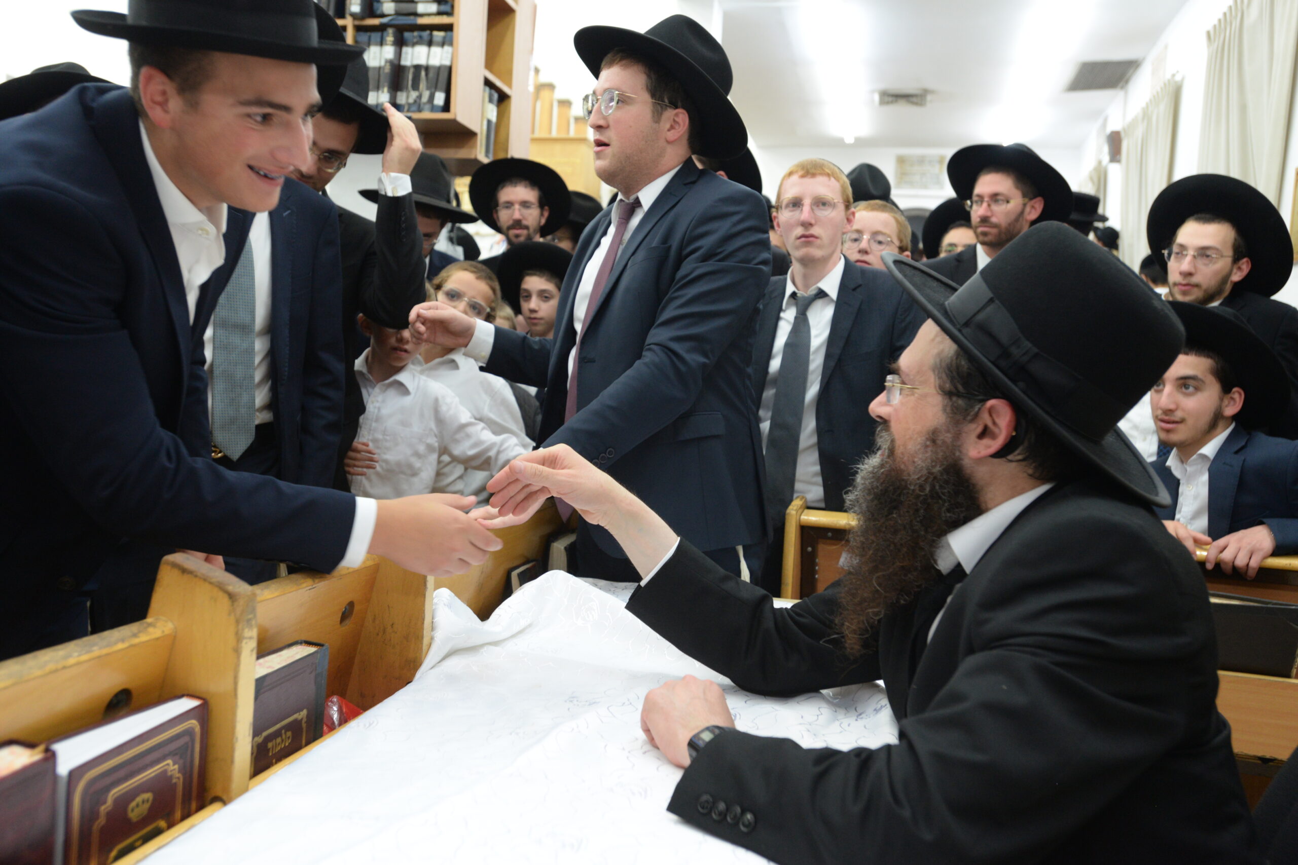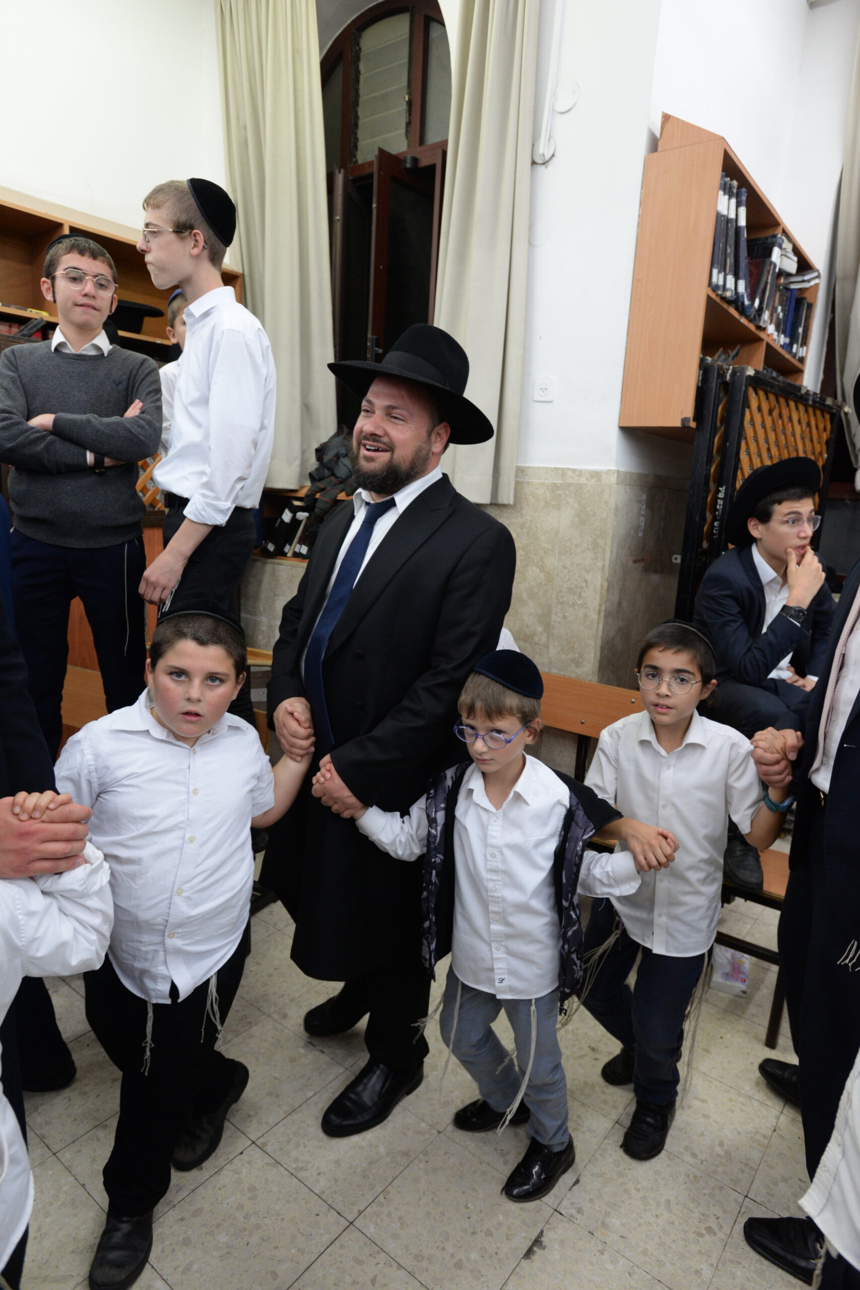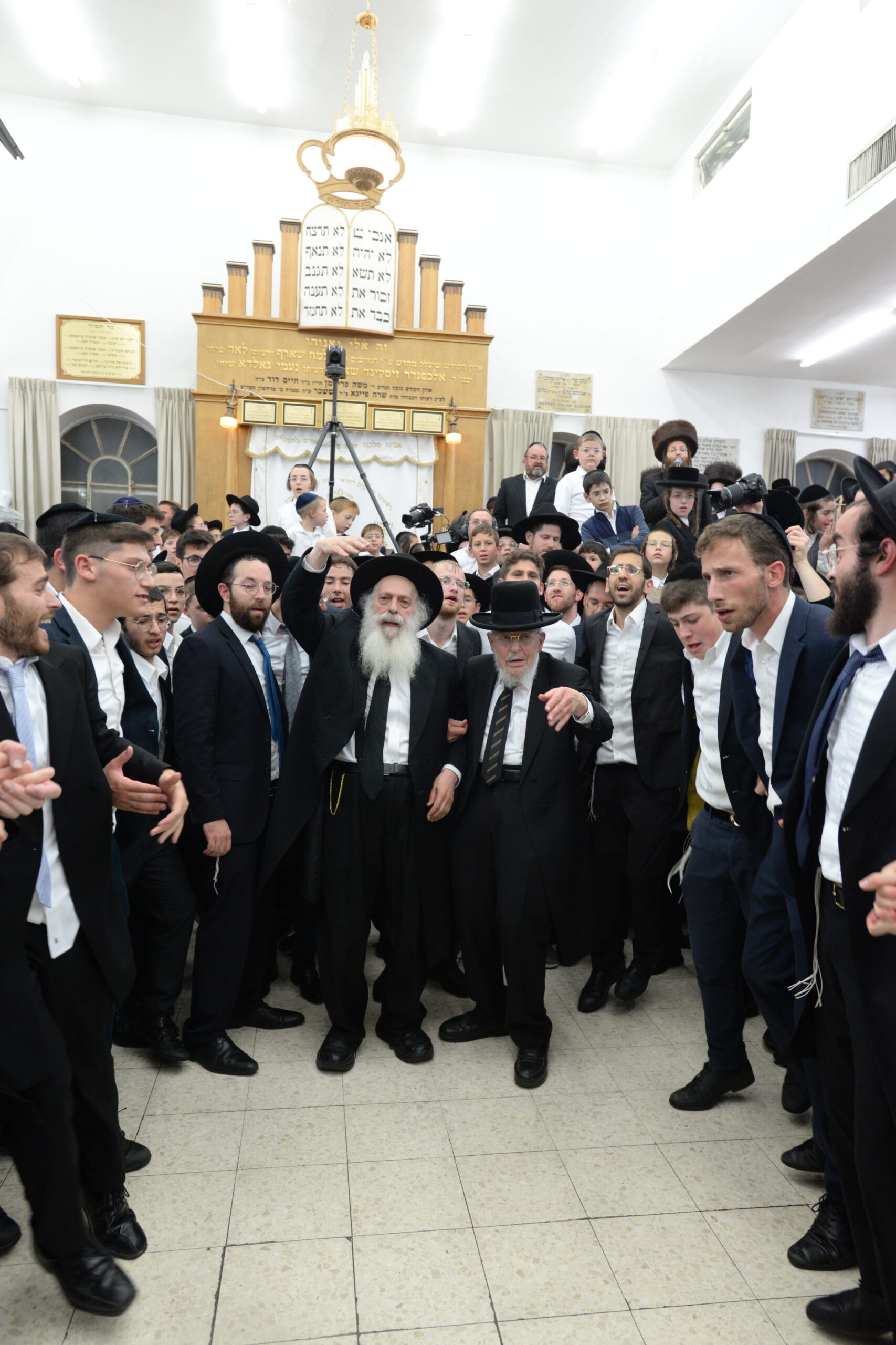 The Yeshiva’s Simchas Beis Hashoeva was held on Thursday, the second night of Chol Hamoed, beginning with music and dancing in the Mercazi Bais Medrash at 9:20. When the Roshei Yeshiva walked in about twenty minutes later, the olam broke out in tremendous excitement as they danced with their Rabbeim for several hours. Many visiting guests joined as well, taking the opportunity to wish the Roshei Yeshiva a Gut Yom Tov. All in all, there were around 9,000 people coming by throughout the night. The highlight of the event, as usual, was the kumzitz with inspiring songs of Yamim Noraim and Geulah at the end of the night, culminating in Leshana Haba’ah Bi’Yerushalayim.