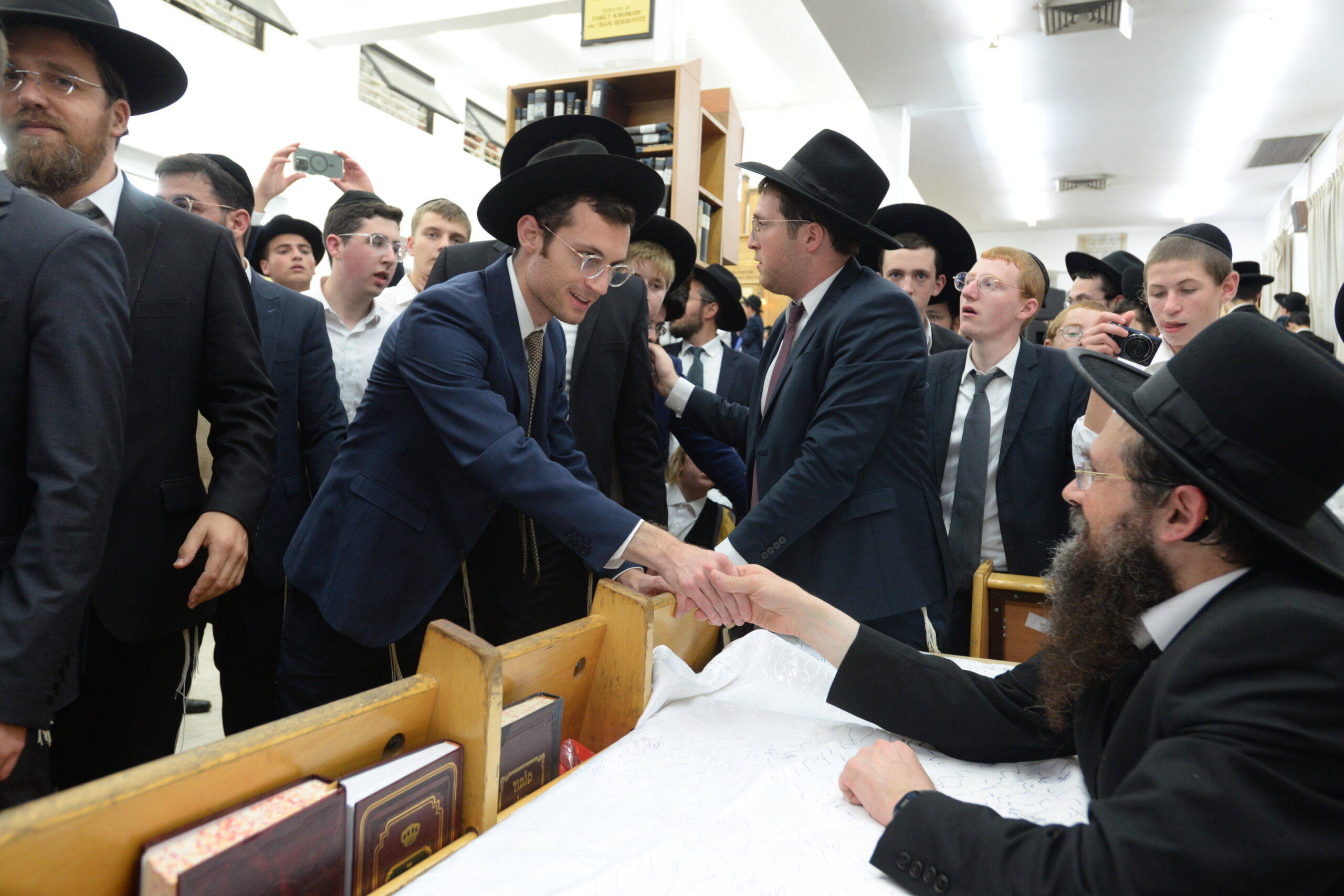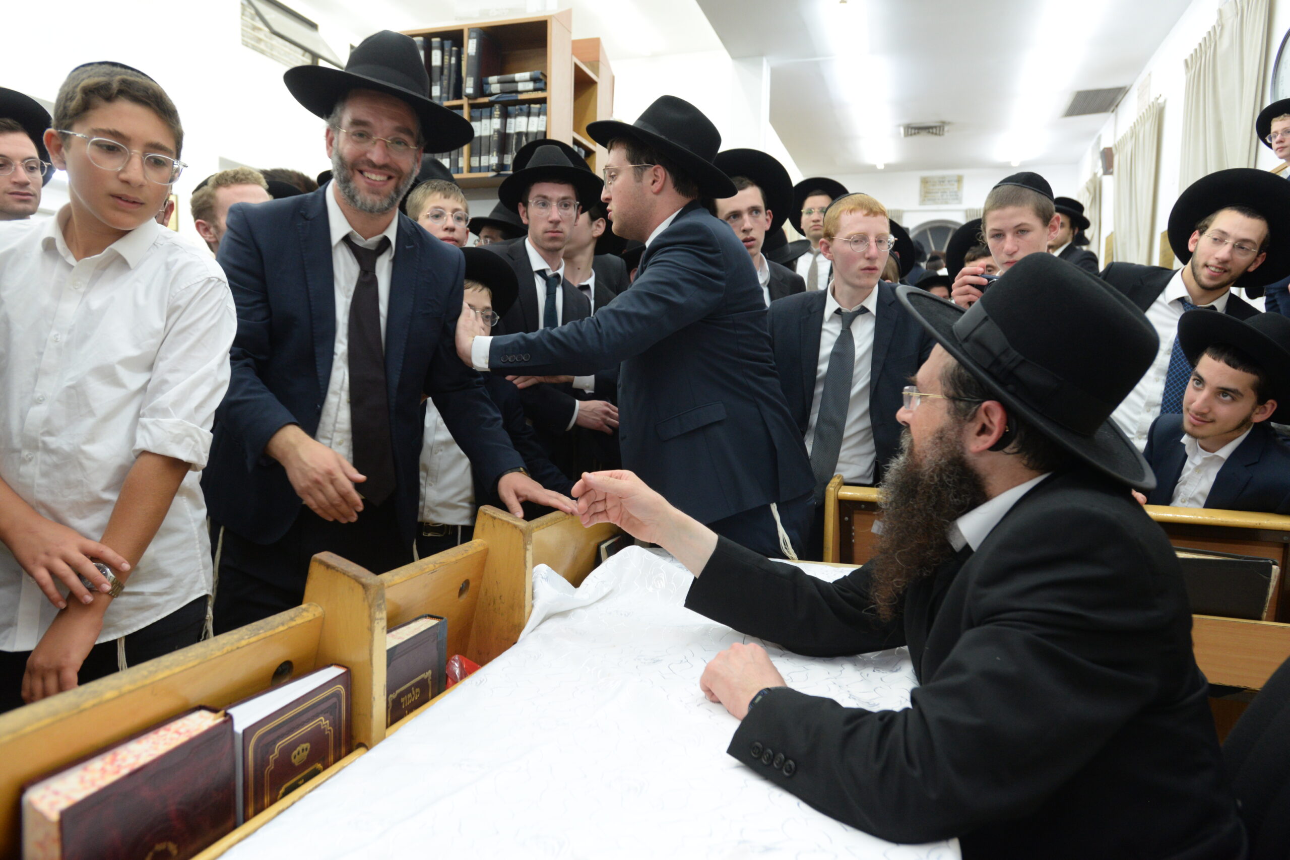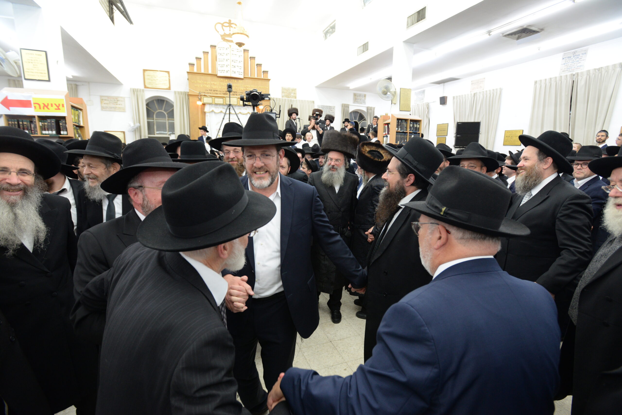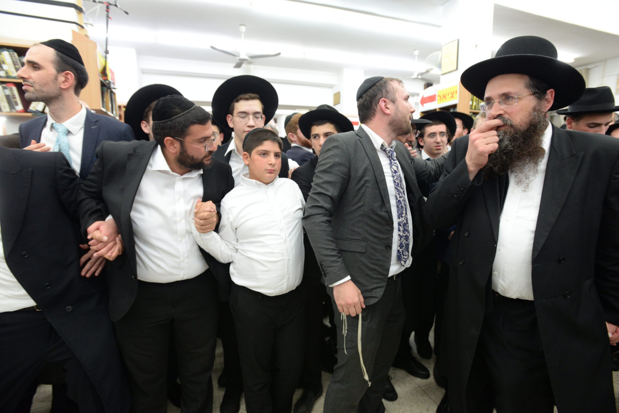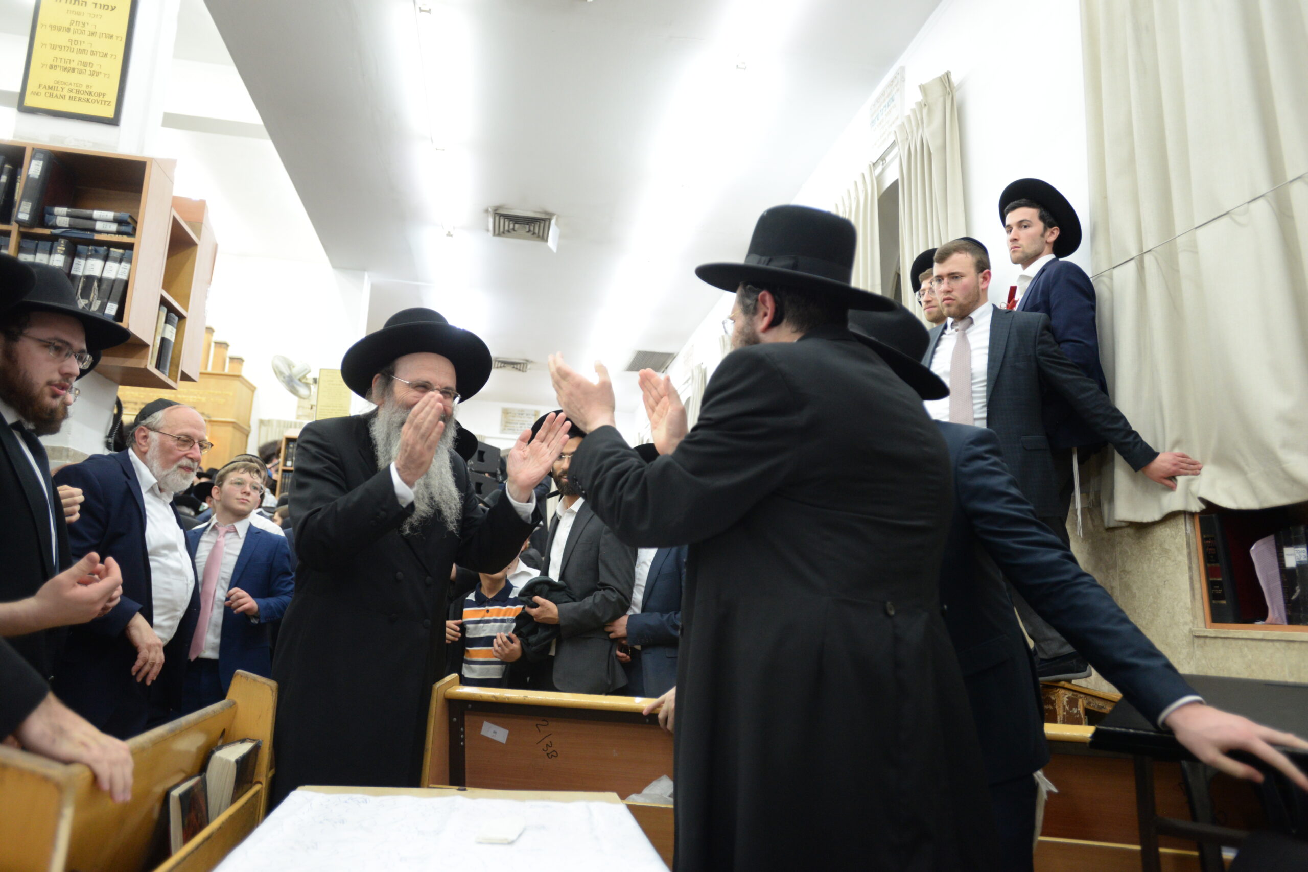 The Yeshiva’s Simchas Beis Hashoeva was held on Thursday, the second night of Chol Hamoed, beginning with music and dancing in the Mercazi Bais Medrash at 9:20. When the Roshei Yeshiva walked in about twenty minutes later, the olam broke out in tremendous excitement as they danced with their Rabbeim for several hours. Many visiting guests joined as well, taking the opportunity to wish the Roshei Yeshiva a Gut Yom Tov. All in all, there were around 9,000 people coming by throughout the night. The highlight of the event, as usual, was the kumzitz with inspiring songs of Yamim Noraim and Geulah at the end of the night, culminating in Leshana Haba’ah Bi’Yerushalayim.
