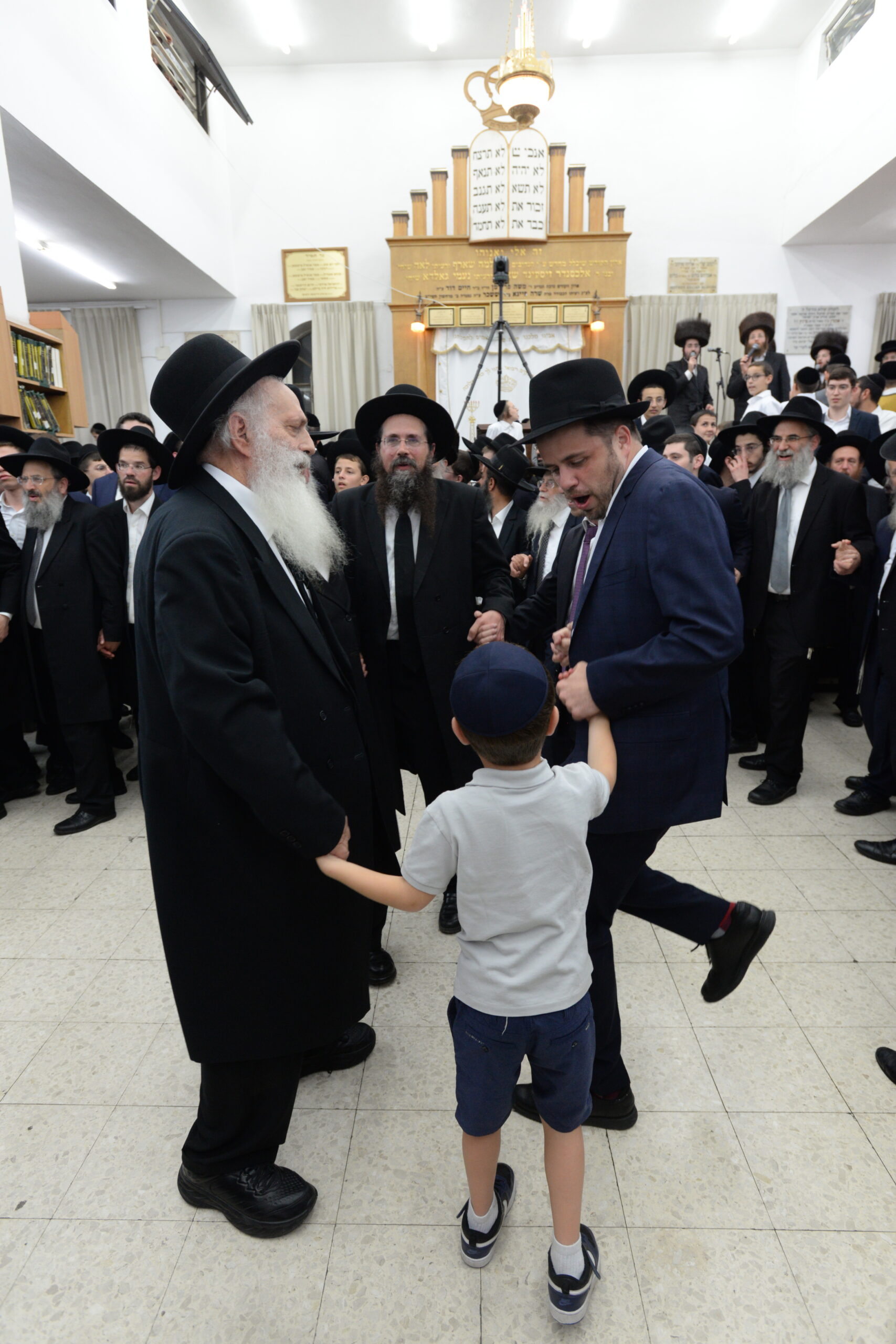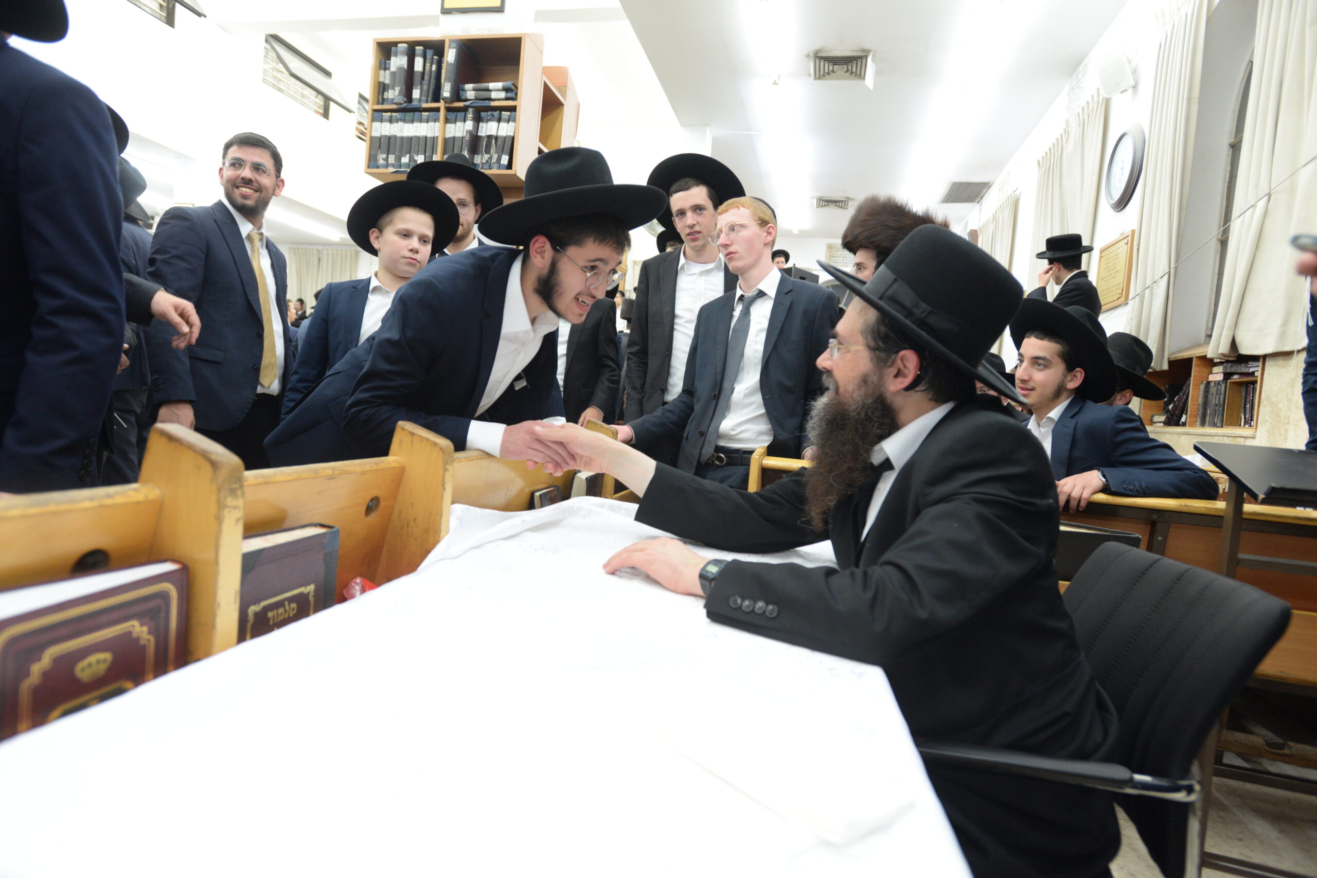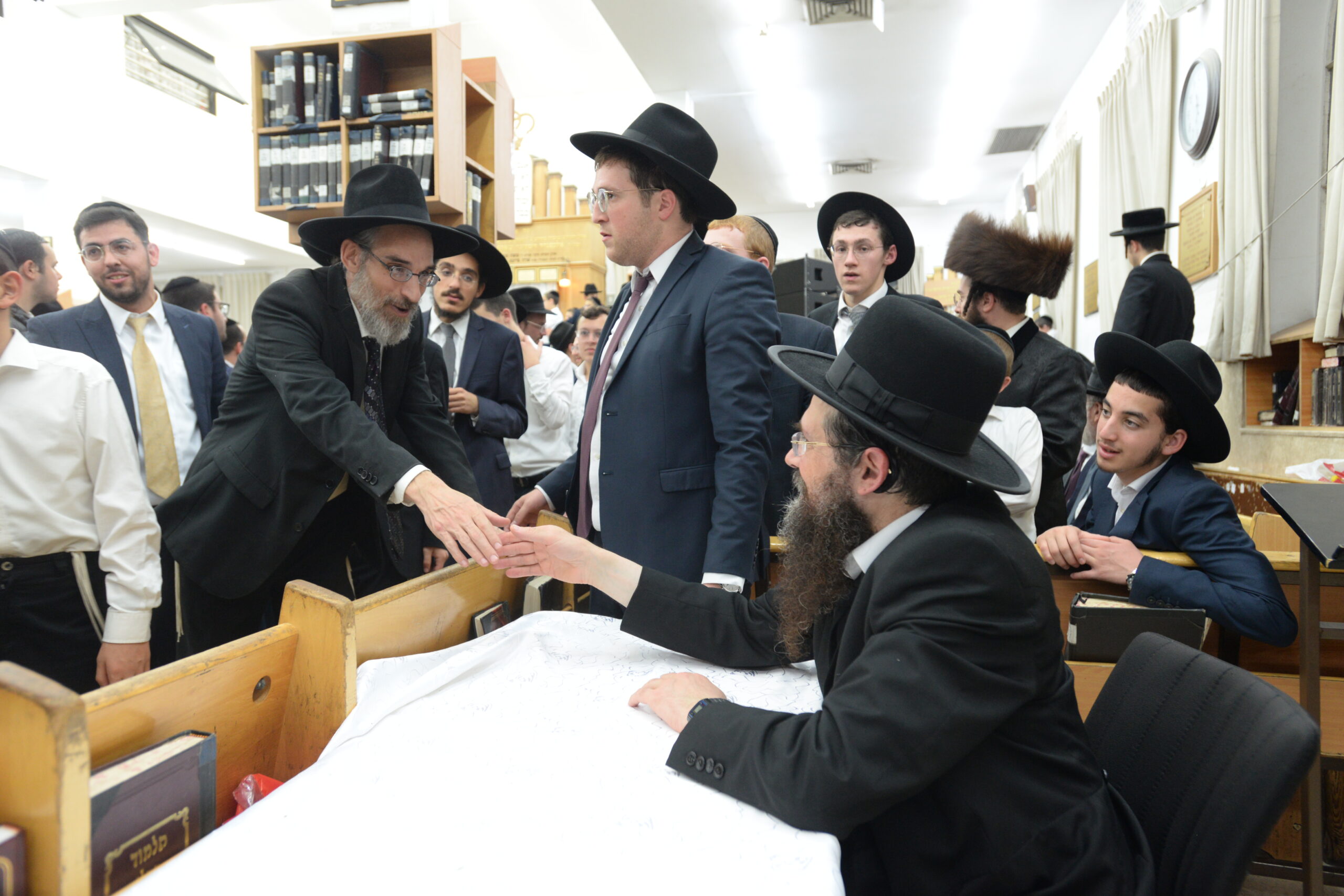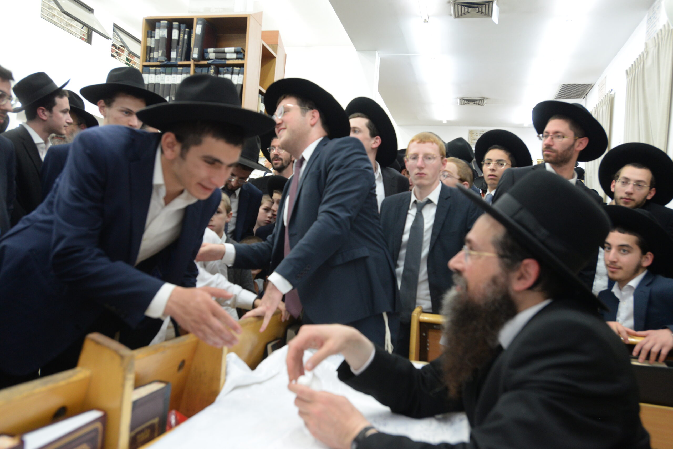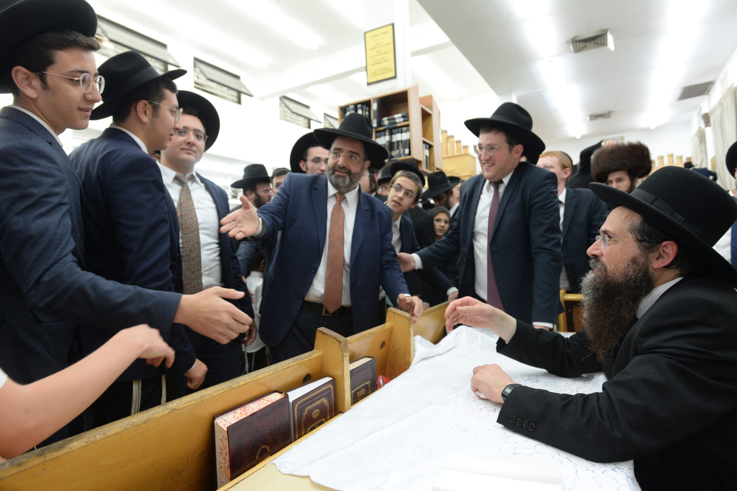 The Yeshiva’s Simchas Beis Hashoeva was held on Thursday, the second night of Chol Hamoed, beginning with music and dancing in the Mercazi Bais Medrash at 9:20. When the Roshei Yeshiva walked in about twenty minutes later, the olam broke out in tremendous excitement as they danced with their Rabbeim for several hours. Many visiting guests joined as well, taking the opportunity to wish the Roshei Yeshiva a Gut Yom Tov. All in all, there were around 9,000 people coming by throughout the night. The highlight of the event, as usual, was the kumzitz with inspiring songs of Yamim Noraim and Geulah at the end of the night, culminating in Leshana Haba’ah Bi’Yerushalayim.