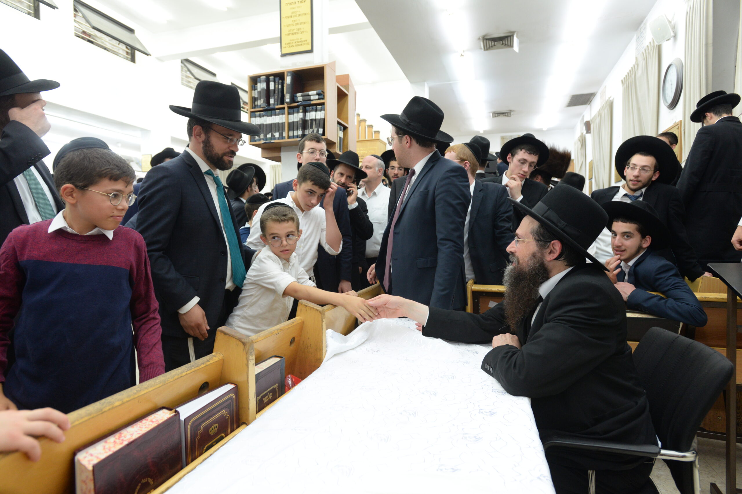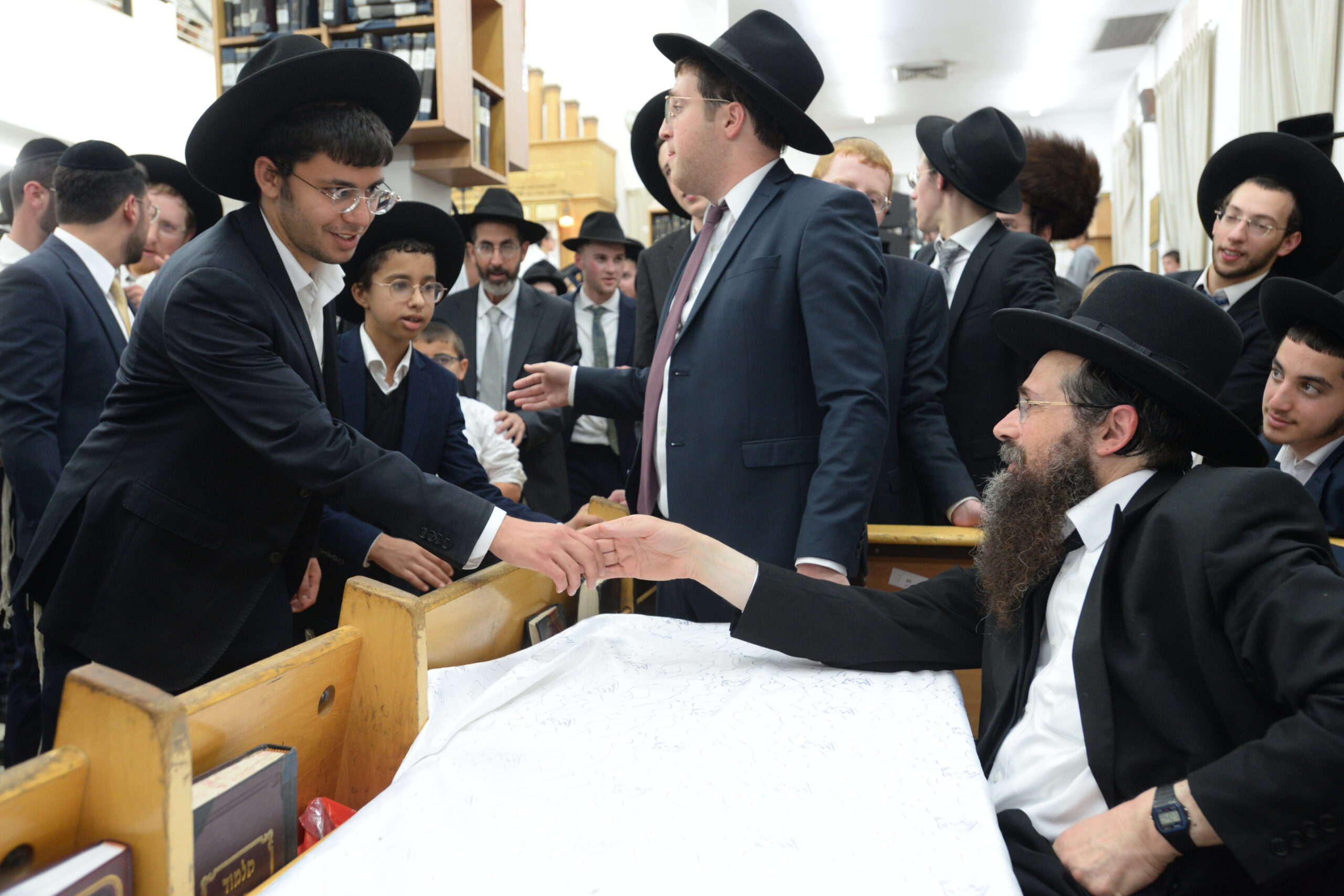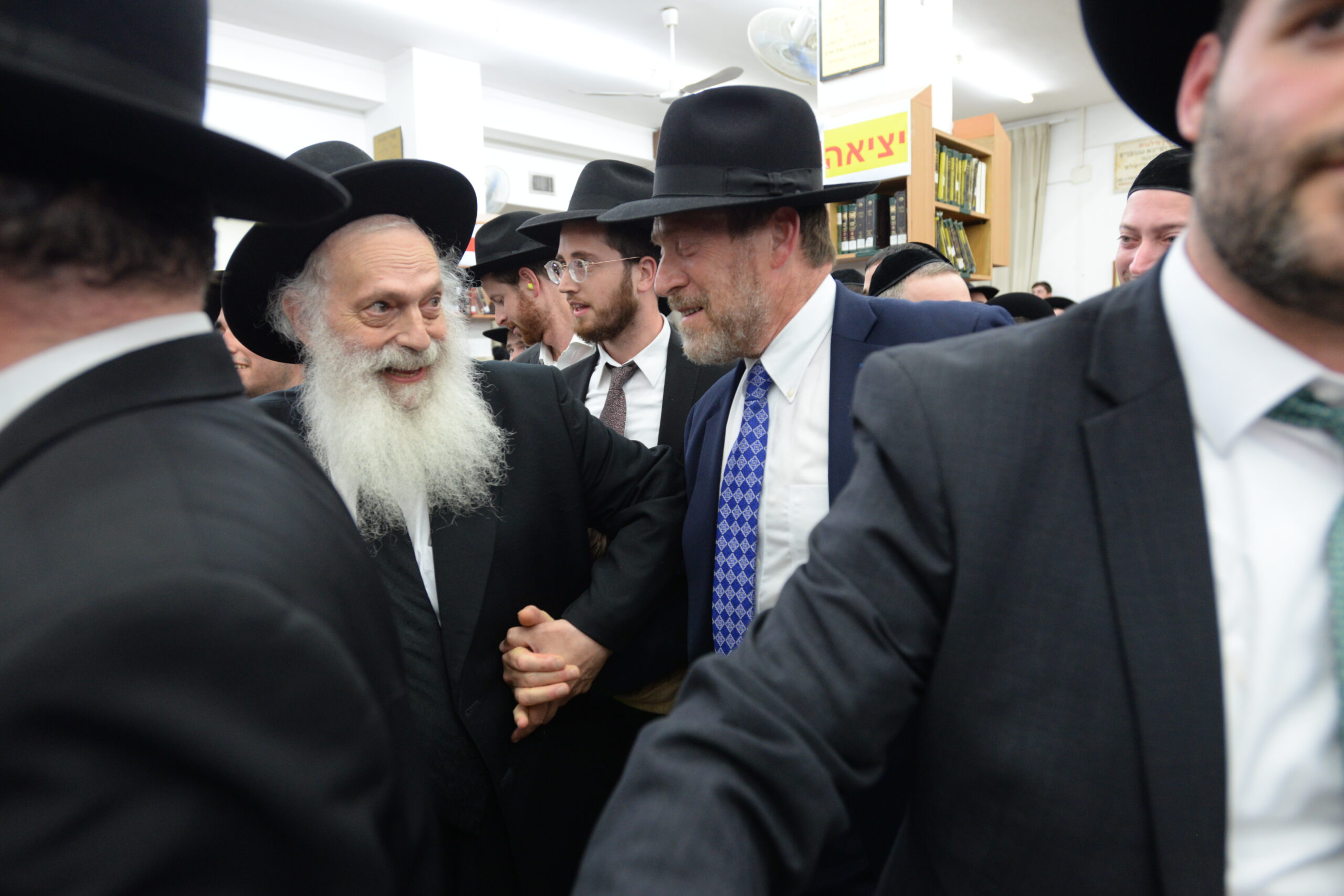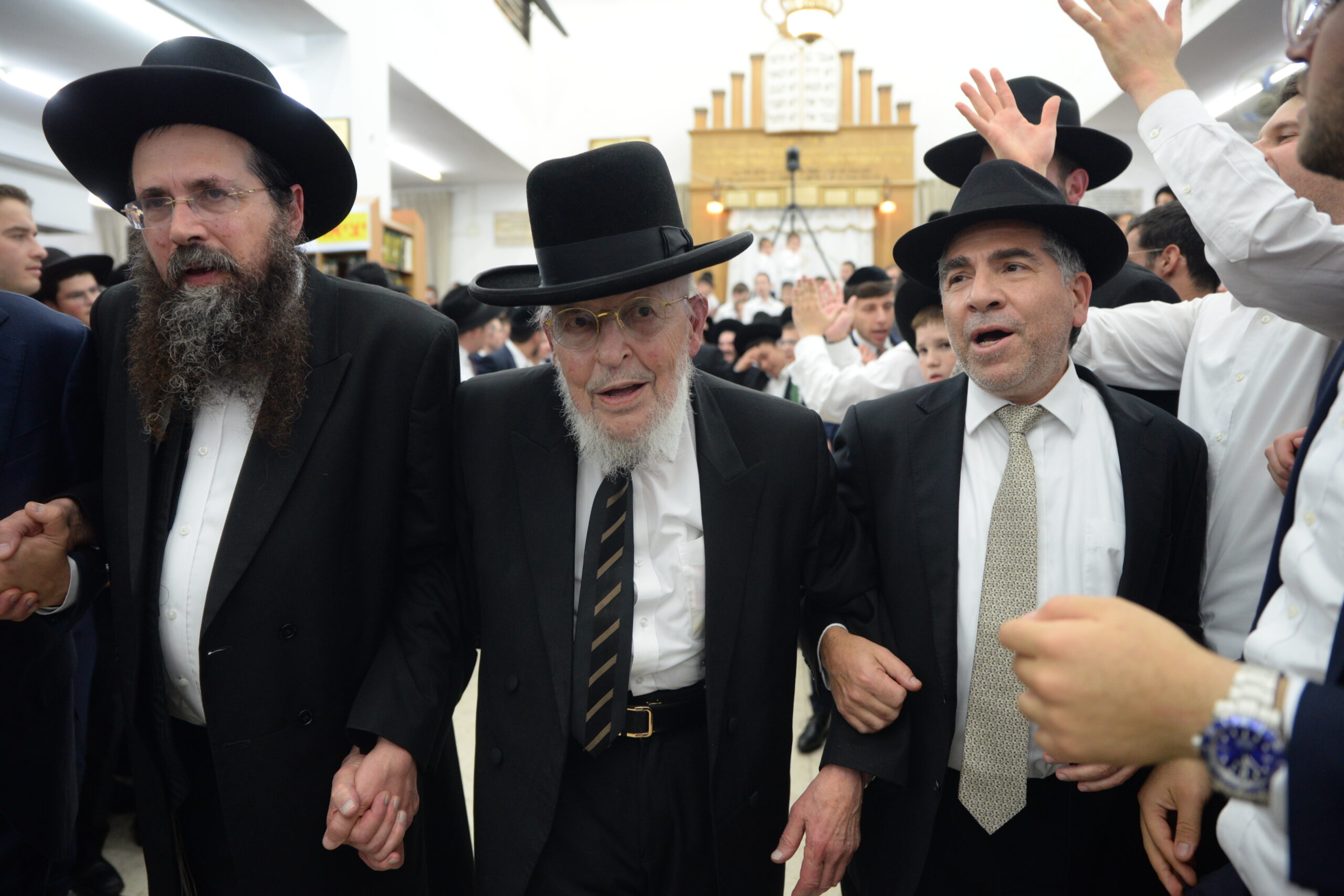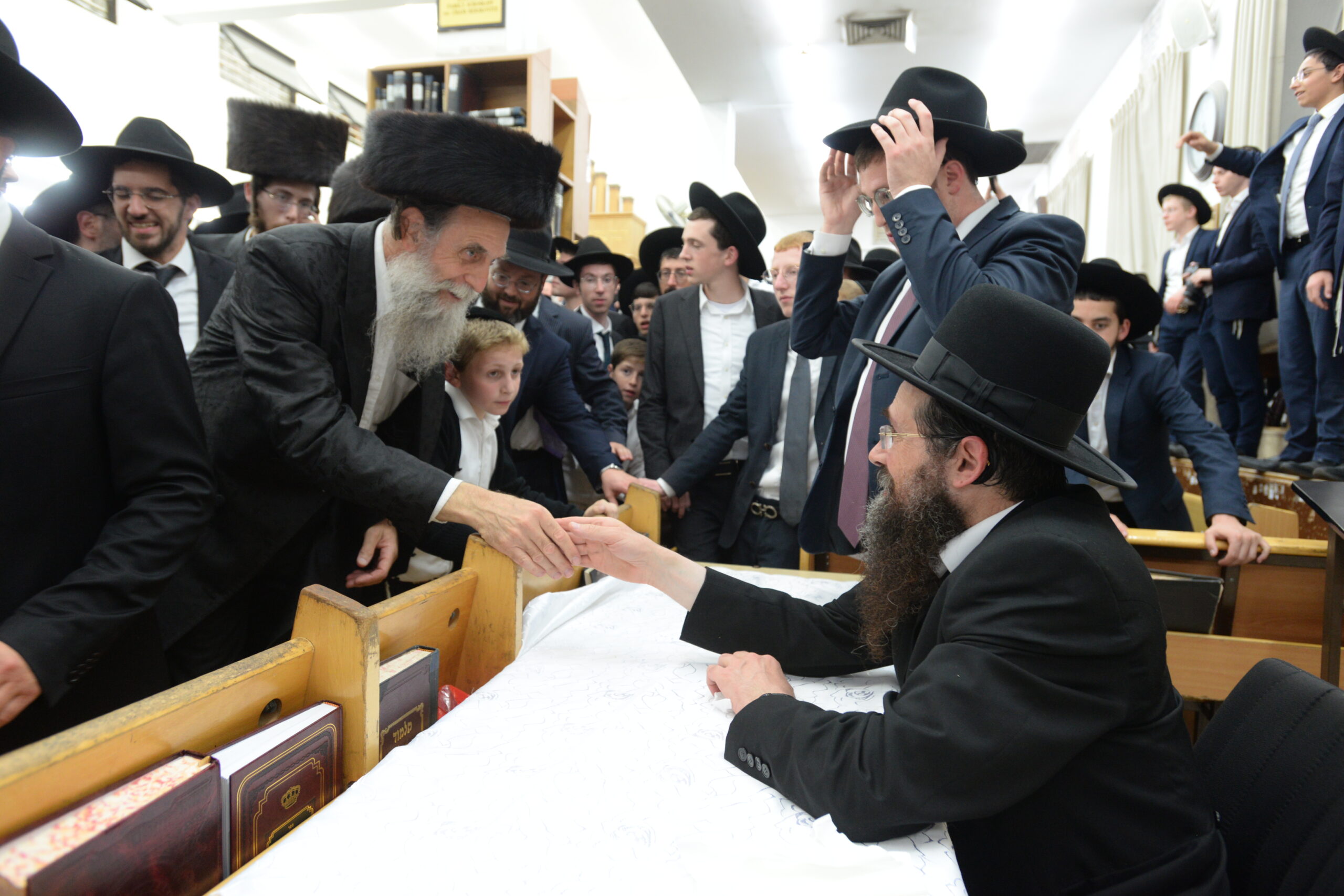 The Yeshiva’s Simchas Beis Hashoeva was held on Thursday, the second night of Chol Hamoed, beginning with music and dancing in the Mercazi Bais Medrash at 9:20. When the Roshei Yeshiva walked in about twenty minutes later, the olam broke out in tremendous excitement as they danced with their Rabbeim for several hours. Many visiting guests joined as well, taking the opportunity to wish the Roshei Yeshiva a Gut Yom Tov. All in all, there were around 9,000 people coming by throughout the night. The highlight of the event, as usual, was the kumzitz with inspiring songs of Yamim Noraim and Geulah at the end of the night, culminating in Leshana Haba’ah Bi’Yerushalayim.