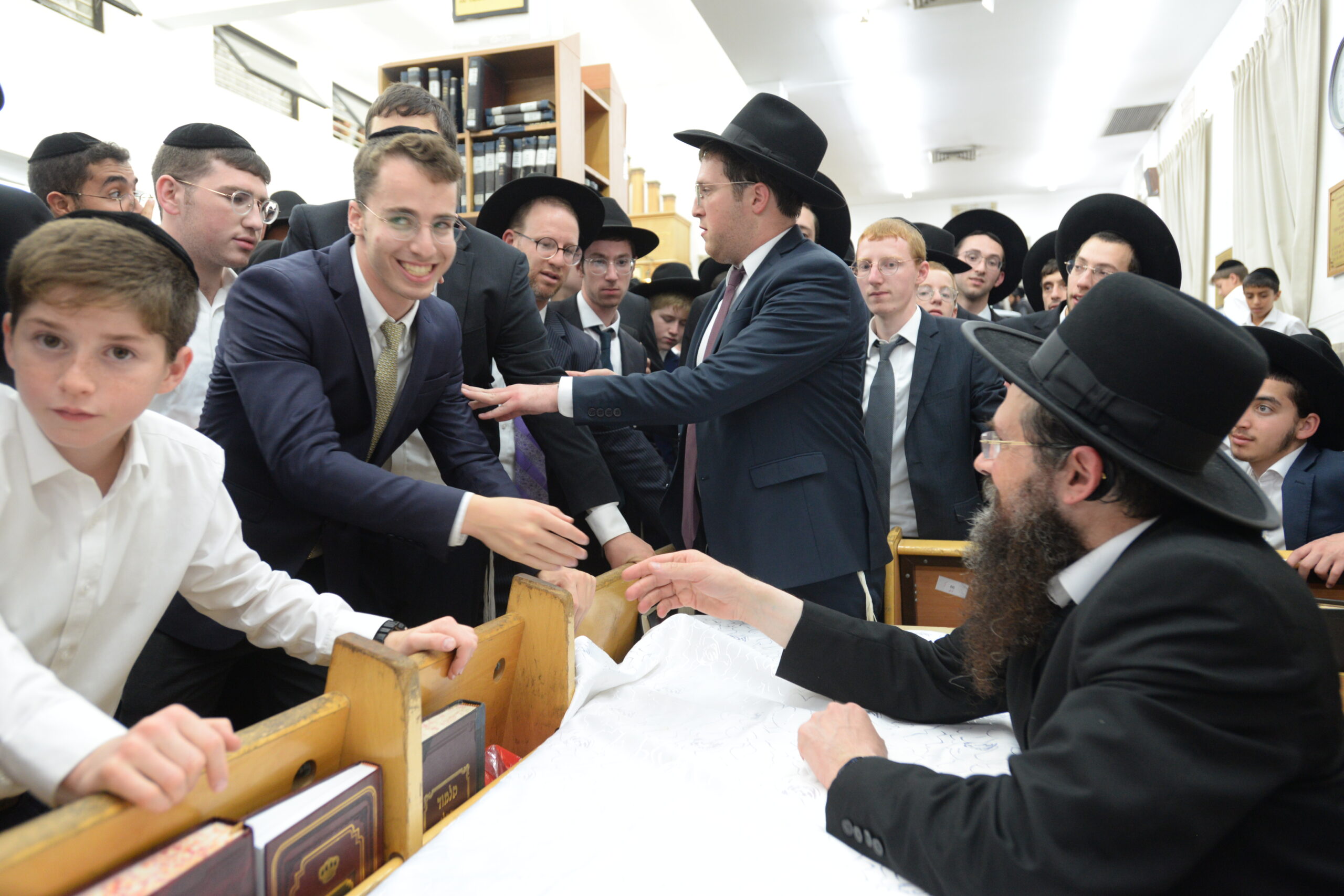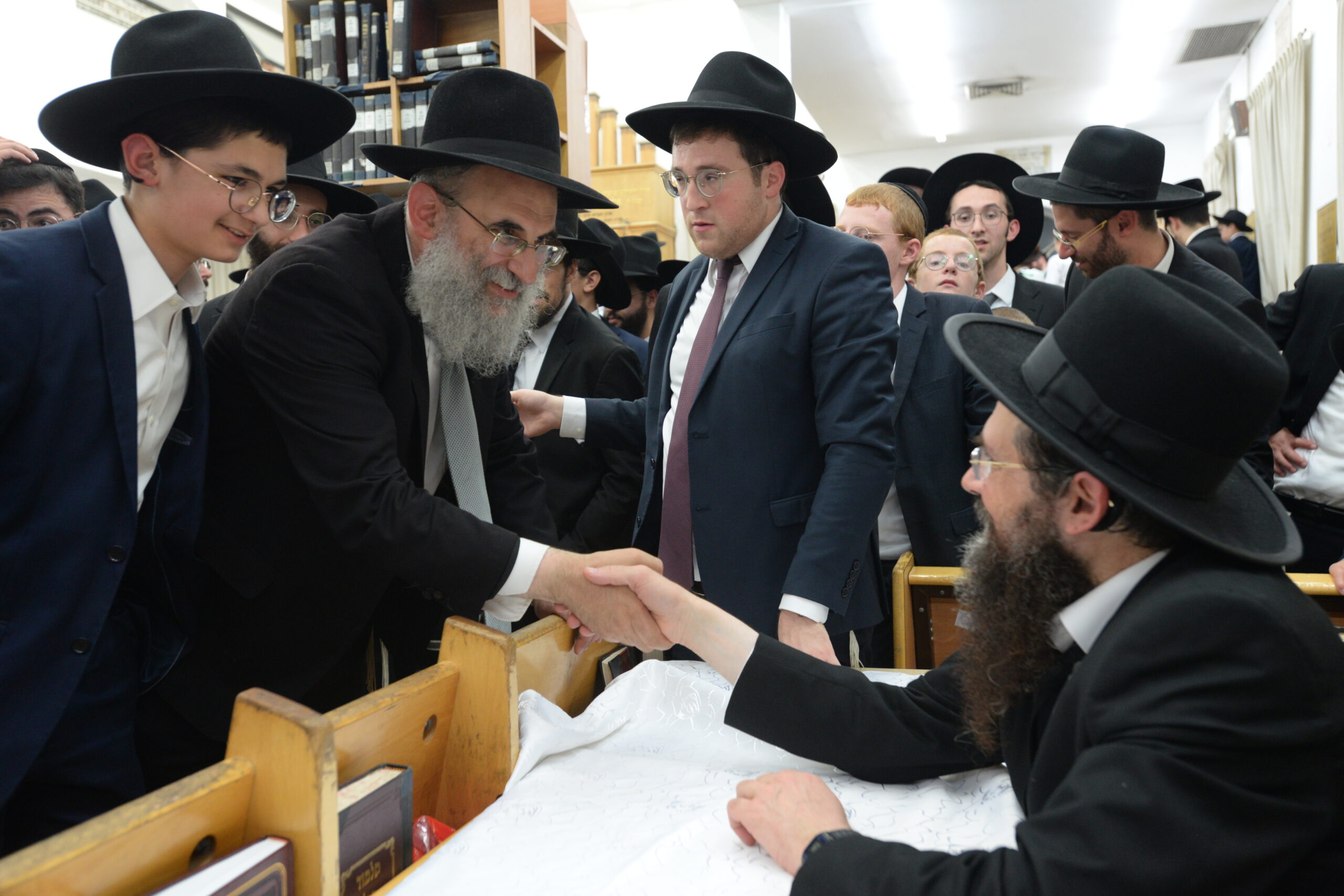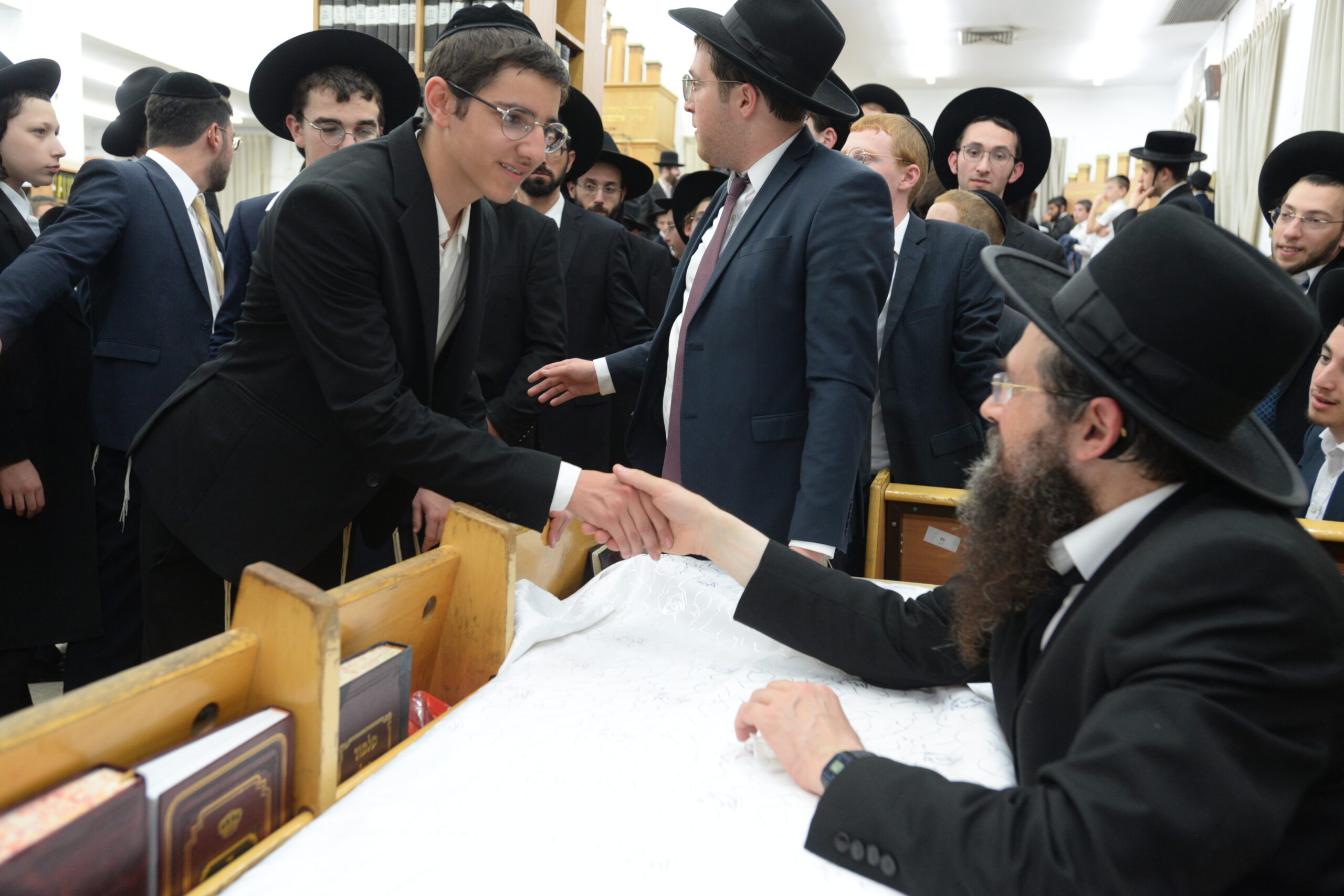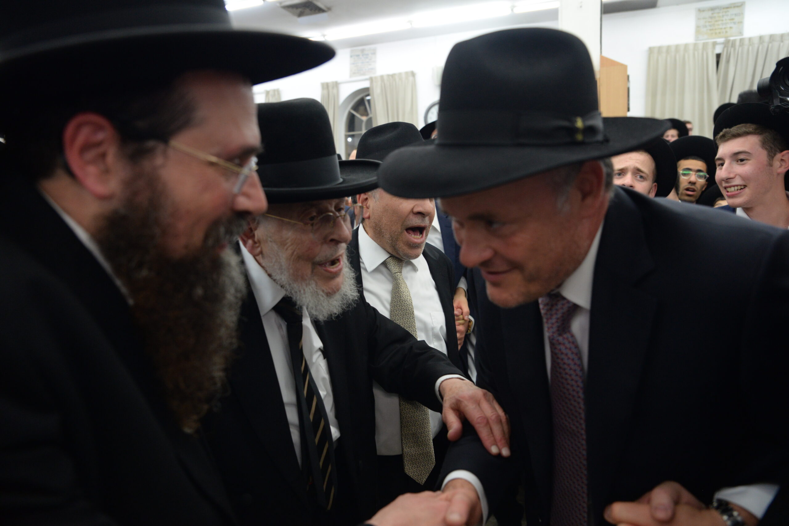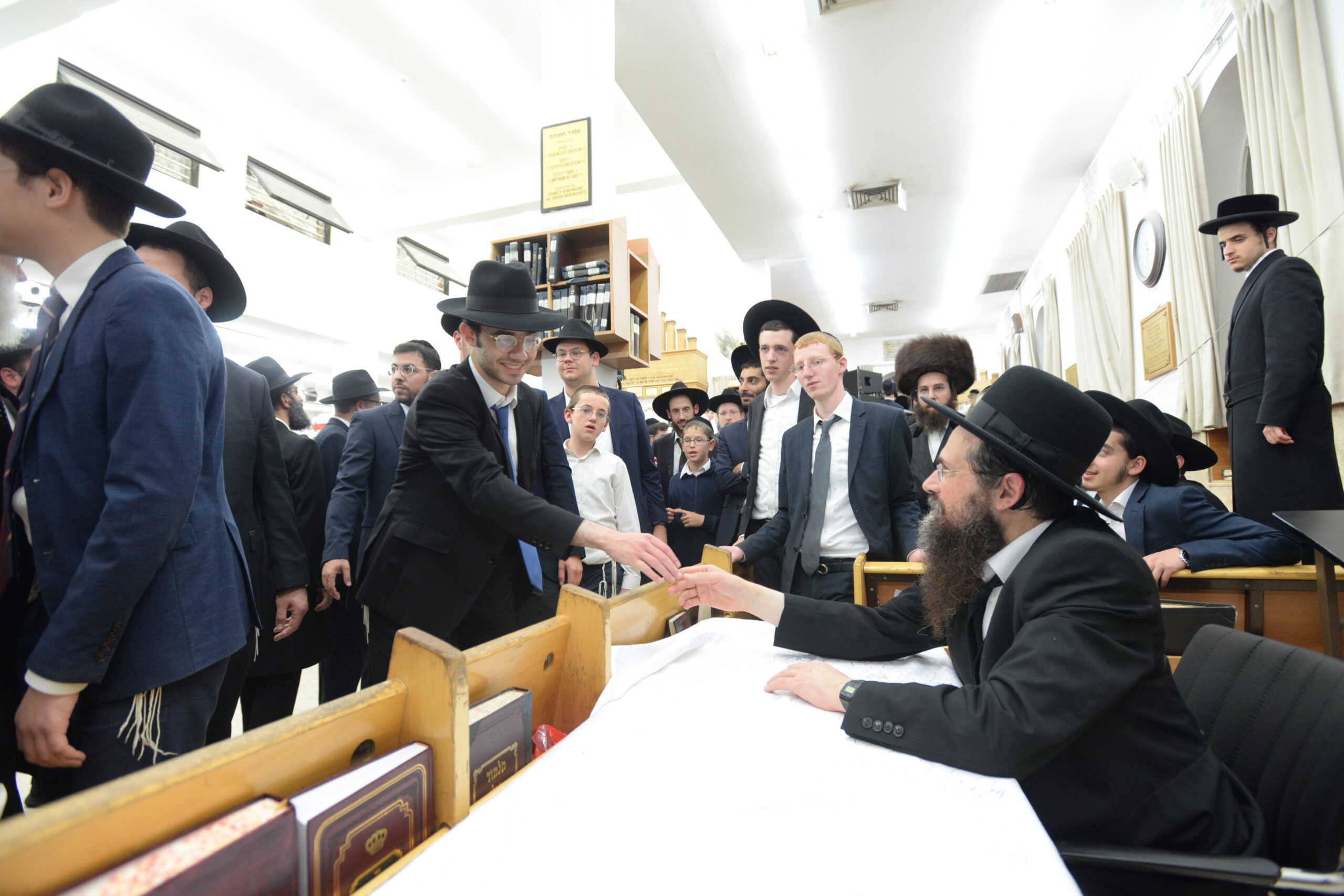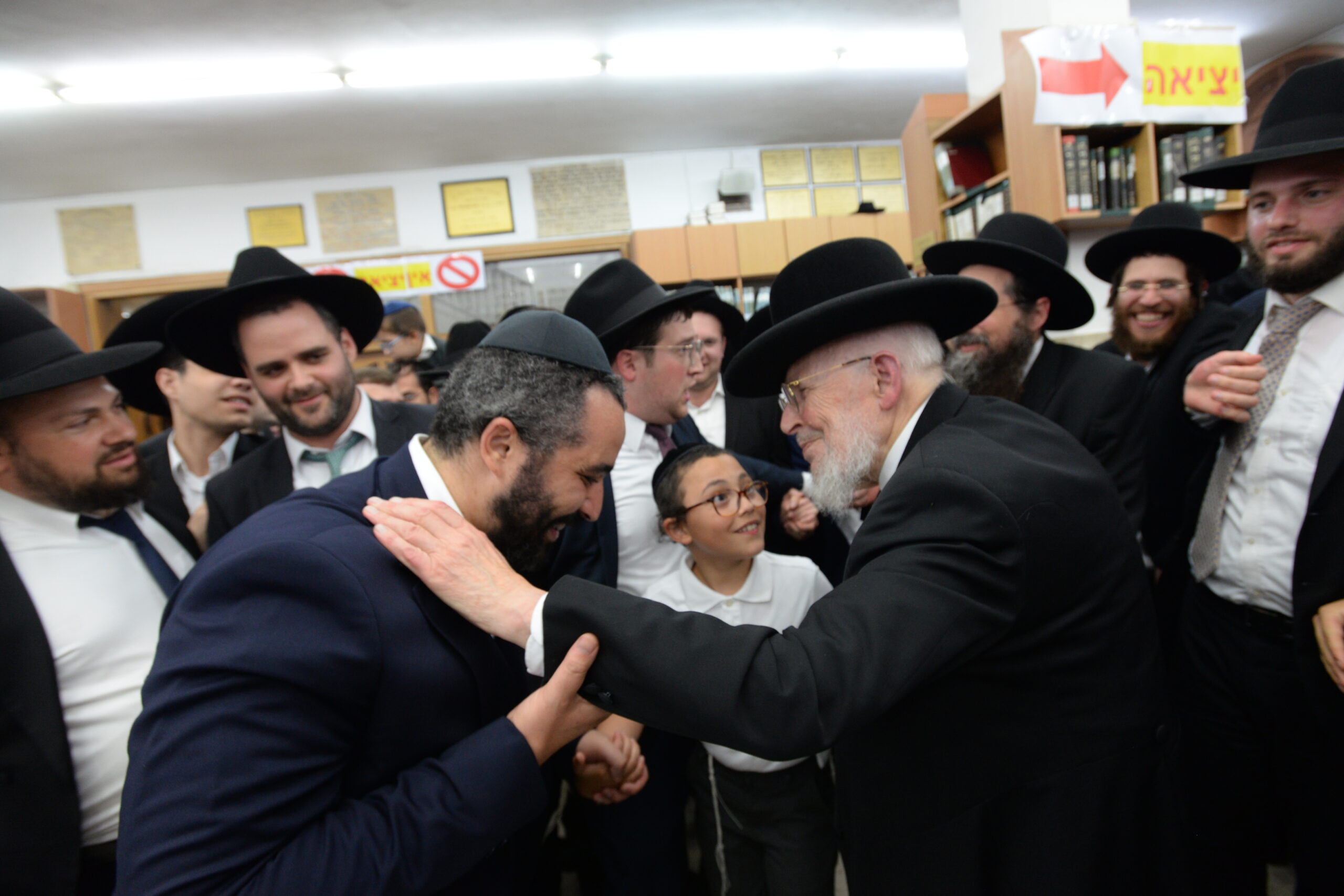 The Yeshiva’s Simchas Beis Hashoeva was held on Thursday, the second night of Chol Hamoed, beginning with music and dancing in the Mercazi Bais Medrash at 9:20. When the Roshei Yeshiva walked in about twenty minutes later, the olam broke out in tremendous excitement as they danced with their Rabbeim for several hours. Many visiting guests joined as well, taking the opportunity to wish the Roshei Yeshiva a Gut Yom Tov. All in all, there were around 9,000 people coming by throughout the night. The highlight of the event, as usual, was the kumzitz with inspiring songs of Yamim Noraim and Geulah at the end of the night, culminating in Leshana Haba’ah Bi’Yerushalayim.