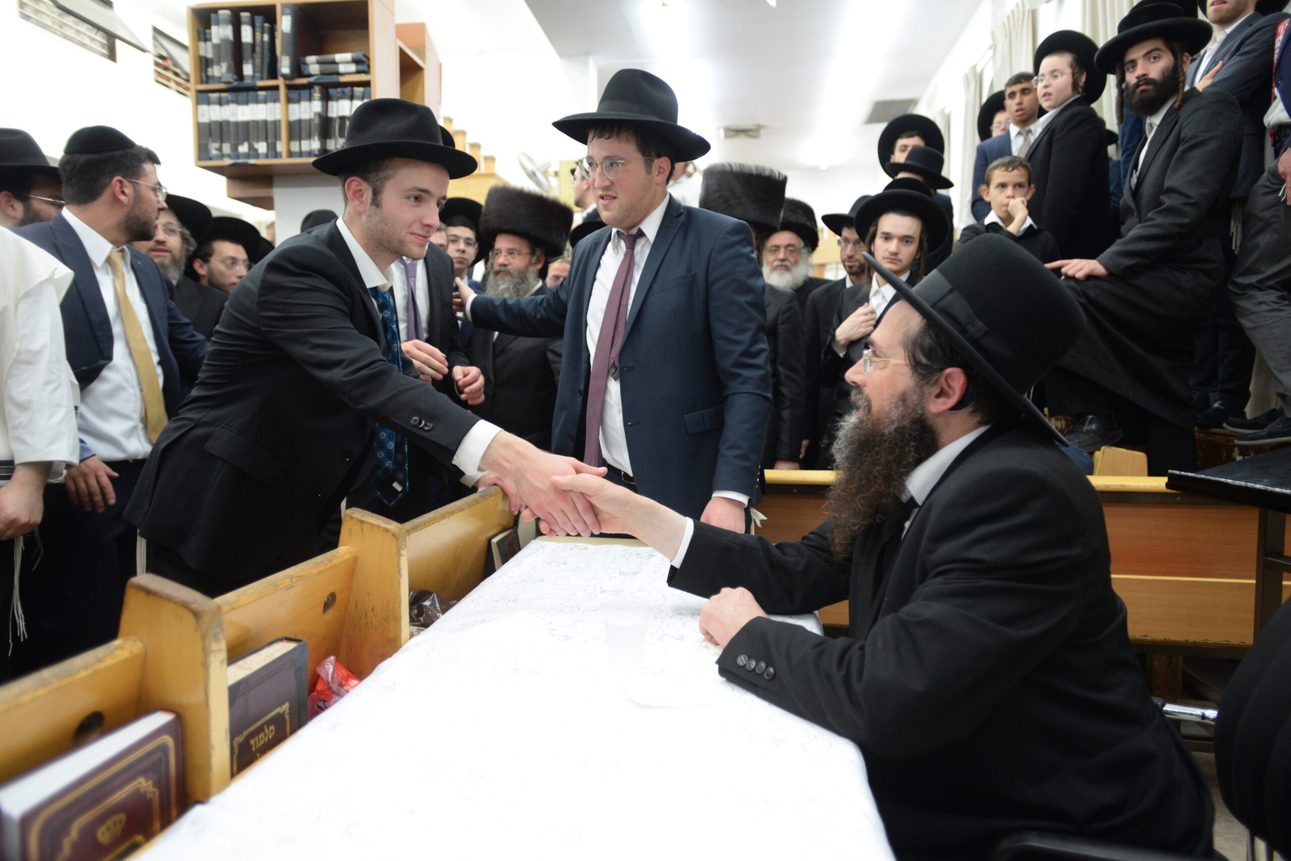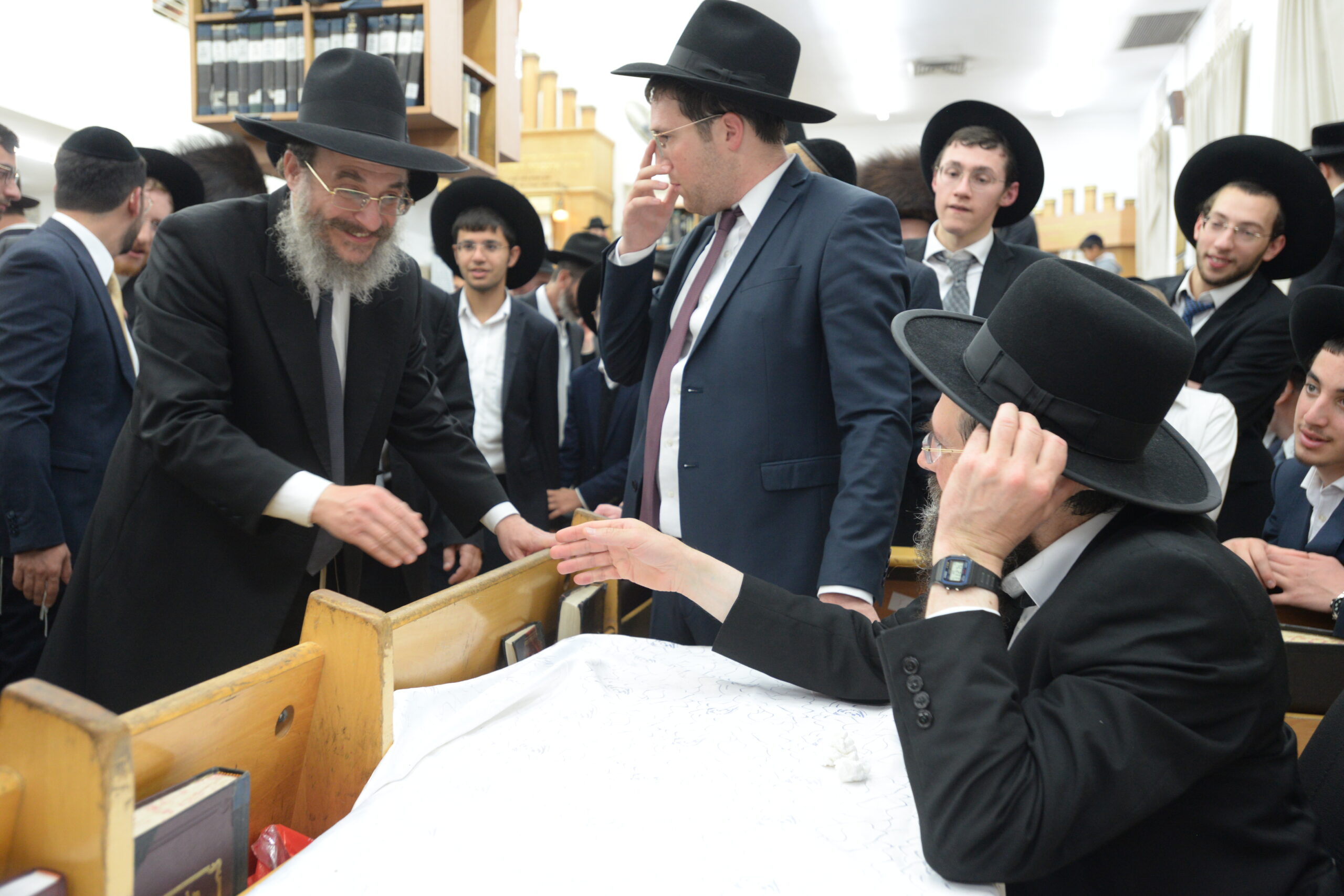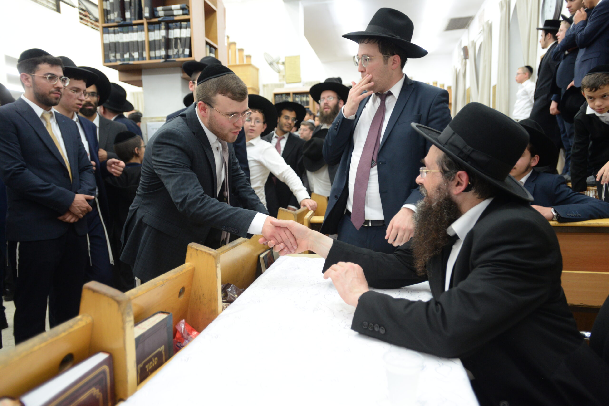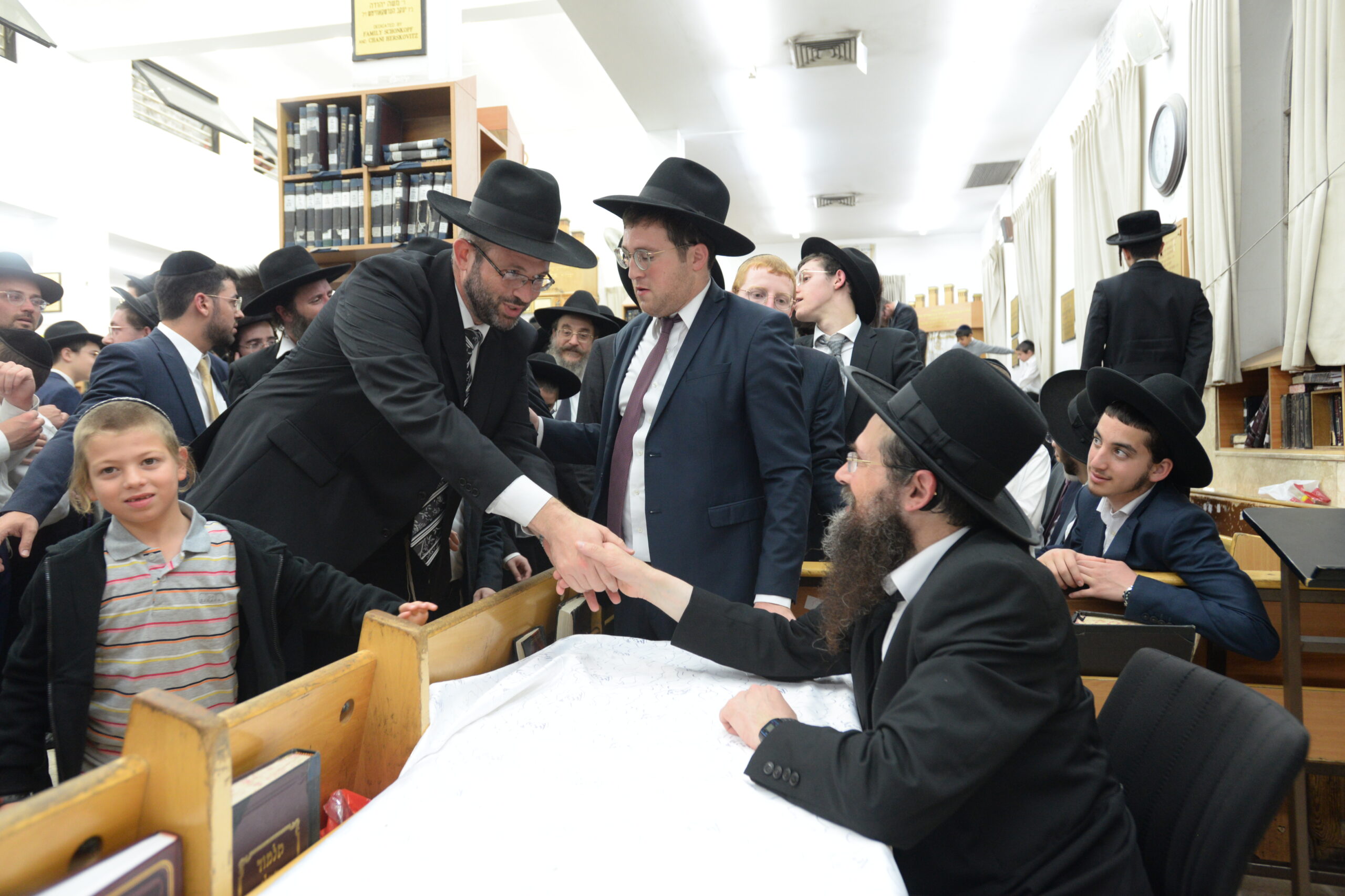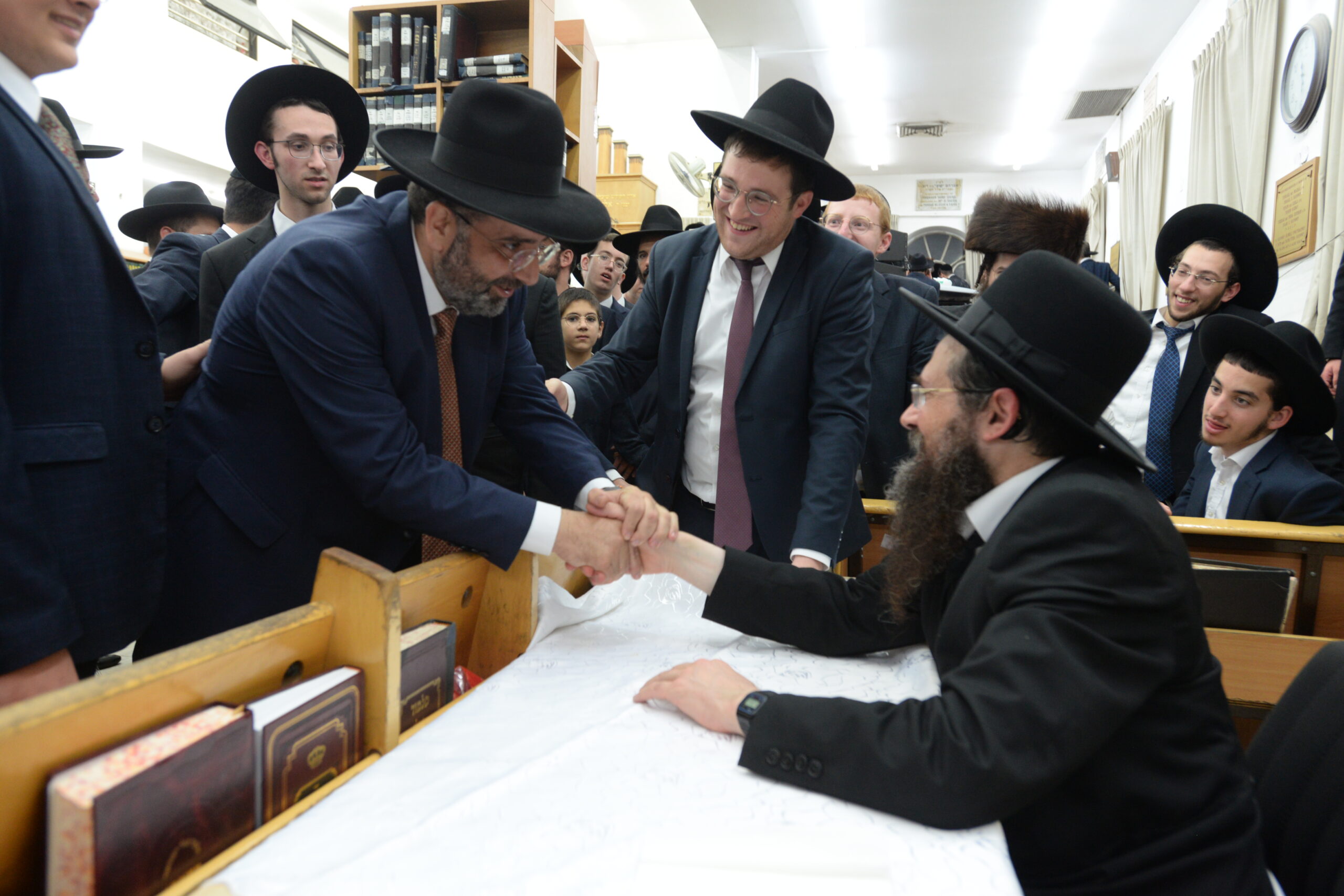 The Yeshiva’s Simchas Beis Hashoeva was held on Thursday, the second night of Chol Hamoed, beginning with music and dancing in the Mercazi Bais Medrash at 9:20. When the Roshei Yeshiva walked in about twenty minutes later, the olam broke out in tremendous excitement as they danced with their Rabbeim for several hours. Many visiting guests joined as well, taking the opportunity to wish the Roshei Yeshiva a Gut Yom Tov. All in all, there were around 9,000 people coming by throughout the night. The highlight of the event, as usual, was the kumzitz with inspiring songs of Yamim Noraim and Geulah at the end of the night, culminating in Leshana Haba’ah Bi’Yerushalayim.