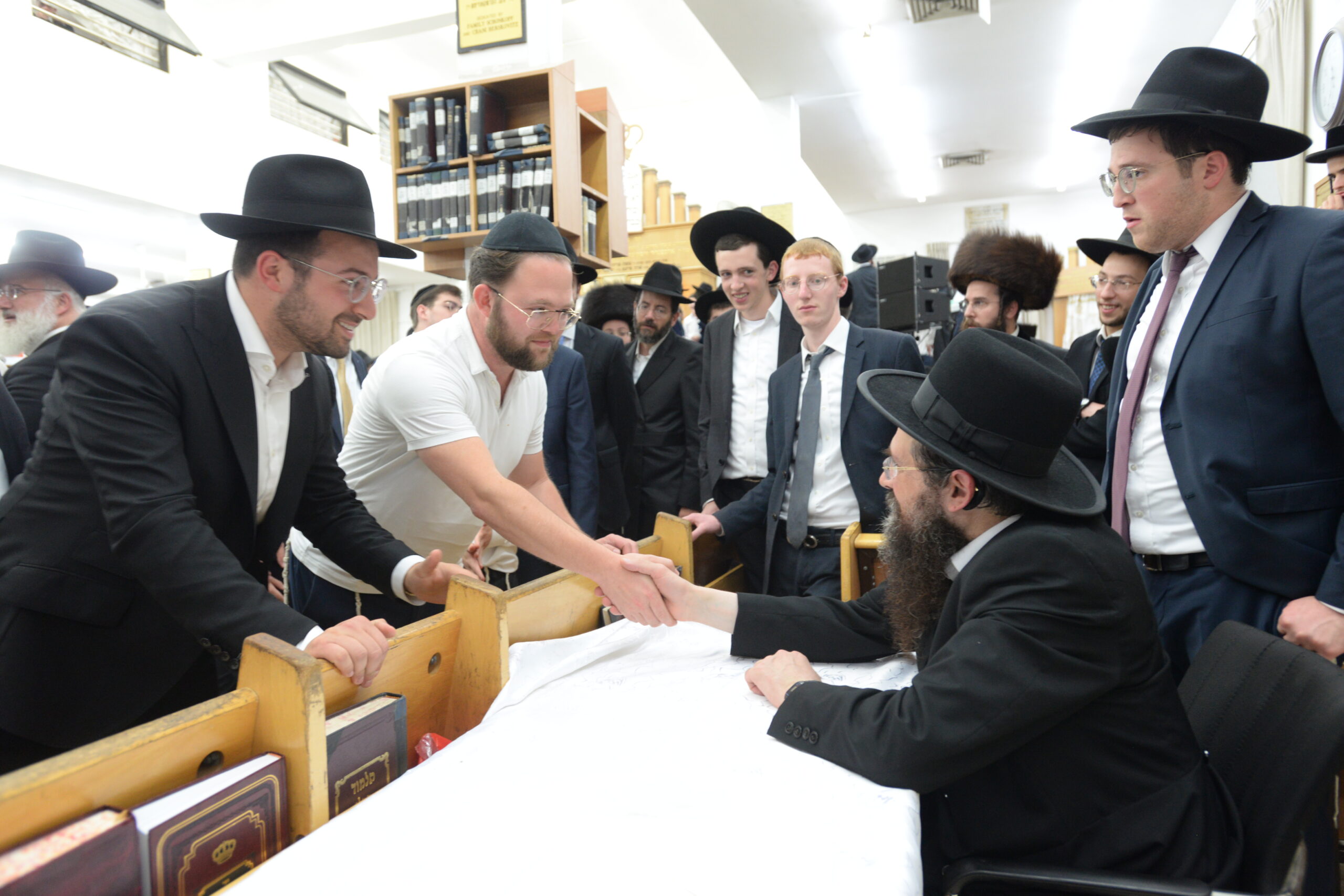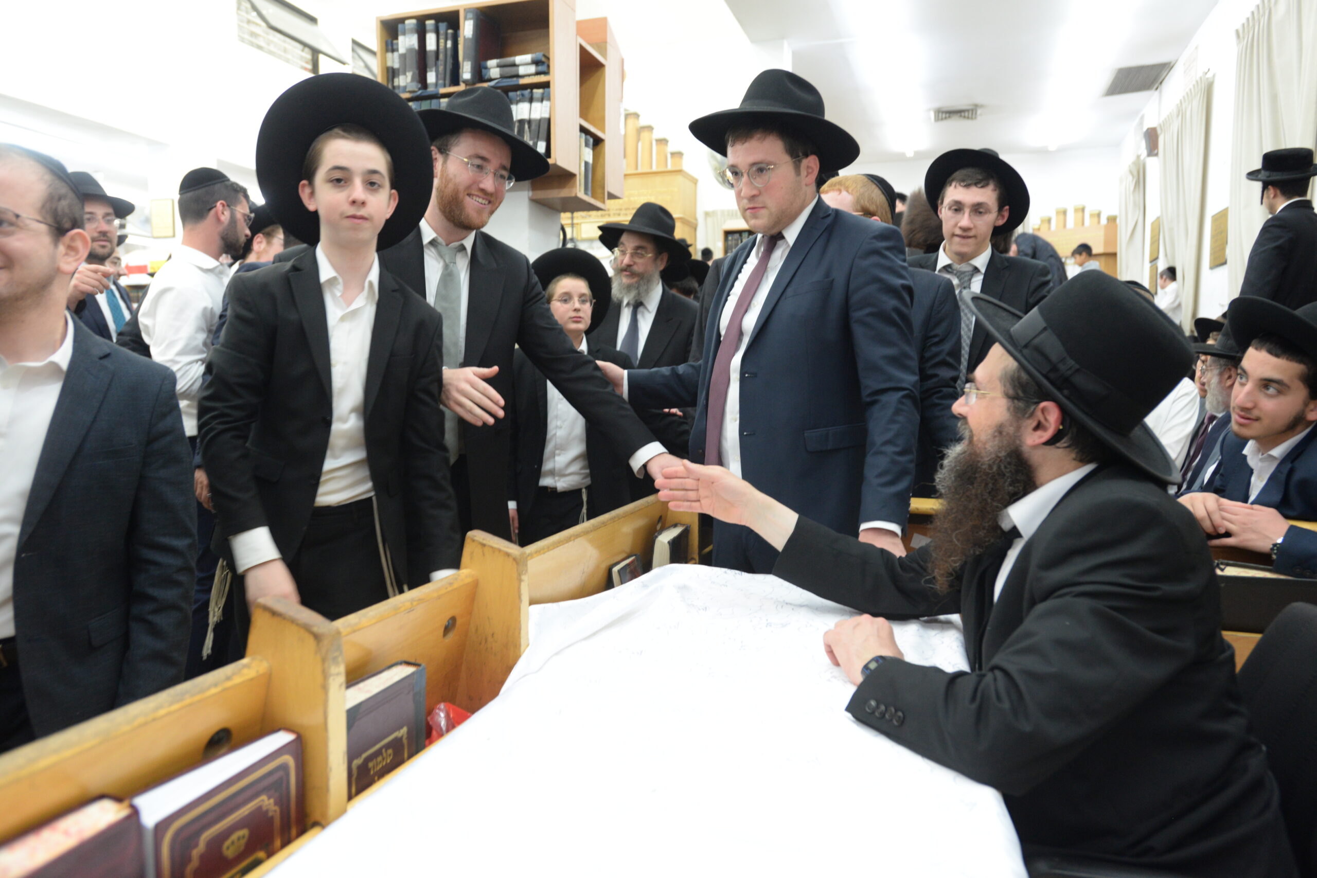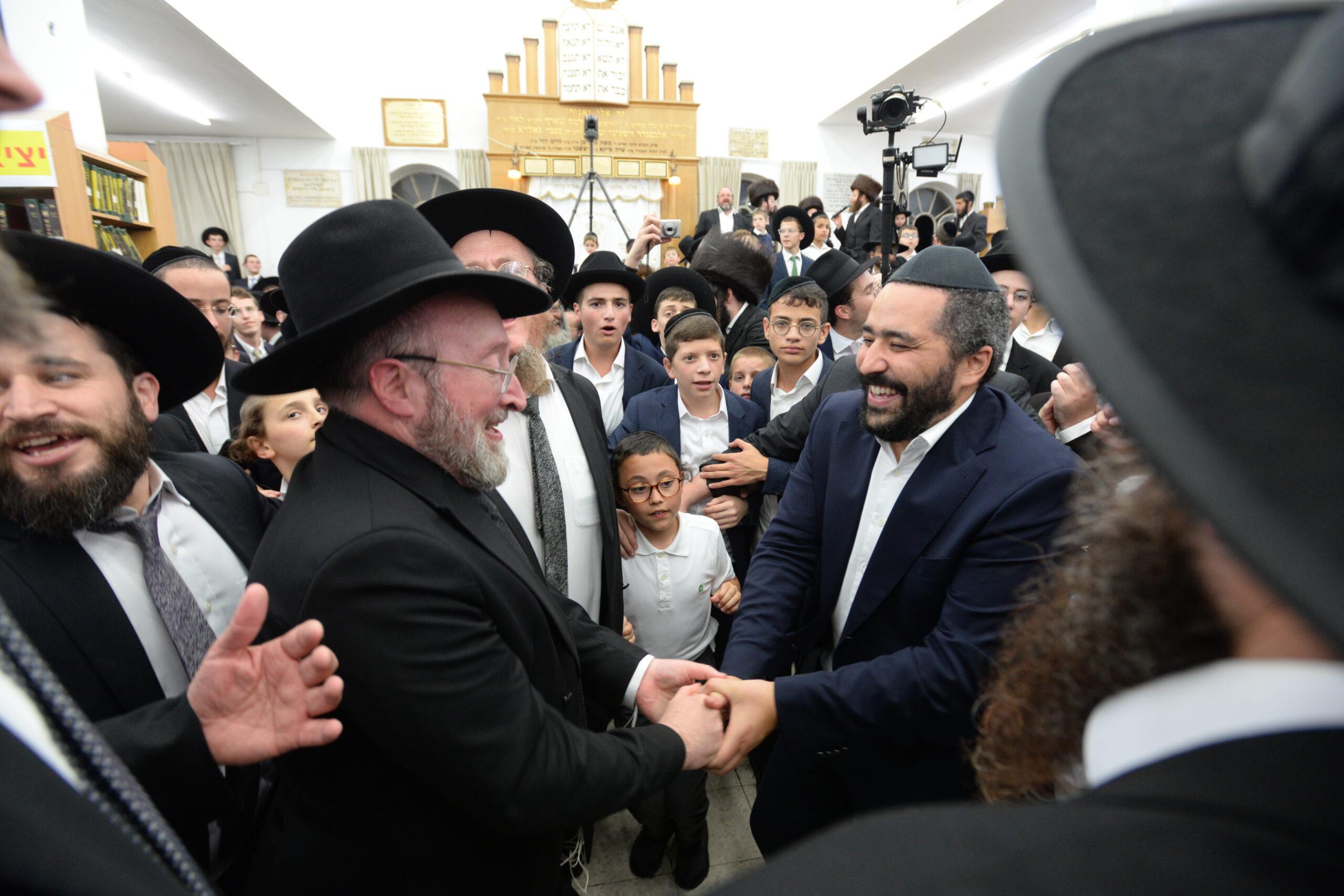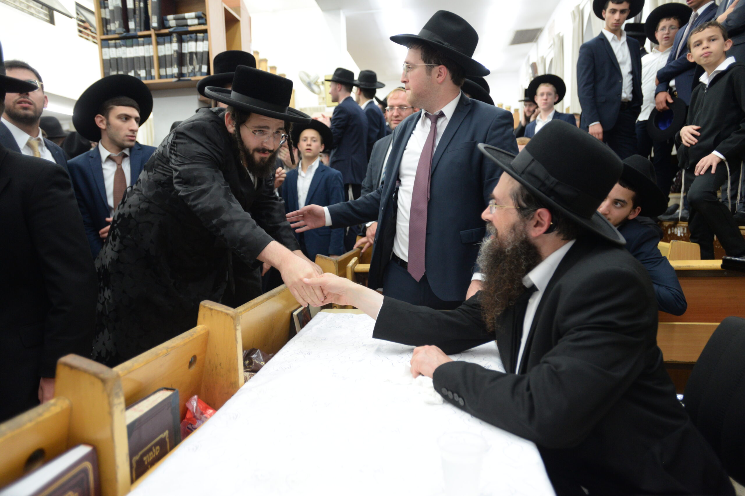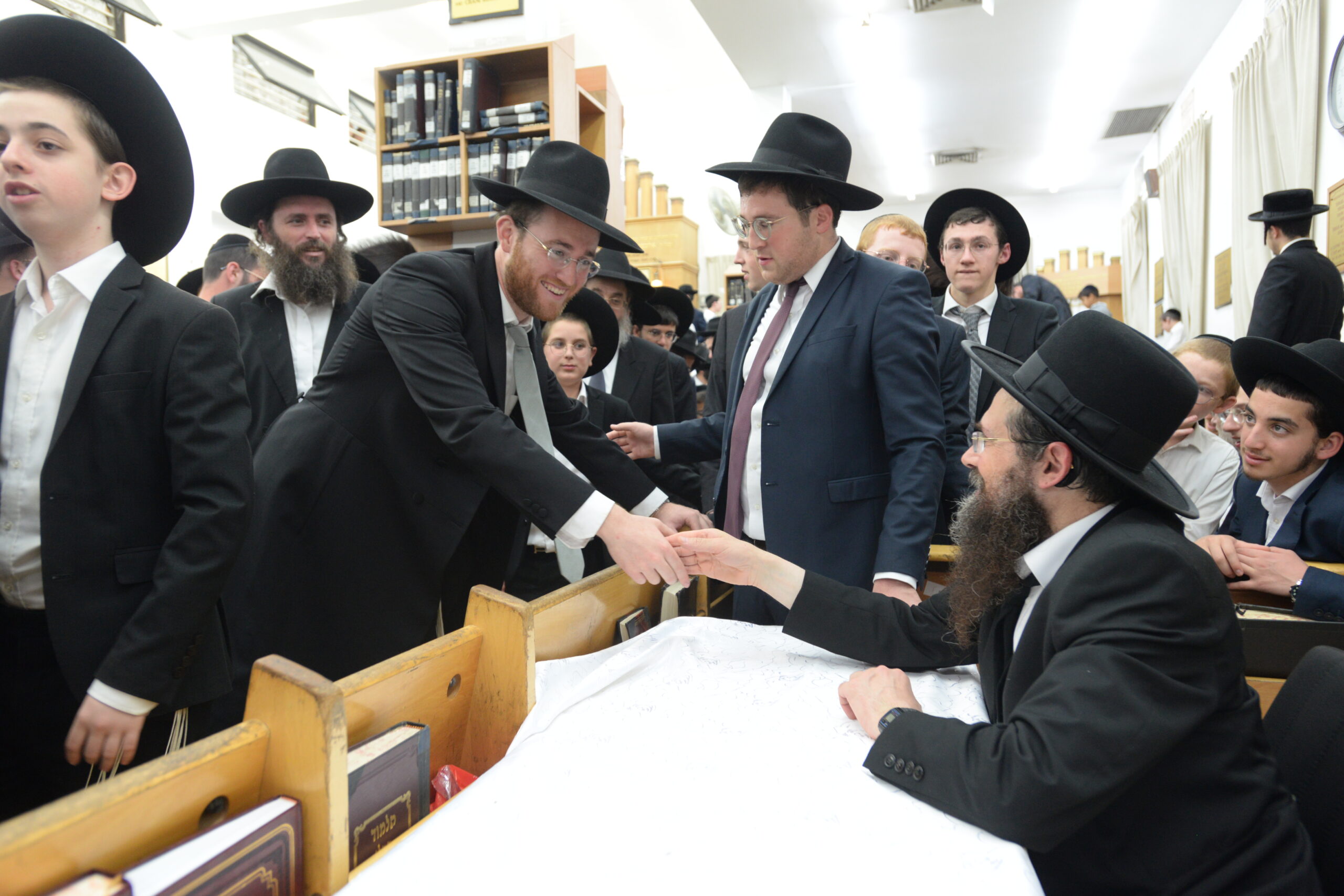 The Yeshiva’s Simchas Beis Hashoeva was held on Thursday, the second night of Chol Hamoed, beginning with music and dancing in the Mercazi Bais Medrash at 9:20. When the Roshei Yeshiva walked in about twenty minutes later, the olam broke out in tremendous excitement as they danced with their Rabbeim for several hours. Many visiting guests joined as well, taking the opportunity to wish the Roshei Yeshiva a Gut Yom Tov. All in all, there were around 9,000 people coming by throughout the night. The highlight of the event, as usual, was the kumzitz with inspiring songs of Yamim Noraim and Geulah at the end of the night, culminating in Leshana Haba’ah Bi’Yerushalayim.