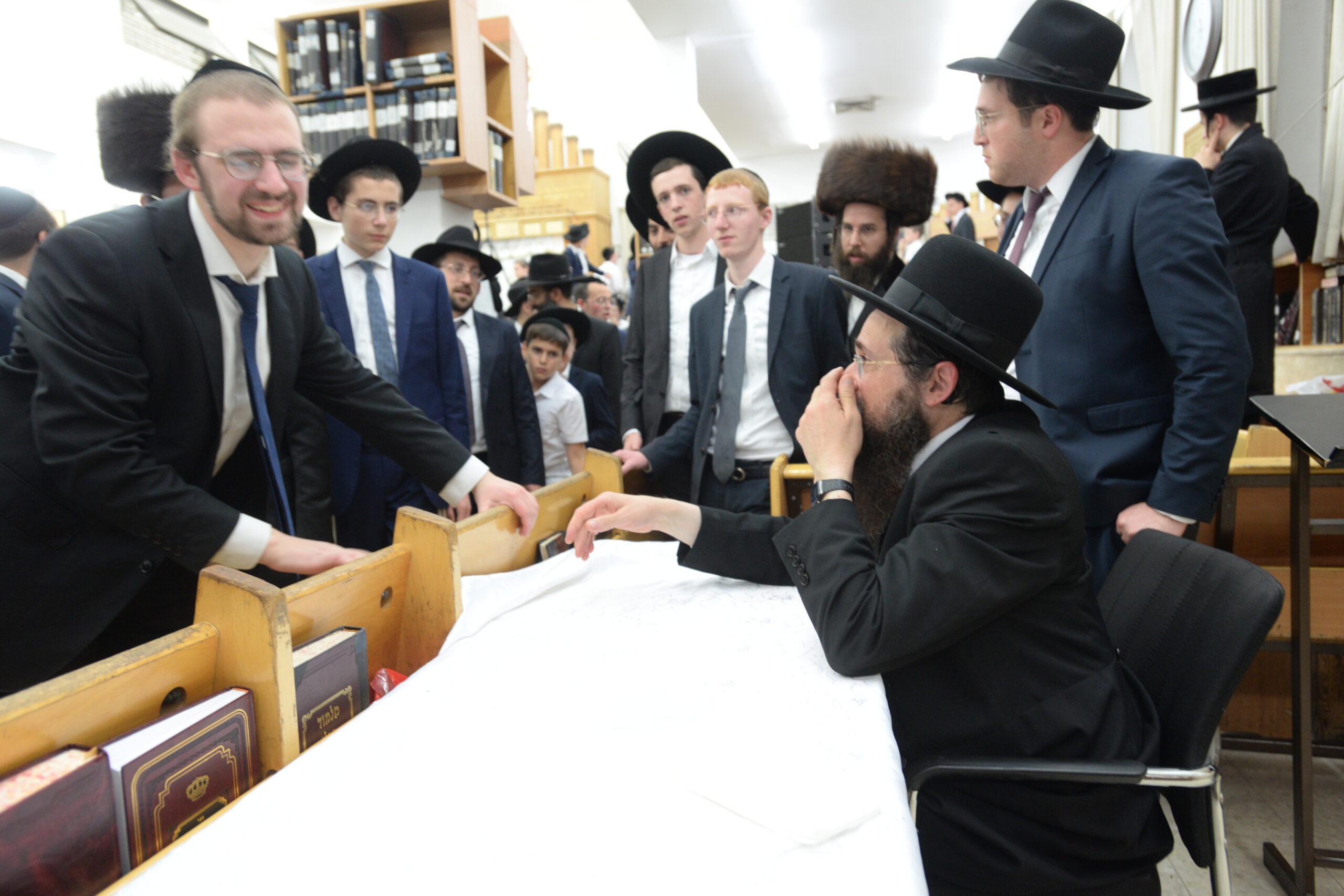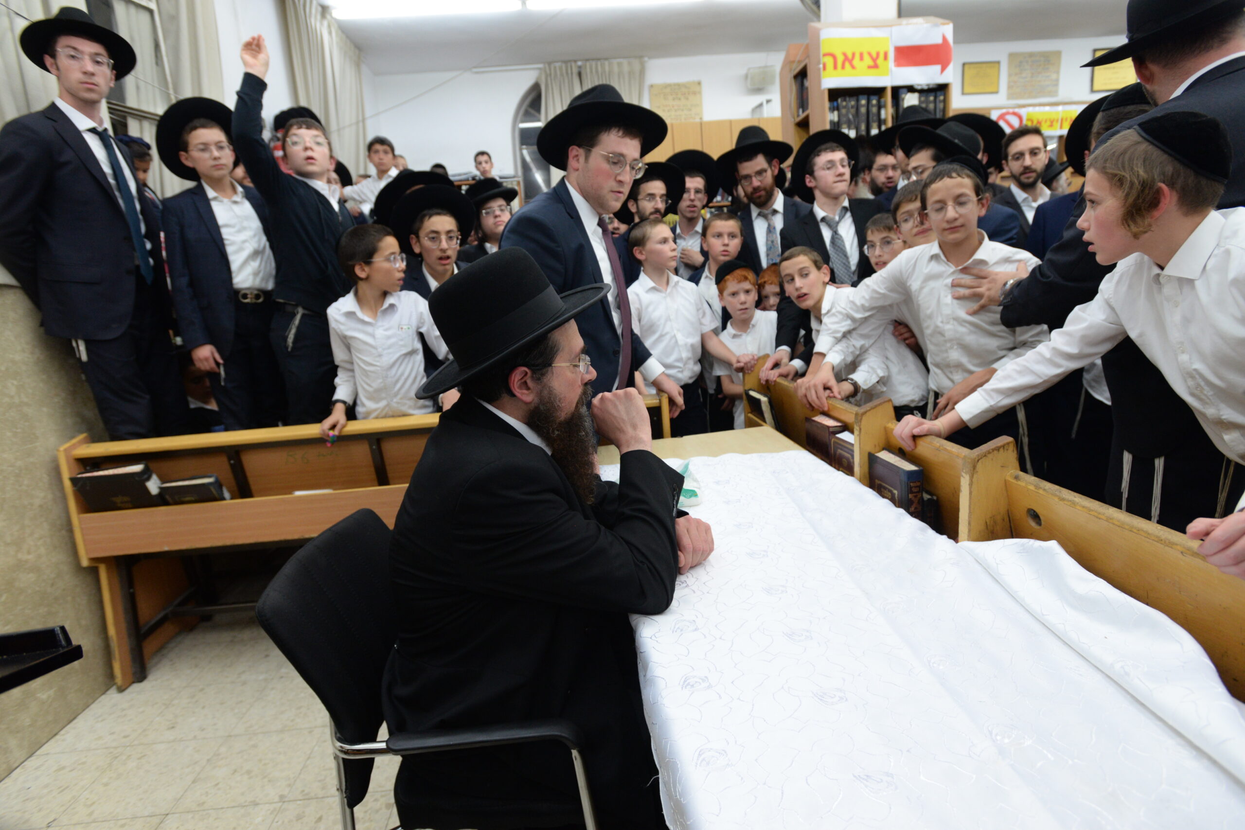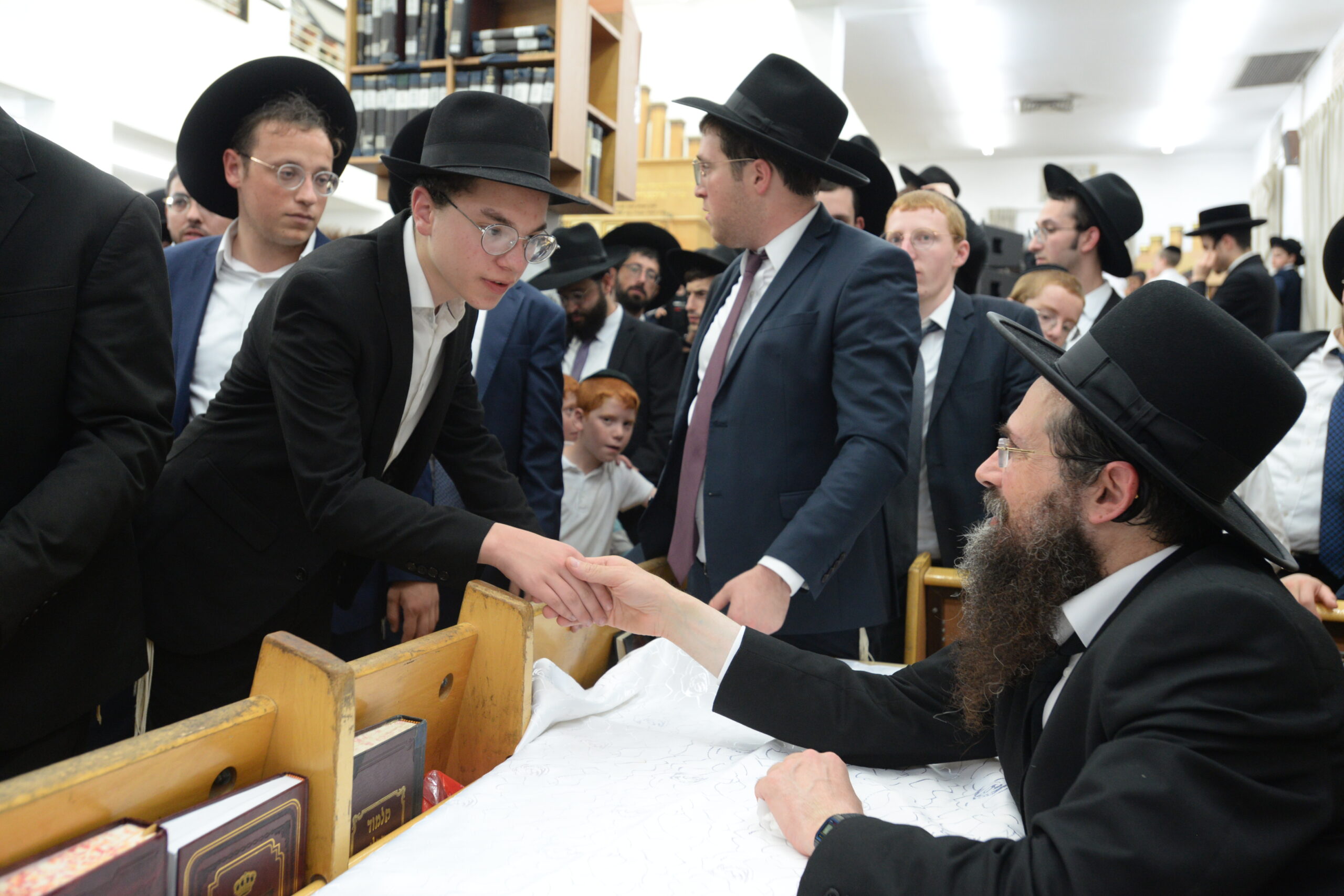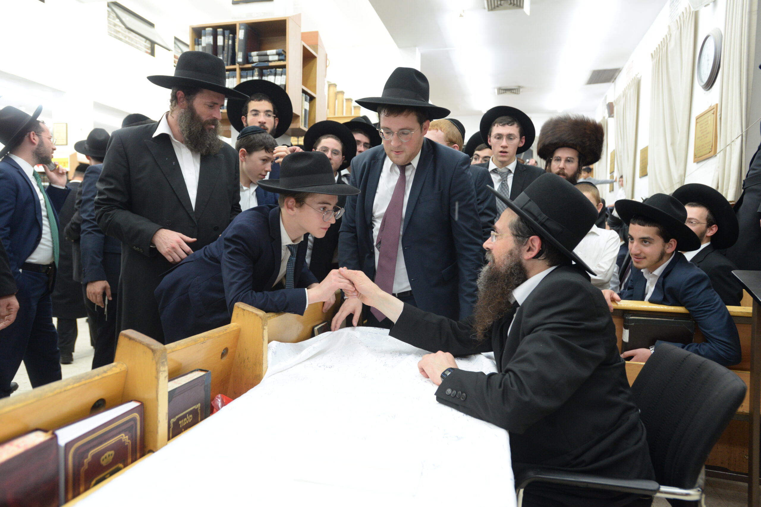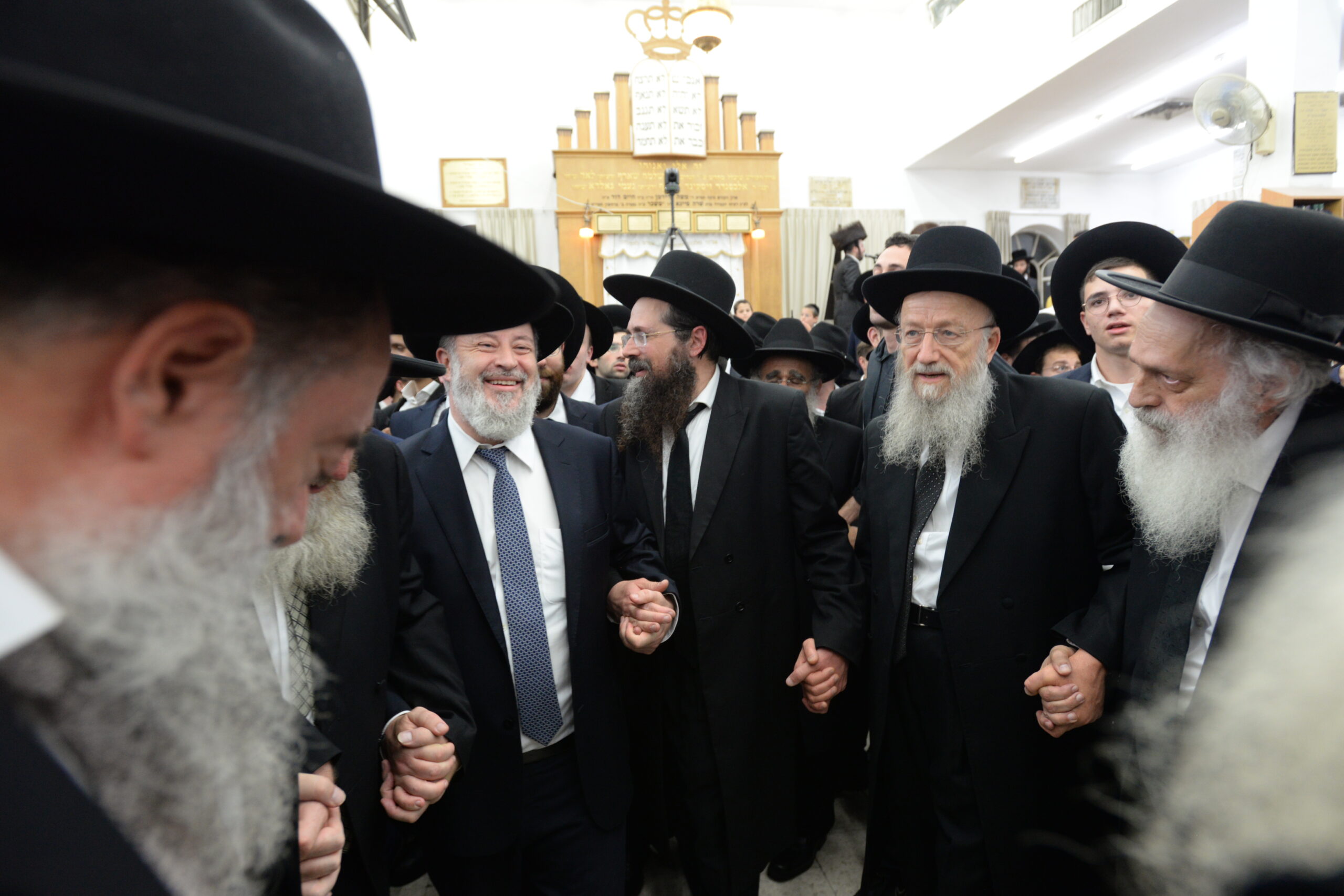 The Yeshiva’s Simchas Beis Hashoeva was held on Thursday, the second night of Chol Hamoed, beginning with music and dancing in the Mercazi Bais Medrash at 9:20. When the Roshei Yeshiva walked in about twenty minutes later, the olam broke out in tremendous excitement as they danced with their Rabbeim for several hours. Many visiting guests joined as well, taking the opportunity to wish the Roshei Yeshiva a Gut Yom Tov. All in all, there were around 9,000 people coming by throughout the night. The highlight of the event, as usual, was the kumzitz with inspiring songs of Yamim Noraim and Geulah at the end of the night, culminating in Leshana Haba’ah Bi’Yerushalayim.