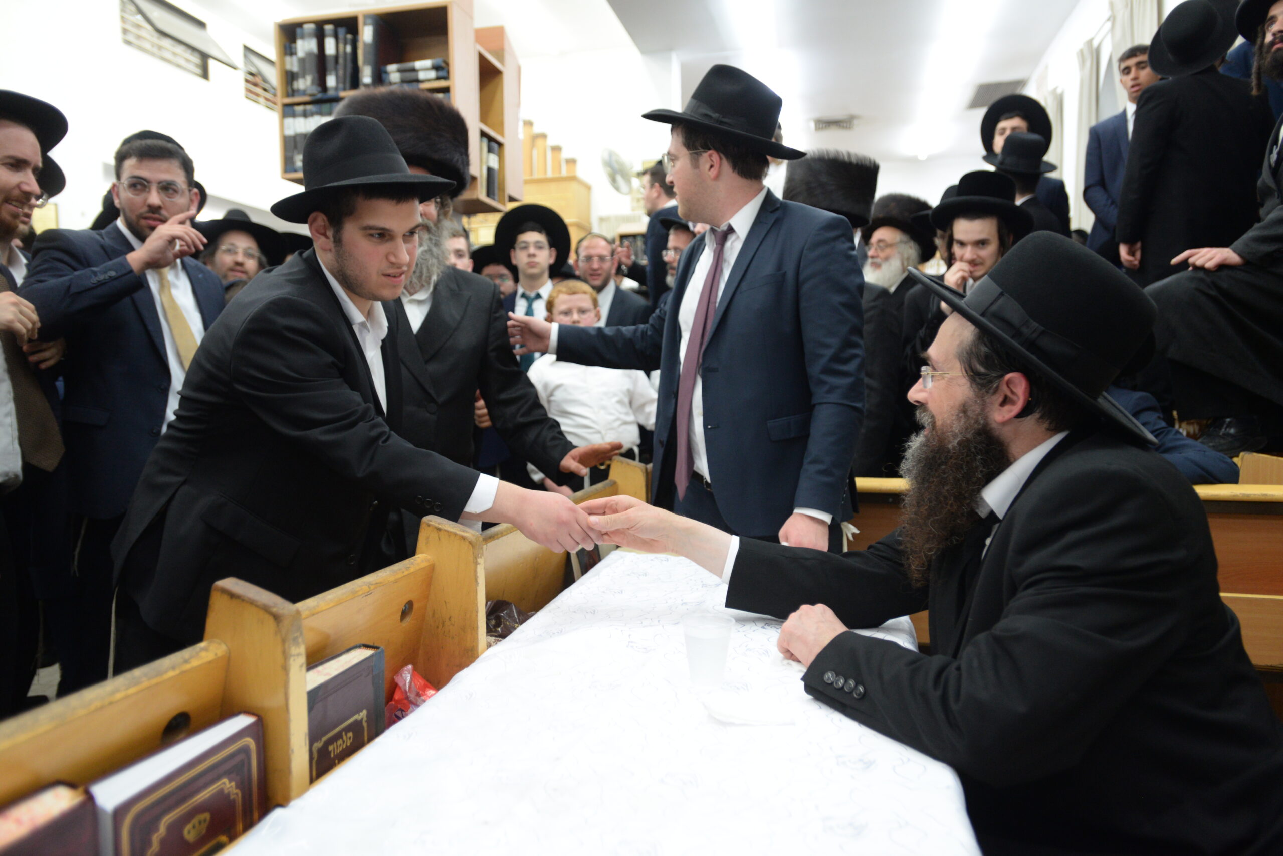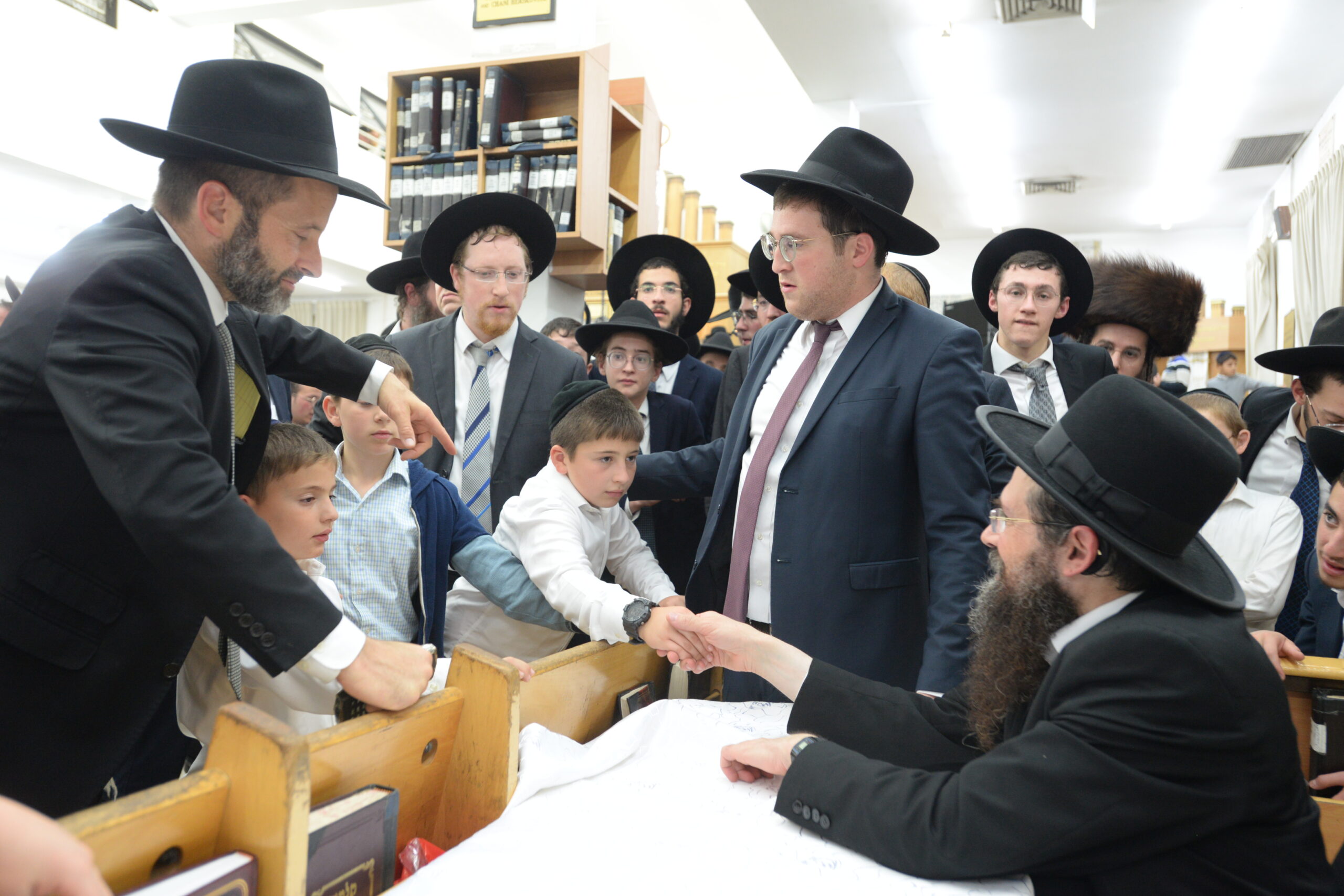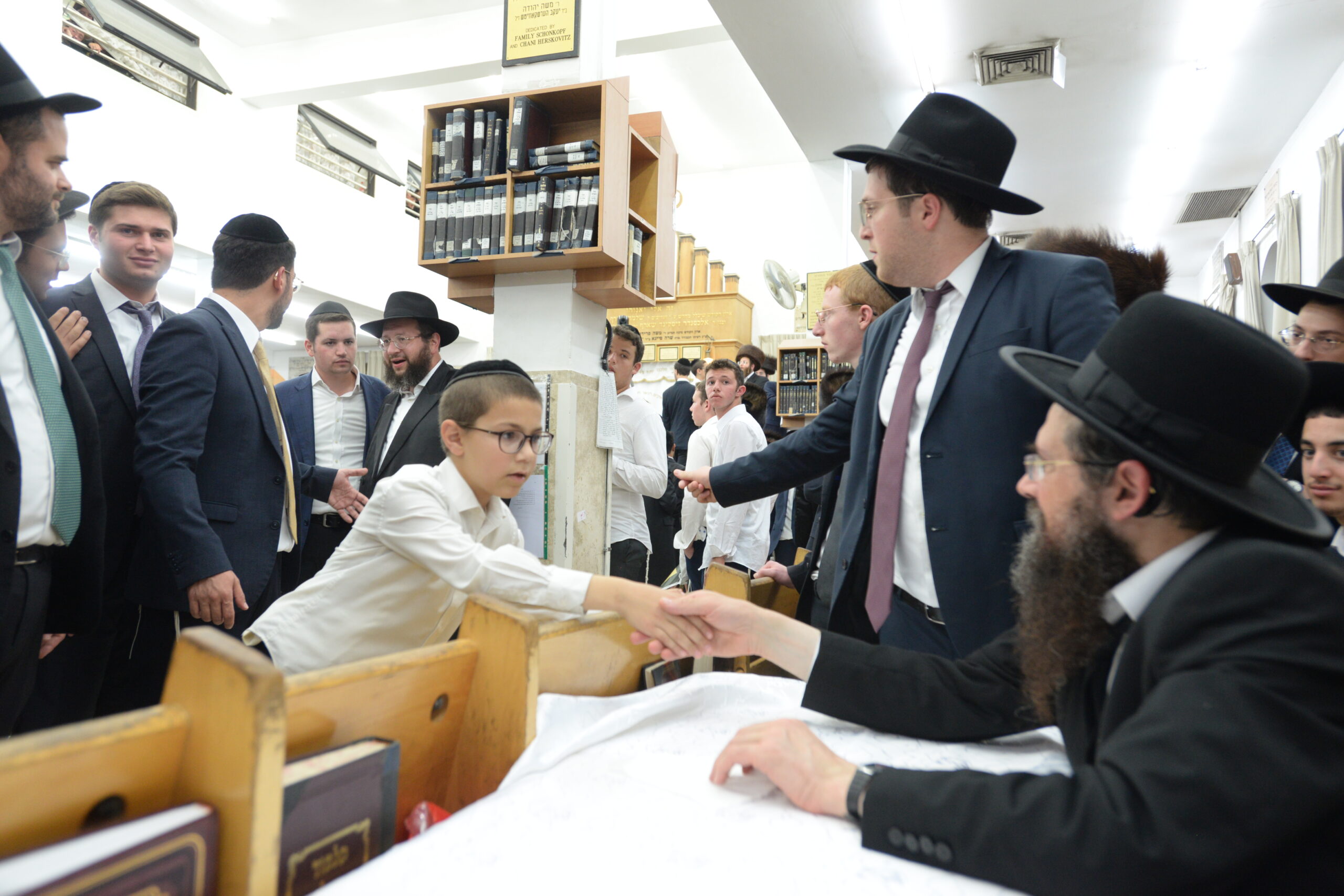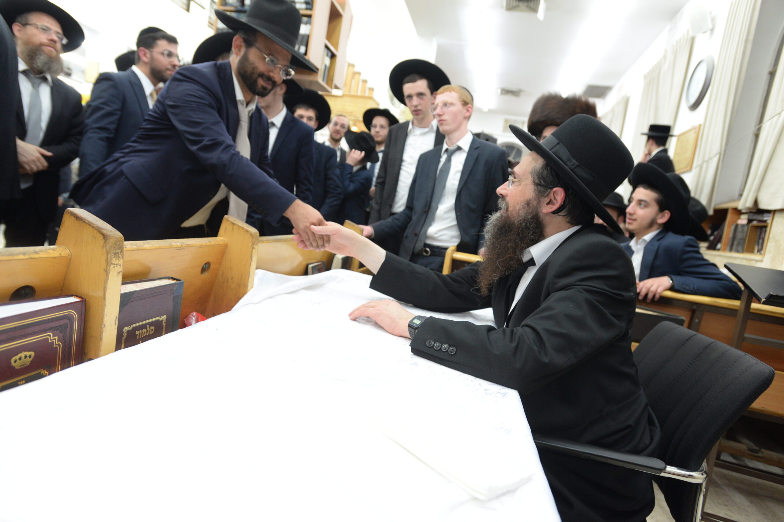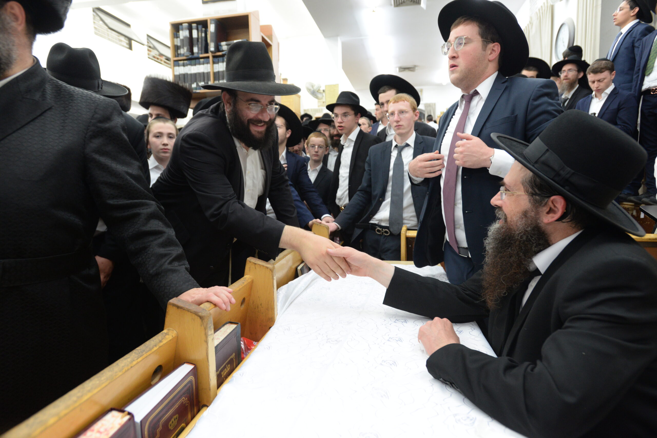 The Yeshiva’s Simchas Beis Hashoeva was held on Thursday, the second night of Chol Hamoed, beginning with music and dancing in the Mercazi Bais Medrash at 9:20. When the Roshei Yeshiva walked in about twenty minutes later, the olam broke out in tremendous excitement as they danced with their Rabbeim for several hours. Many visiting guests joined as well, taking the opportunity to wish the Roshei Yeshiva a Gut Yom Tov. All in all, there were around 9,000 people coming by throughout the night. The highlight of the event, as usual, was the kumzitz with inspiring songs of Yamim Noraim and Geulah at the end of the night, culminating in Leshana Haba’ah Bi’Yerushalayim.