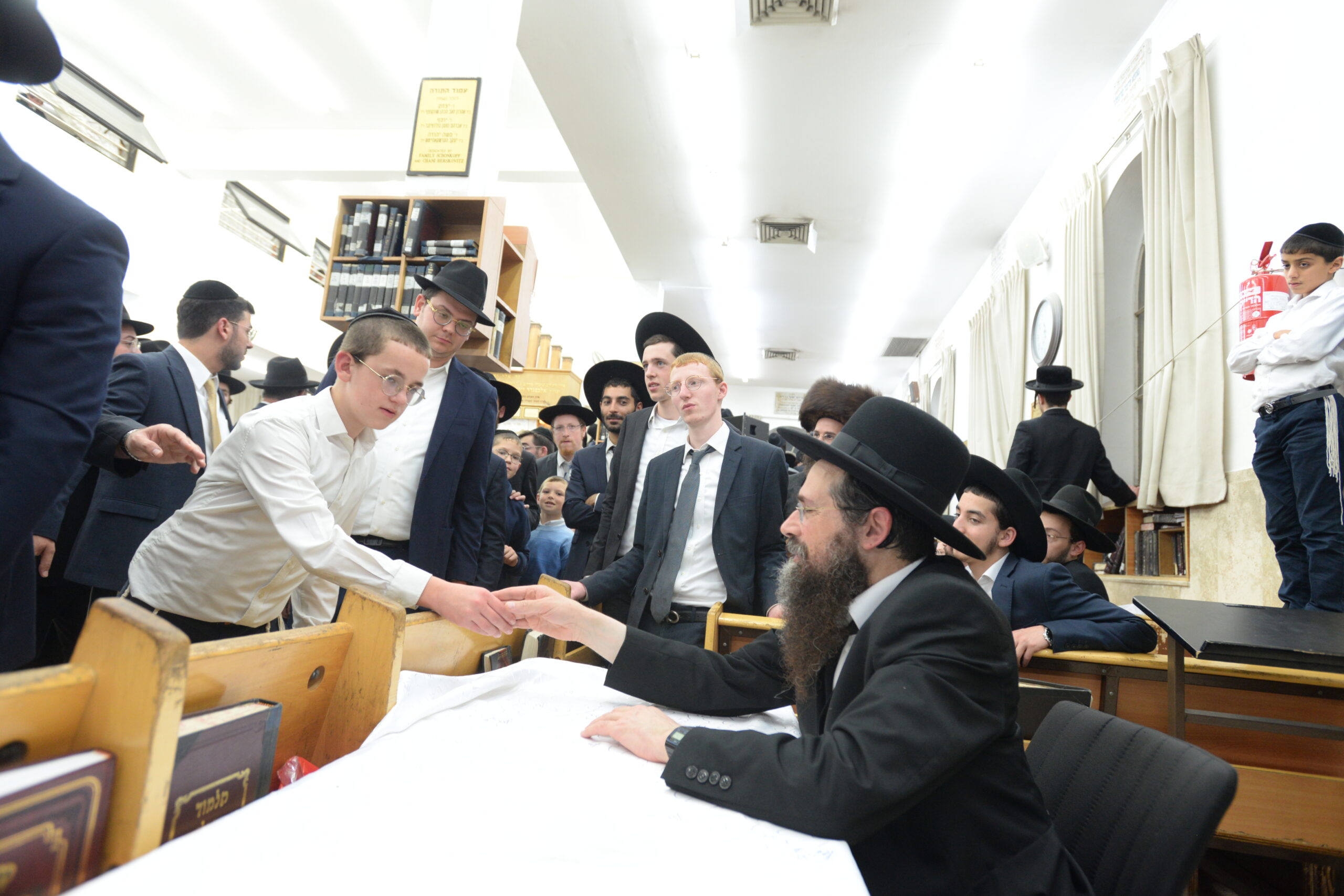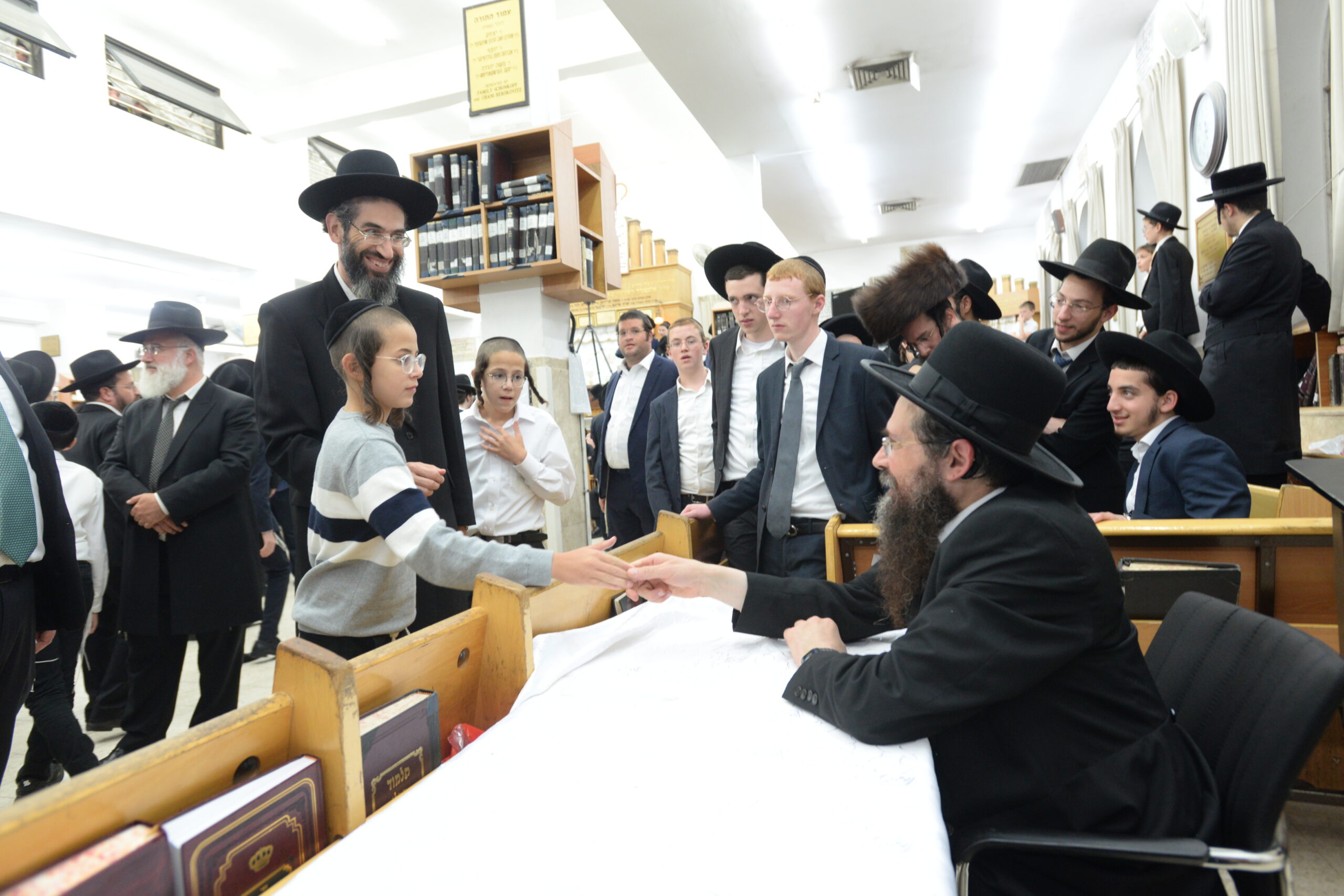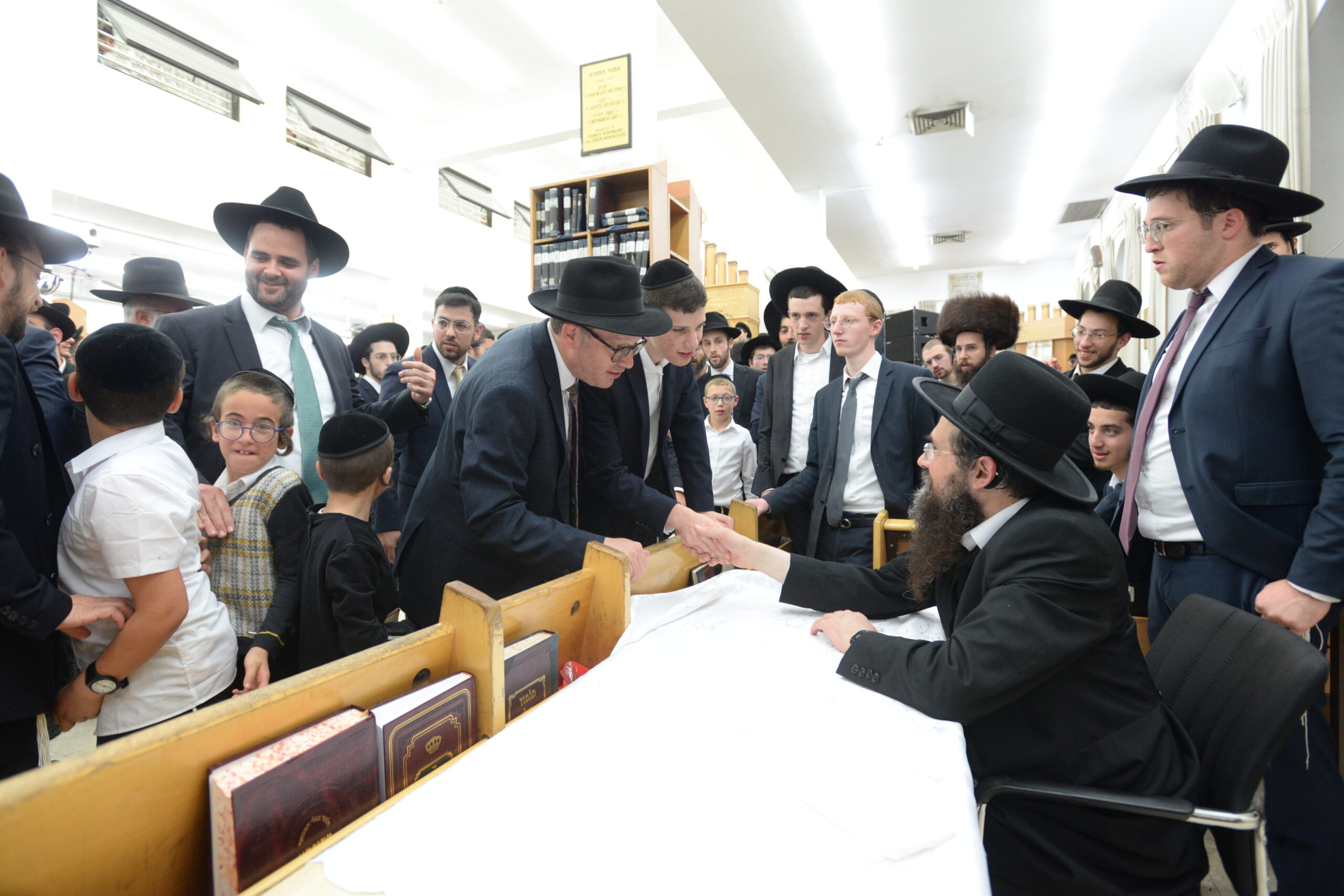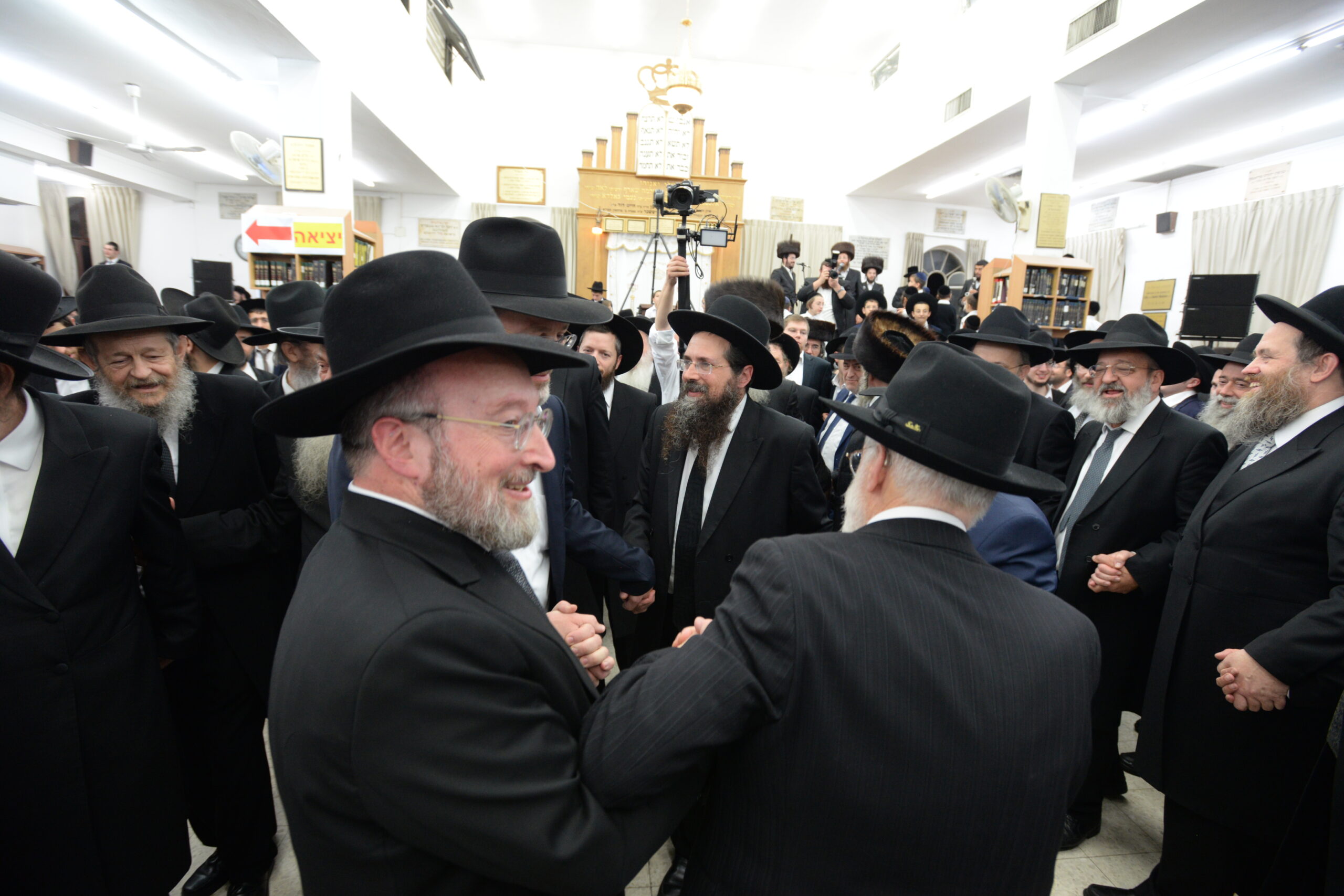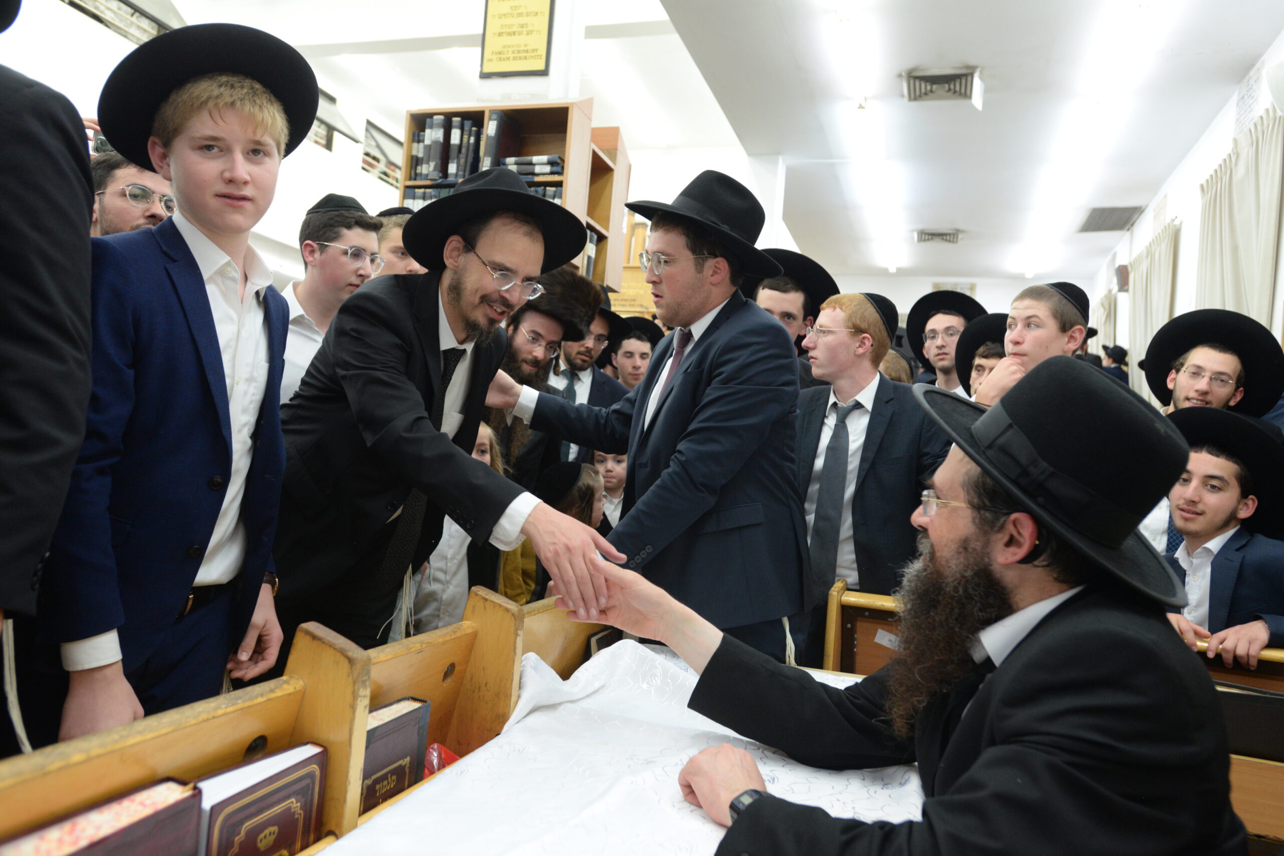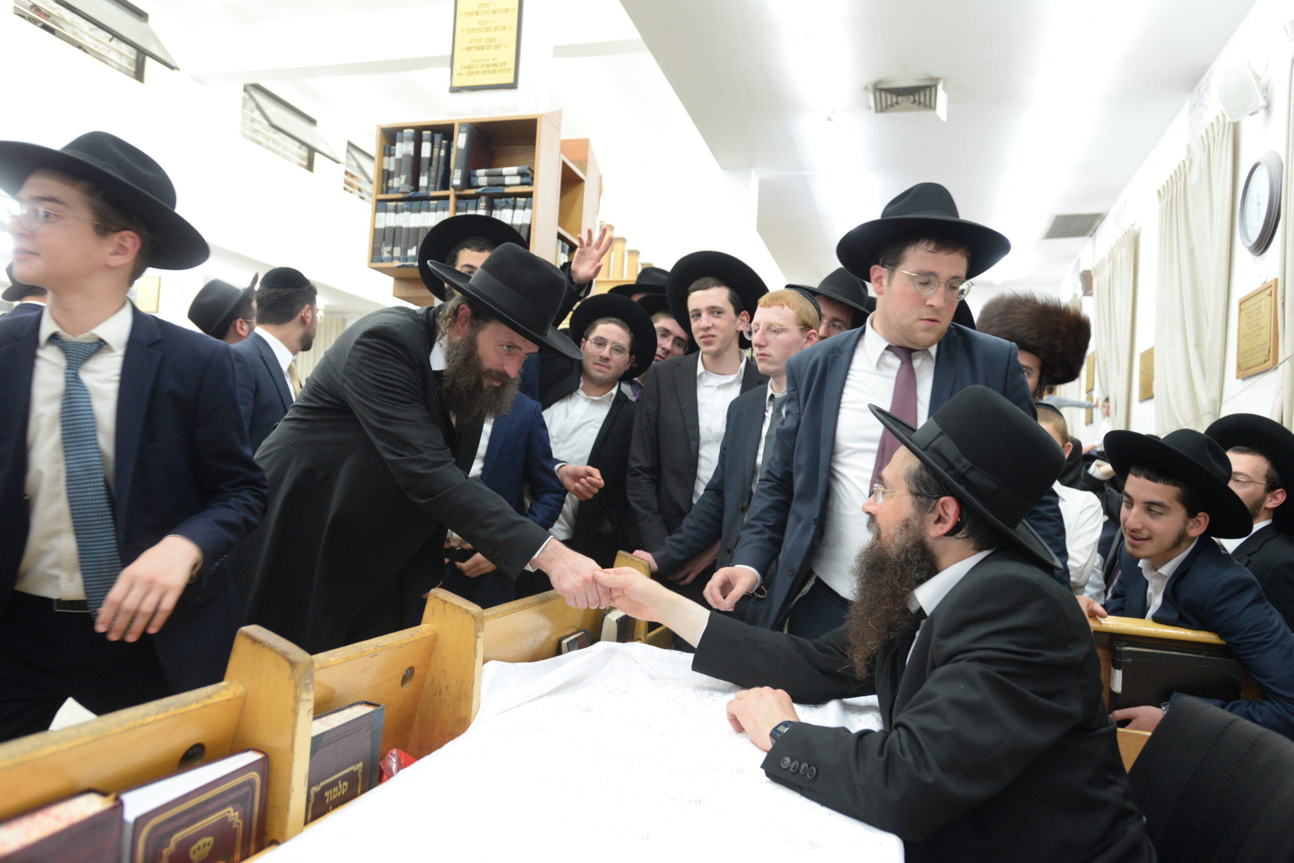 The Yeshiva’s Simchas Beis Hashoeva was held on Thursday, the second night of Chol Hamoed, beginning with music and dancing in the Mercazi Bais Medrash at 9:20. When the Roshei Yeshiva walked in about twenty minutes later, the olam broke out in tremendous excitement as they danced with their Rabbeim for several hours. Many visiting guests joined as well, taking the opportunity to wish the Roshei Yeshiva a Gut Yom Tov. All in all, there were around 9,000 people coming by throughout the night. The highlight of the event, as usual, was the kumzitz with inspiring songs of Yamim Noraim and Geulah at the end of the night, culminating in Leshana Haba’ah Bi’Yerushalayim.