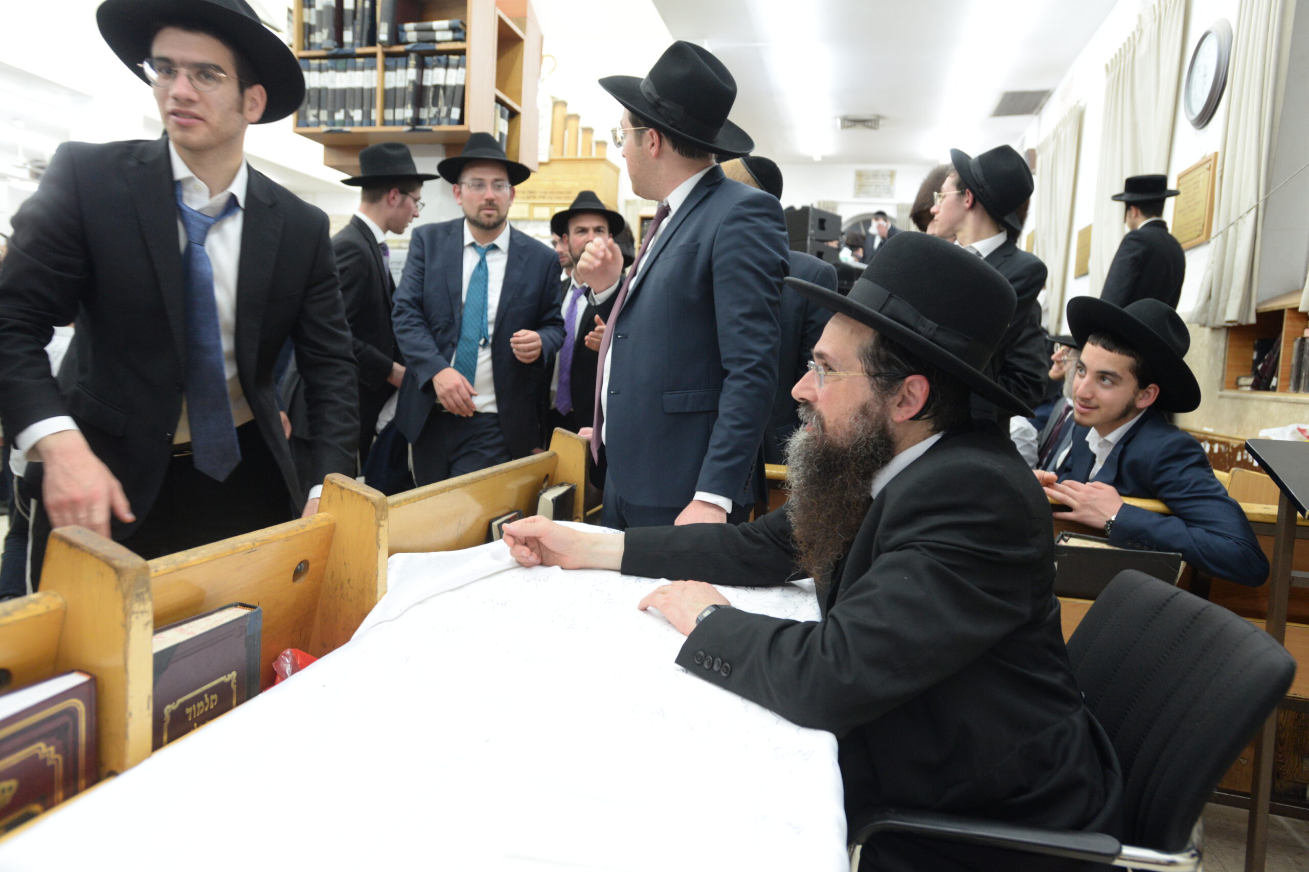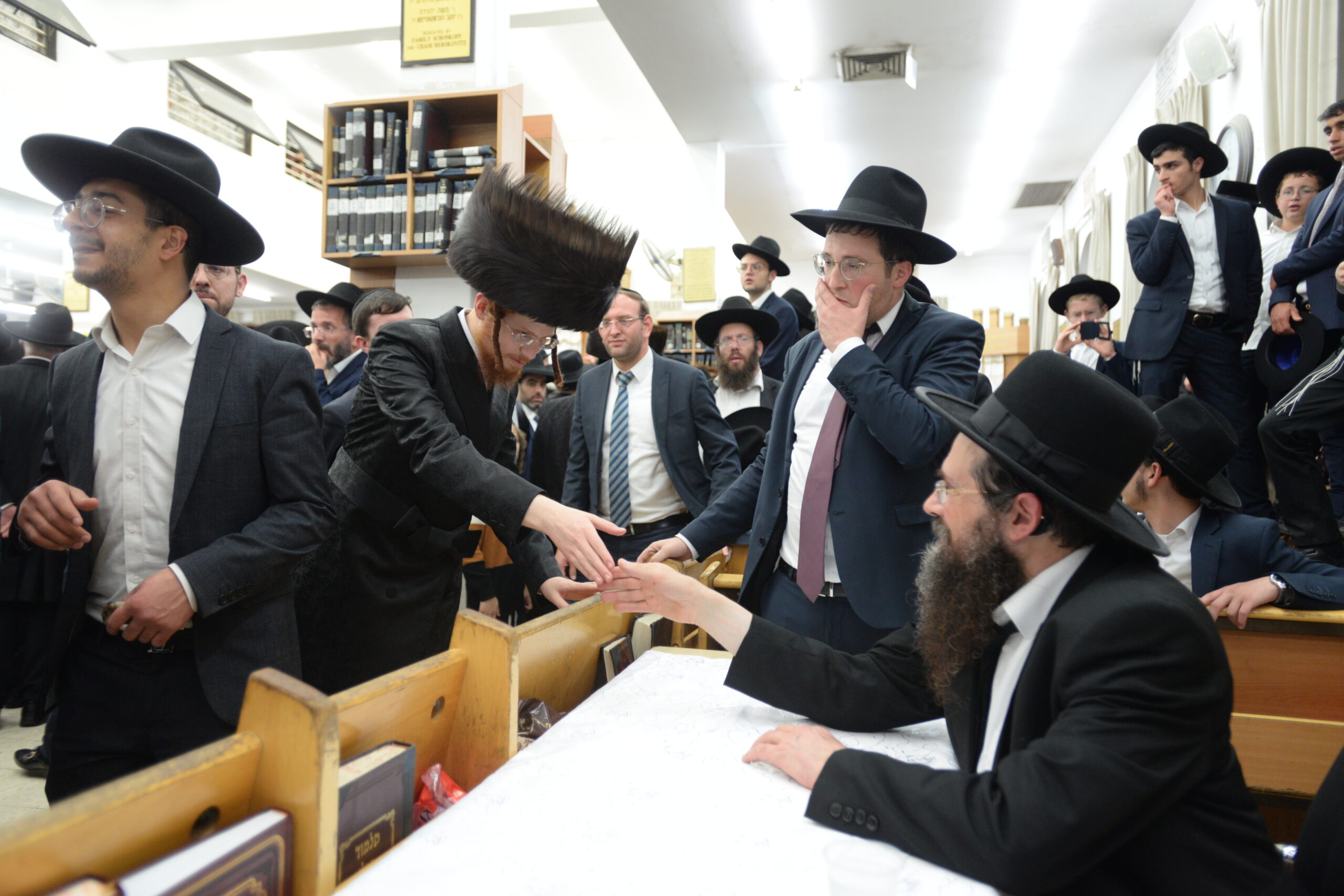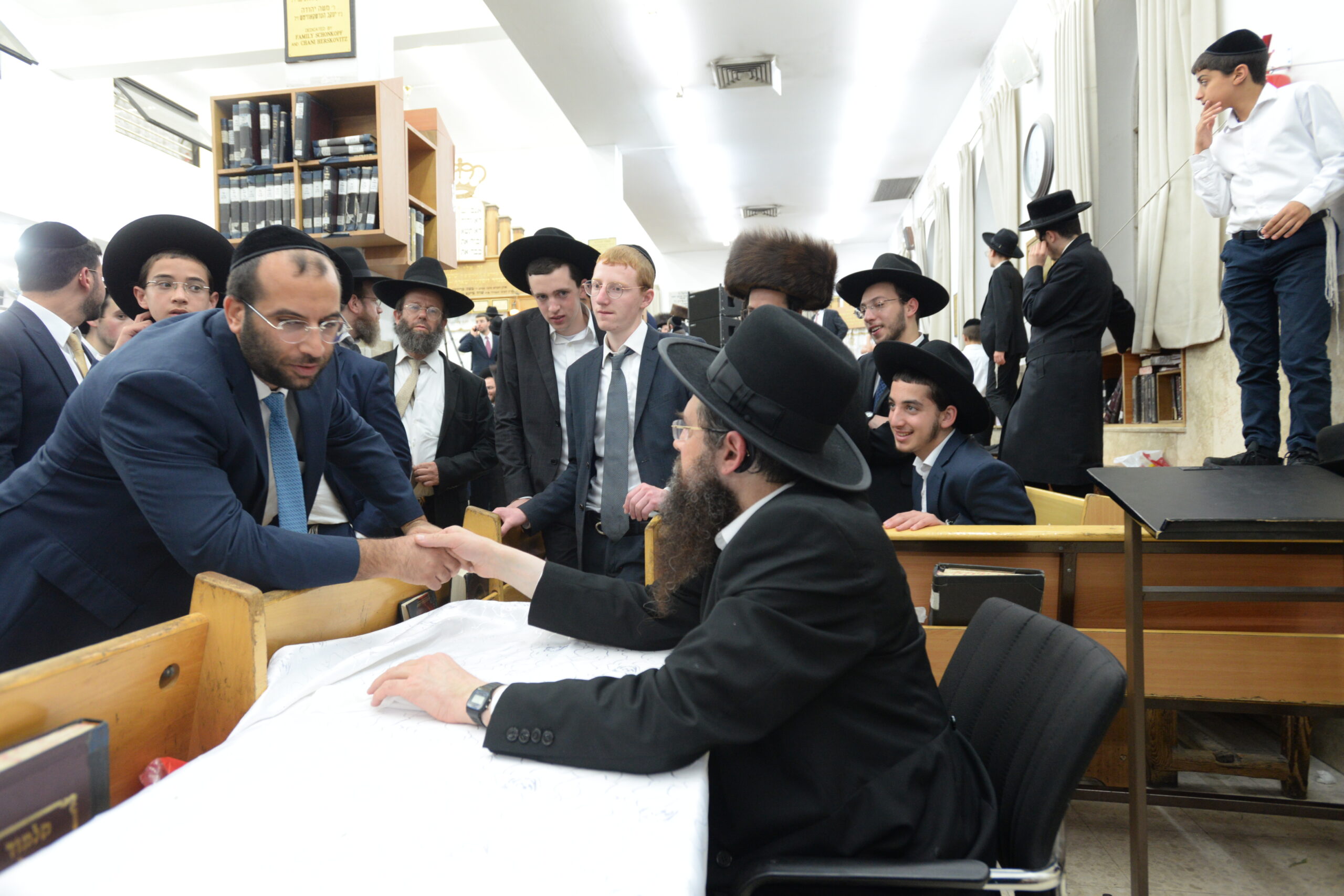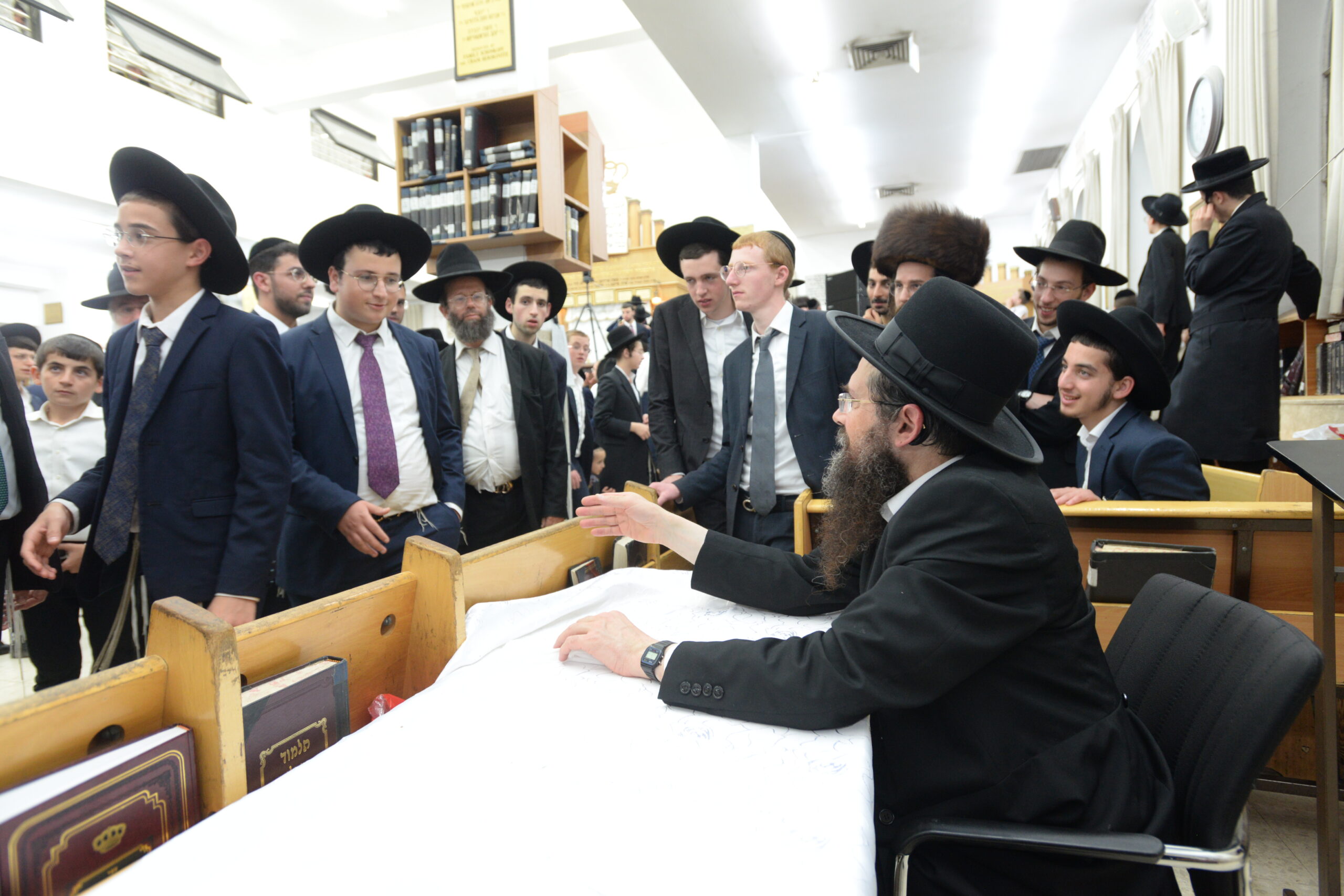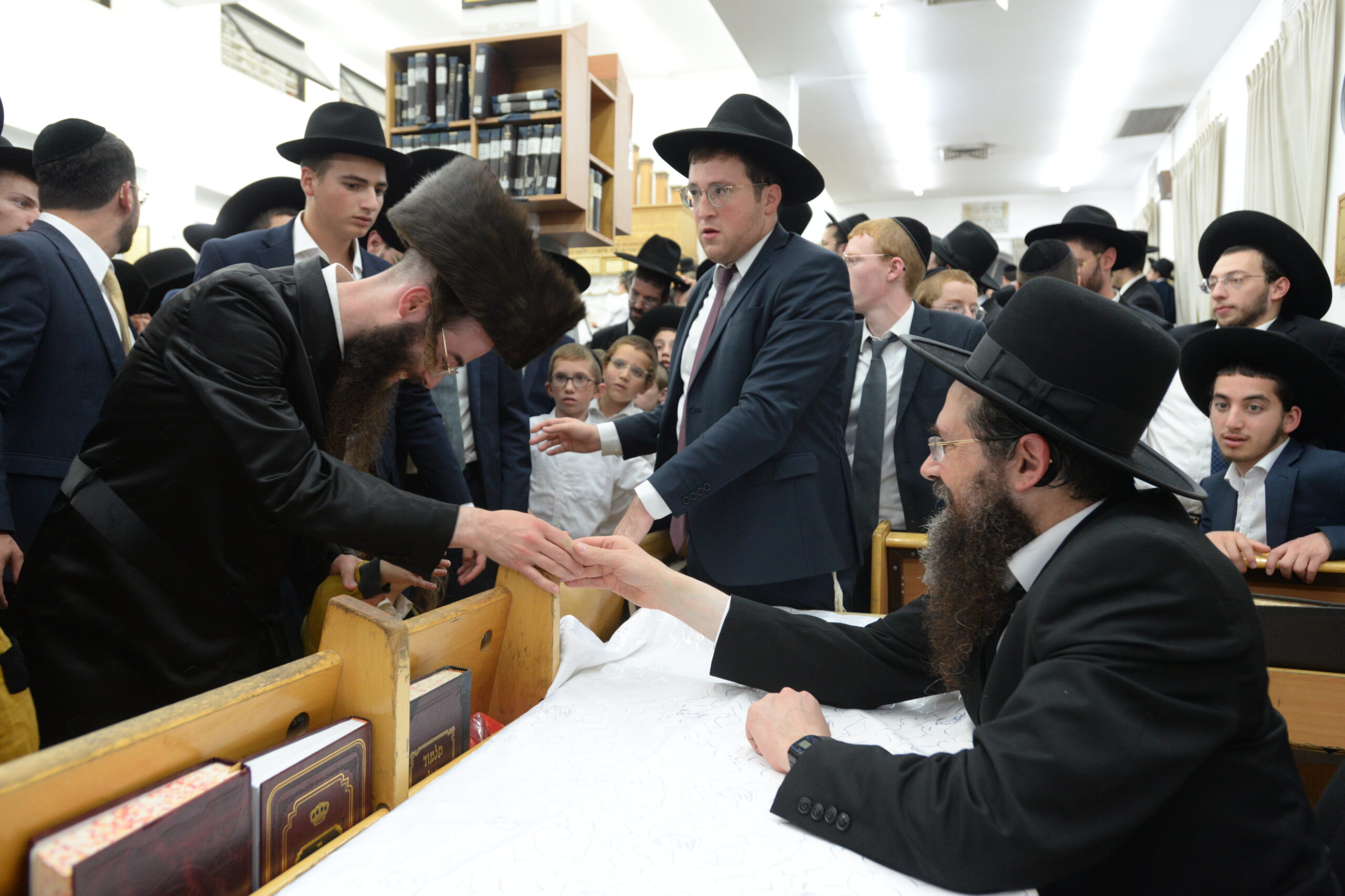 The Yeshiva’s Simchas Beis Hashoeva was held on Thursday, the second night of Chol Hamoed, beginning with music and dancing in the Mercazi Bais Medrash at 9:20. When the Roshei Yeshiva walked in about twenty minutes later, the olam broke out in tremendous excitement as they danced with their Rabbeim for several hours. Many visiting guests joined as well, taking the opportunity to wish the Roshei Yeshiva a Gut Yom Tov. All in all, there were around 9,000 people coming by throughout the night. The highlight of the event, as usual, was the kumzitz with inspiring songs of Yamim Noraim and Geulah at the end of the night, culminating in Leshana Haba’ah Bi’Yerushalayim.