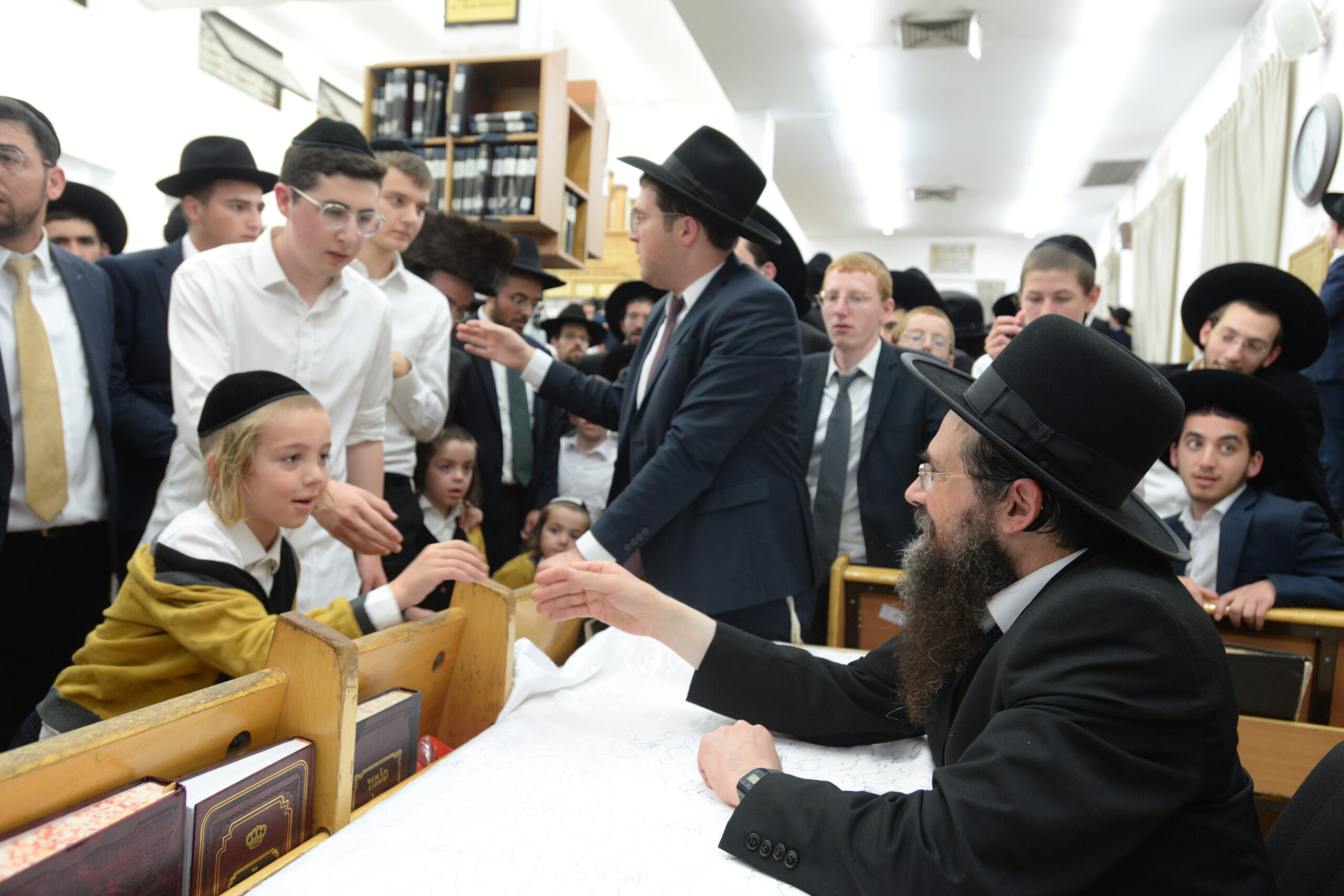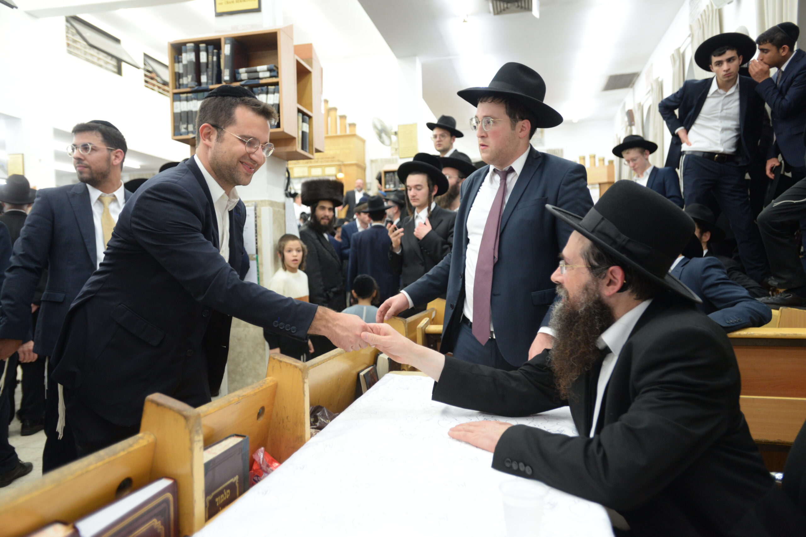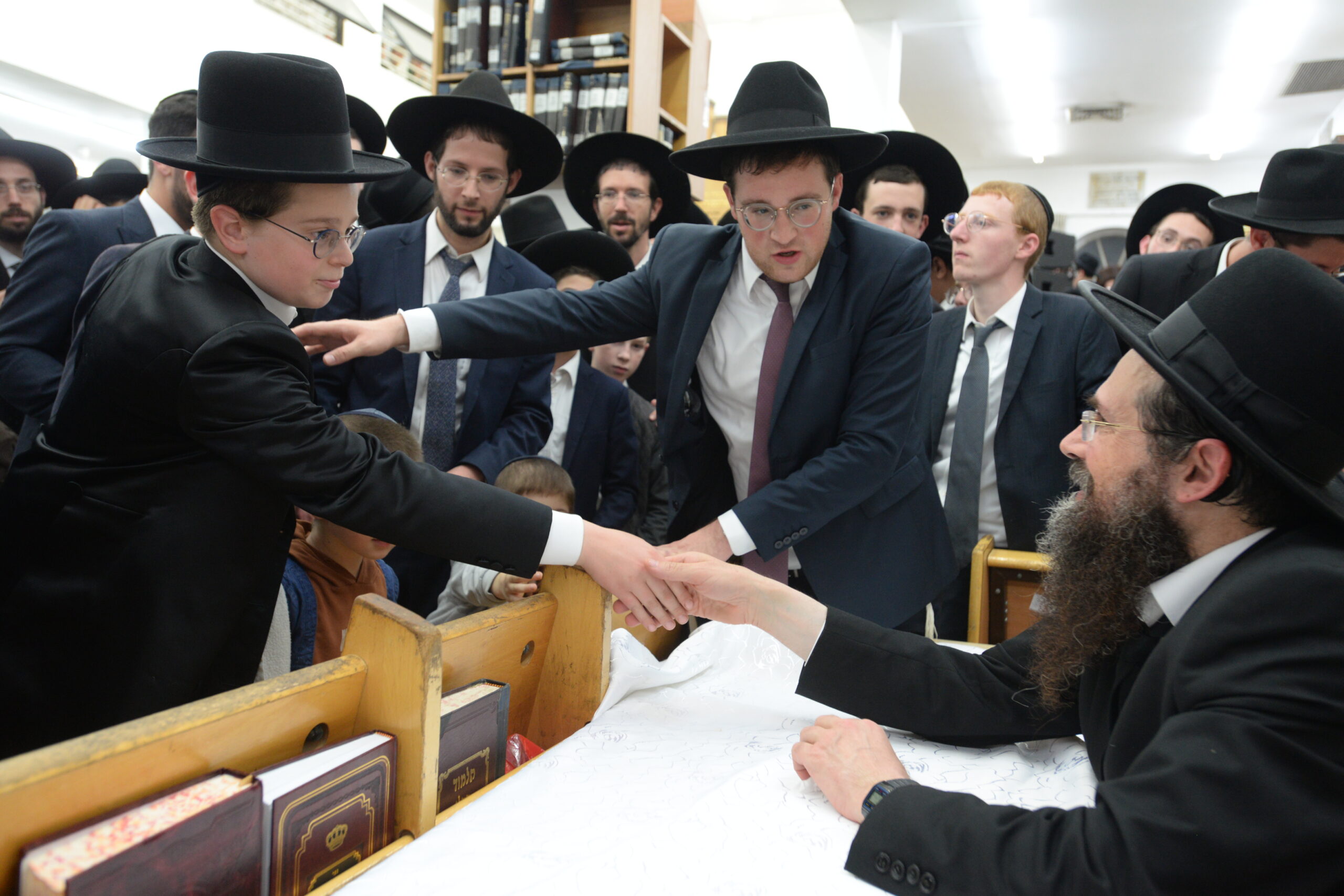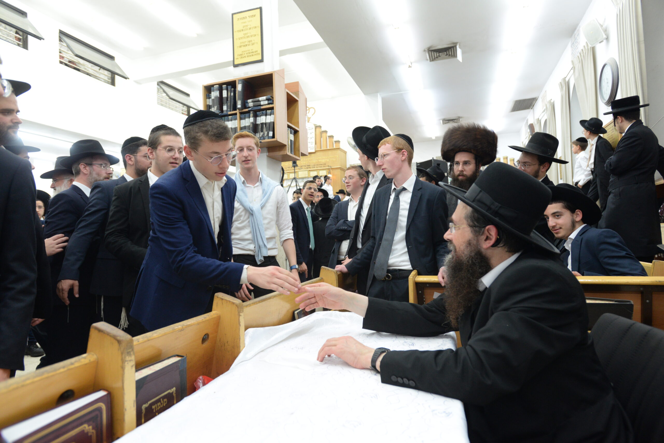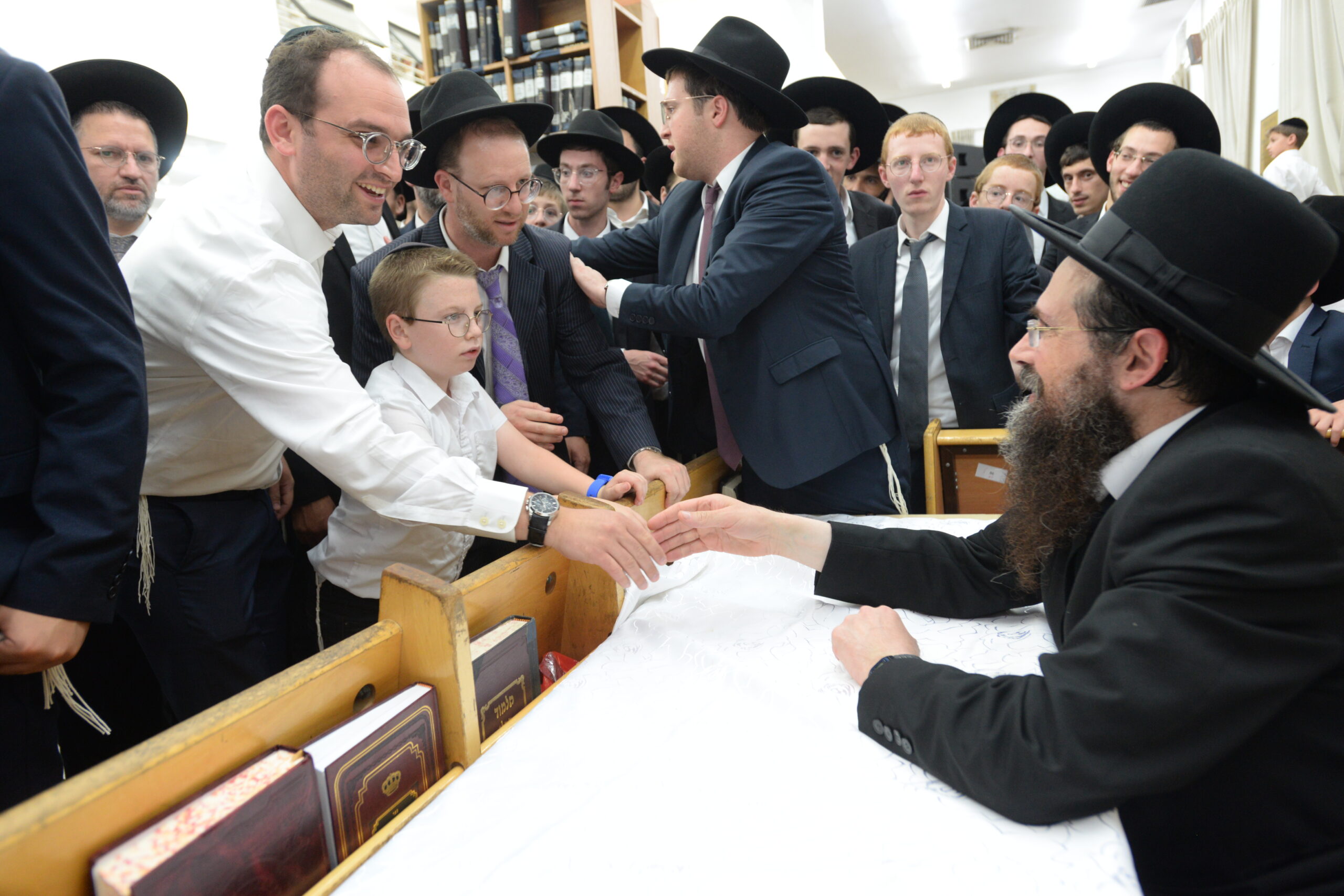 The Yeshiva’s Simchas Beis Hashoeva was held on Thursday, the second night of Chol Hamoed, beginning with music and dancing in the Mercazi Bais Medrash at 9:20. When the Roshei Yeshiva walked in about twenty minutes later, the olam broke out in tremendous excitement as they danced with their Rabbeim for several hours. Many visiting guests joined as well, taking the opportunity to wish the Roshei Yeshiva a Gut Yom Tov. All in all, there were around 9,000 people coming by throughout the night. The highlight of the event, as usual, was the kumzitz with inspiring songs of Yamim Noraim and Geulah at the end of the night, culminating in Leshana Haba’ah Bi’Yerushalayim.