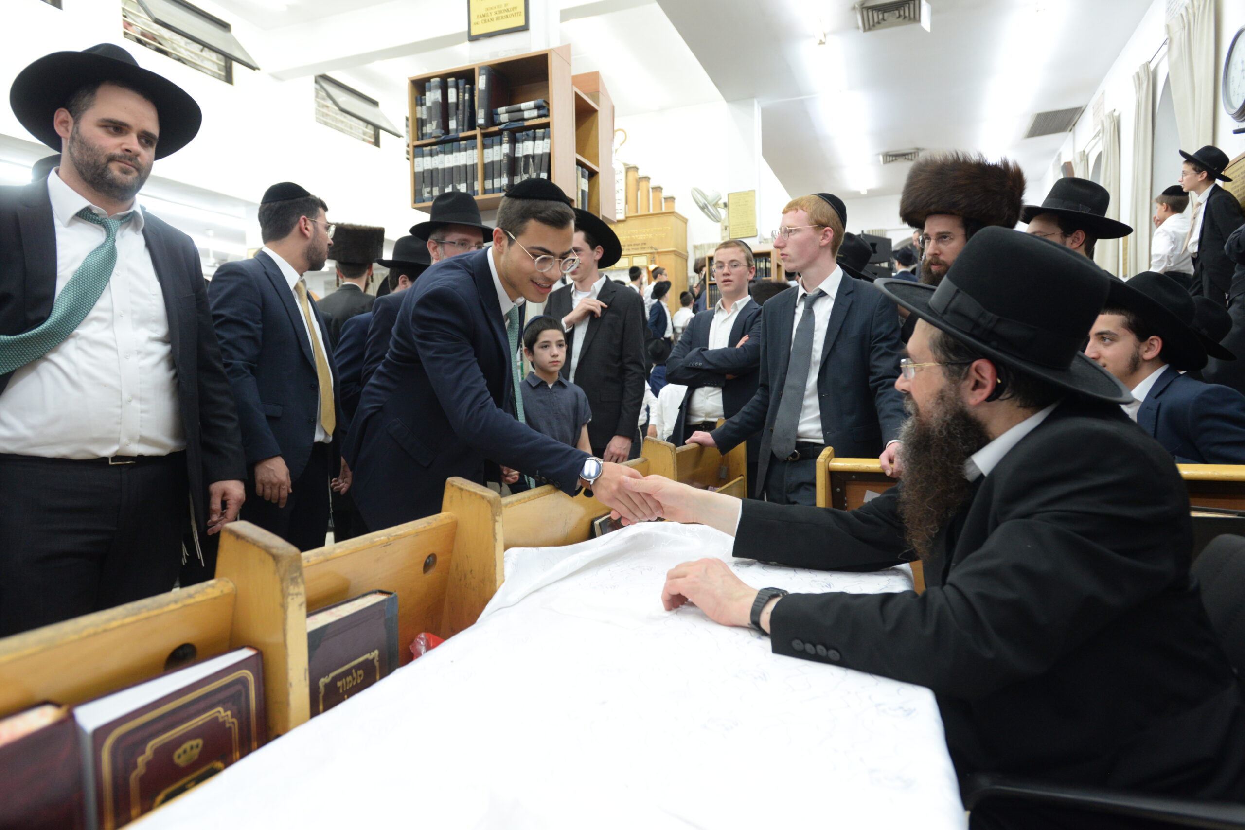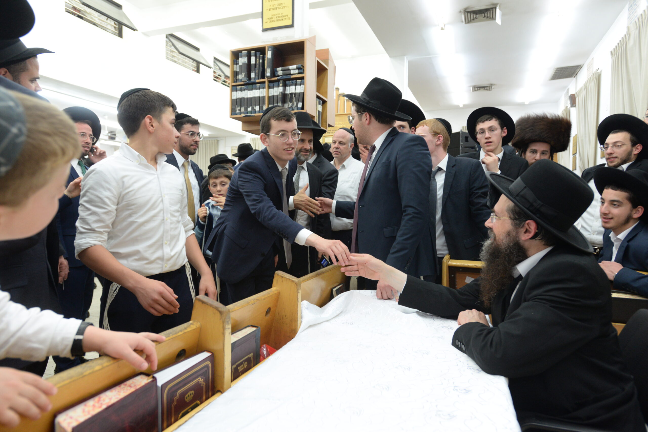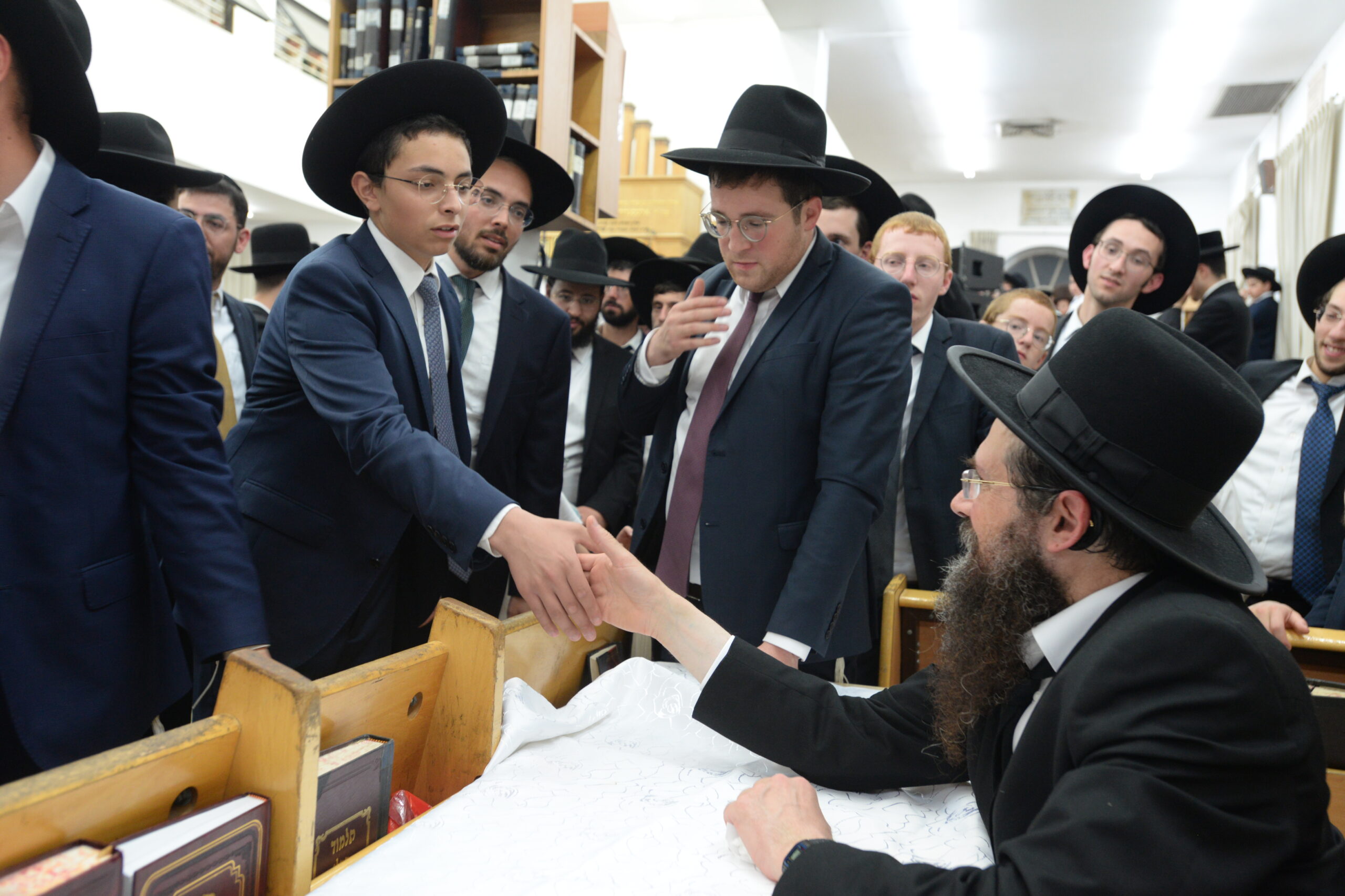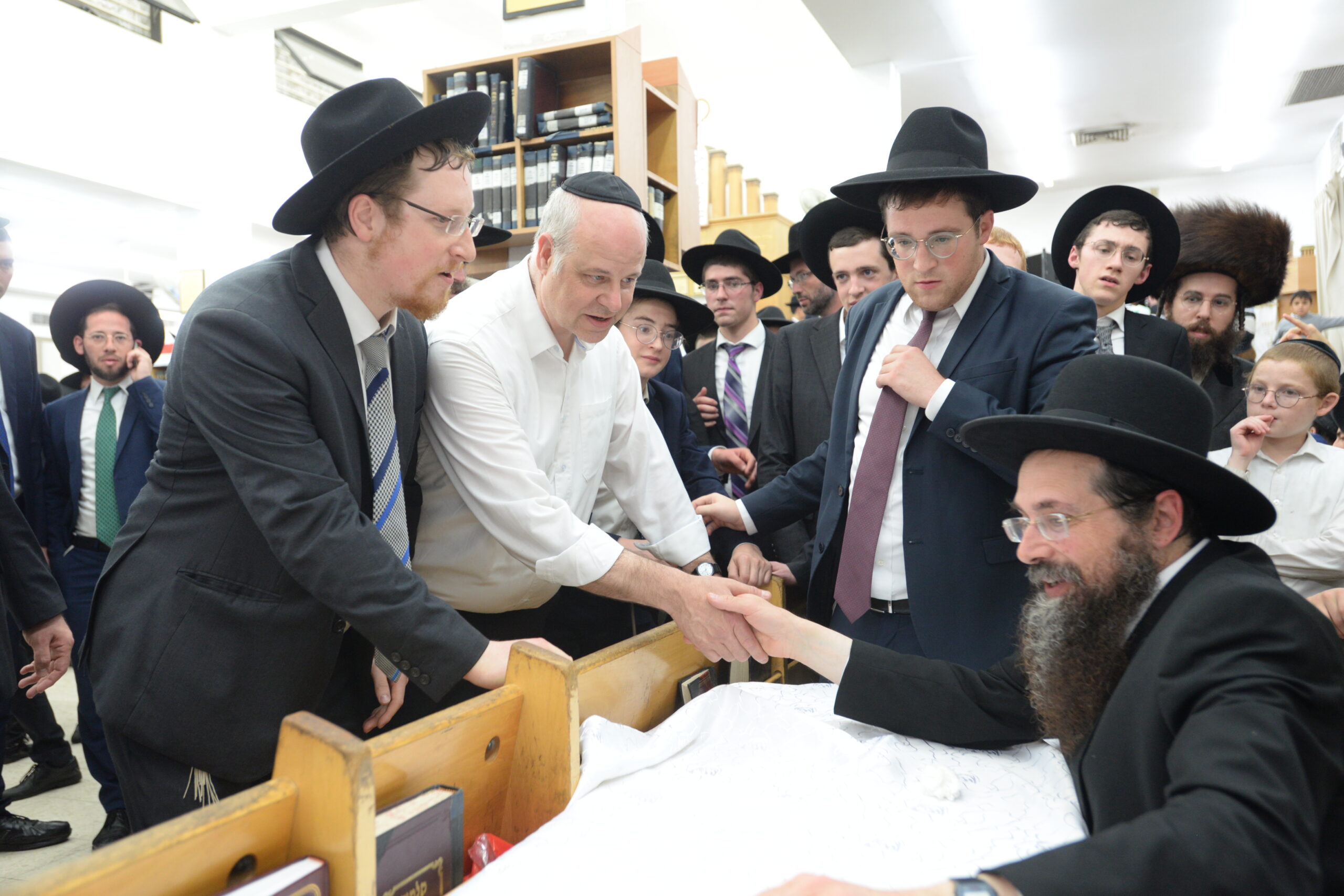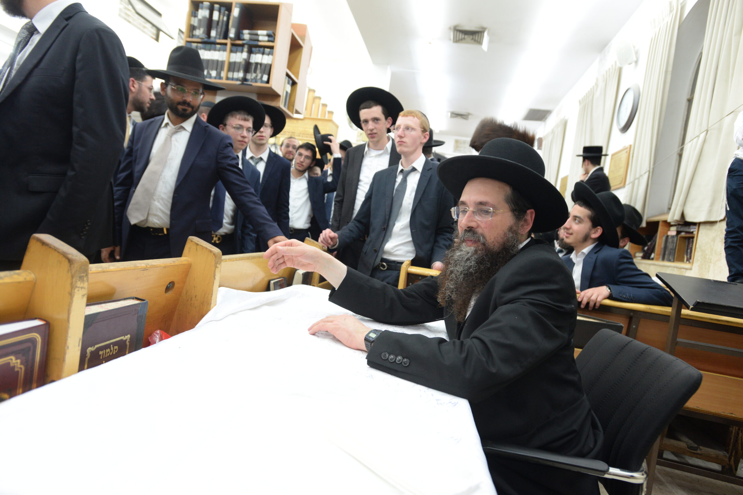 The Yeshiva’s Simchas Beis Hashoeva was held on Thursday, the second night of Chol Hamoed, beginning with music and dancing in the Mercazi Bais Medrash at 9:20. When the Roshei Yeshiva walked in about twenty minutes later, the olam broke out in tremendous excitement as they danced with their Rabbeim for several hours. Many visiting guests joined as well, taking the opportunity to wish the Roshei Yeshiva a Gut Yom Tov. All in all, there were around 9,000 people coming by throughout the night. The highlight of the event, as usual, was the kumzitz with inspiring songs of Yamim Noraim and Geulah at the end of the night, culminating in Leshana Haba’ah Bi’Yerushalayim.