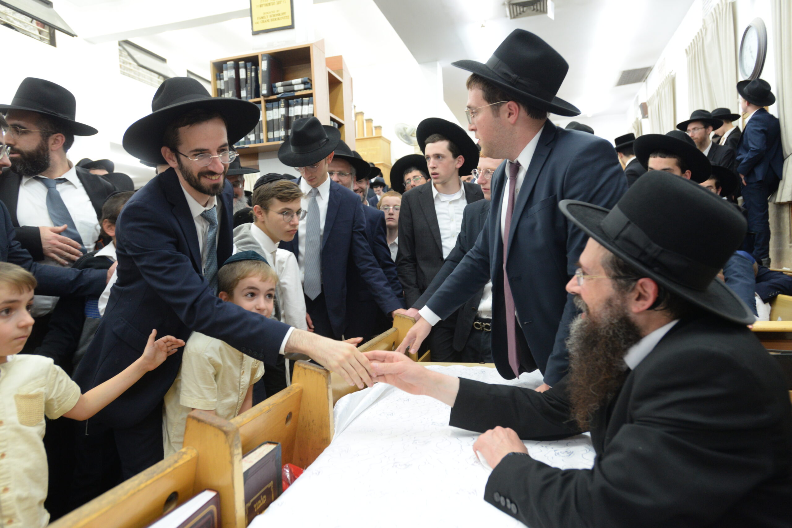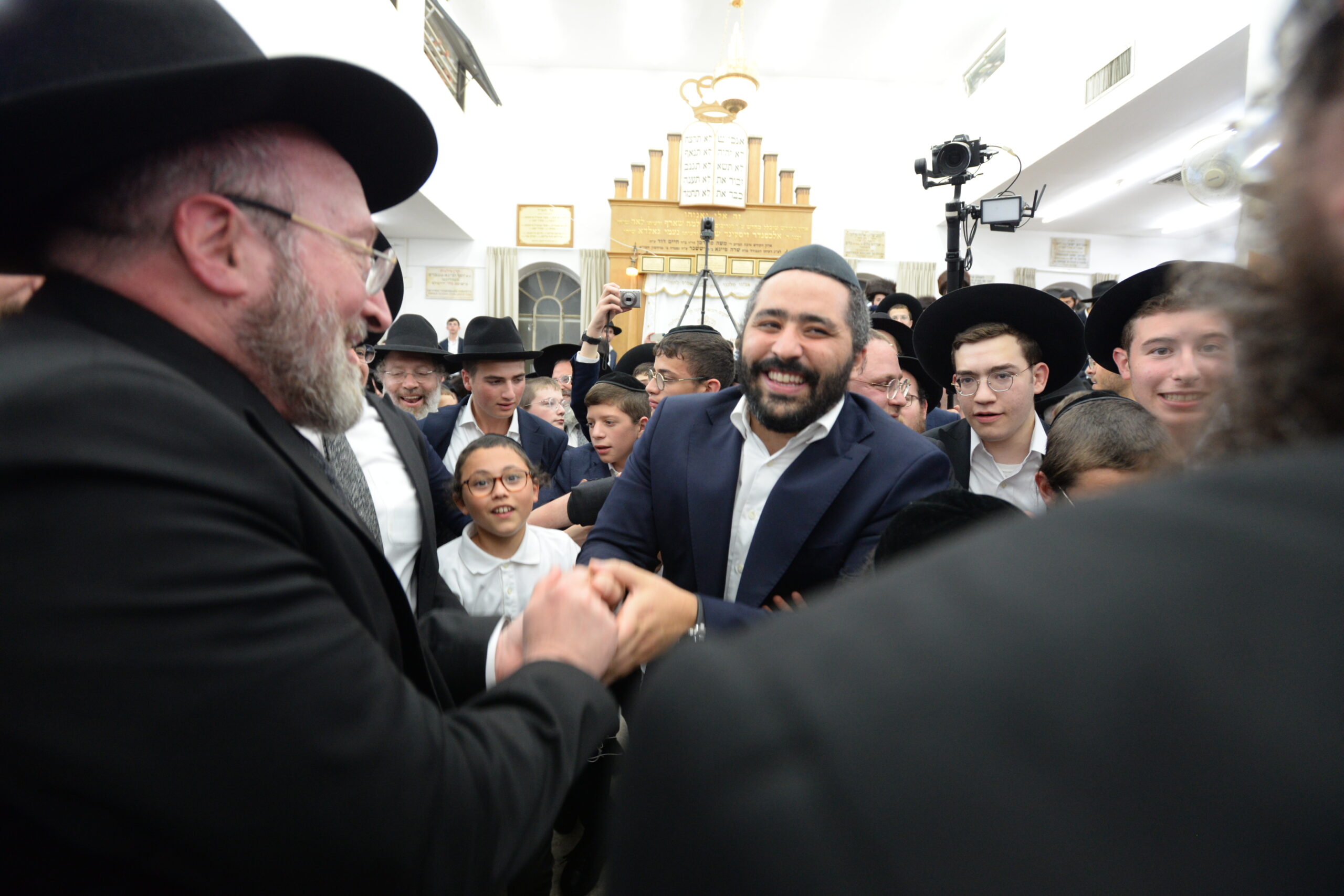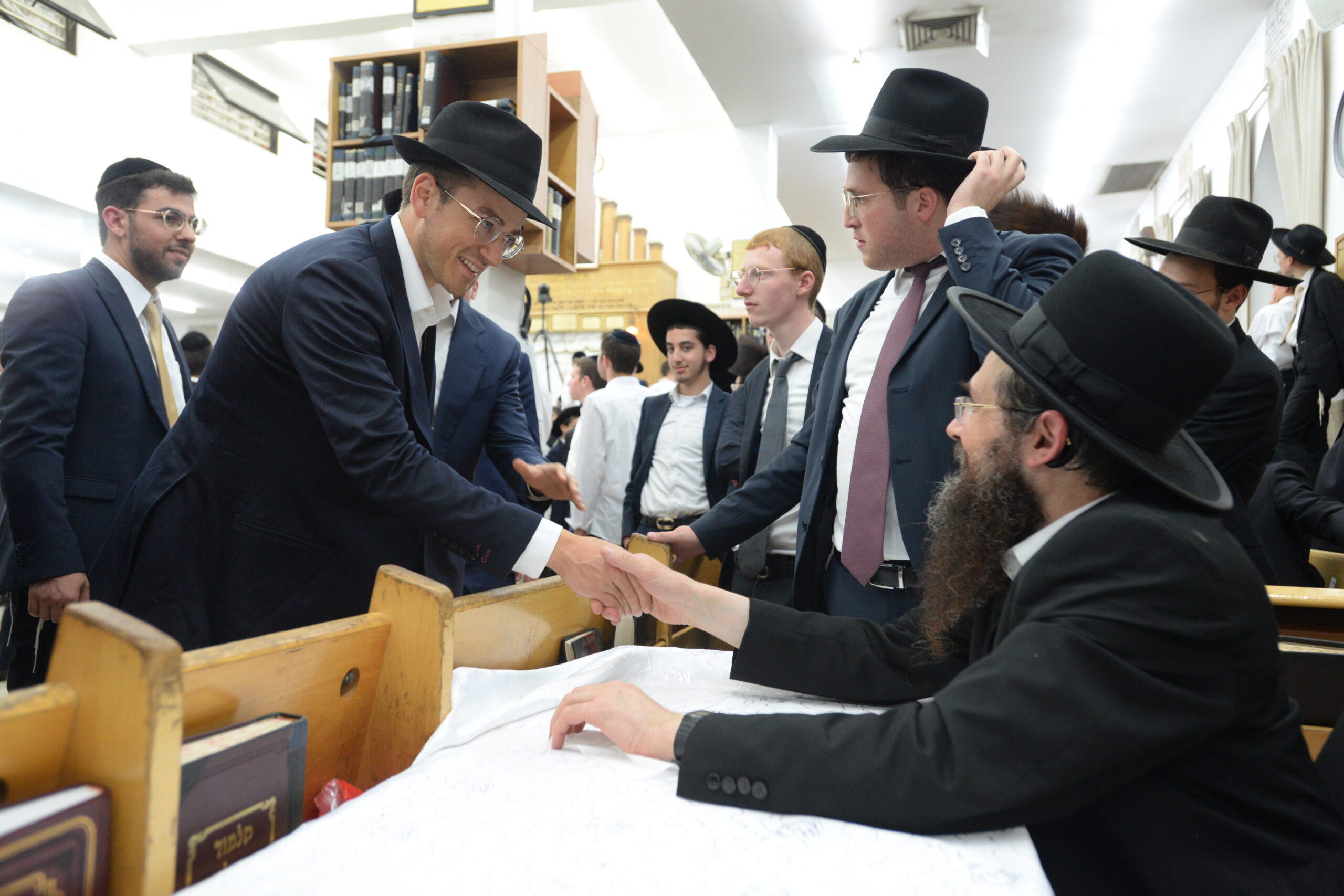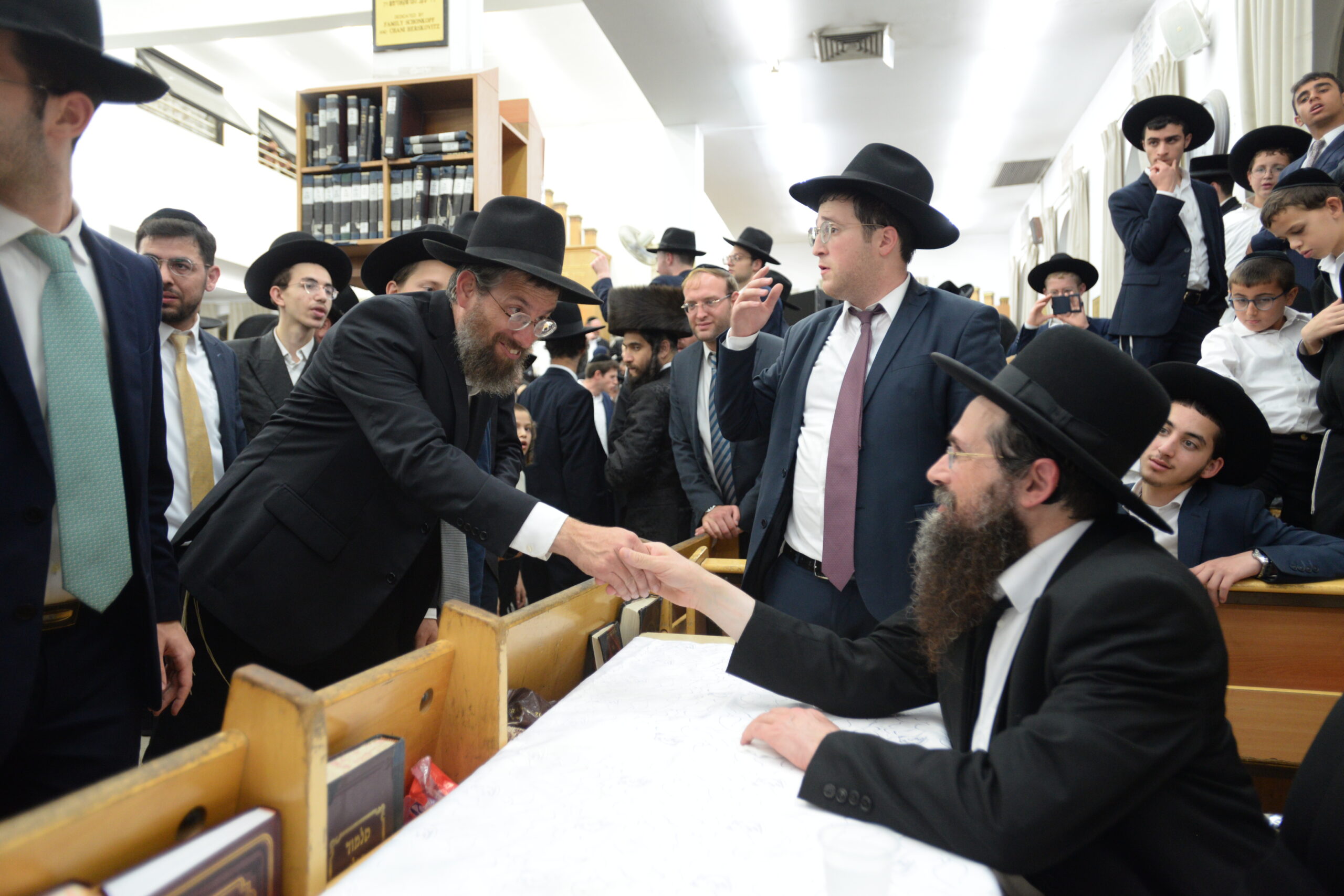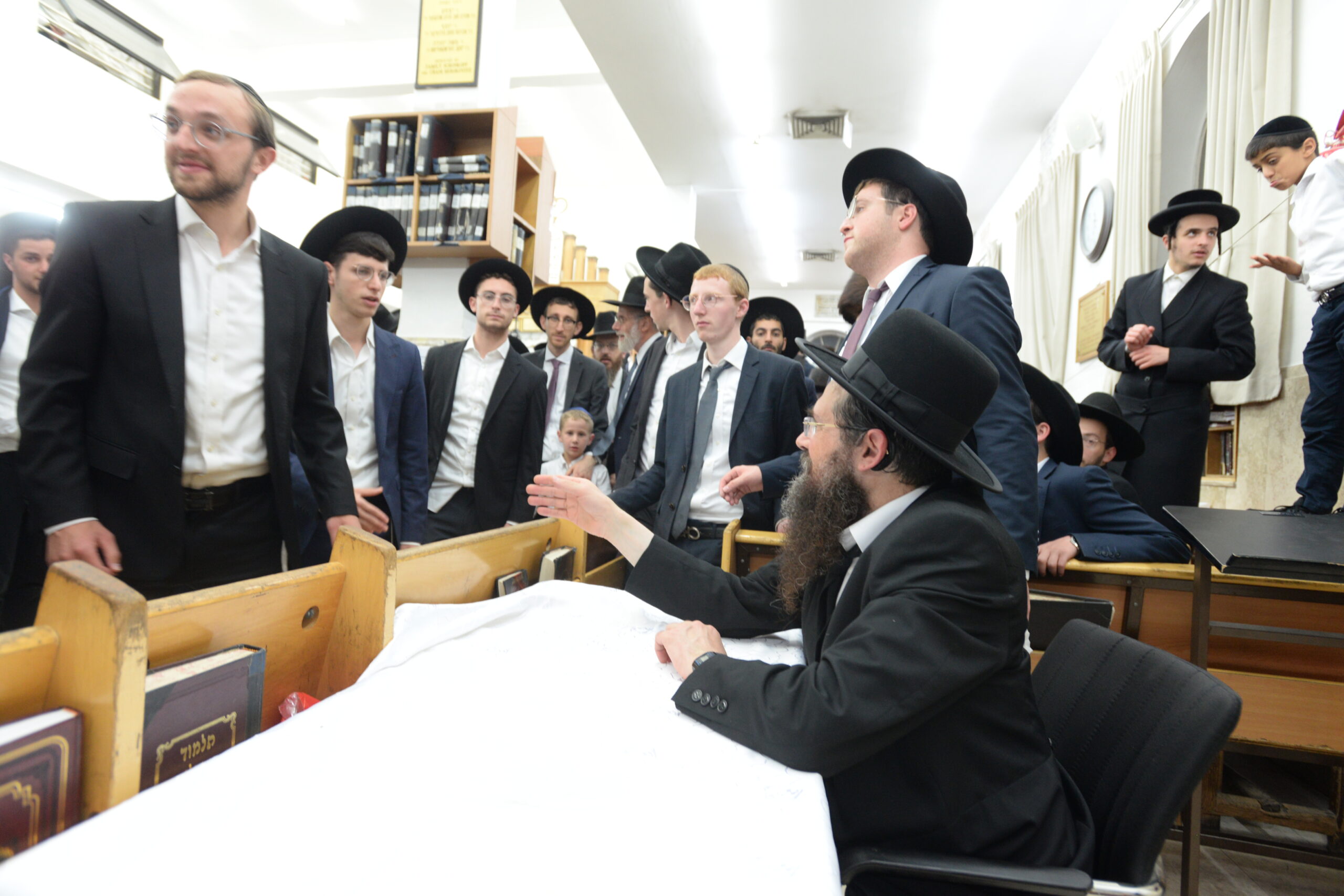 The Yeshiva’s Simchas Beis Hashoeva was held on Thursday, the second night of Chol Hamoed, beginning with music and dancing in the Mercazi Bais Medrash at 9:20. When the Roshei Yeshiva walked in about twenty minutes later, the olam broke out in tremendous excitement as they danced with their Rabbeim for several hours. Many visiting guests joined as well, taking the opportunity to wish the Roshei Yeshiva a Gut Yom Tov. All in all, there were around 9,000 people coming by throughout the night. The highlight of the event, as usual, was the kumzitz with inspiring songs of Yamim Noraim and Geulah at the end of the night, culminating in Leshana Haba’ah Bi’Yerushalayim.