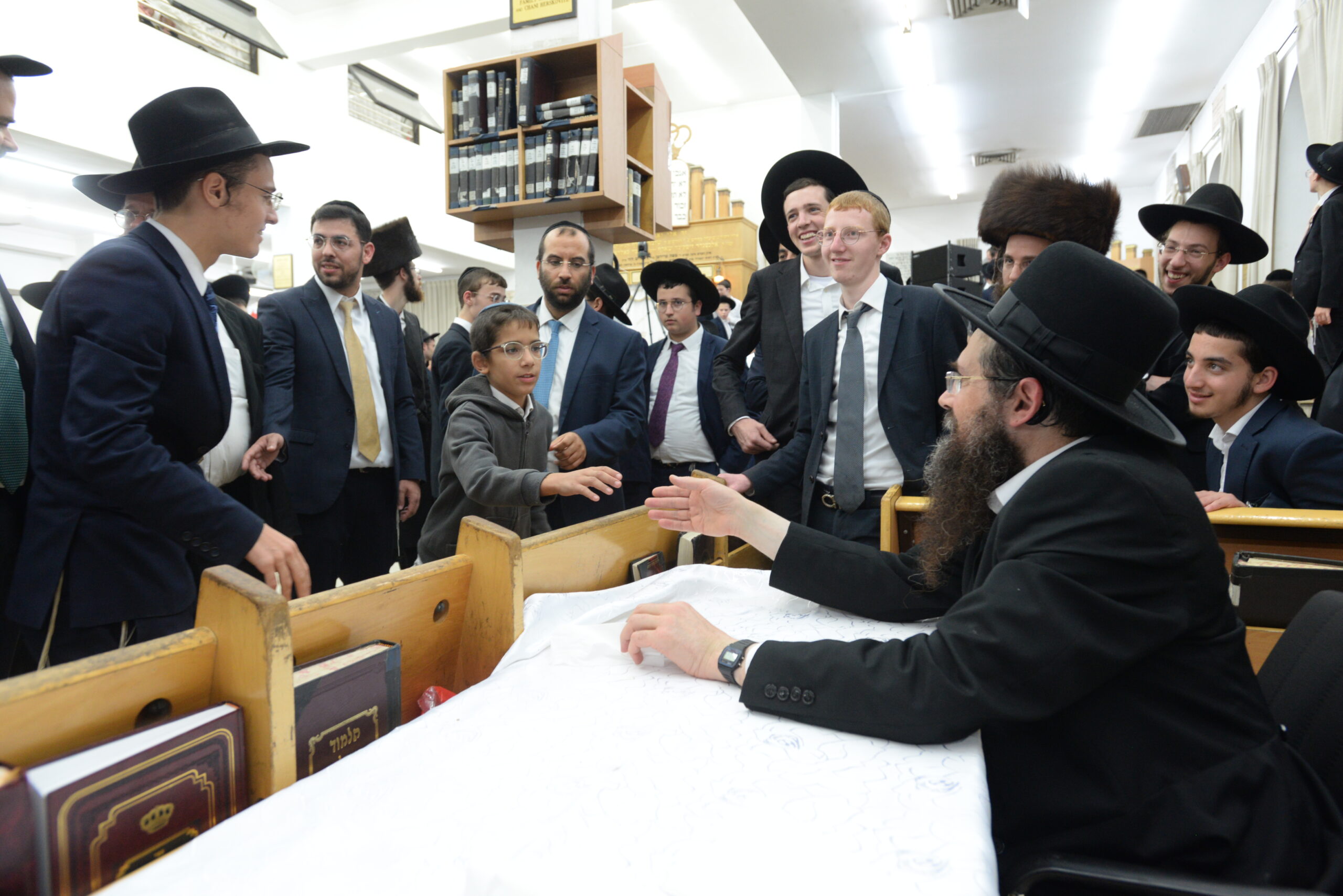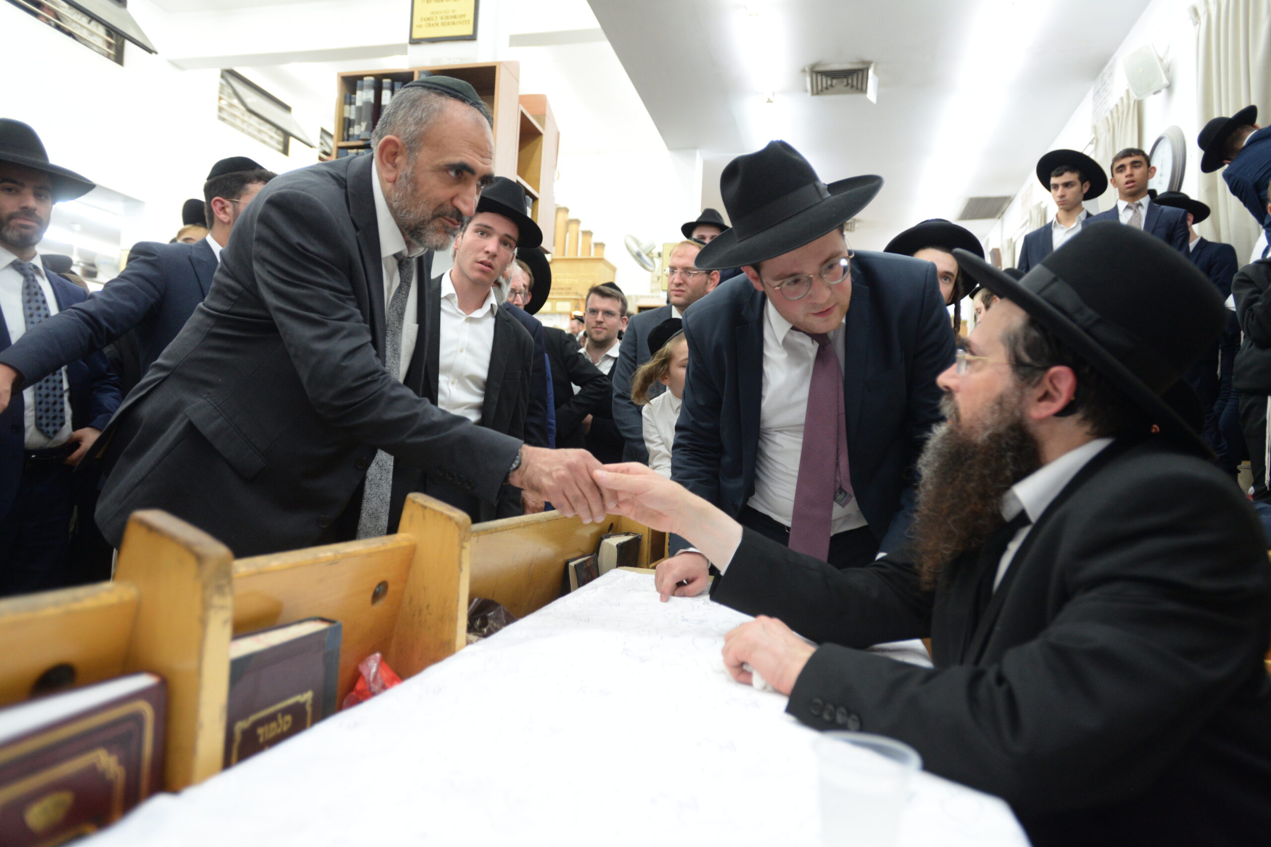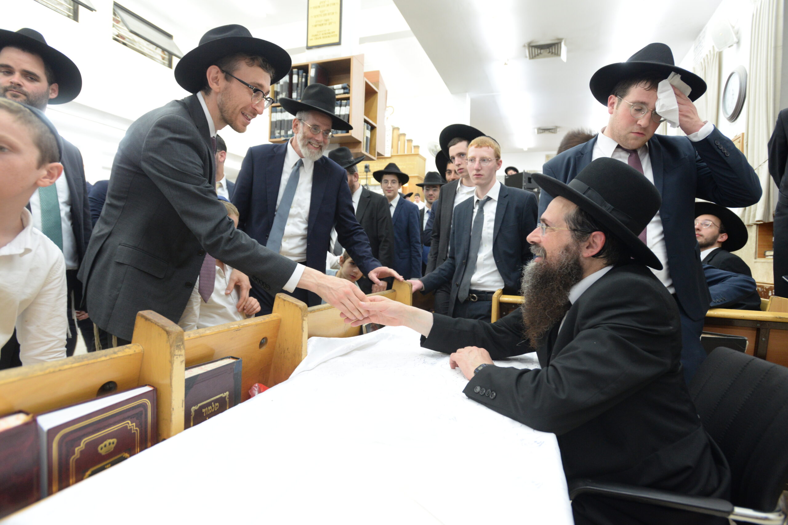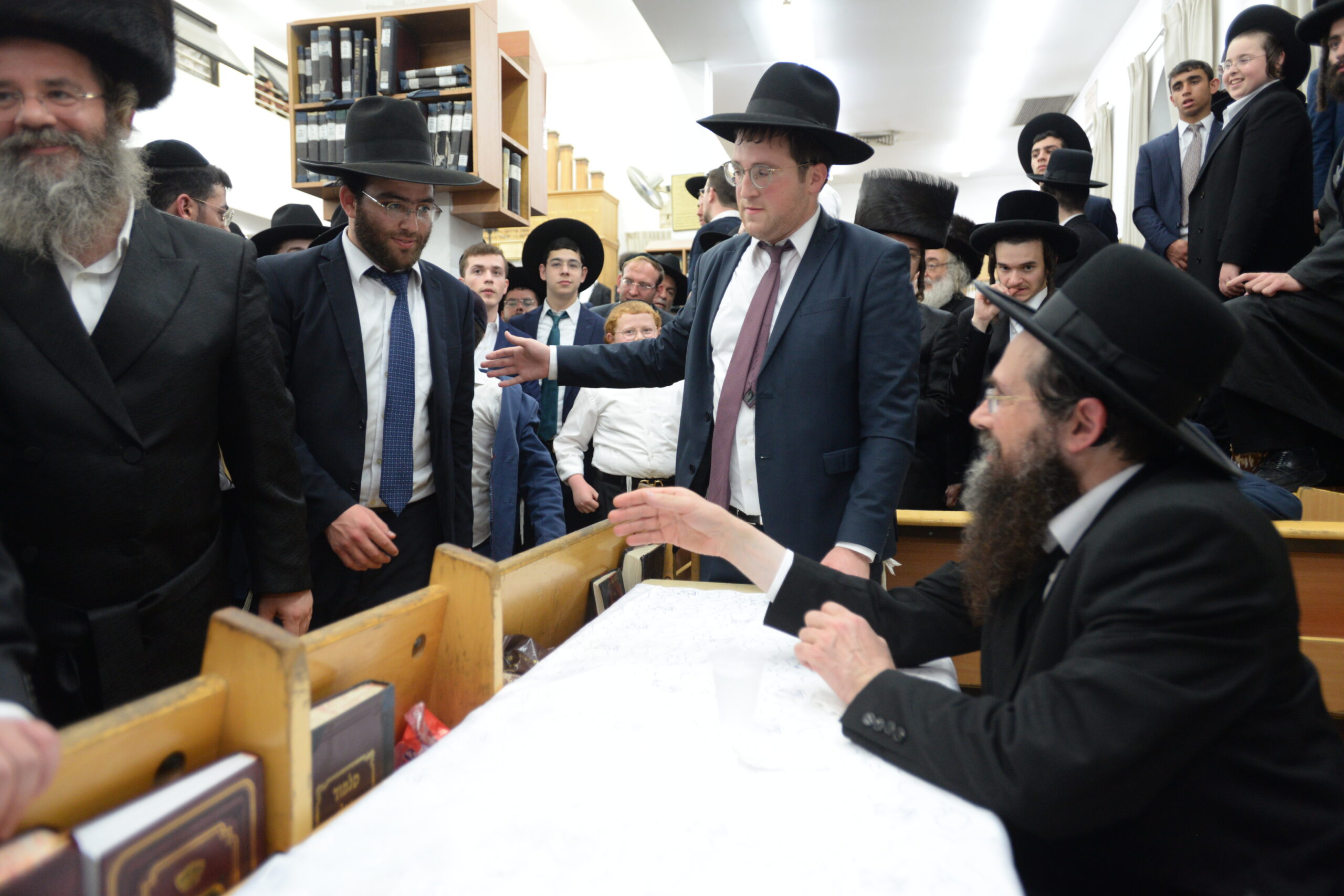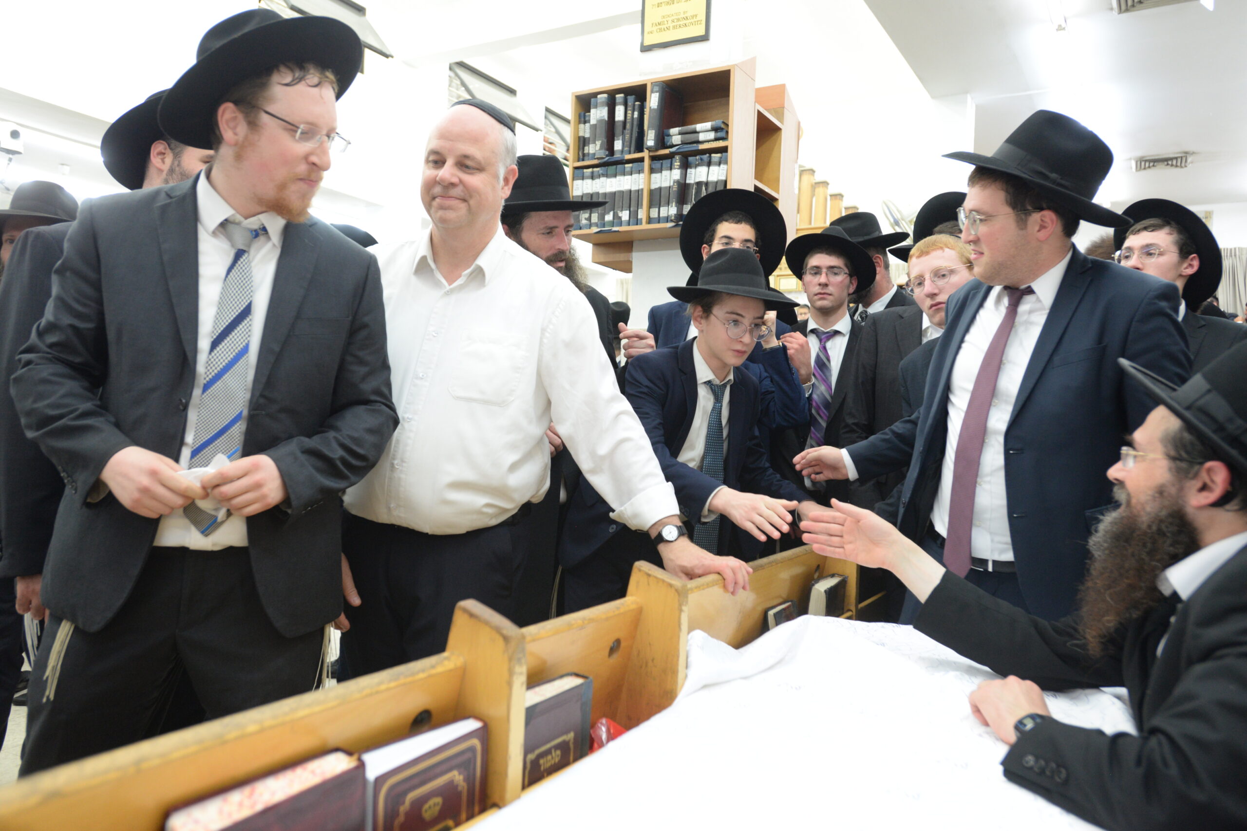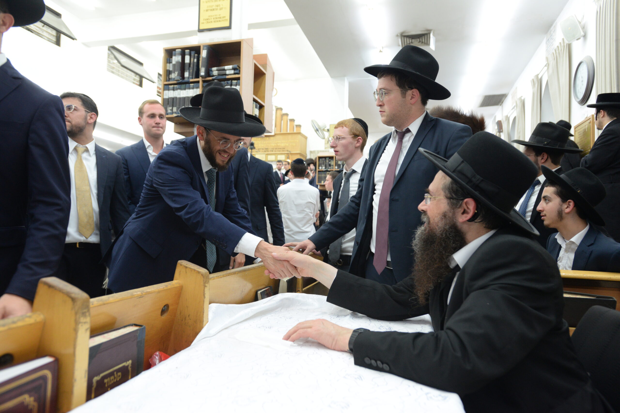 The Yeshiva’s Simchas Beis Hashoeva was held on Thursday, the second night of Chol Hamoed, beginning with music and dancing in the Mercazi Bais Medrash at 9:20. When the Roshei Yeshiva walked in about twenty minutes later, the olam broke out in tremendous excitement as they danced with their Rabbeim for several hours. Many visiting guests joined as well, taking the opportunity to wish the Roshei Yeshiva a Gut Yom Tov. All in all, there were around 9,000 people coming by throughout the night. The highlight of the event, as usual, was the kumzitz with inspiring songs of Yamim Noraim and Geulah at the end of the night, culminating in Leshana Haba’ah Bi’Yerushalayim.
