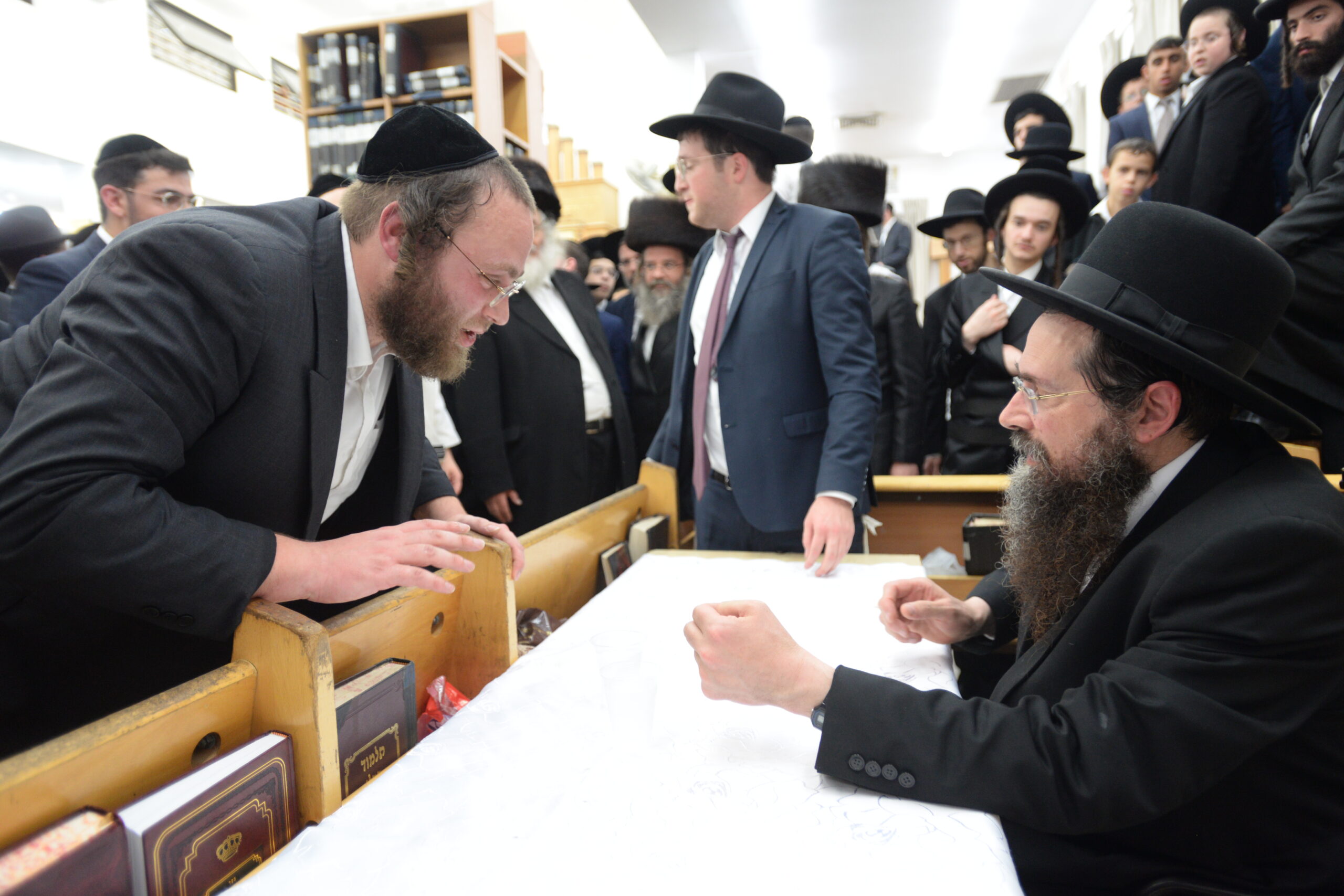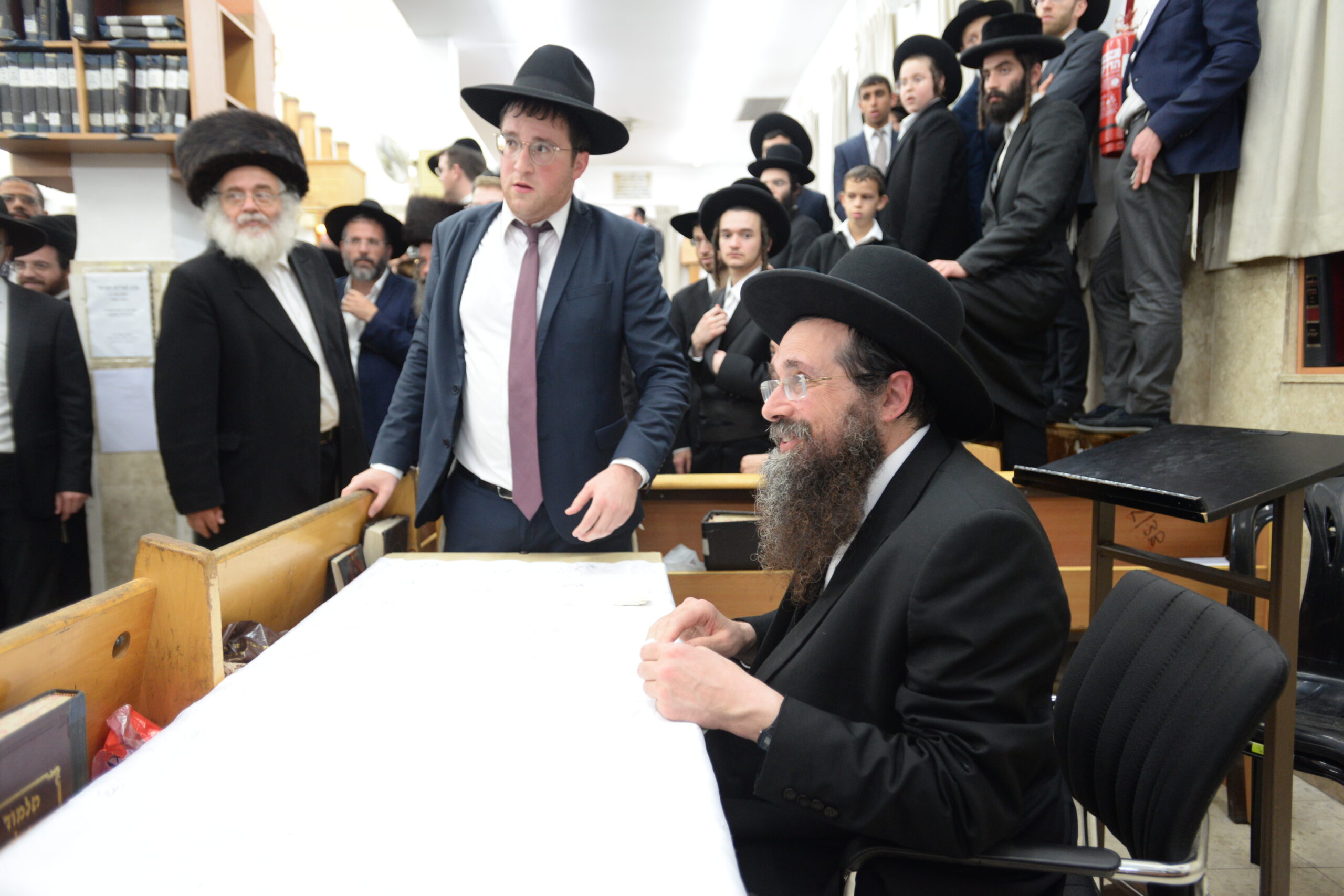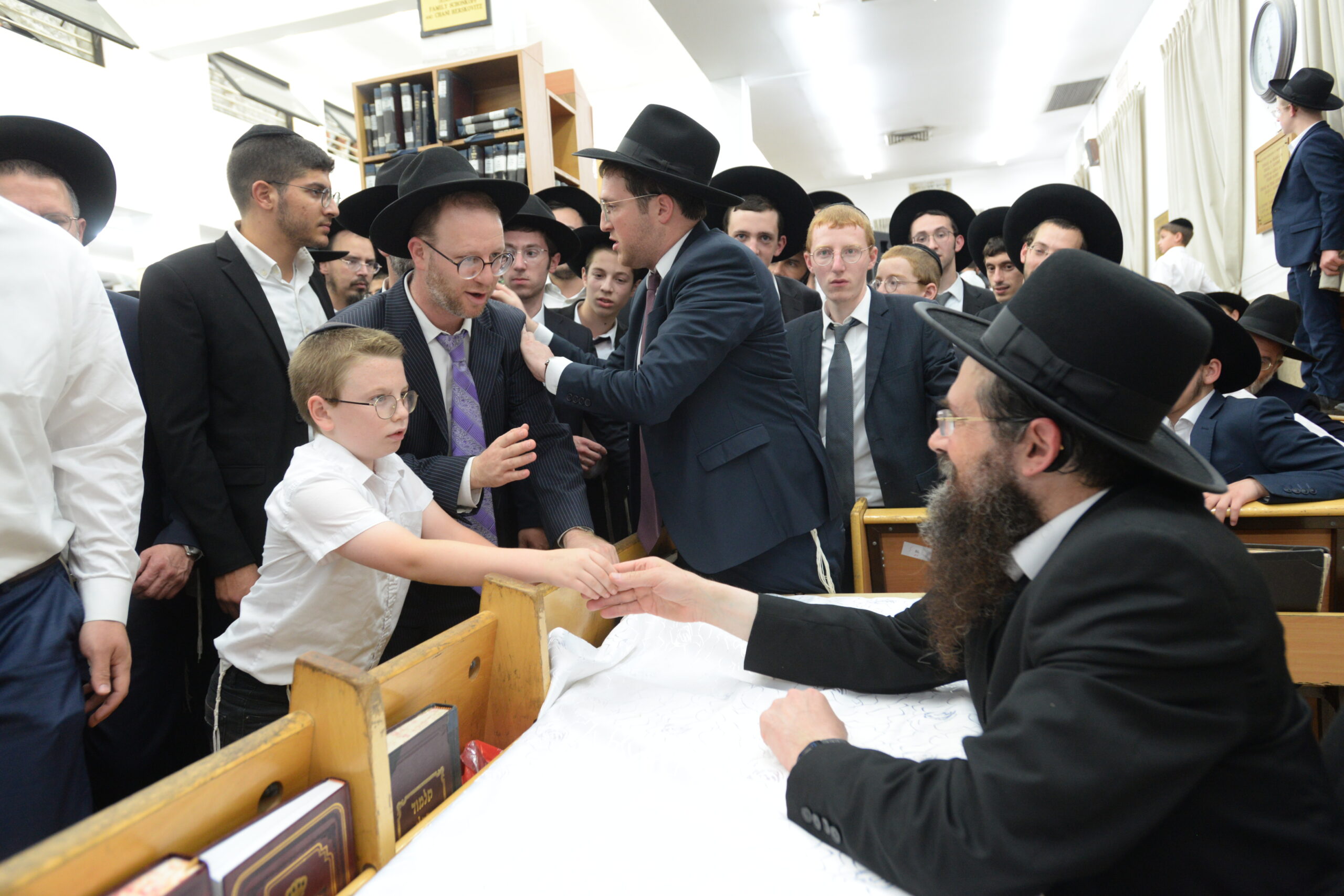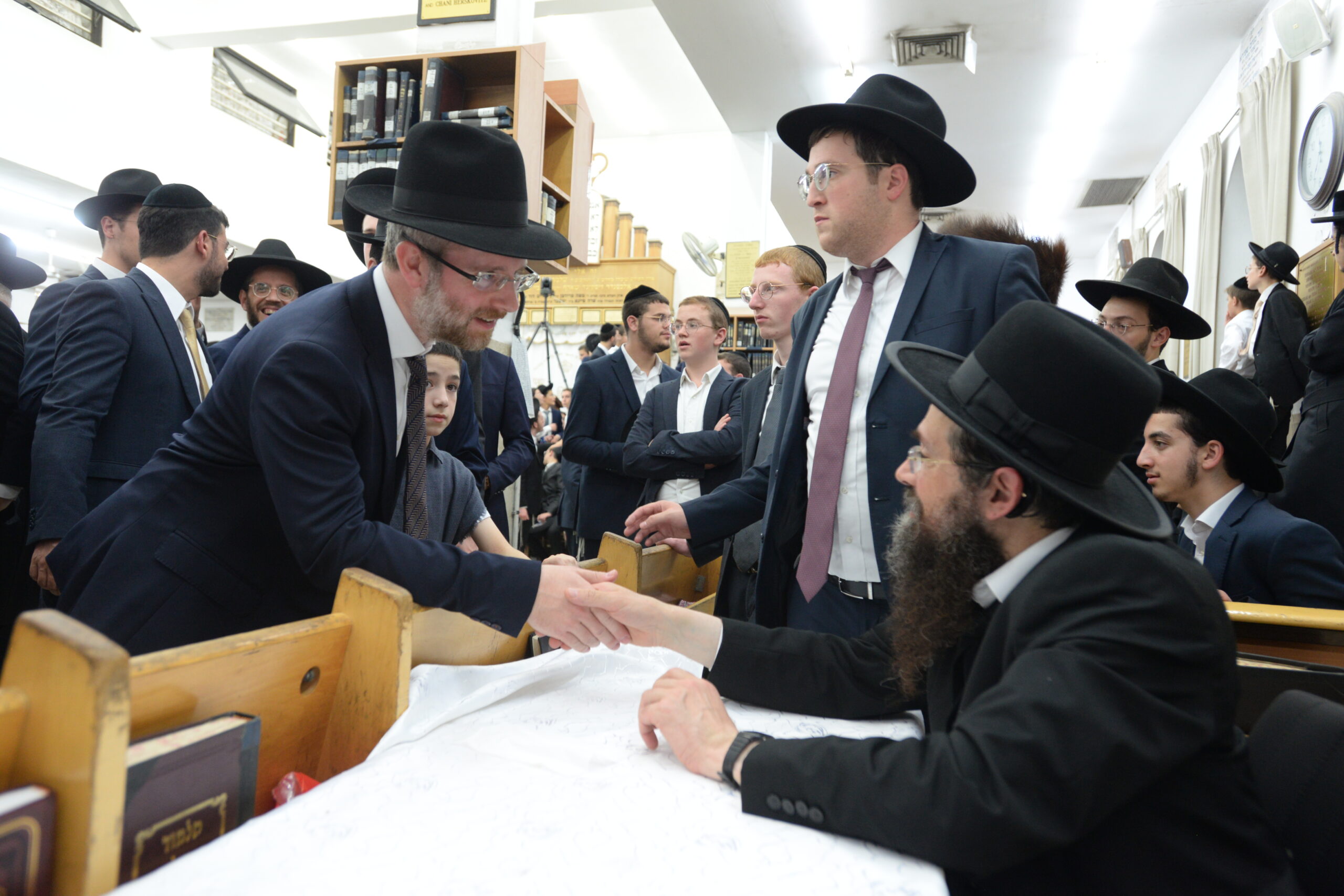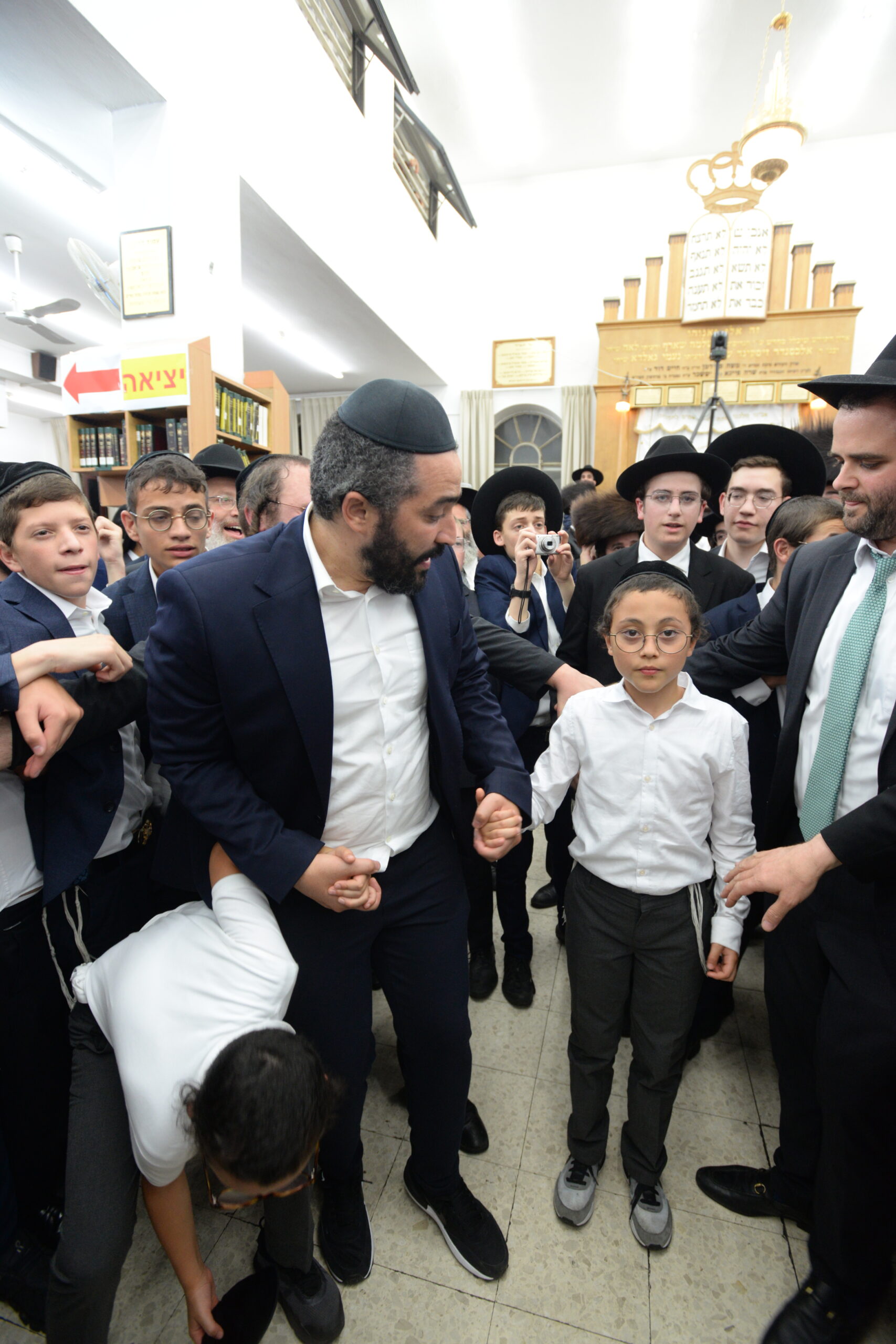 The Yeshiva’s Simchas Beis Hashoeva was held on Thursday, the second night of Chol Hamoed, beginning with music and dancing in the Mercazi Bais Medrash at 9:20. When the Roshei Yeshiva walked in about twenty minutes later, the olam broke out in tremendous excitement as they danced with their Rabbeim for several hours. Many visiting guests joined as well, taking the opportunity to wish the Roshei Yeshiva a Gut Yom Tov. All in all, there were around 9,000 people coming by throughout the night. The highlight of the event, as usual, was the kumzitz with inspiring songs of Yamim Noraim and Geulah at the end of the night, culminating in Leshana Haba’ah Bi’Yerushalayim.