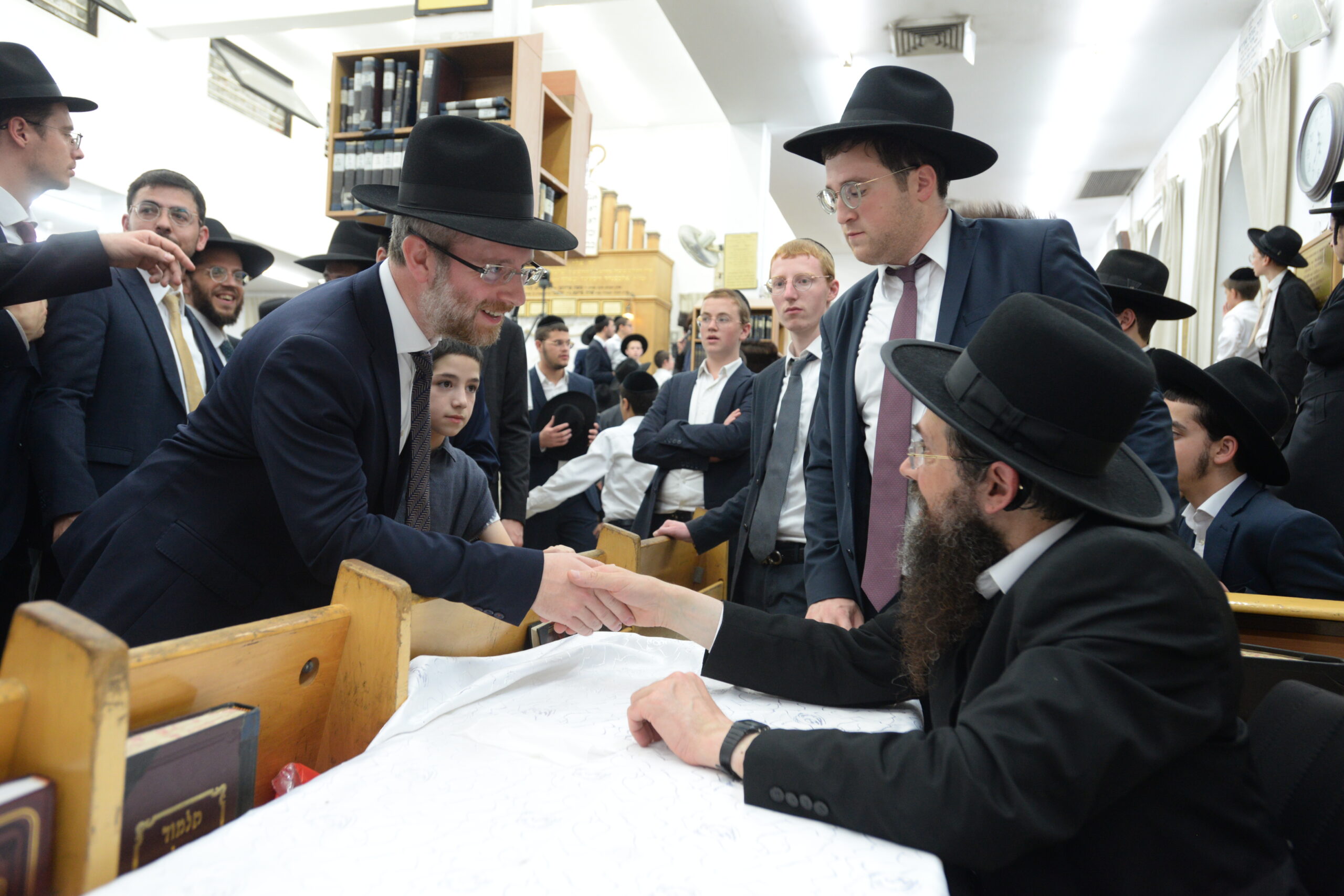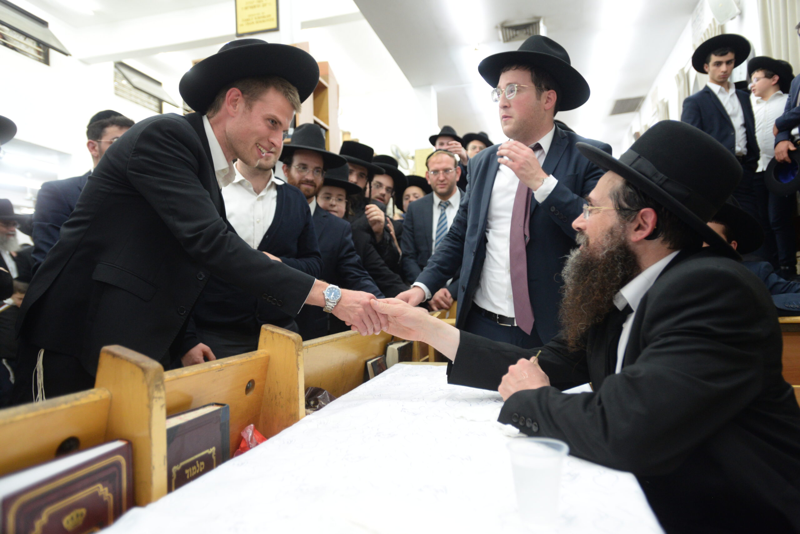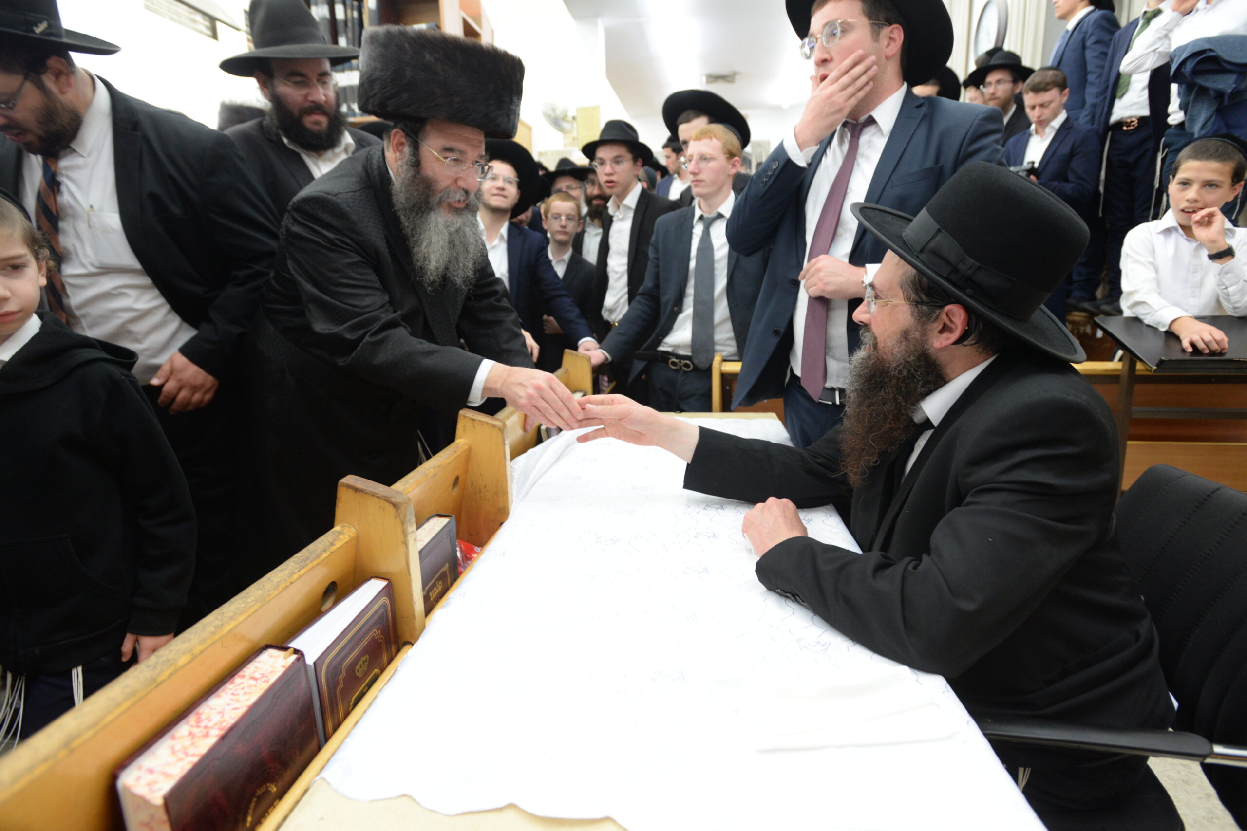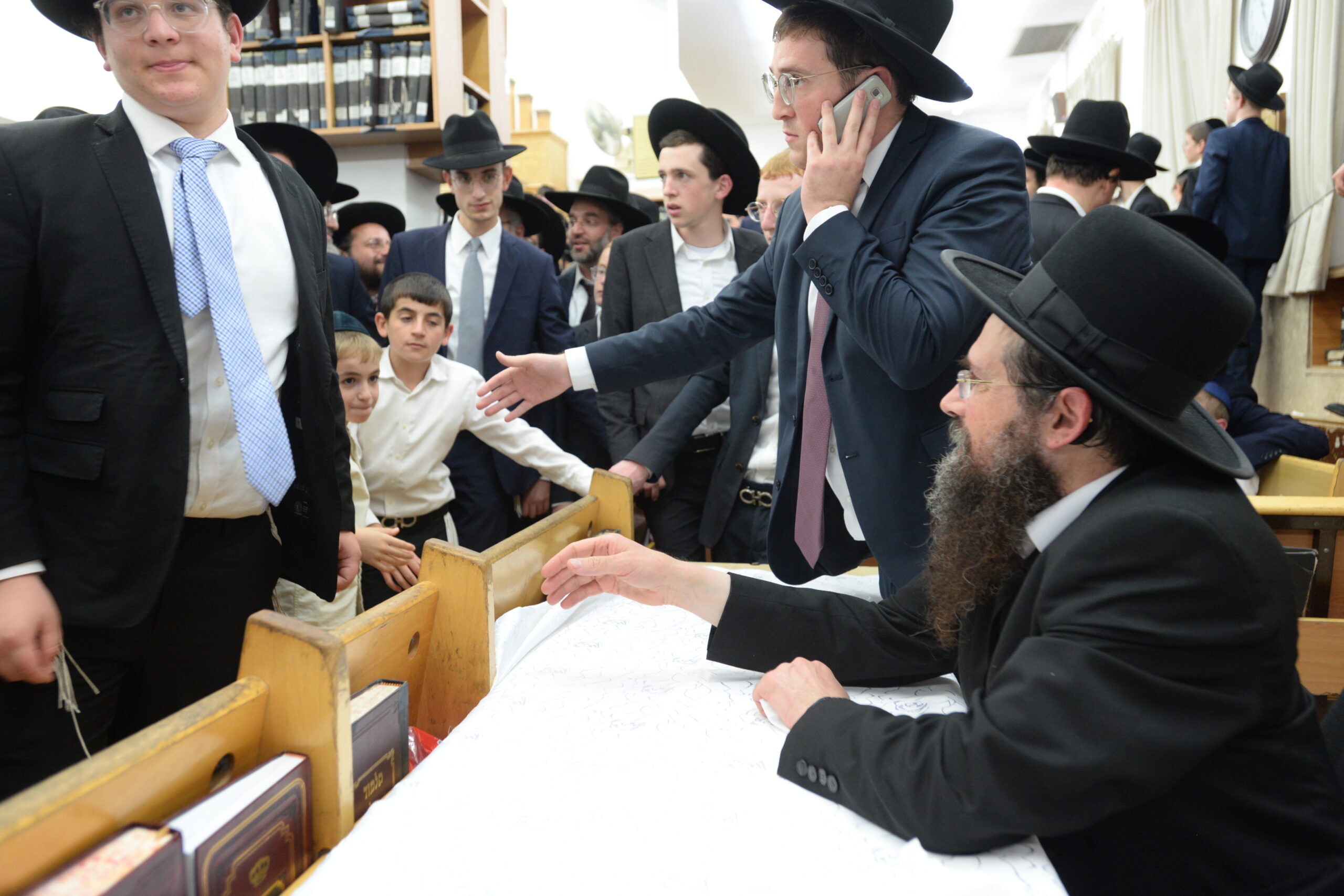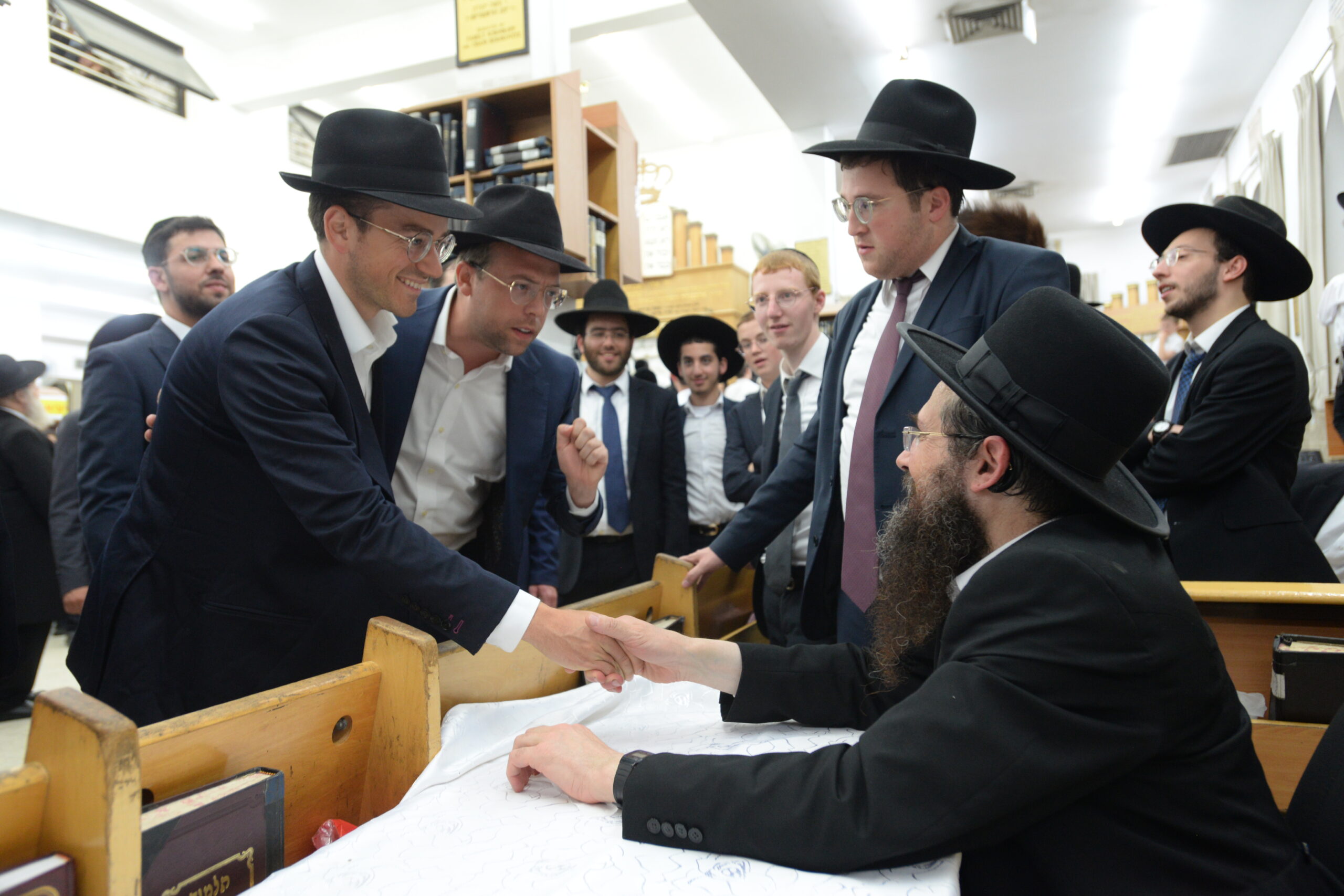 The Yeshiva’s Simchas Beis Hashoeva was held on Thursday, the second night of Chol Hamoed, beginning with music and dancing in the Mercazi Bais Medrash at 9:20. When the Roshei Yeshiva walked in about twenty minutes later, the olam broke out in tremendous excitement as they danced with their Rabbeim for several hours. Many visiting guests joined as well, taking the opportunity to wish the Roshei Yeshiva a Gut Yom Tov. All in all, there were around 9,000 people coming by throughout the night. The highlight of the event, as usual, was the kumzitz with inspiring songs of Yamim Noraim and Geulah at the end of the night, culminating in Leshana Haba’ah Bi’Yerushalayim.