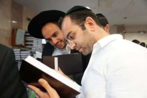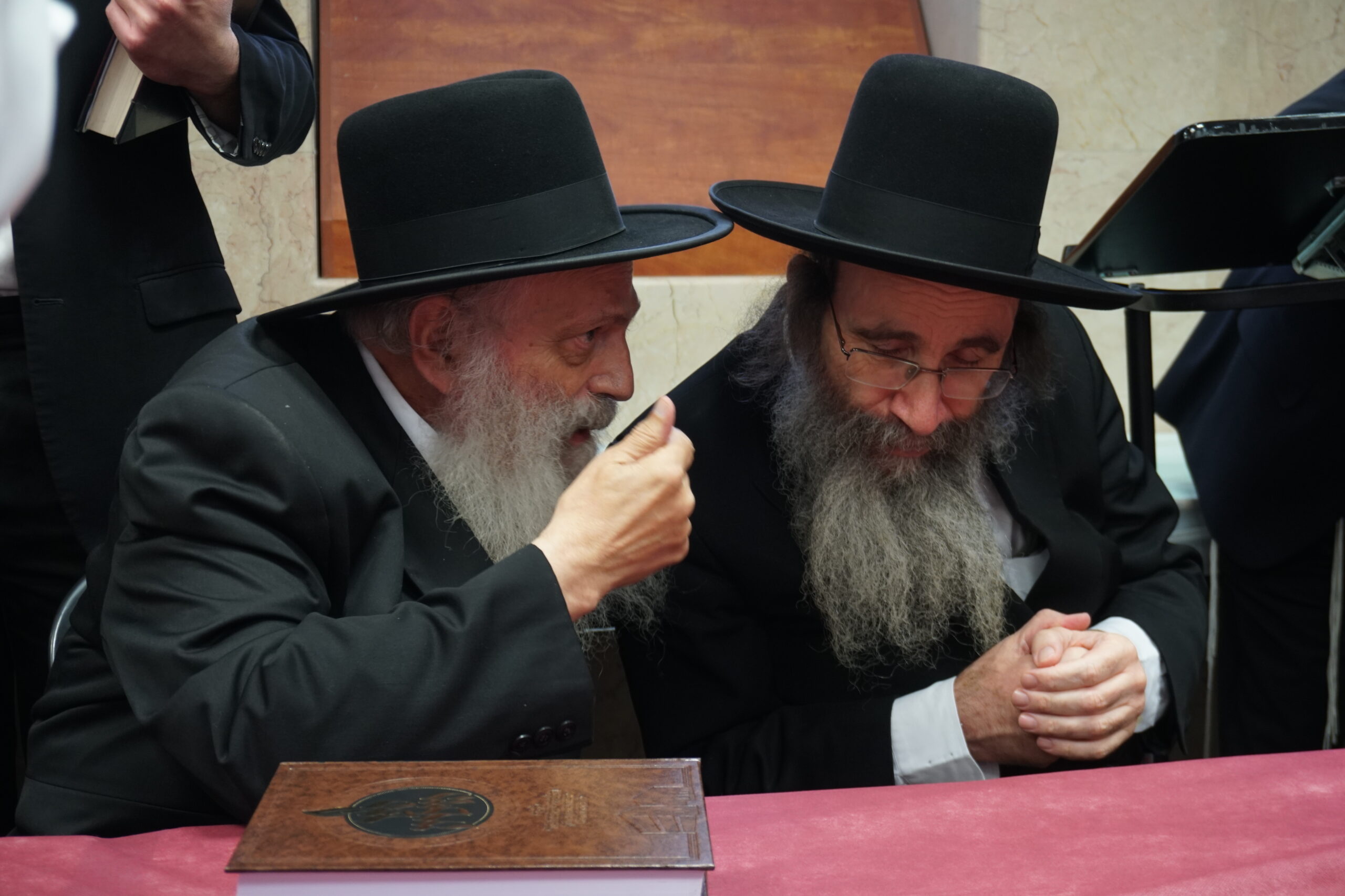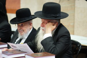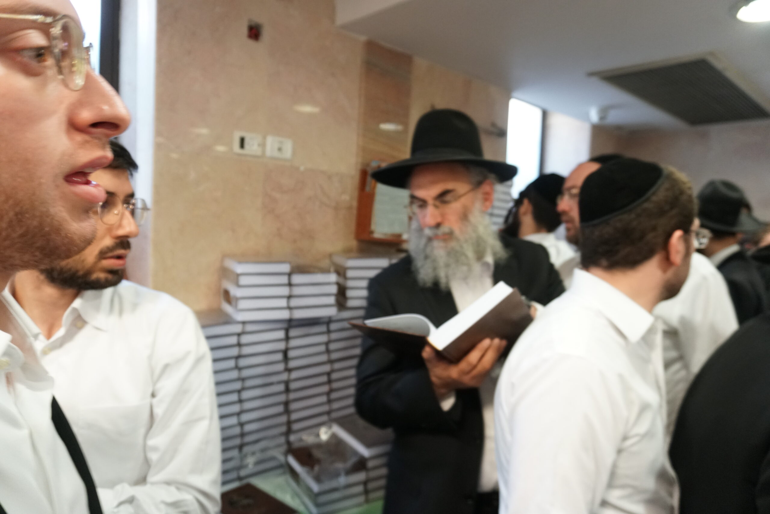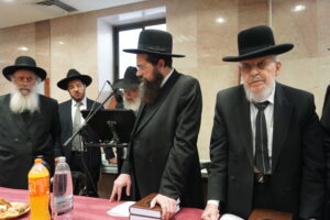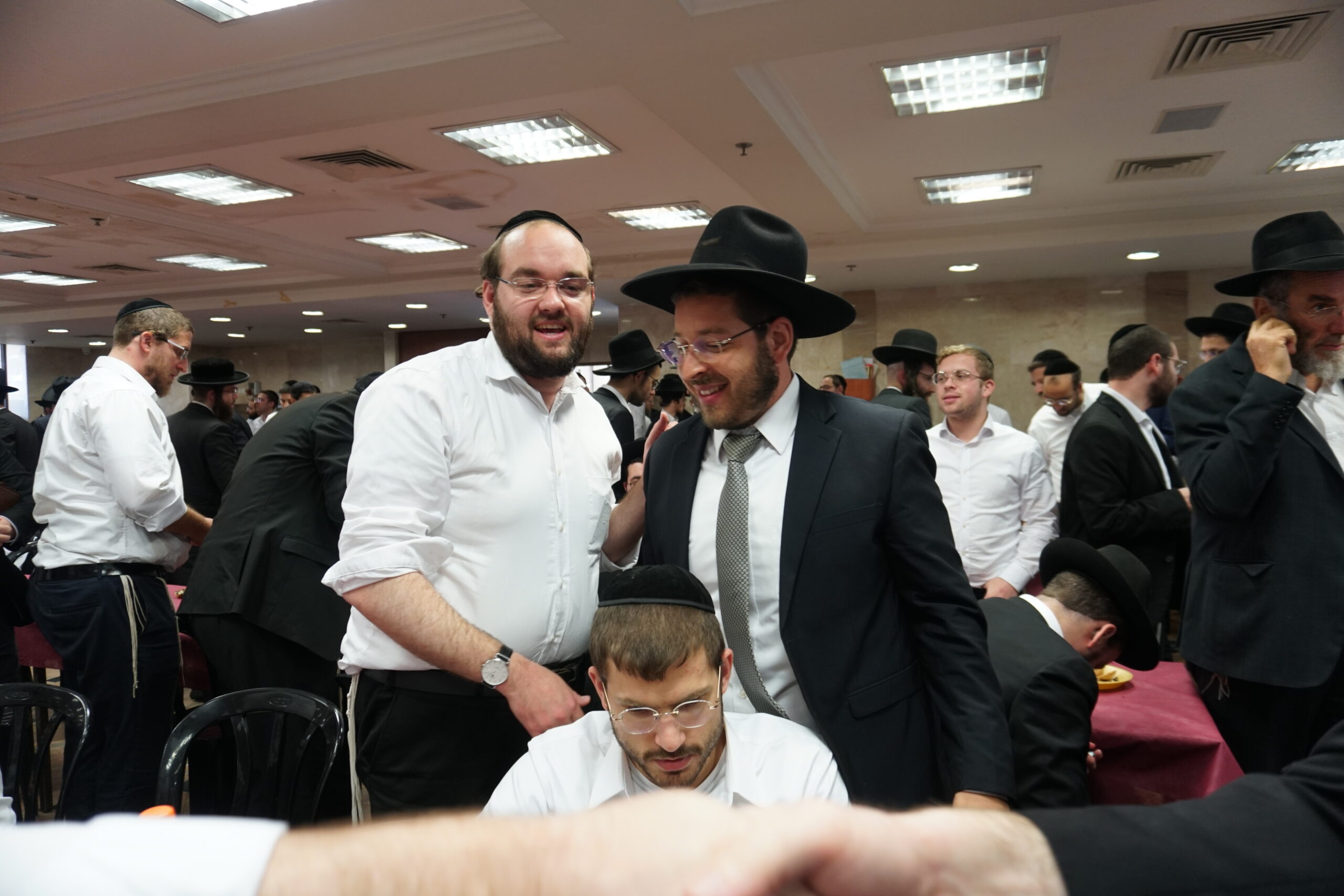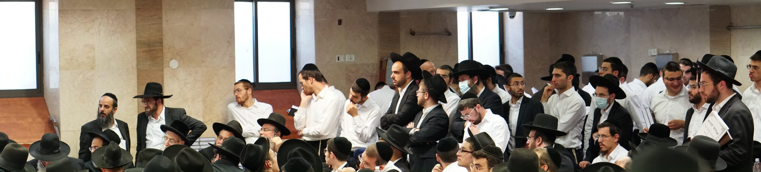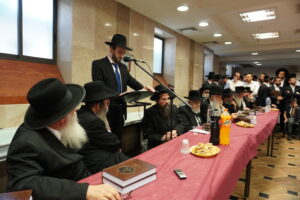 This past summer zman, the Yeshiva’s main Masechta was Pesachim. On the last day of the zman, members of the Daf Chabura – who schedule their learning with the goal of finishing the Yeshiva’s Masechta each zman – celebrated their customary siyum. They were joined by many other talmidim who independently arranged their learning schedule to complete the entire Masechta and were also mesayem at this event. Hundreds of talmidim were among the honorary mesaymim.