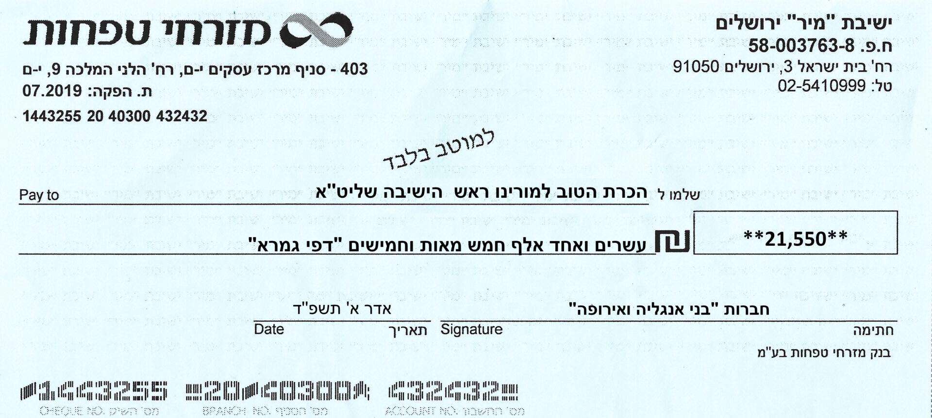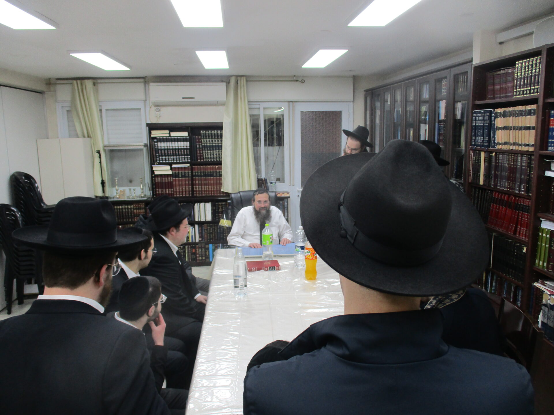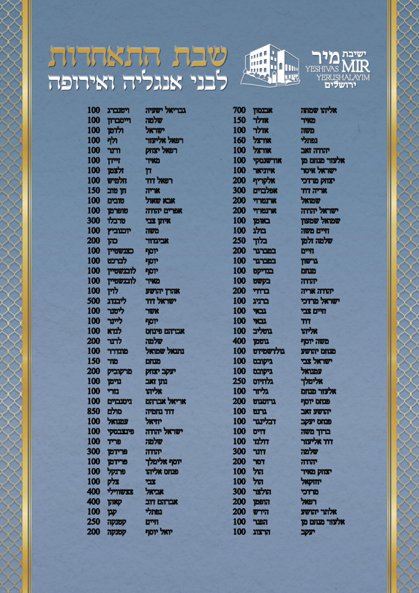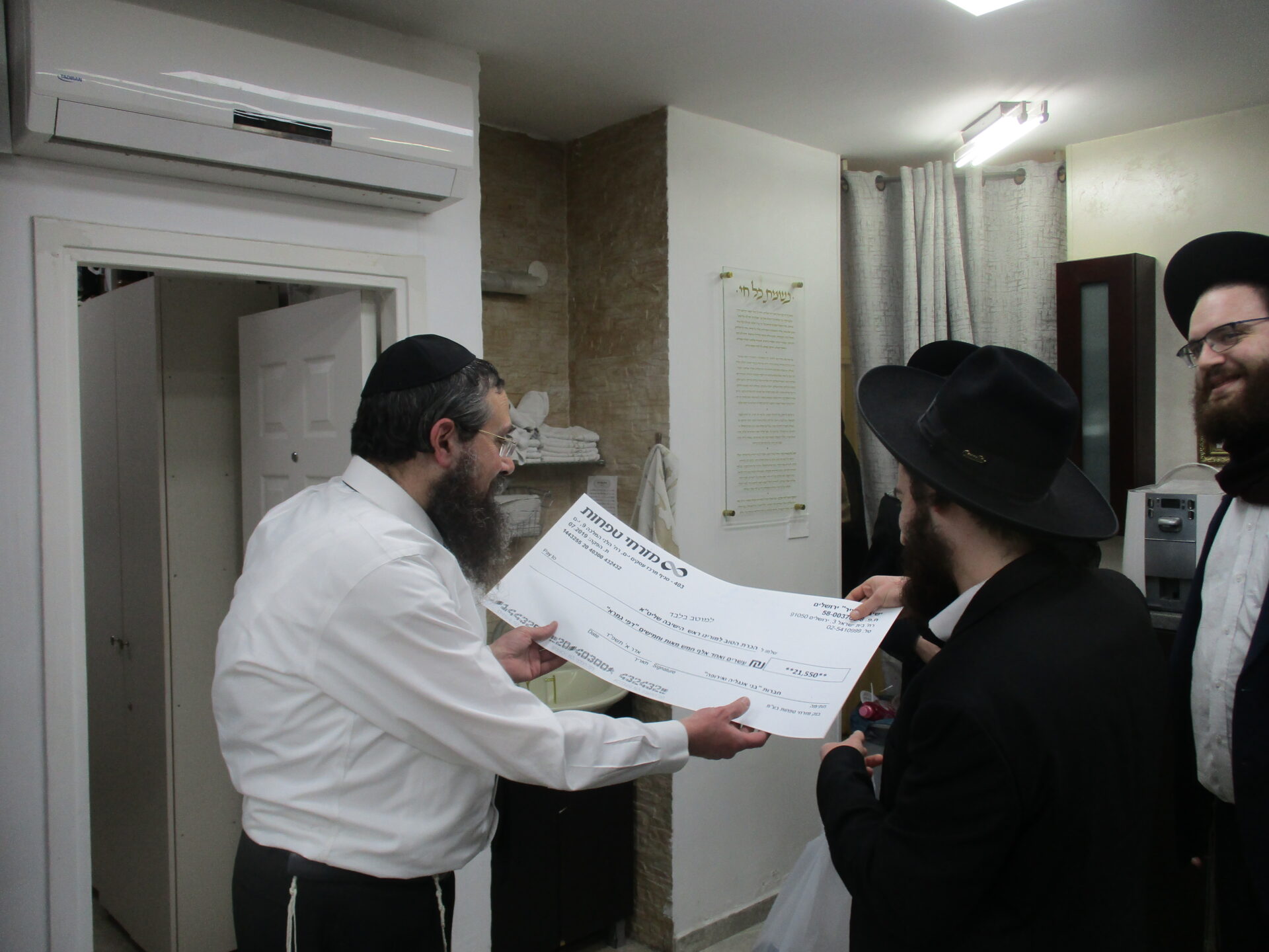 After spending a special Shabbos together with the Rosh Hayeshiva Shlita several weeks ago, the bnei chabura of the UK and European talmidim joined in presenting the Rosh Hayeshiva with a special gift signifying their hakoras hatov. While there aren’t many gifts the Rosh Hayshiva would enjoy, they knew exactly what to give. The group of over one hundred talmidim presented the Rosh Hayeshiva with a check – but instead of it being made out to a monetary amount, it was for a total of 21,550 dapim of Gemara that the talmidim took upon themselves to learn. The Rosh Hayeshiva was beaming with excitement – there is nothing more meaningful to him then more Limud Hatorah. Upon hearing that some of the bochurim committed themselves to over 500 blatt of Gemara, the Rosh Hayeshiva said that he will sponsor the necessary Gemaros they will need to complete it. It was a true simchas haTorah at the home of the Rosh Hayeshiva, as well as a beautiful demonstration of hakoras hatov in a most meaningful fashion.