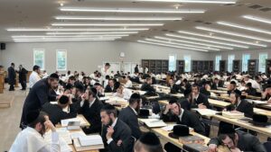 Most of the talmidim have remained in Eretz Yisroel; together with many new arrivals who began their first zman in Yeshiva, they are learning with fervent hasmada. For those who were unable to return, the Yeshiva felt an achrayus to find a suitable temporary arrangement that would allow them to continue their learning until they return to Eretz Yisroel. Rabbi Moshe Bender of Yeshiva Darchei Torah graciously offered the spacious, secluded grounds of their summer home, Camp Oraysa in Woodbourne, NY; within a short time, the Mir office staff had all the technical details in place. Many of the Yeshiva’s Rabbeim – notably Rav Moshe Aaron Friedman – came from Eretz Yisroel to guide and oversee the learning of the many chaburos who were there, representing the entire spectrum of Mir talmidim: Chassidish, Litvish, Sefardi etc. Rav Chaim Guttman and Rav Eliyahu Rubinstein also came for a brief stay. The accommodations were very comfortable, the nourishing meals are enjoyable; the Shabbos seudos were beautiful and uplifting. Most significantly, the thunderous ruach of the learning confirmed that the efforts of all those involved paid off.