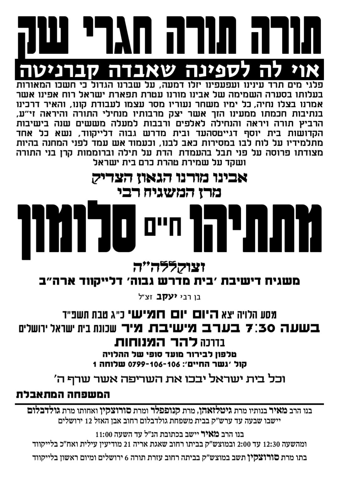 Levaya of Lakewood Mashgiach Rav Matisyahu Salomon zt”l