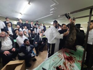 Rav Binyomin Carlebachs Chulin Chabura shecht a sheep to get a hands on experience of the Halachos they are learning