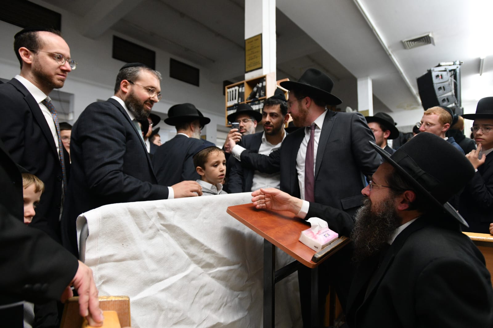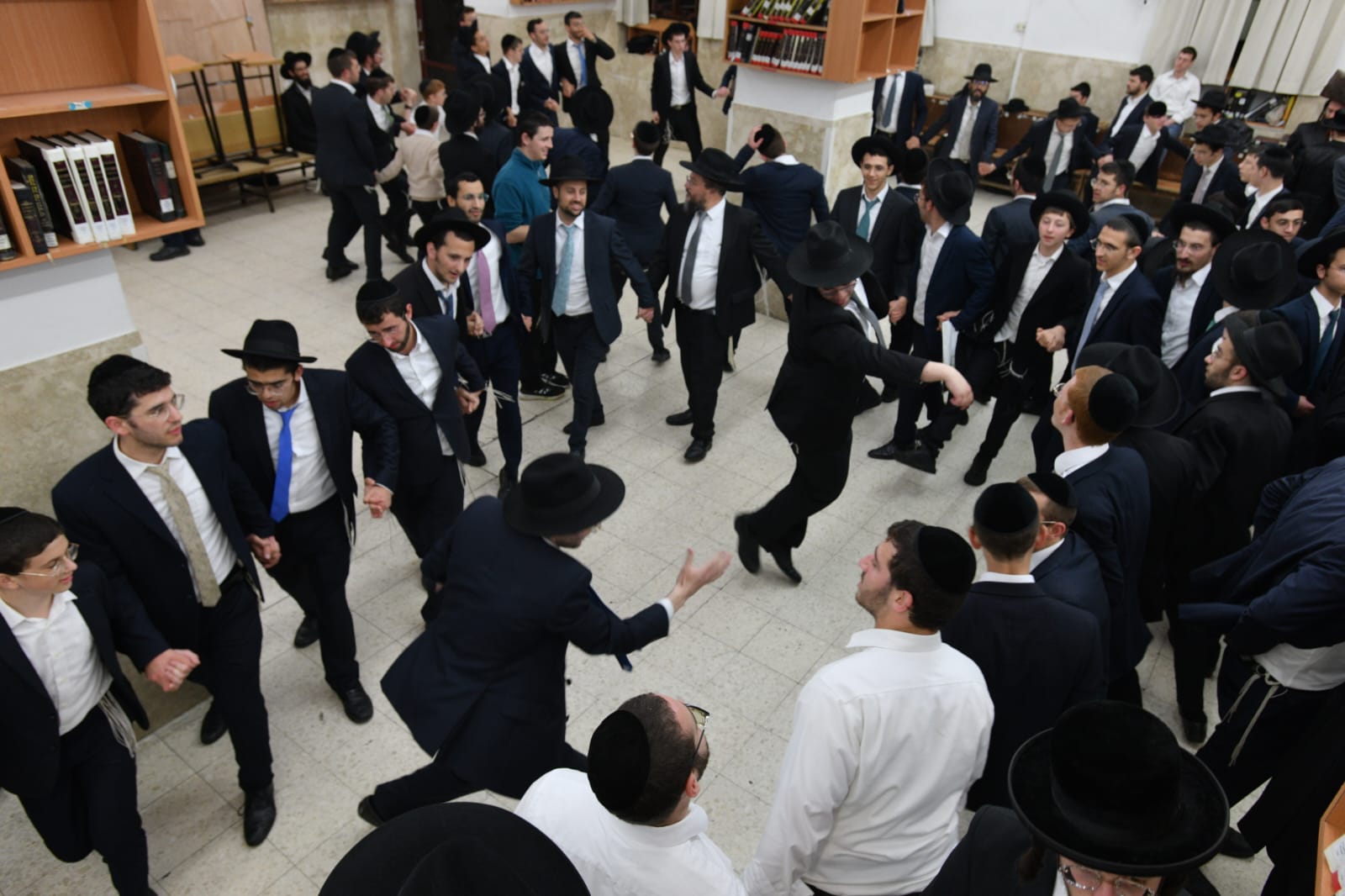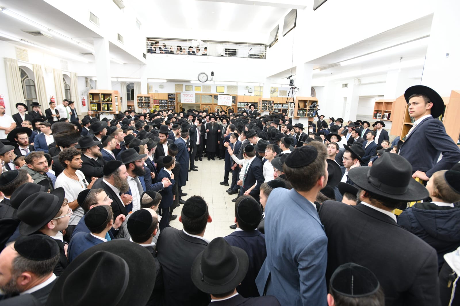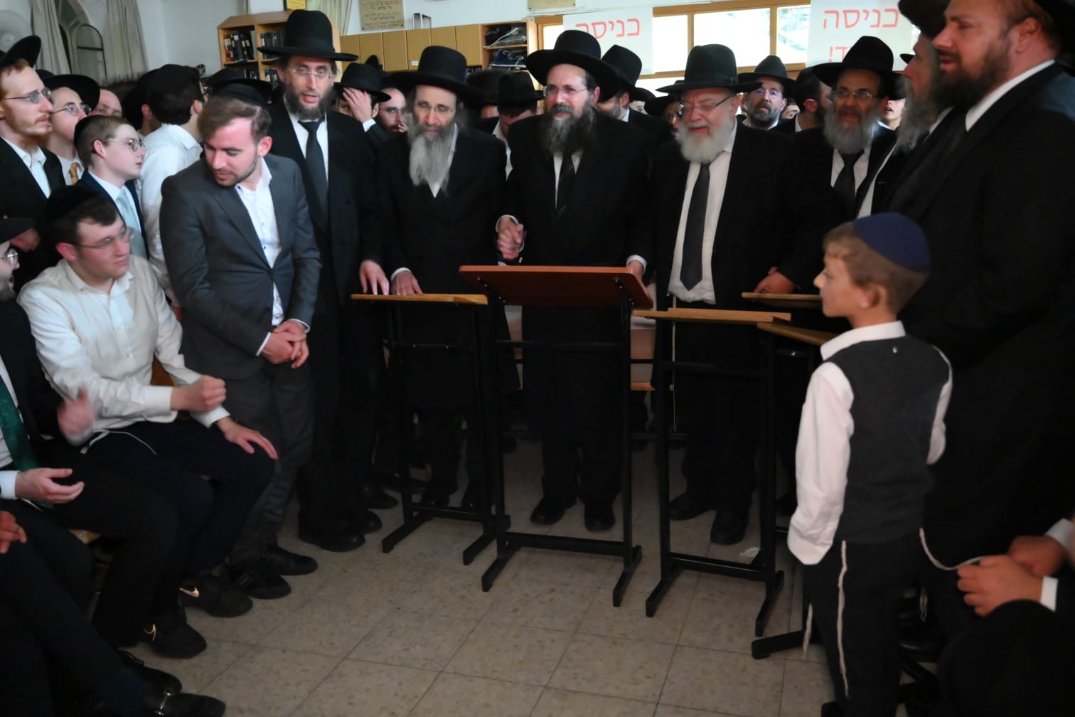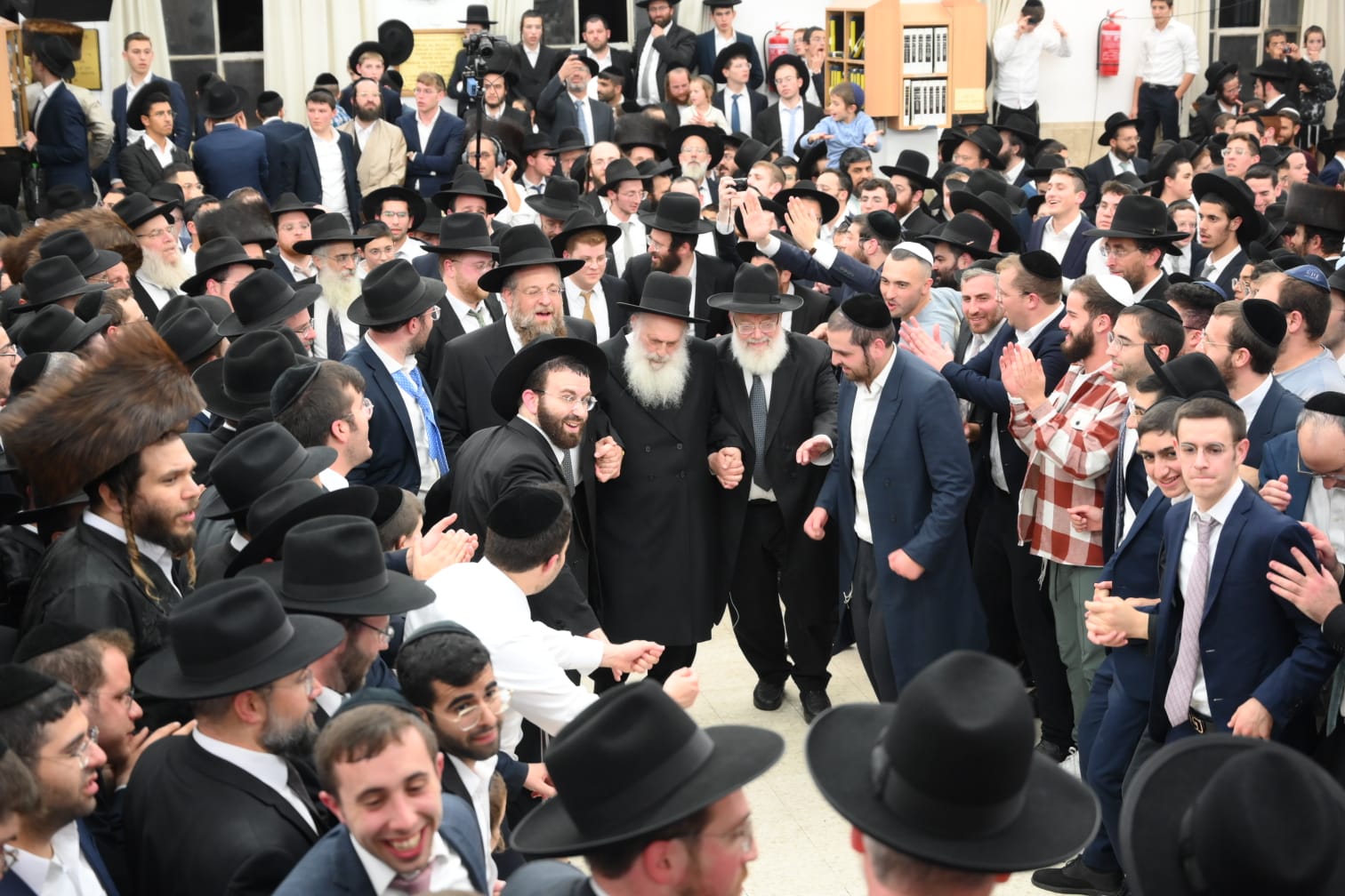 ← Continuing the minhag of their fathers, the Rosh Hayeshiva and Mashgiach starting the winter masechta of Bava Kama after Hoshana Raba davening