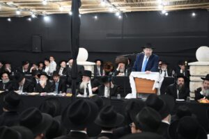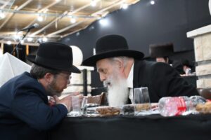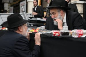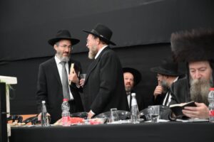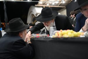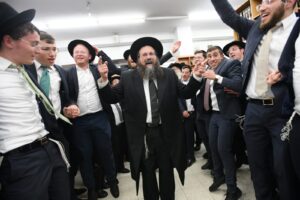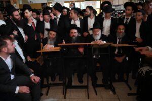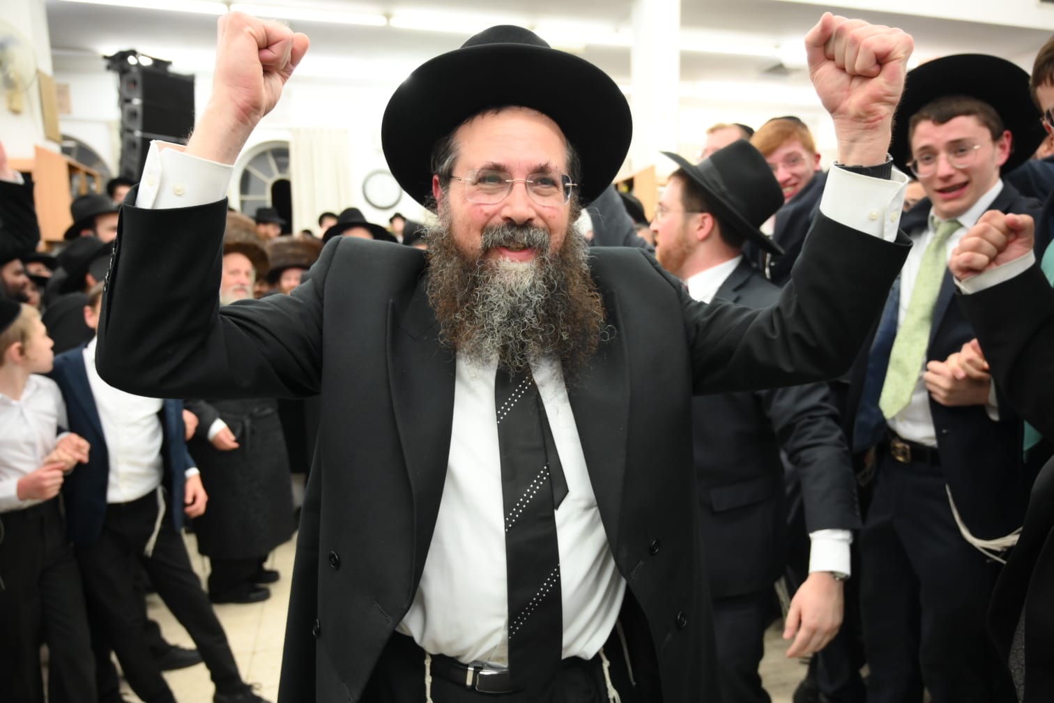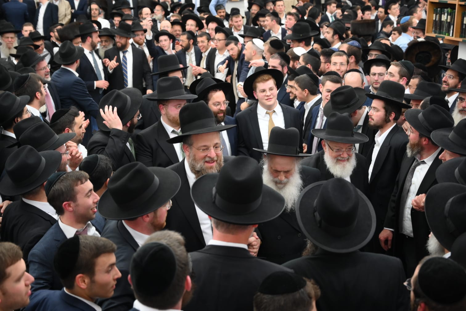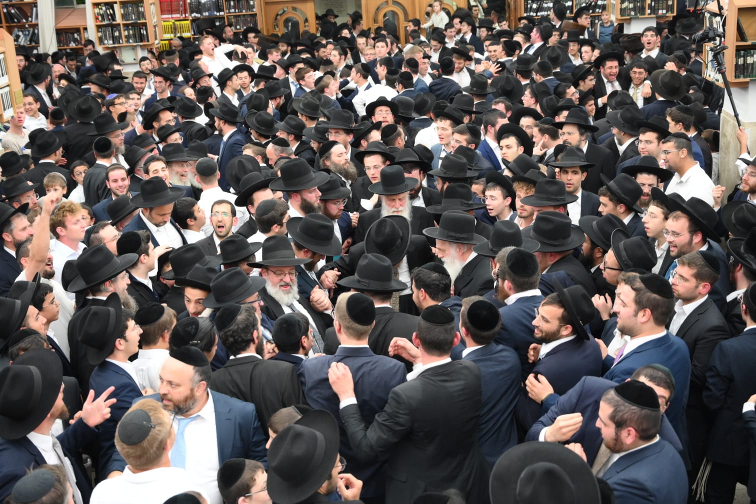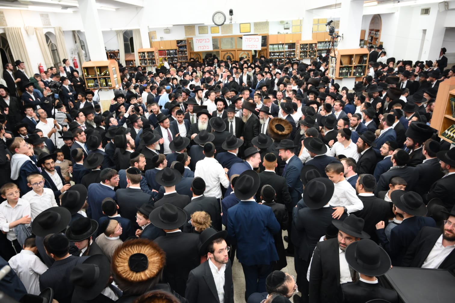 ← Continuing the minhag of their fathers, the Rosh Hayeshiva and Mashgiach starting the winter masechta of Bava Kama after Hoshana Raba davening