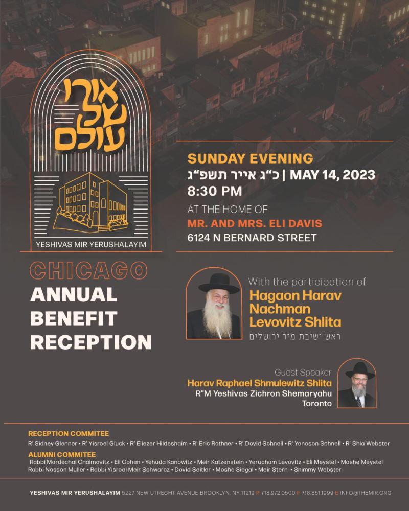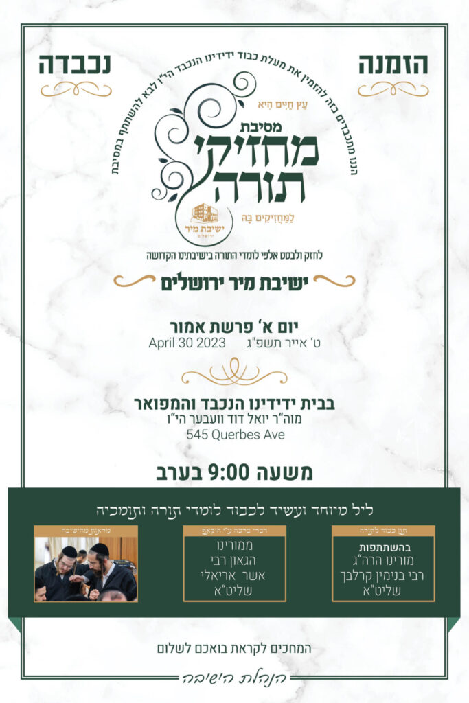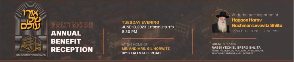 With the participation of Hagaon Harav Nachman Levovitz Shlita Guest Speaker: Rabbi…